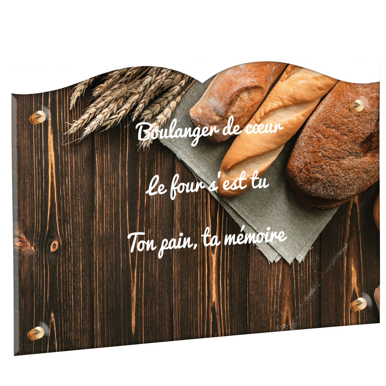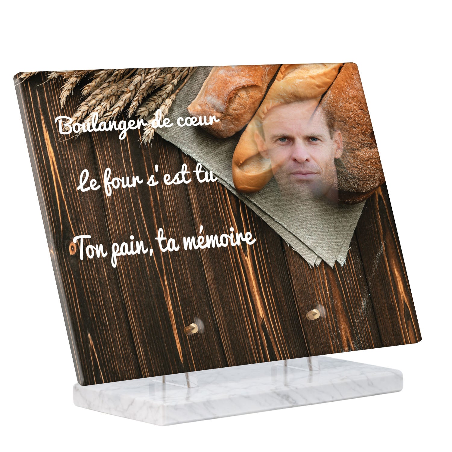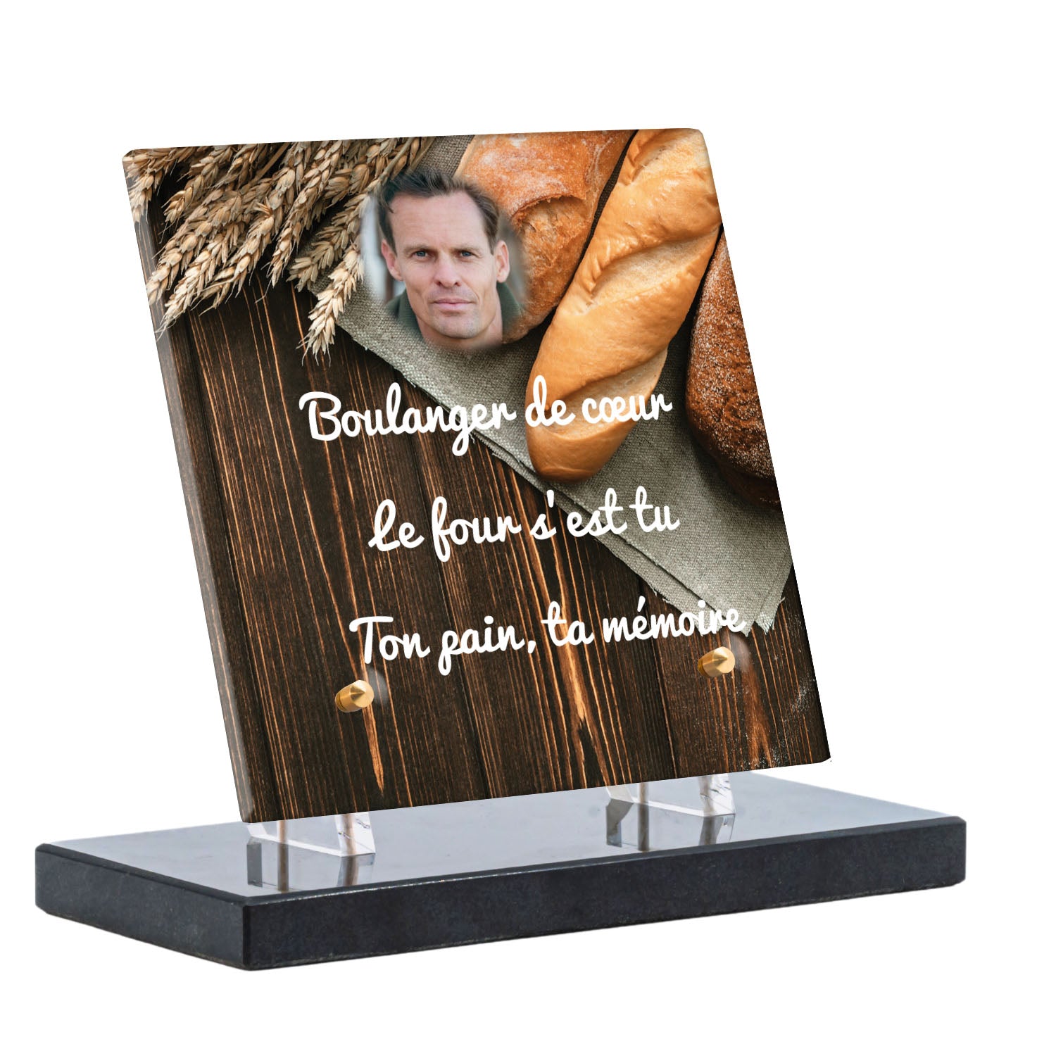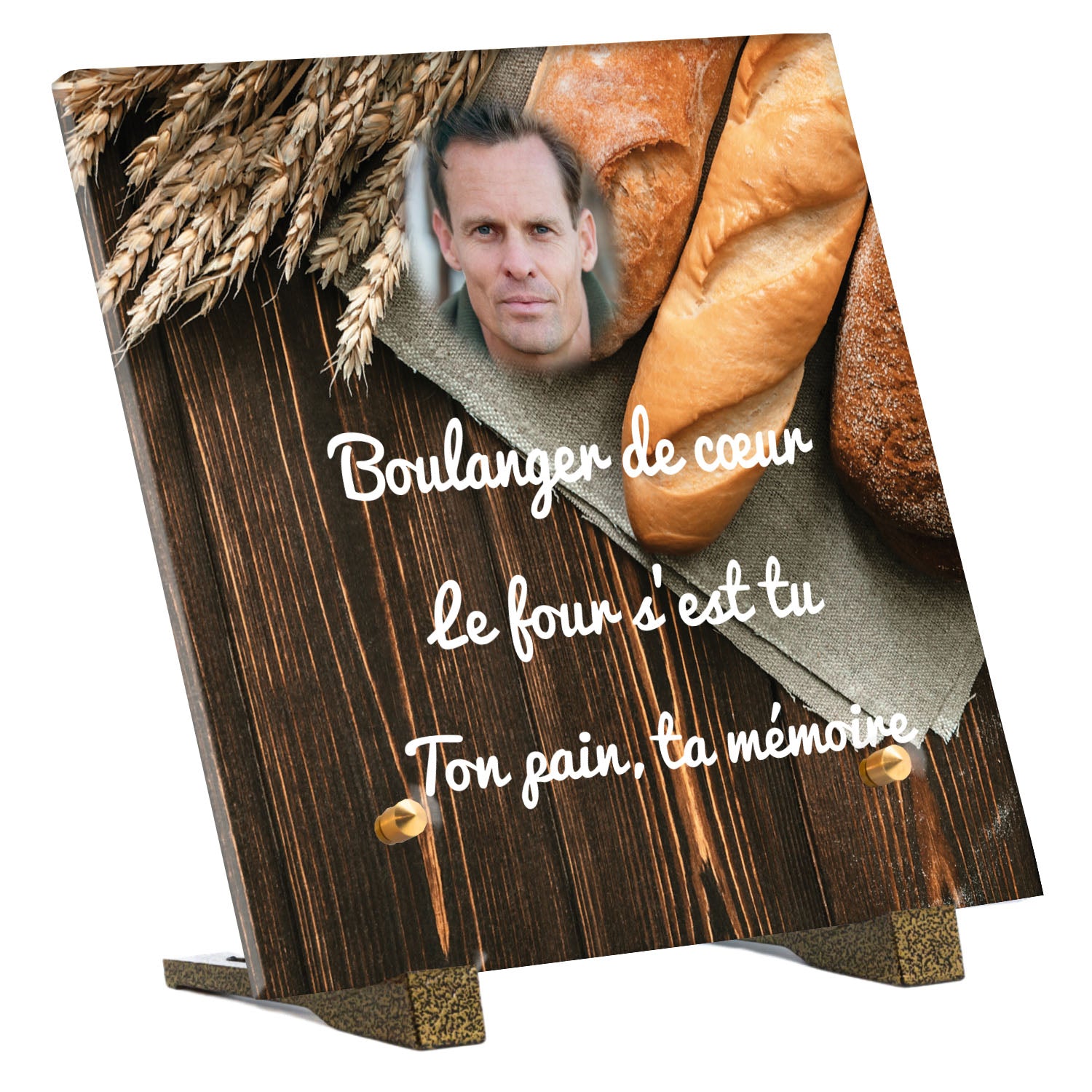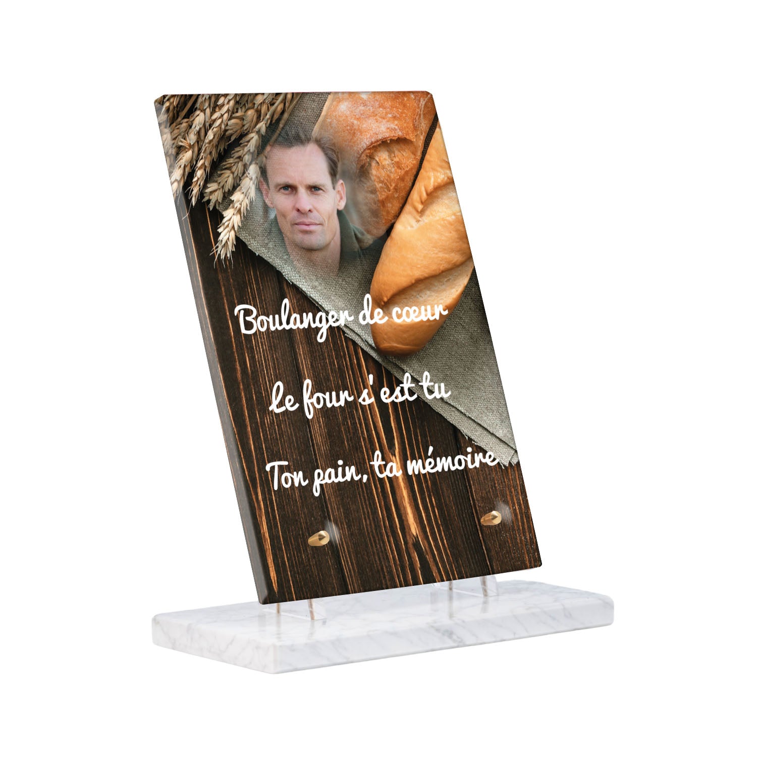 Cette plaque funéraire personnalisée "Boulanger" illustre avec finesse une planche en bois ornée d’un pain, alliant authenticité et symbolisme. Véritable plaque mortuaire, elle apporte une touche respectueuse et touchante au geste hommage. Son style allie tradition et design contemporain, faisant d’elle une plaque funéraire moderne qui saura valoriser la mémoire de vos proches.