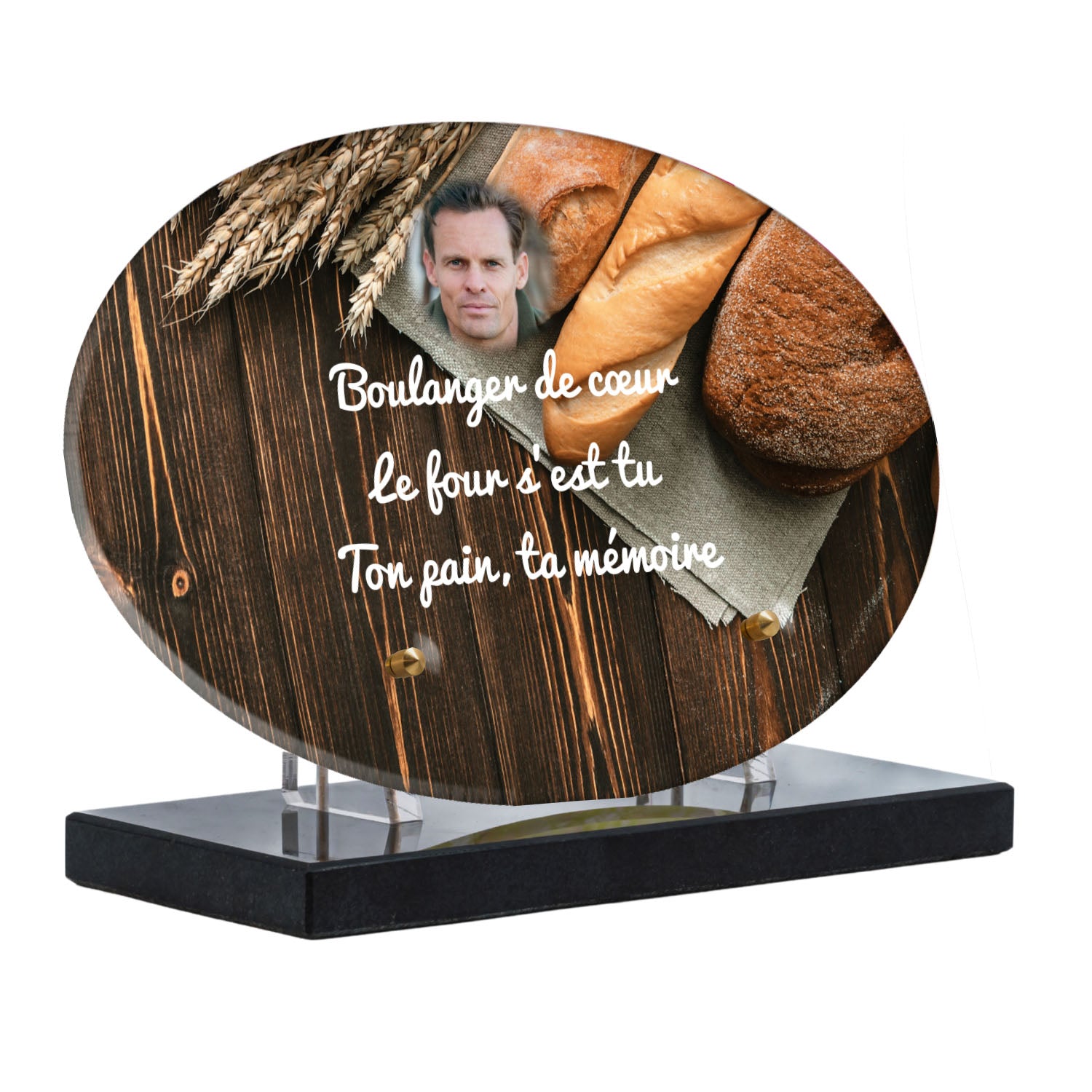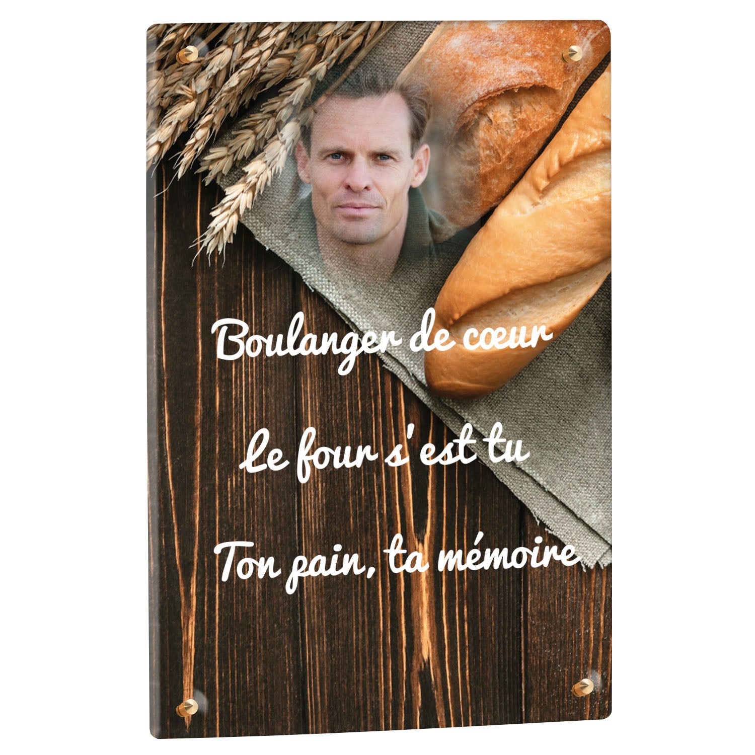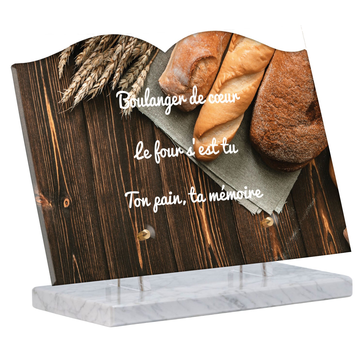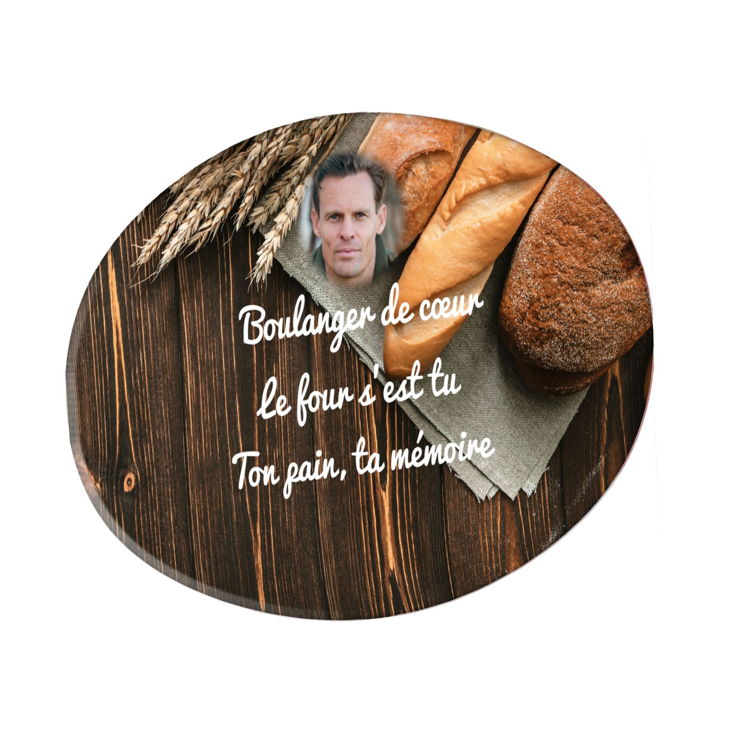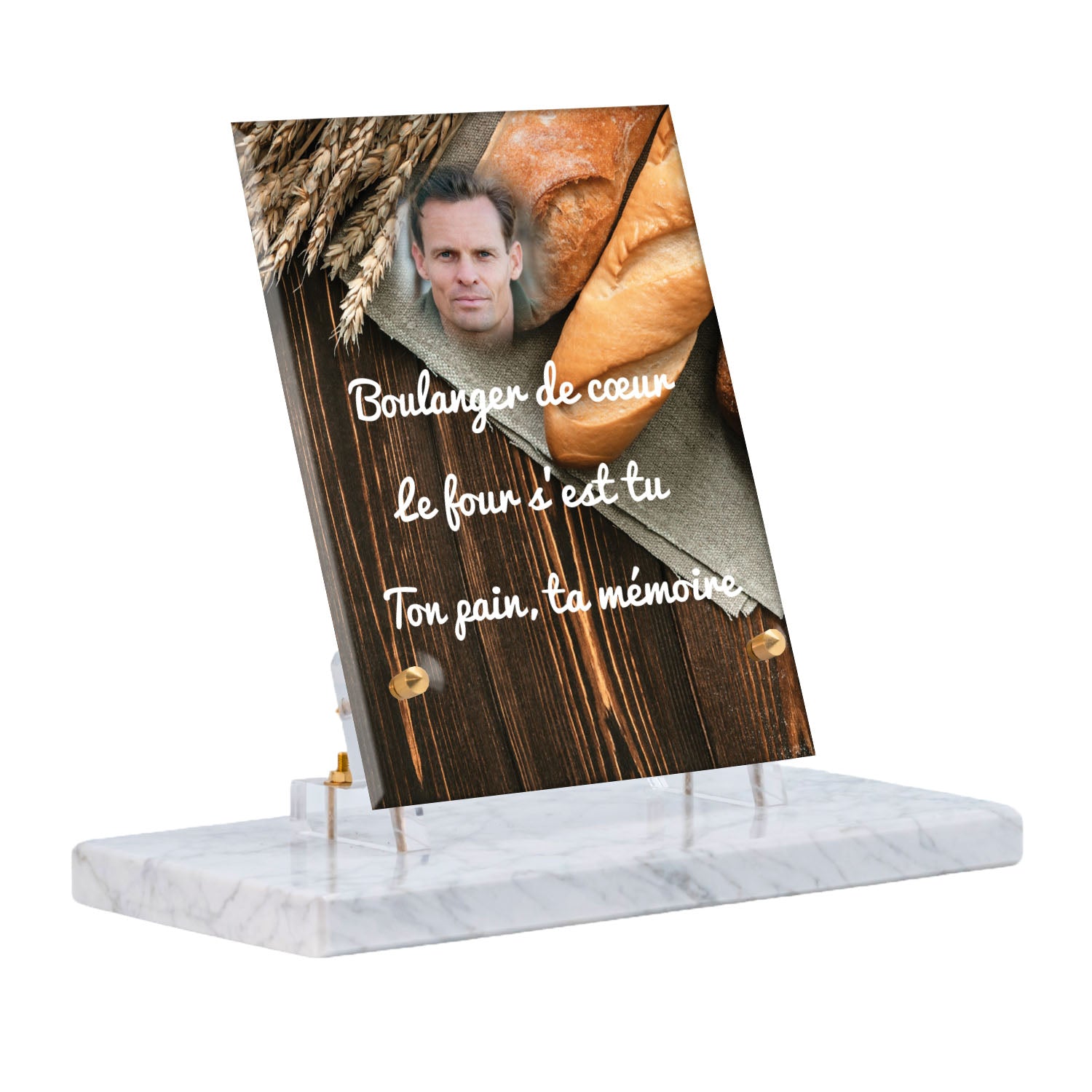 Cette plaque funéraire personnalisée "Boulanger" illustre avec finesse une planche en bois ornée d’un pain, alliant authenticité et symbolisme. Véritable plaque mortuaire, elle apporte une touche respectueuse et touchante au geste hommage. Son style allie tradition et design contemporain, faisant d’elle une plaque funéraire moderne qui saura valoriser la mémoire de vos proches.