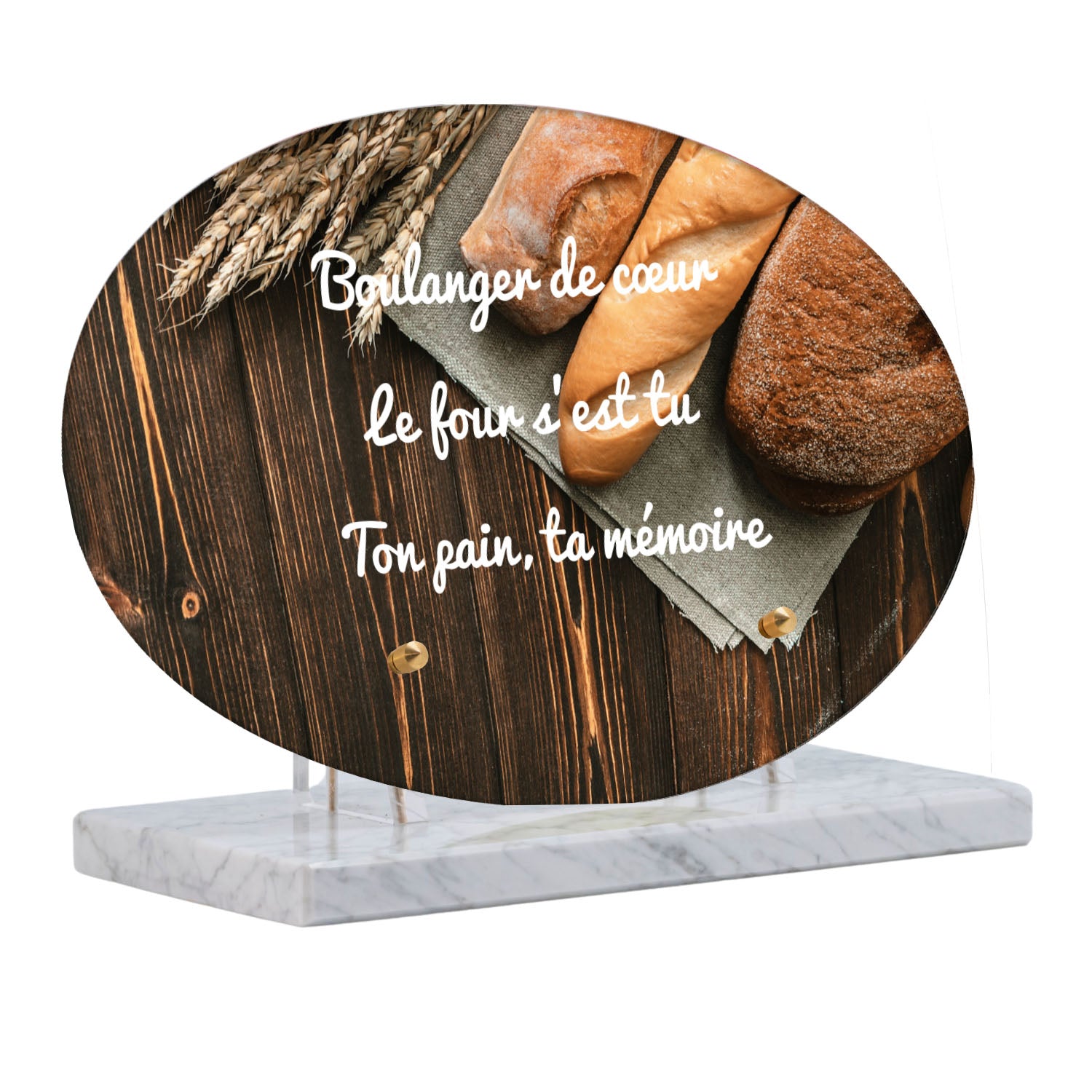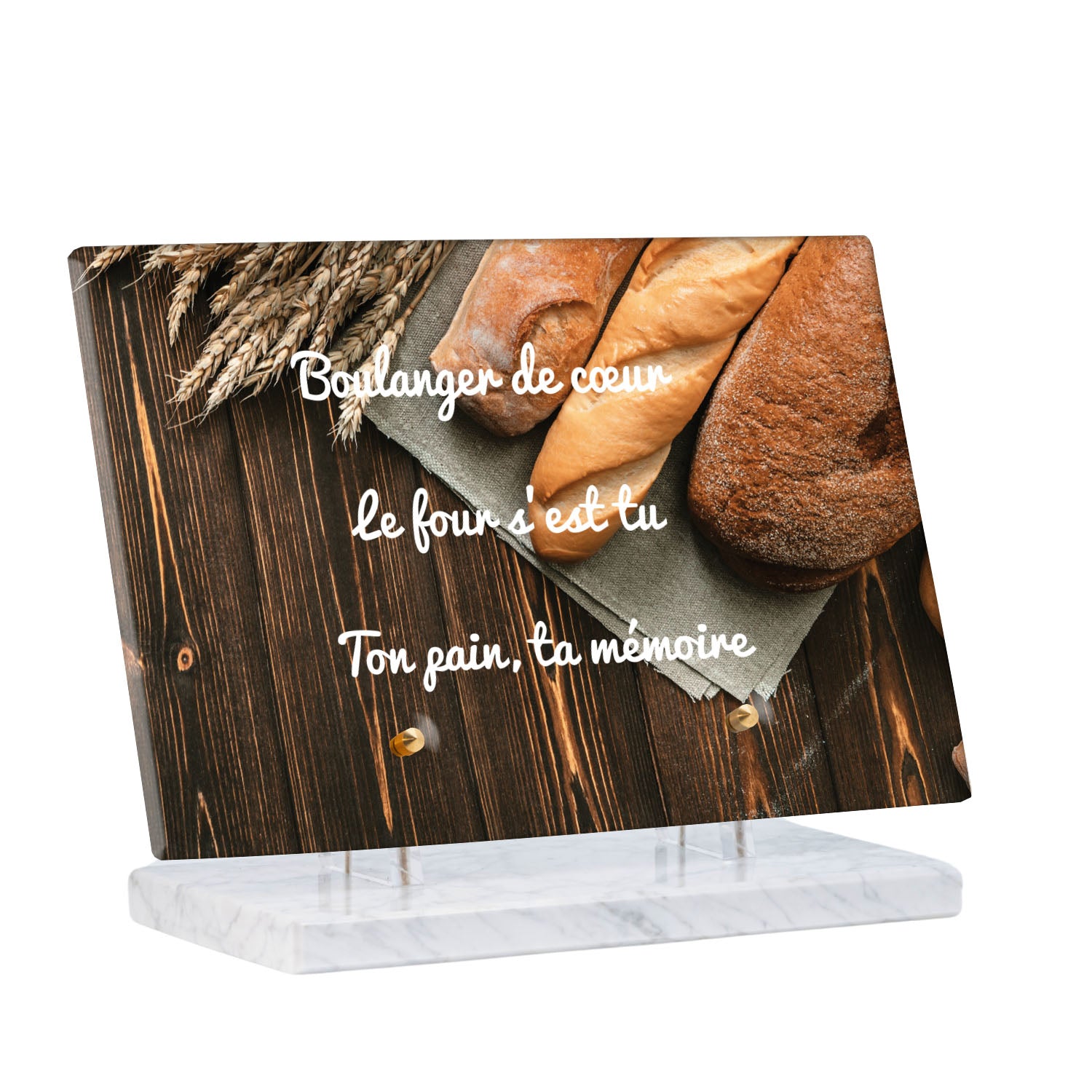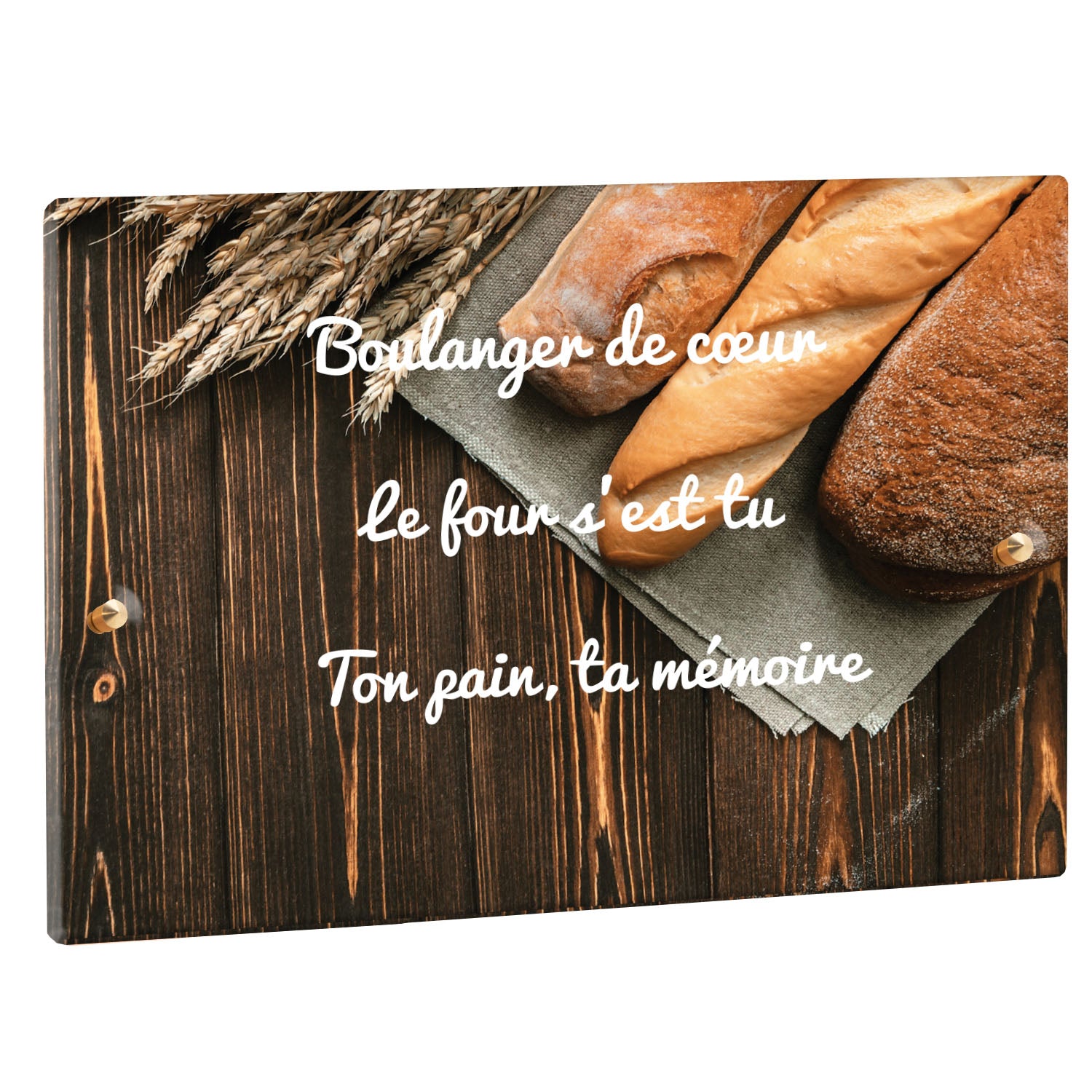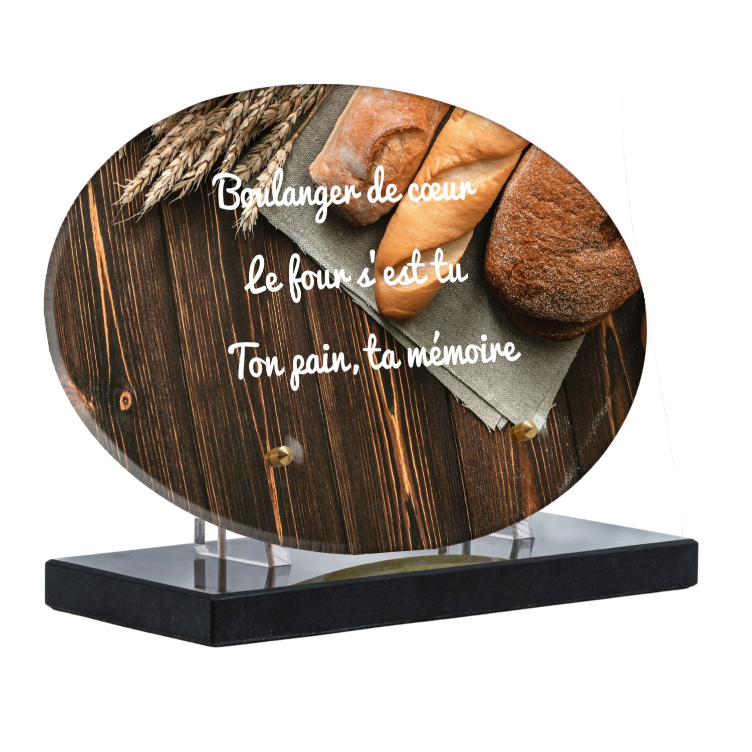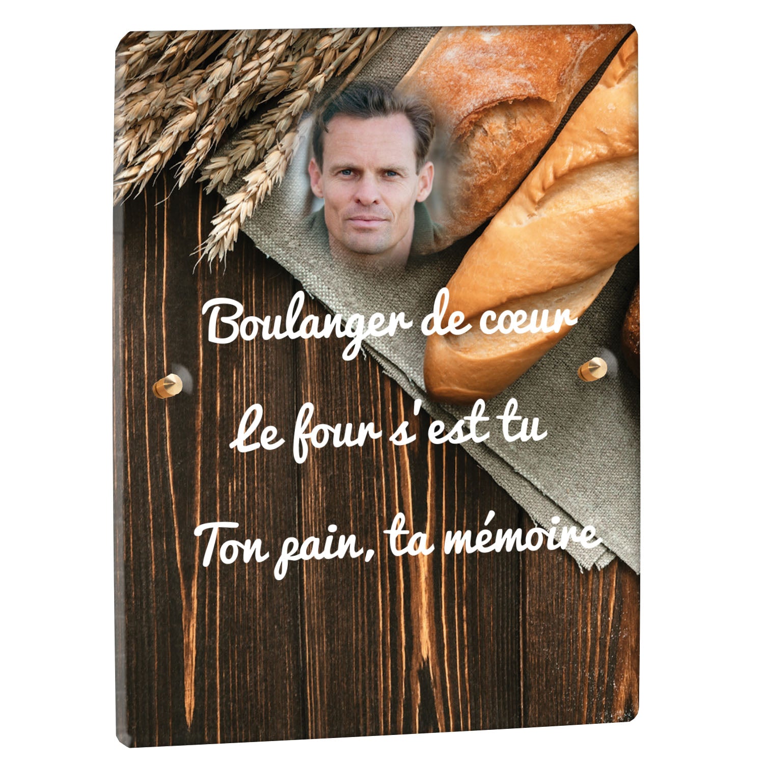 Cette plaque funéraire personnalisée "Boulanger" illustre avec finesse une planche en bois ornée d’un pain, alliant authenticité et symbolisme. Véritable plaque mortuaire, elle apporte une touche respectueuse et touchante au geste hommage. Son style allie tradition et design contemporain, faisant d’elle une plaque funéraire moderne qui saura valoriser la mémoire de vos proches.
