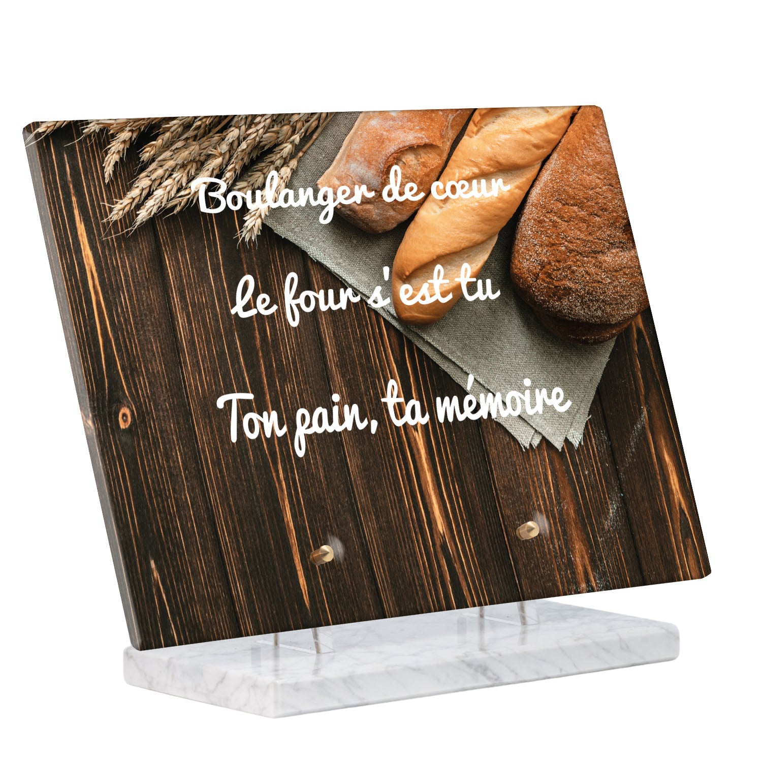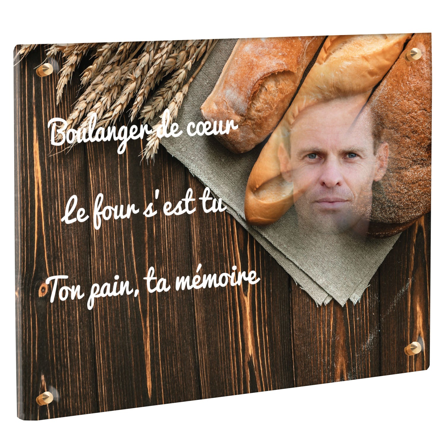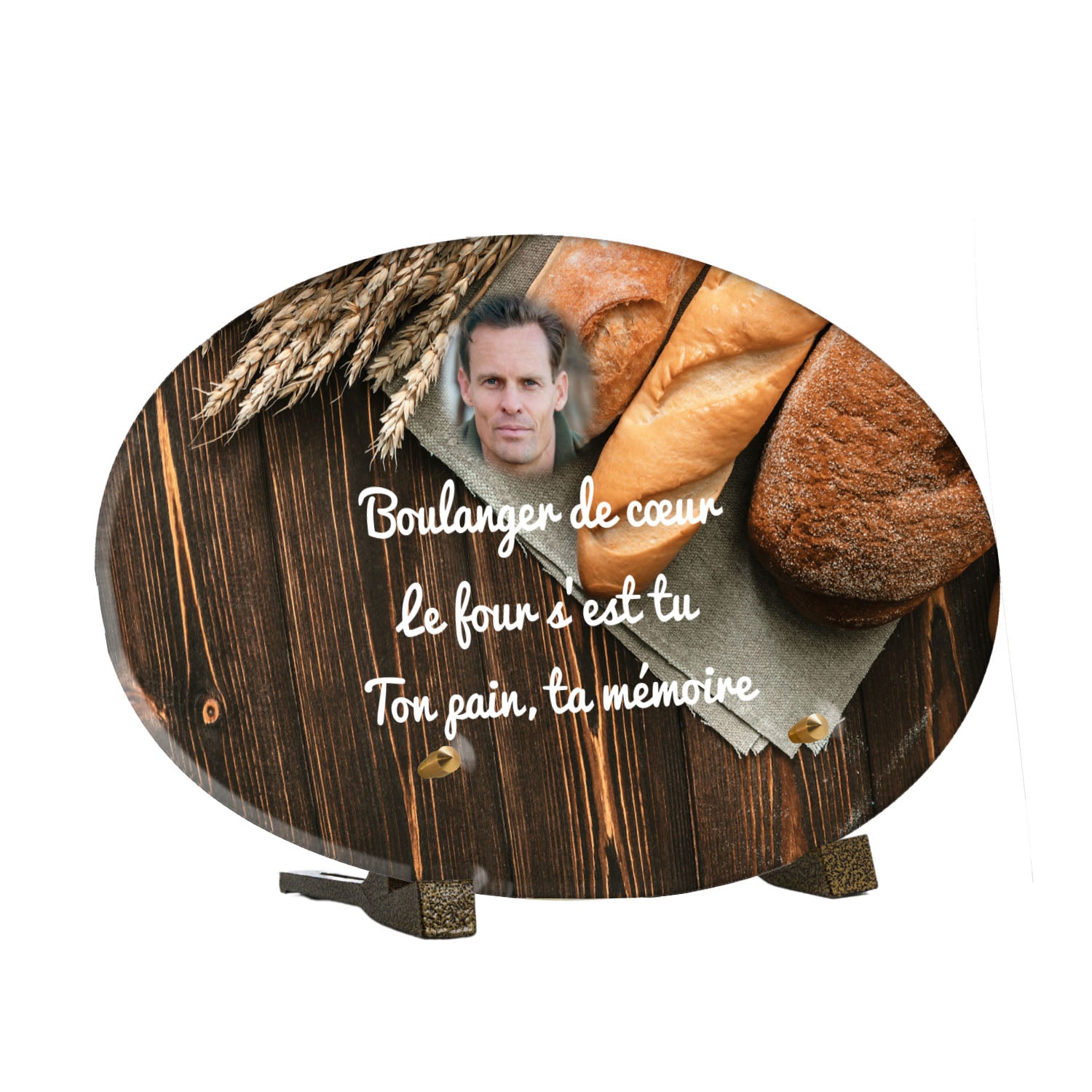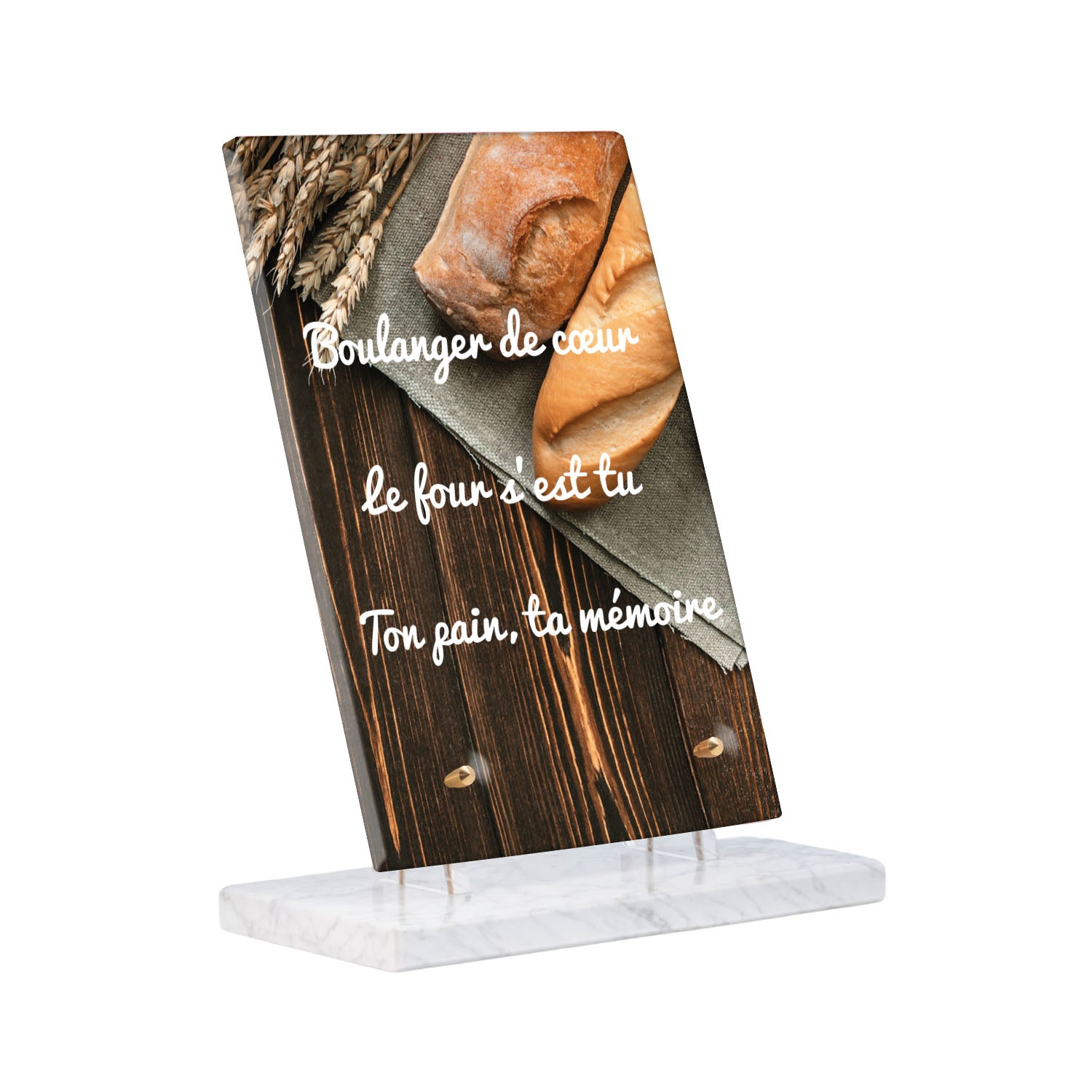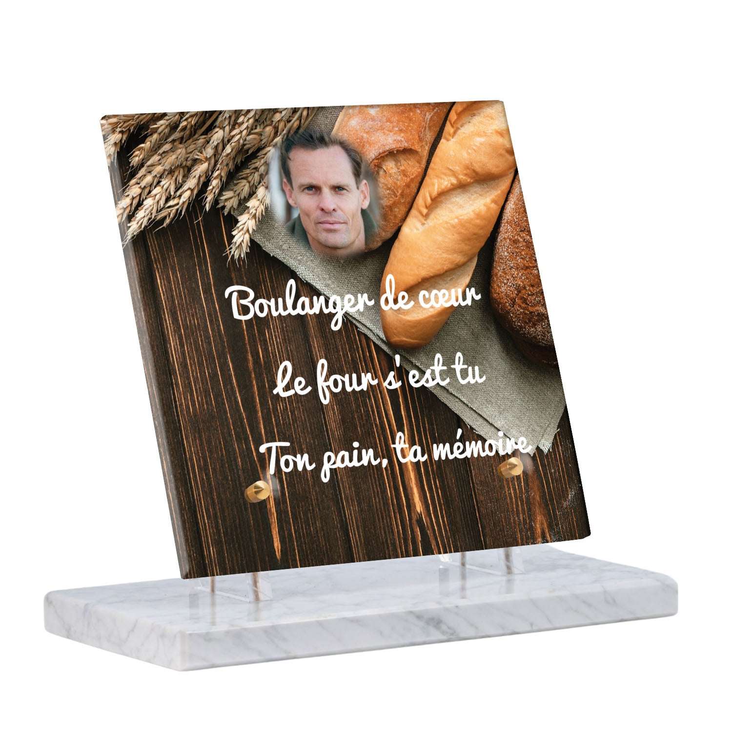 Cette plaque funéraire personnalisée "Boulanger" illustre avec finesse une planche en bois ornée d’un pain, alliant authenticité et symbolisme. Véritable plaque mortuaire, elle apporte une touche respectueuse et touchante au geste hommage. Son style allie tradition et design contemporain, faisant d’elle une plaque funéraire moderne qui saura valoriser la mémoire de vos proches.