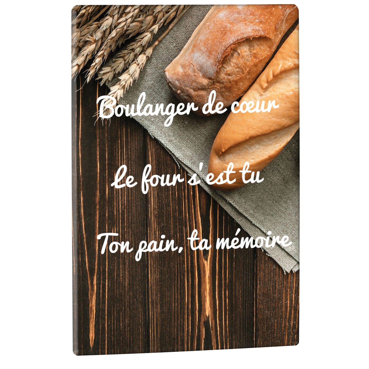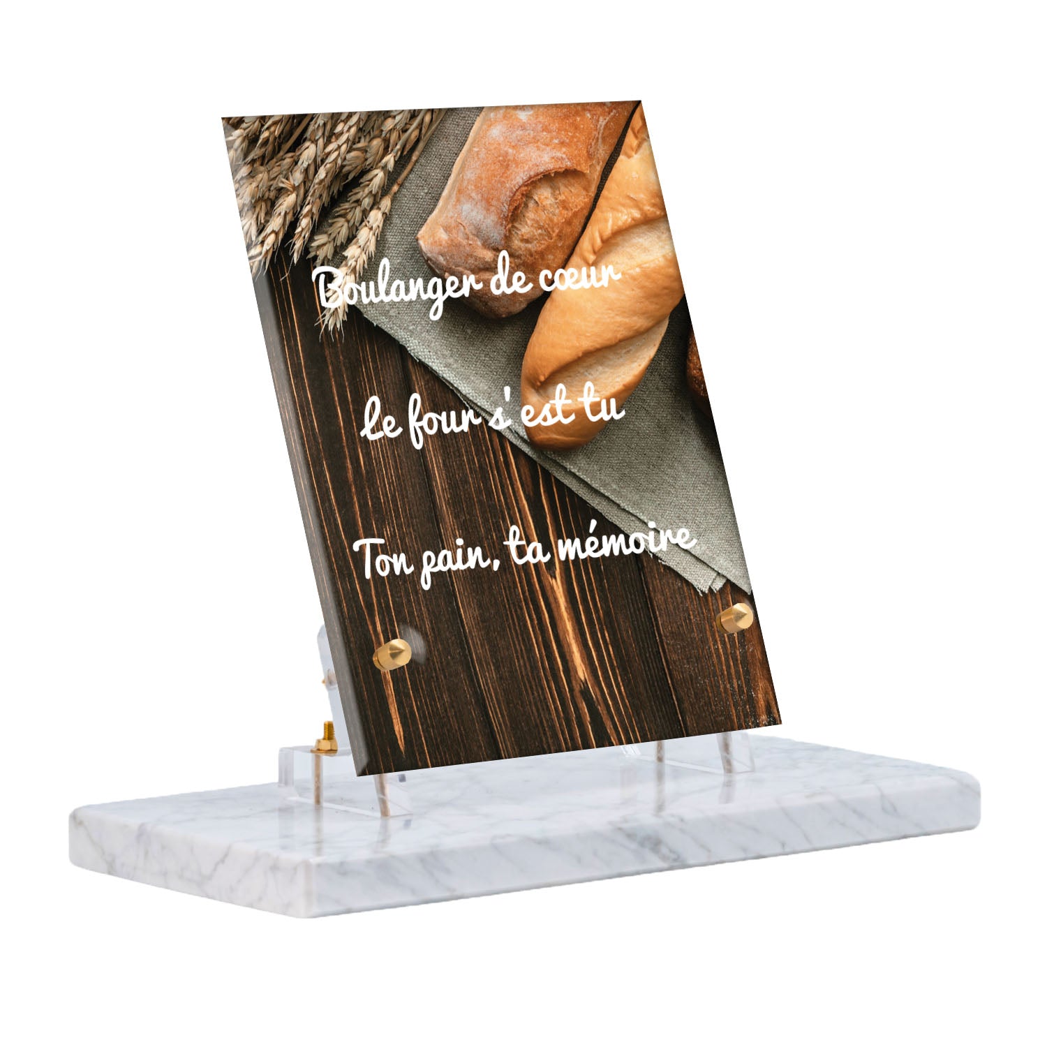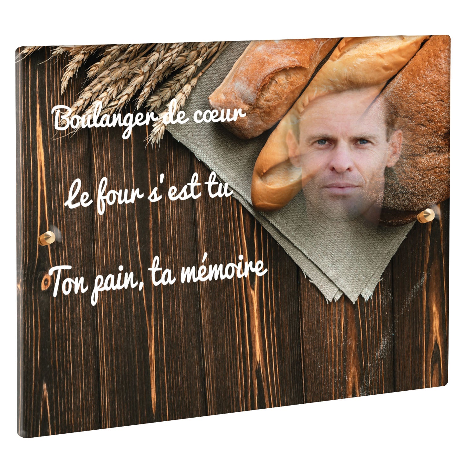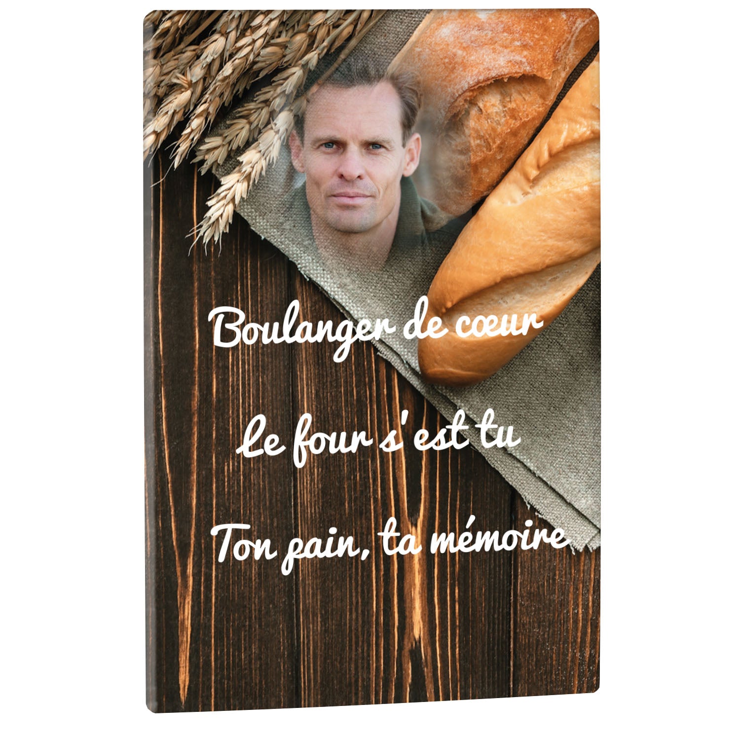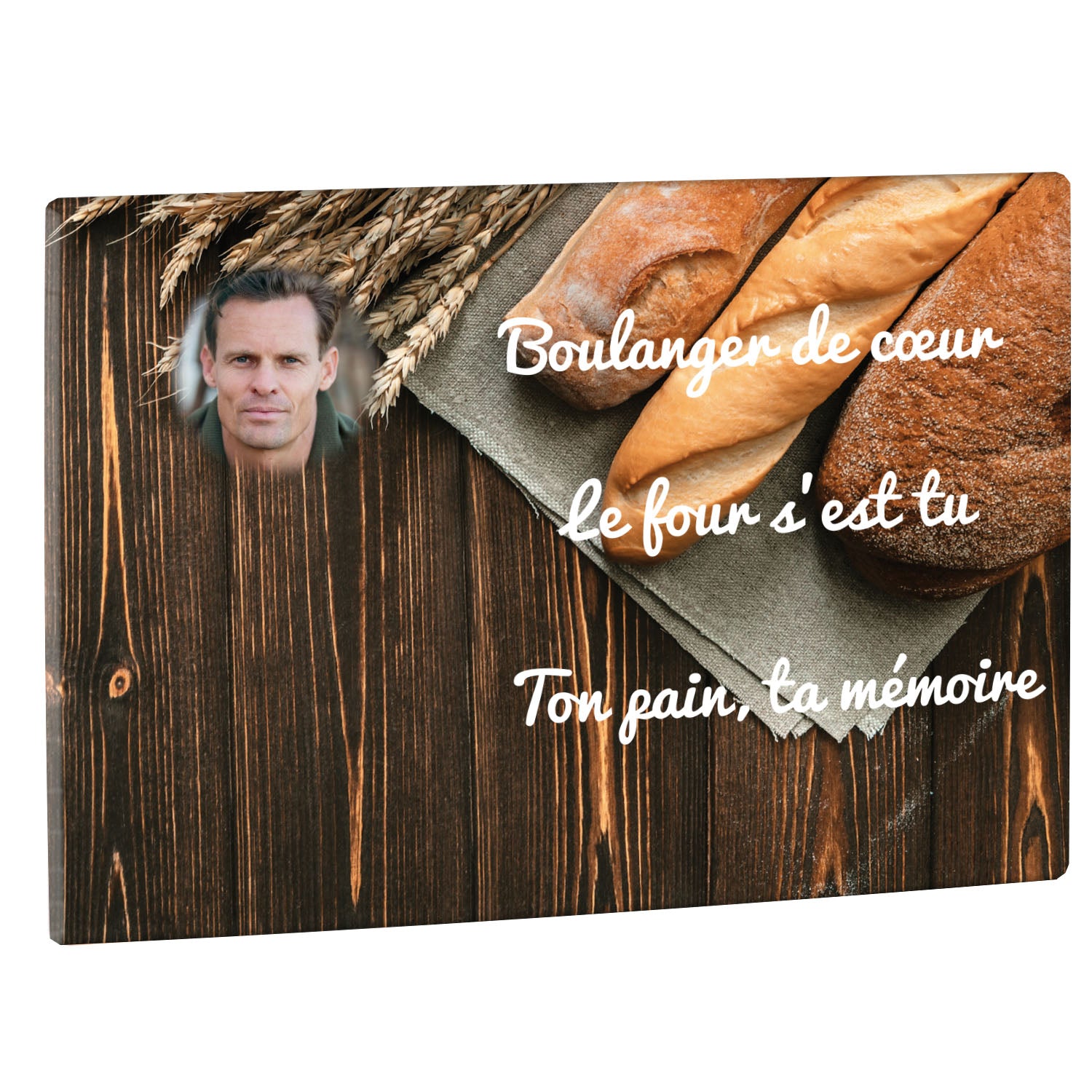 Cette plaque funéraire personnalisée "Boulanger" illustre avec finesse une planche en bois ornée d’un pain, alliant authenticité et symbolisme. Véritable plaque mortuaire, elle apporte une touche respectueuse et touchante au geste hommage. Son style allie tradition et design contemporain, faisant d’elle une plaque funéraire moderne qui saura valoriser la mémoire de vos proches.