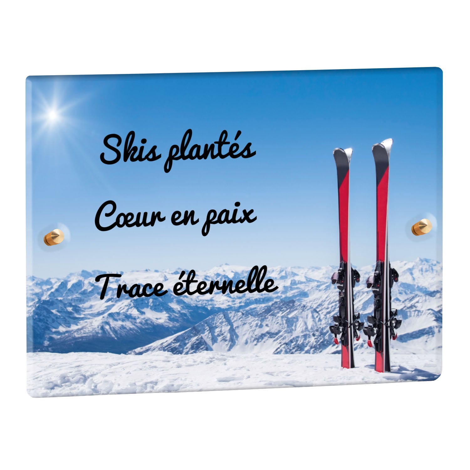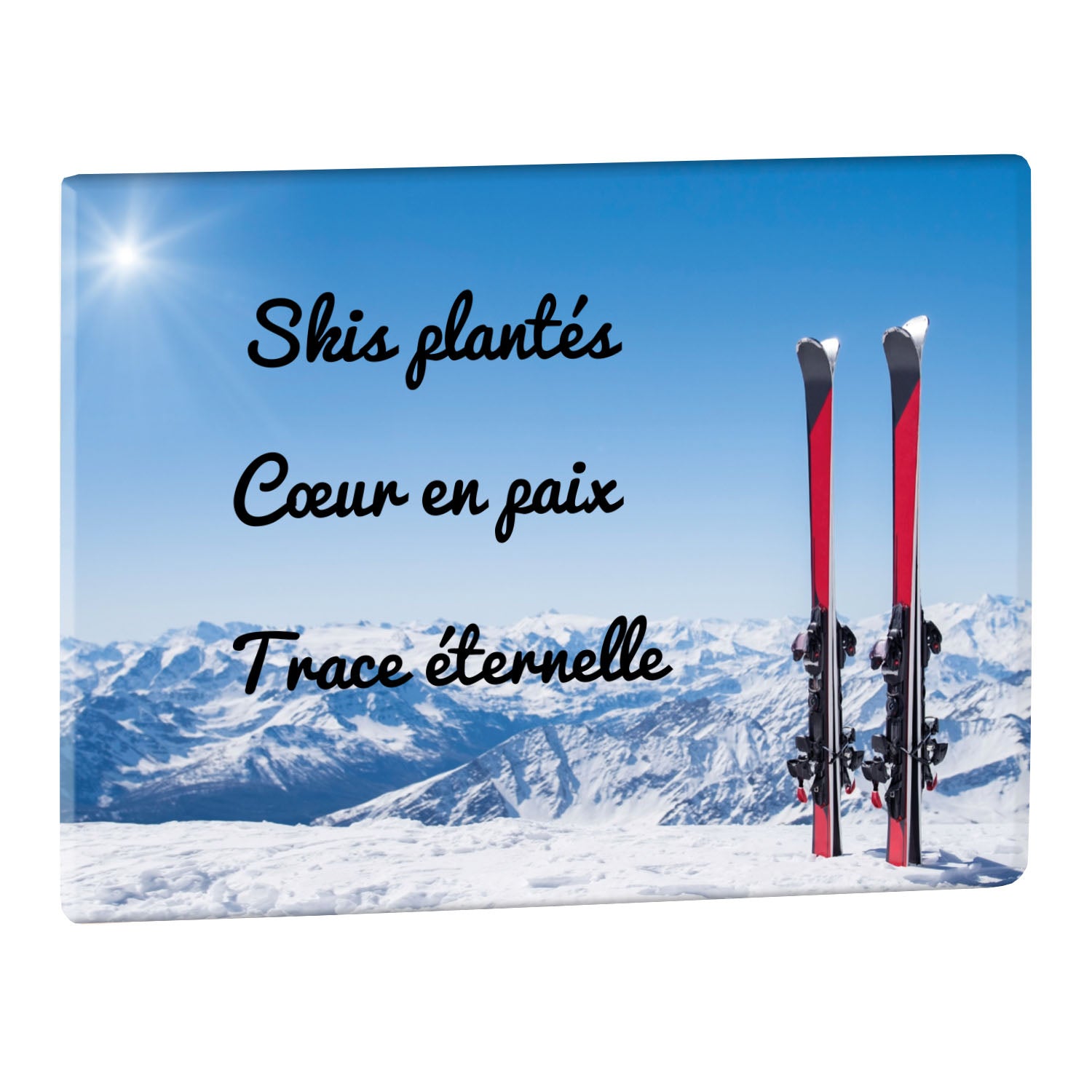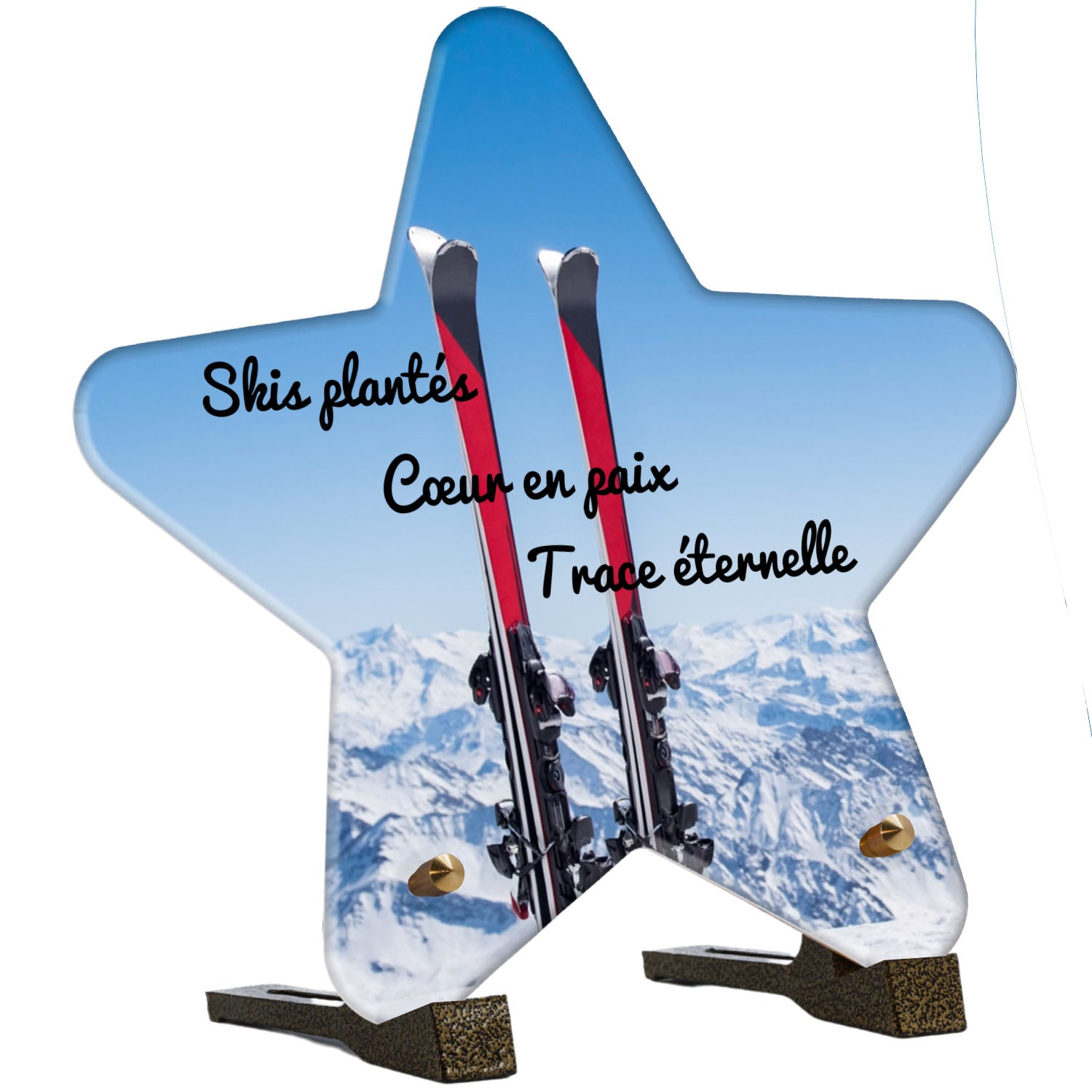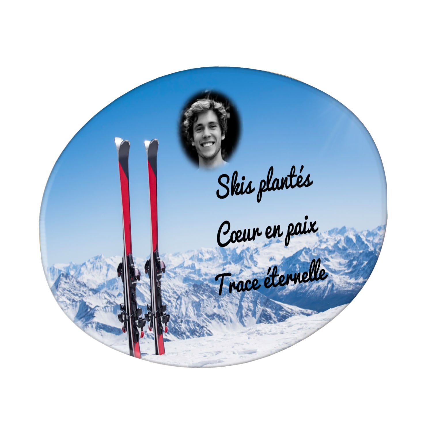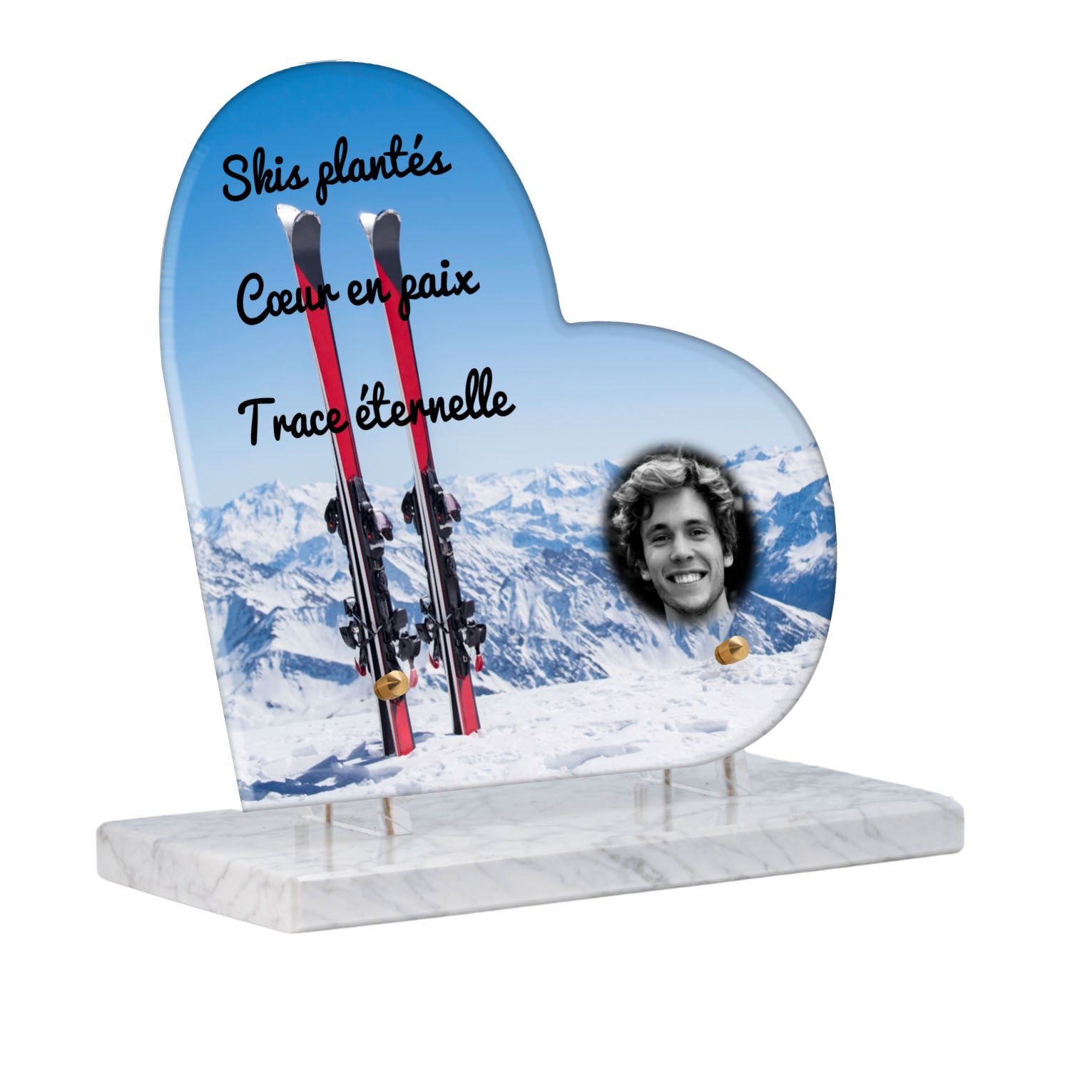 Cette plaque funéraire personnalisée met en scène une paire de ski sur la piste, idéale pour honorer la mémoire d’un amateur de sports d’hiver avec élégance. Fabriquée à partir de matériaux haut de gamme, cette plaque mortuaire allie esthétique et robustesse. Le choix du plexiglas confère à cette plaque funéraire moderne une finition lumineuse et une excellente résistance aux intempéries pour un hommage durable.