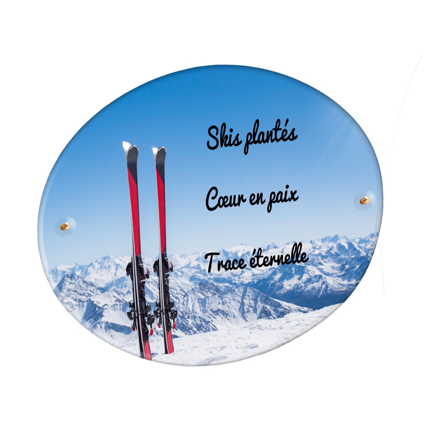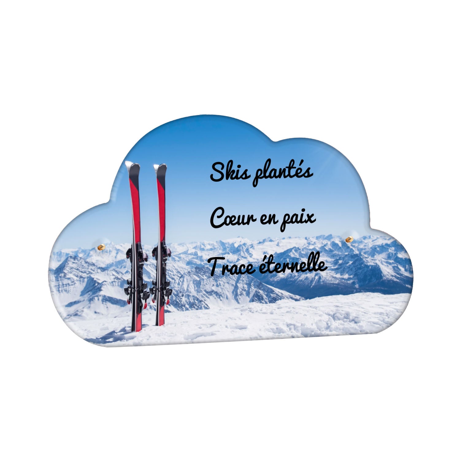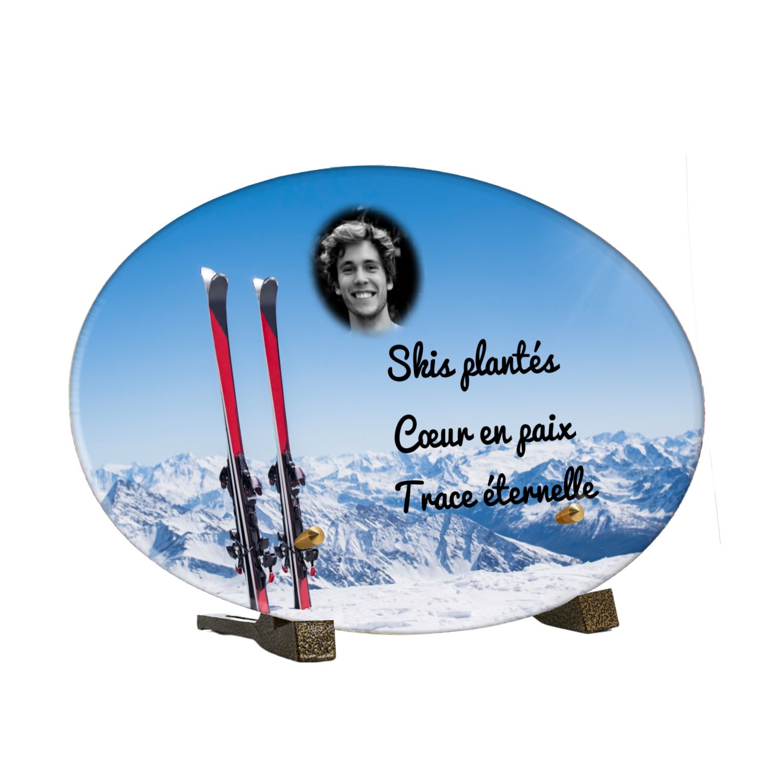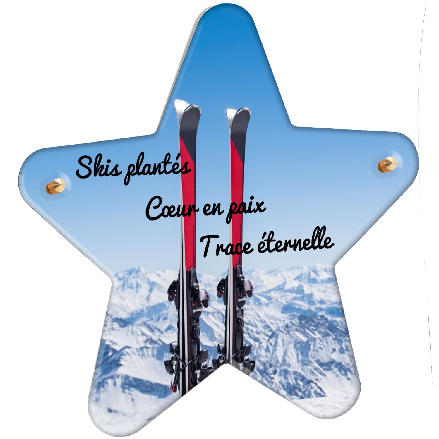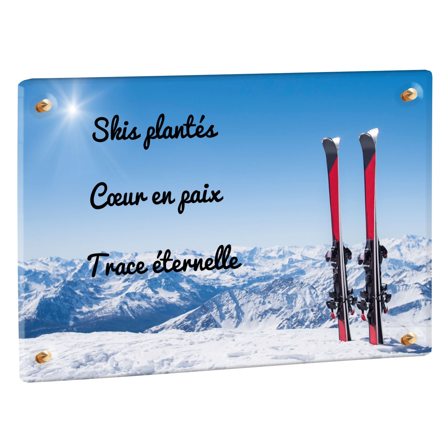 Cette plaque funéraire personnalisée met en scène une paire de ski sur la piste, idéale pour honorer la mémoire d’un amateur de sports d’hiver avec élégance. Fabriquée à partir de matériaux haut de gamme, cette plaque mortuaire allie esthétique et robustesse. Le choix du plexiglas confère à cette plaque funéraire moderne une finition lumineuse et une excellente résistance aux intempéries pour un hommage durable.