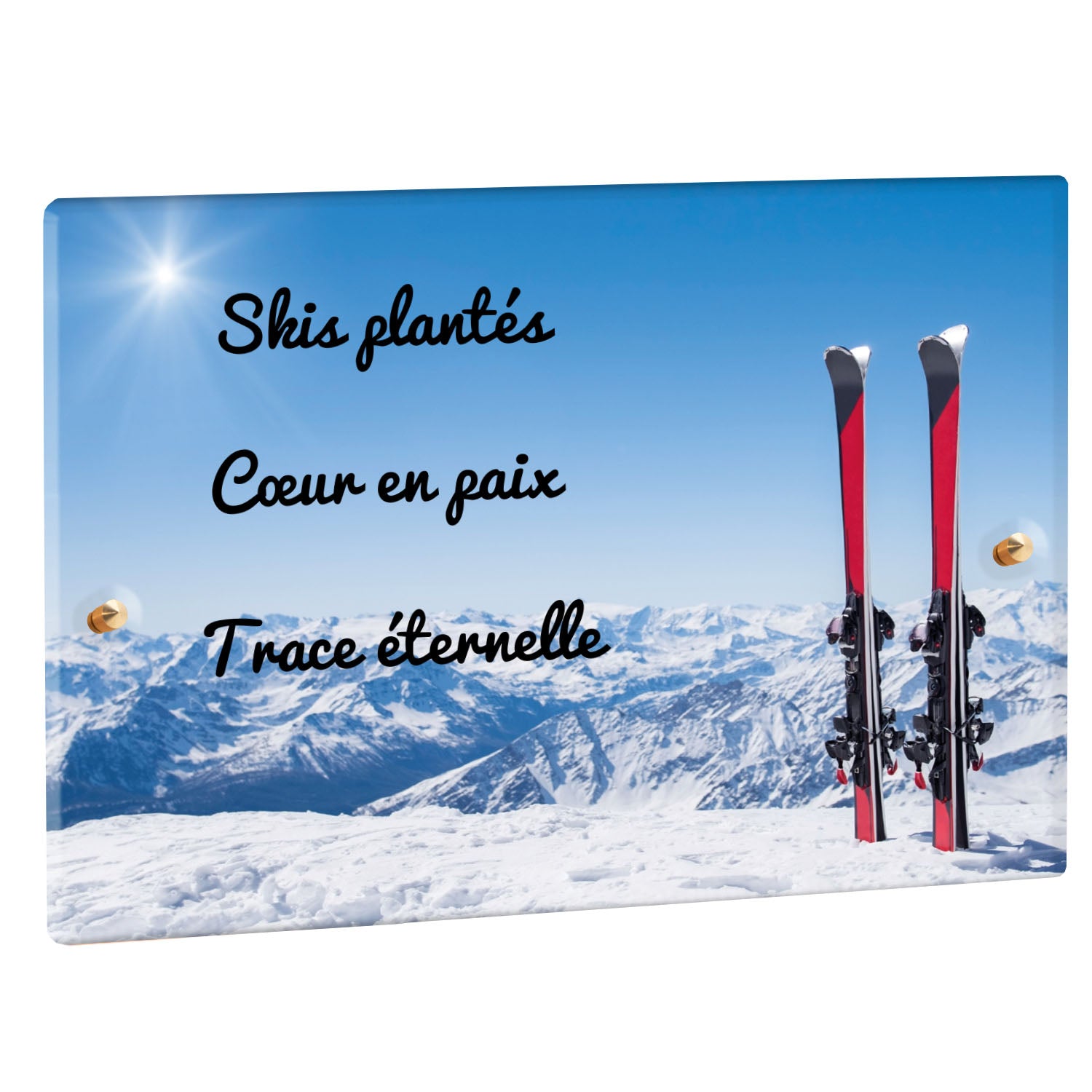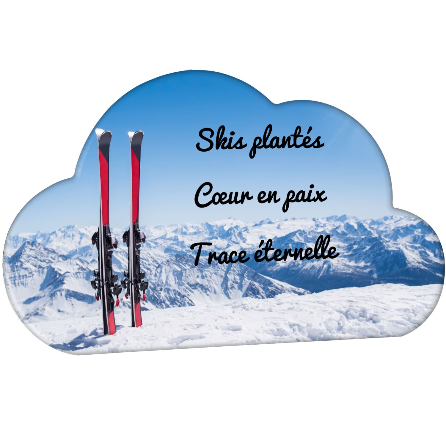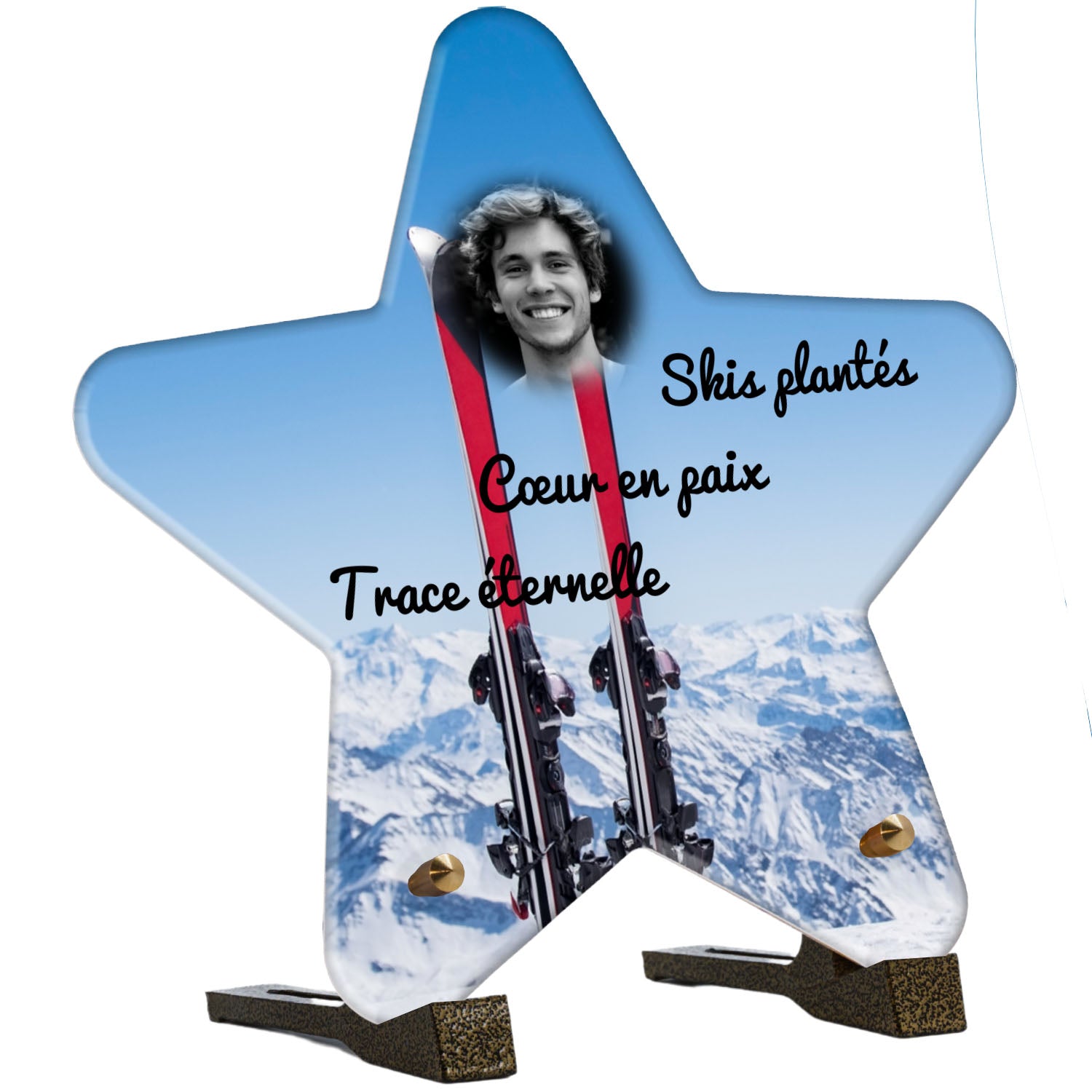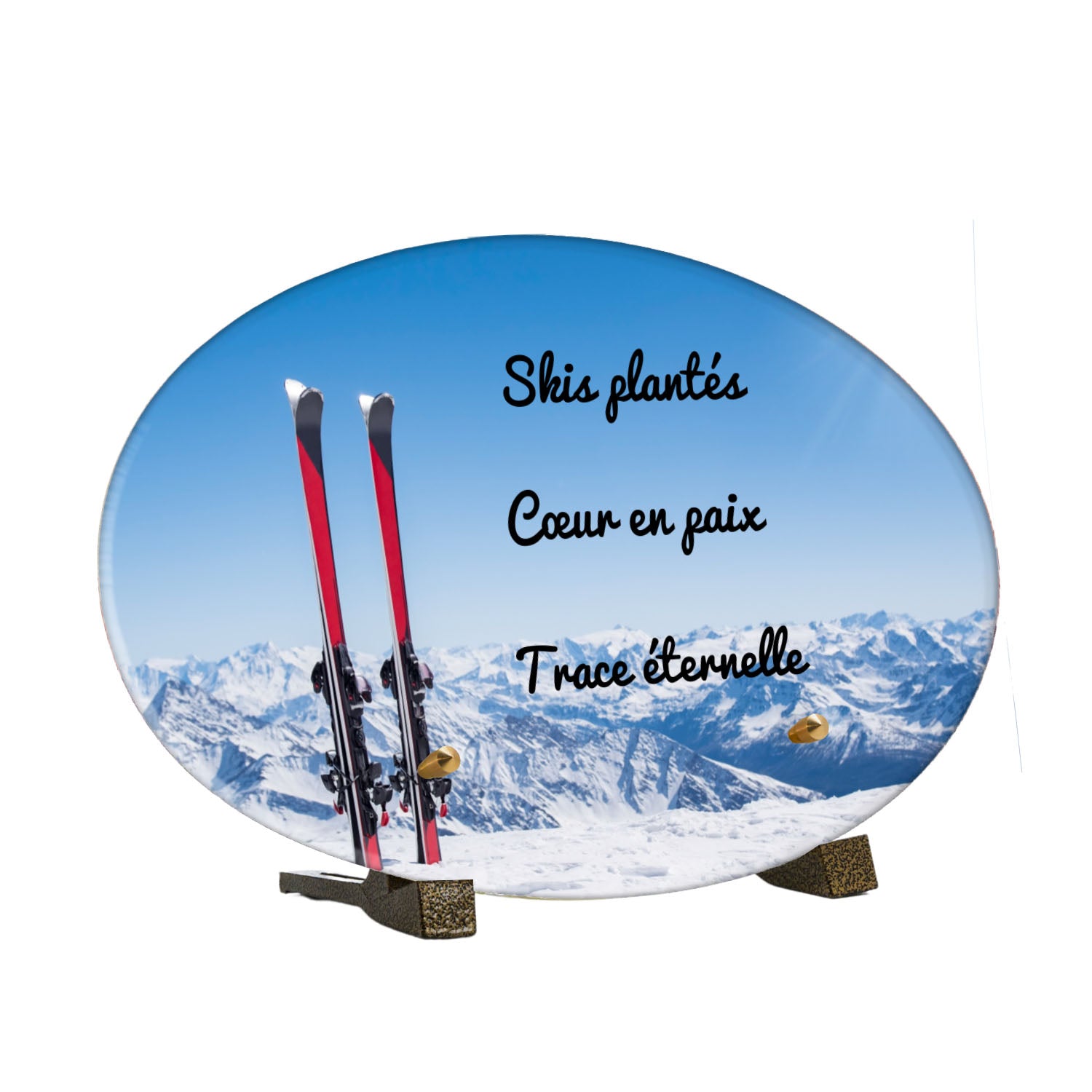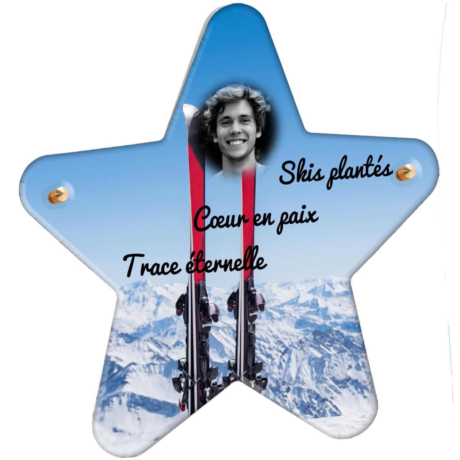 Cette plaque funéraire personnalisée met en scène une paire de ski sur la piste, idéale pour honorer la mémoire d’un amateur de sports d’hiver avec élégance. Fabriquée à partir de matériaux haut de gamme, cette plaque mortuaire allie esthétique et robustesse. Le choix du plexiglas confère à cette plaque funéraire moderne une finition lumineuse et une excellente résistance aux intempéries pour un hommage durable.