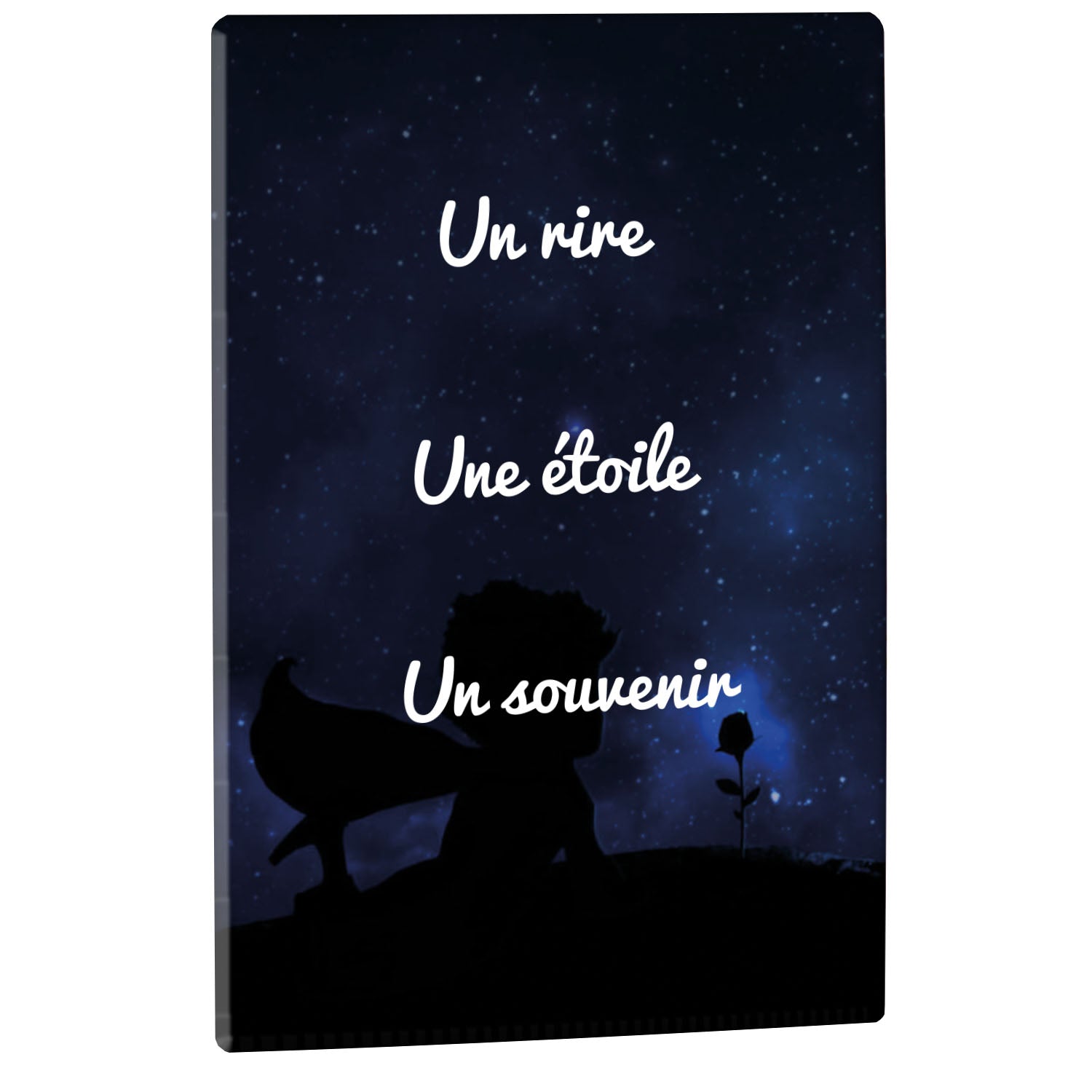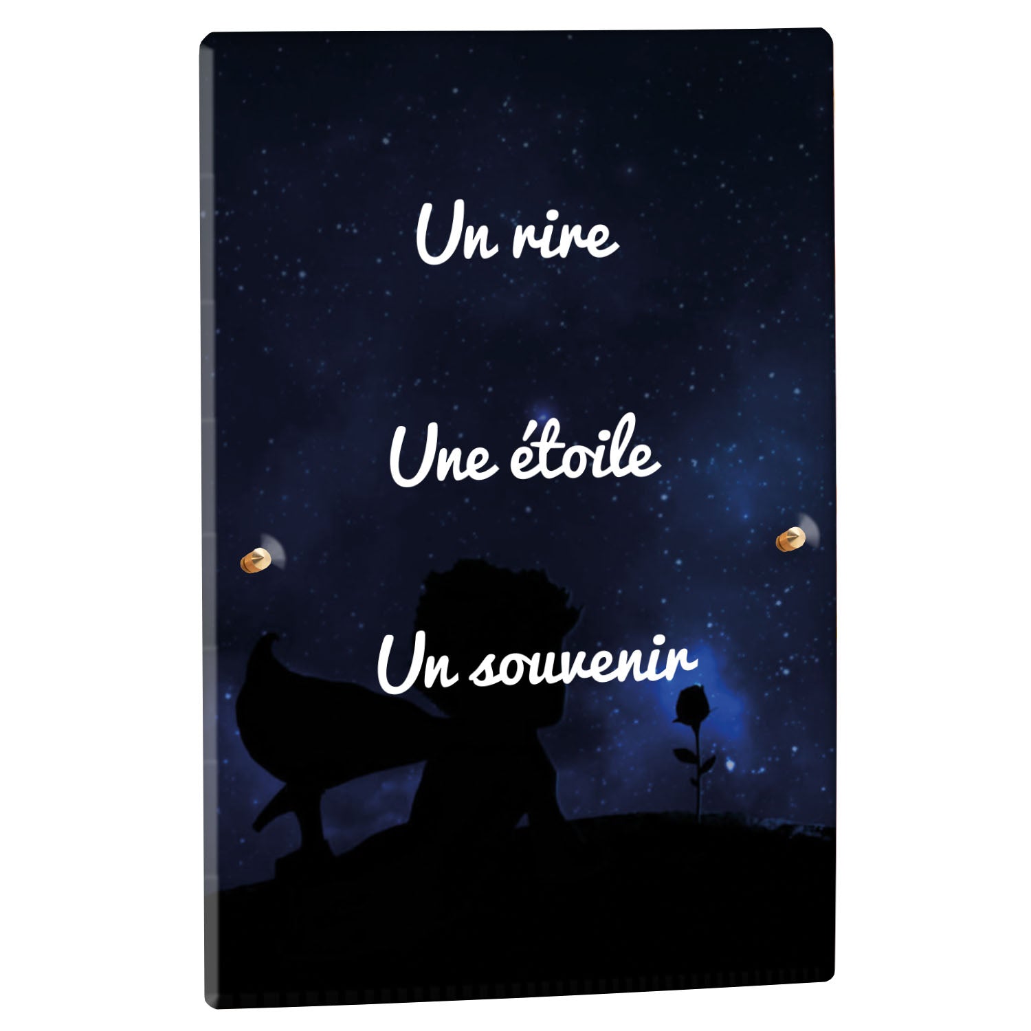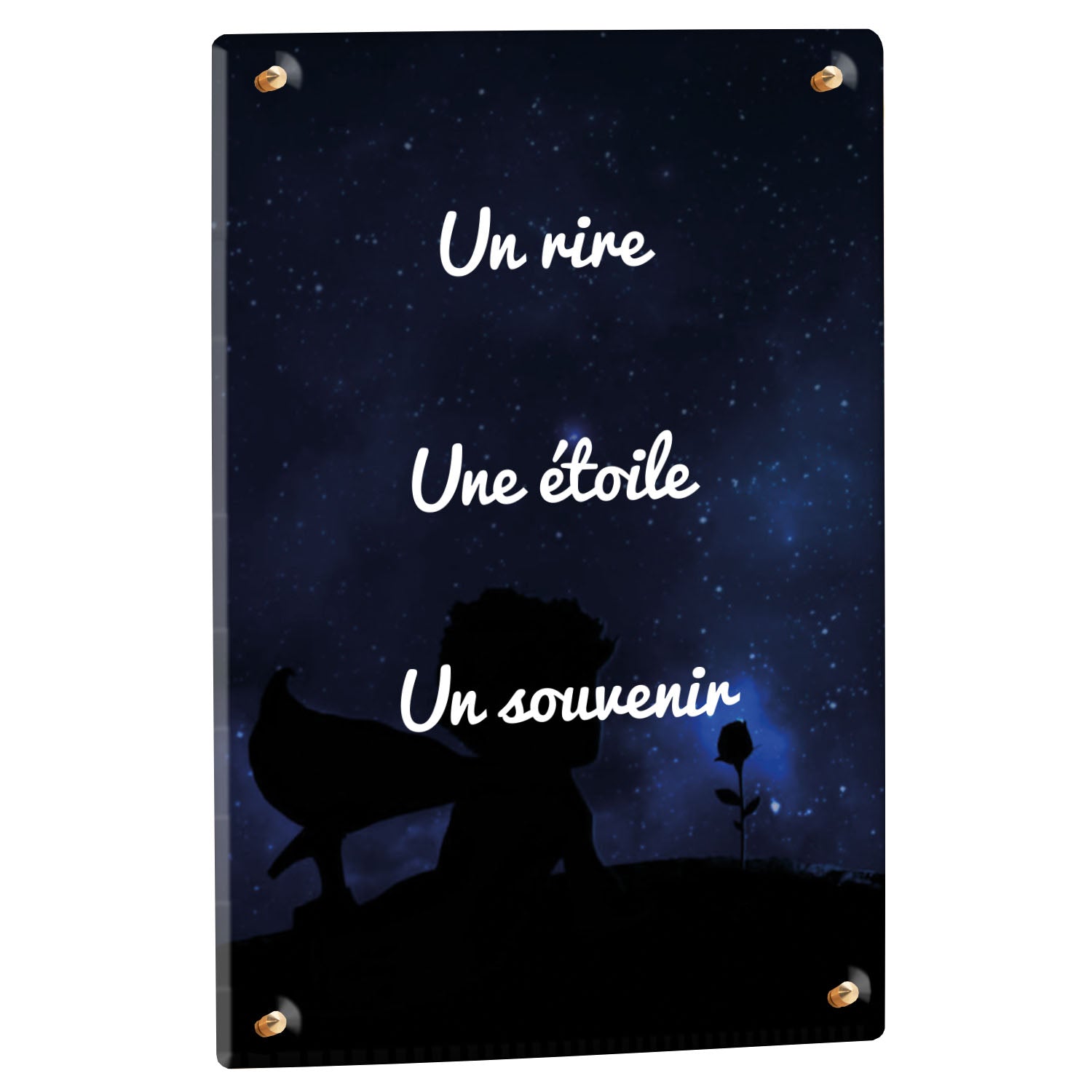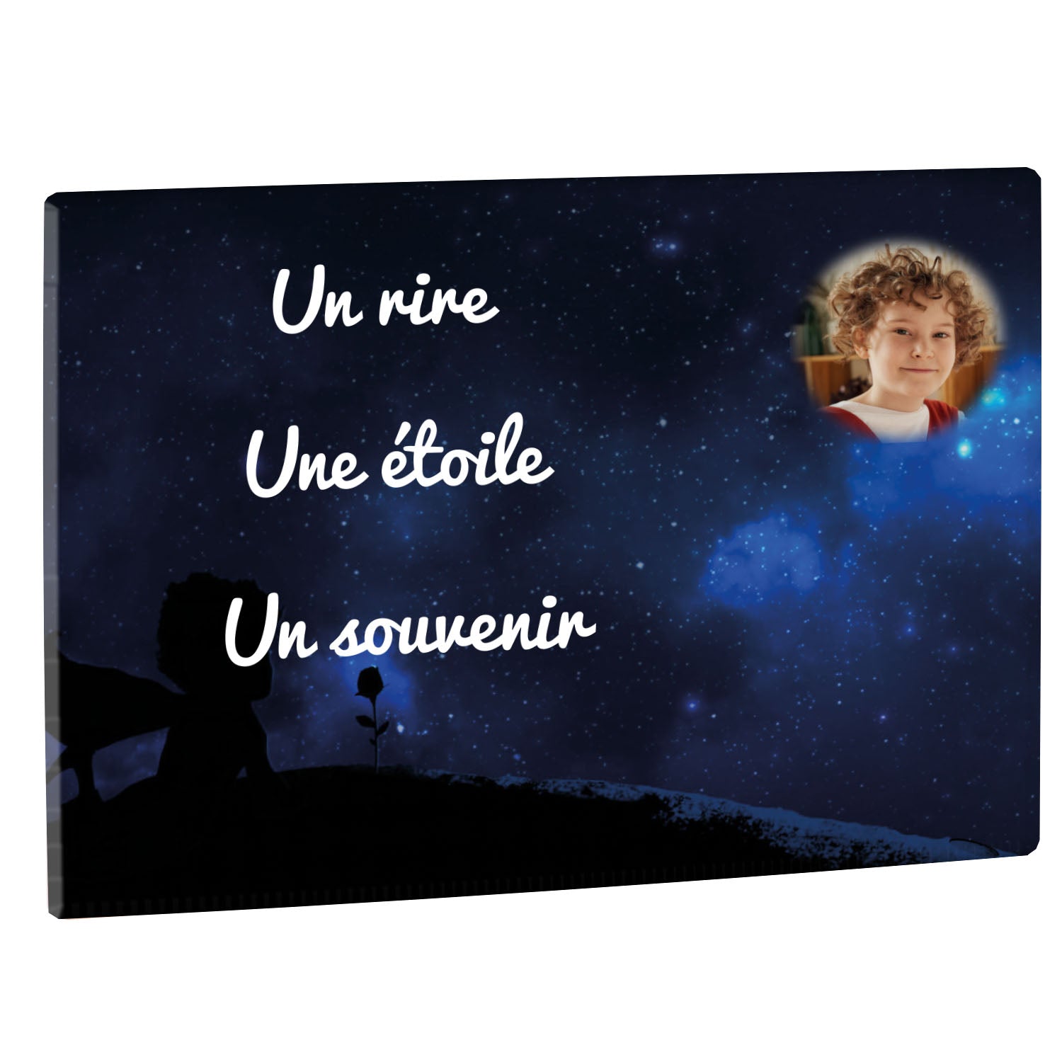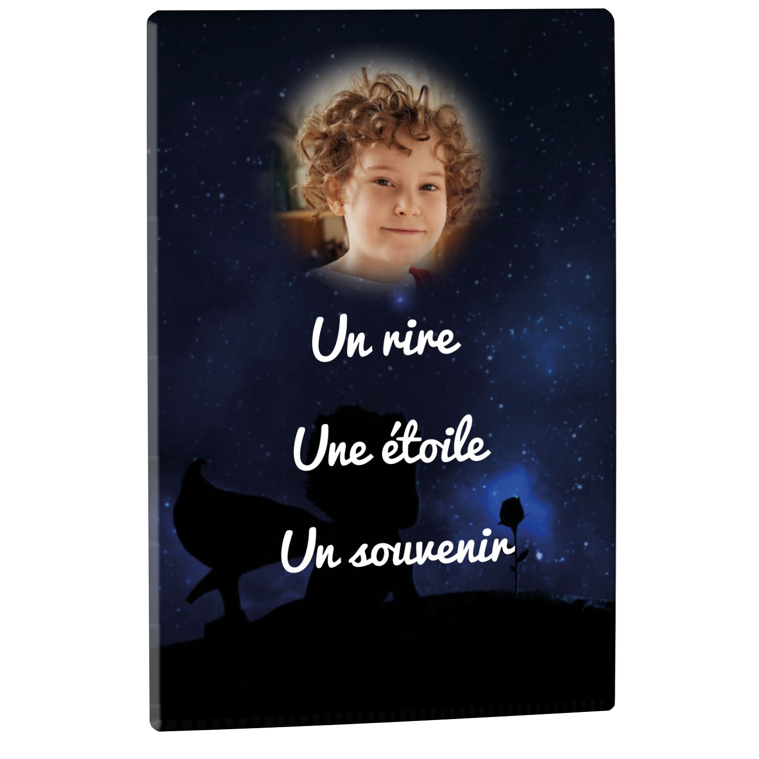 Cette plaque funéraire personnalisée illustre le Petit Prince contemplant un ciel étoilé, offrant un hommage poétique et délicat. Réalisée en matériaux de qualité, cette plaque mortuaire allie design raffiné et modernité grâce à sa composition en plexiglas. Son style contemporain en fait une plaque funéraire moderne, parfaite pour célébrer la mémoire avec sensibilité et élégance. Chaque plaque funéraire est créée sur mesure, assurant une personnalisation fidèle qui rend hommage à l’unicité du défunt. Sa durabilité approuvée garantit une longue conservation face aux éléments, faisant de cette plaque un souvenir pérenne et respectueux.