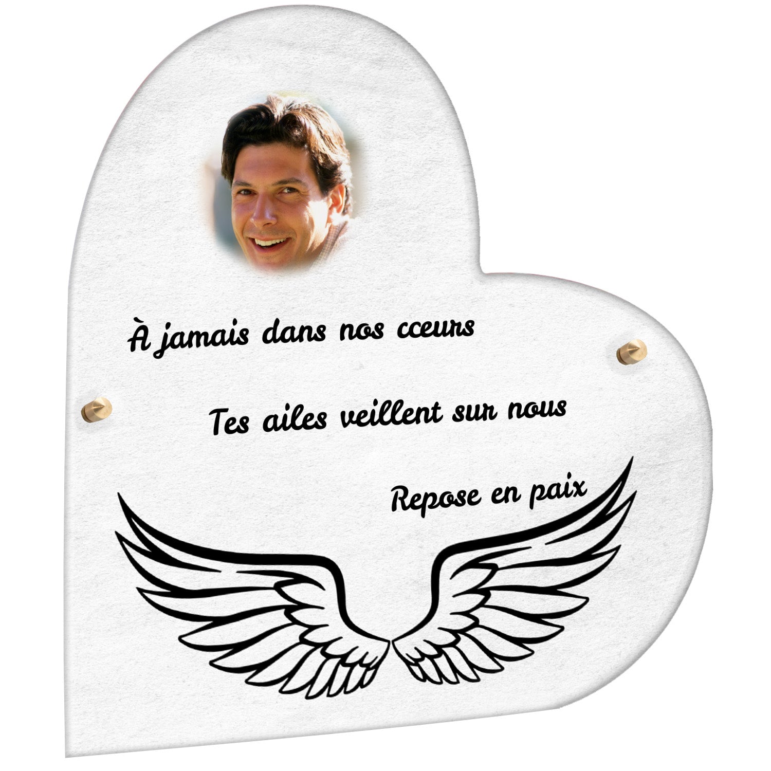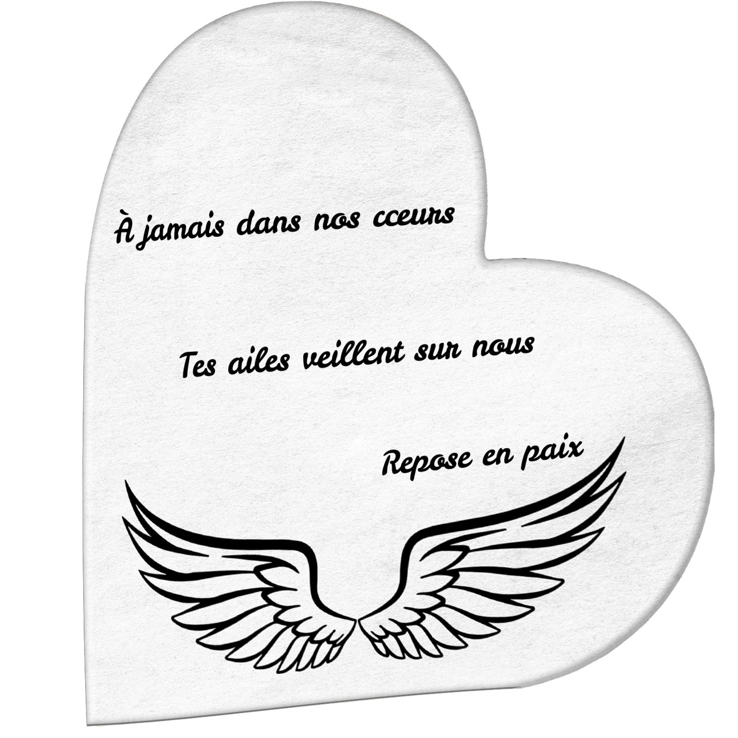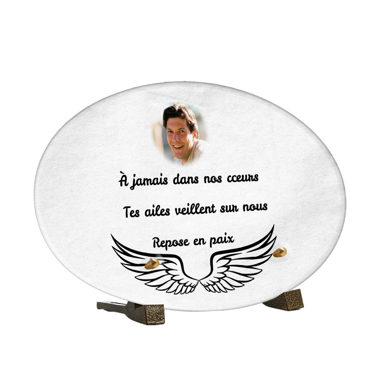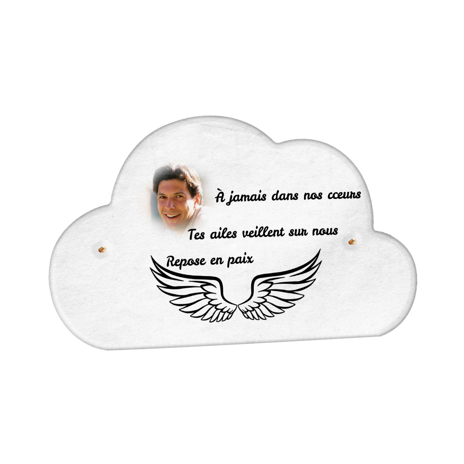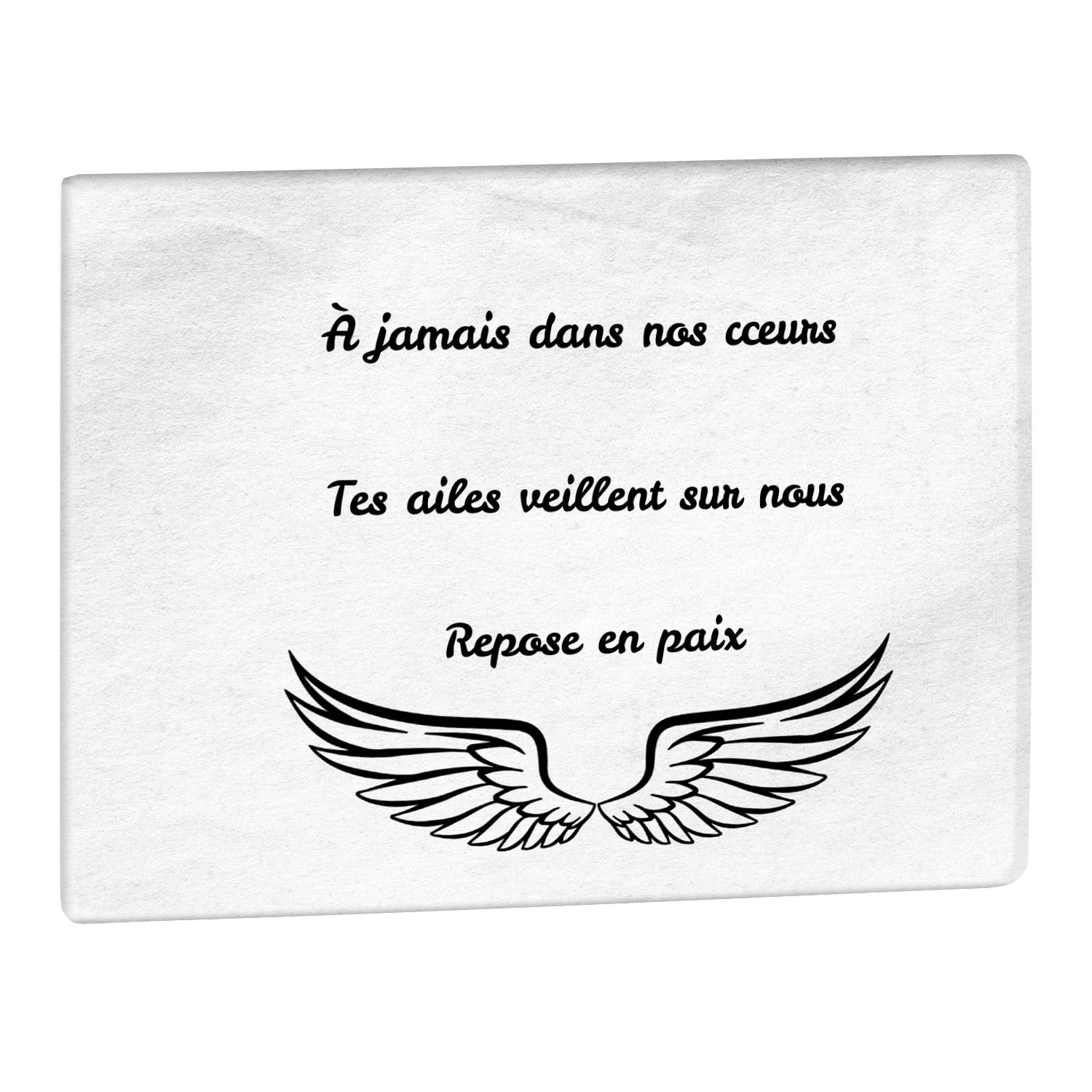 Notre plaque funéraire personnalisée « Ailes d'ange » allie design délicat et modernité. Cette plaque mortuaire, réalisée en plexiglas, présente une gravure élégante d'ailes d'ange qui symbolise la protection et la paix. Sa finition soignée en fait une plaque funéraire moderne, parfaite pour rendre hommage avec dignité.