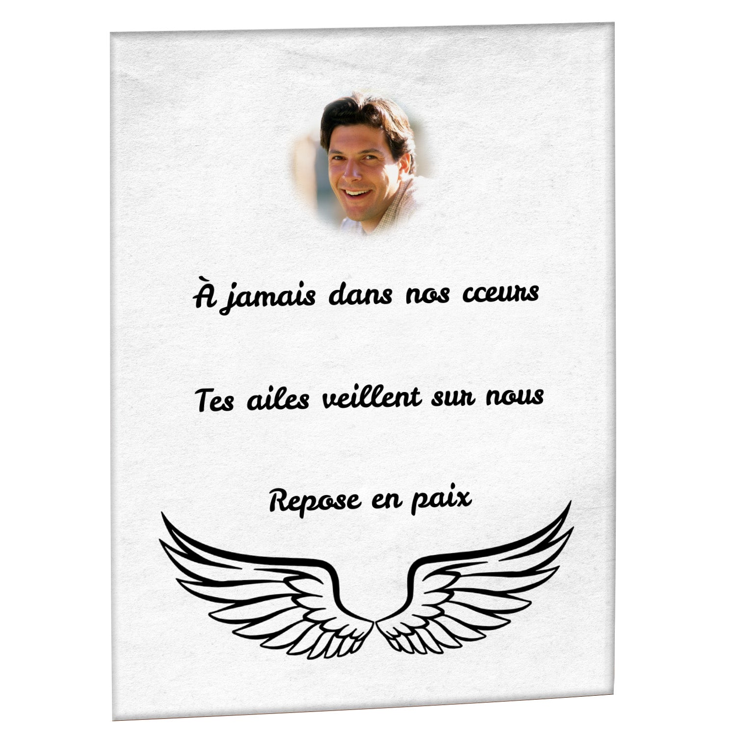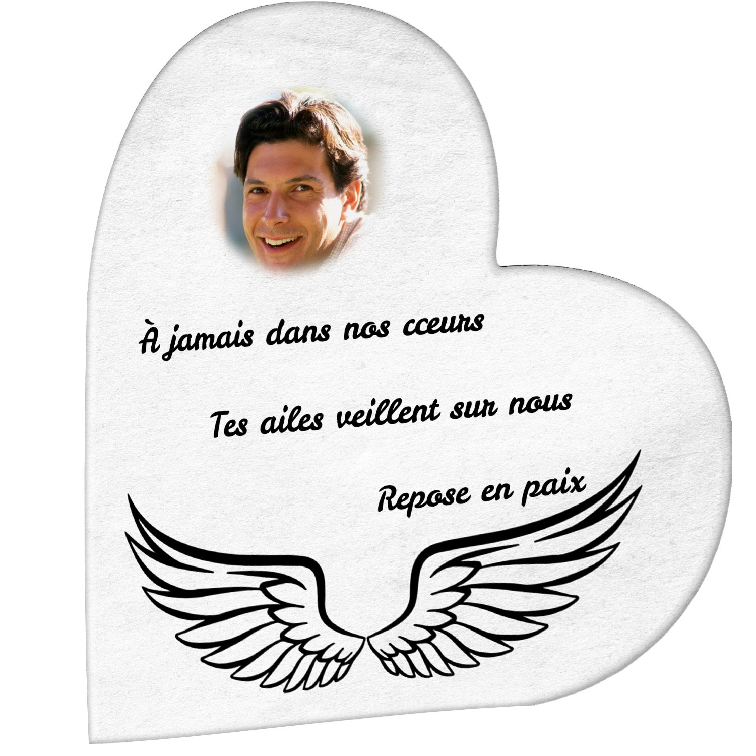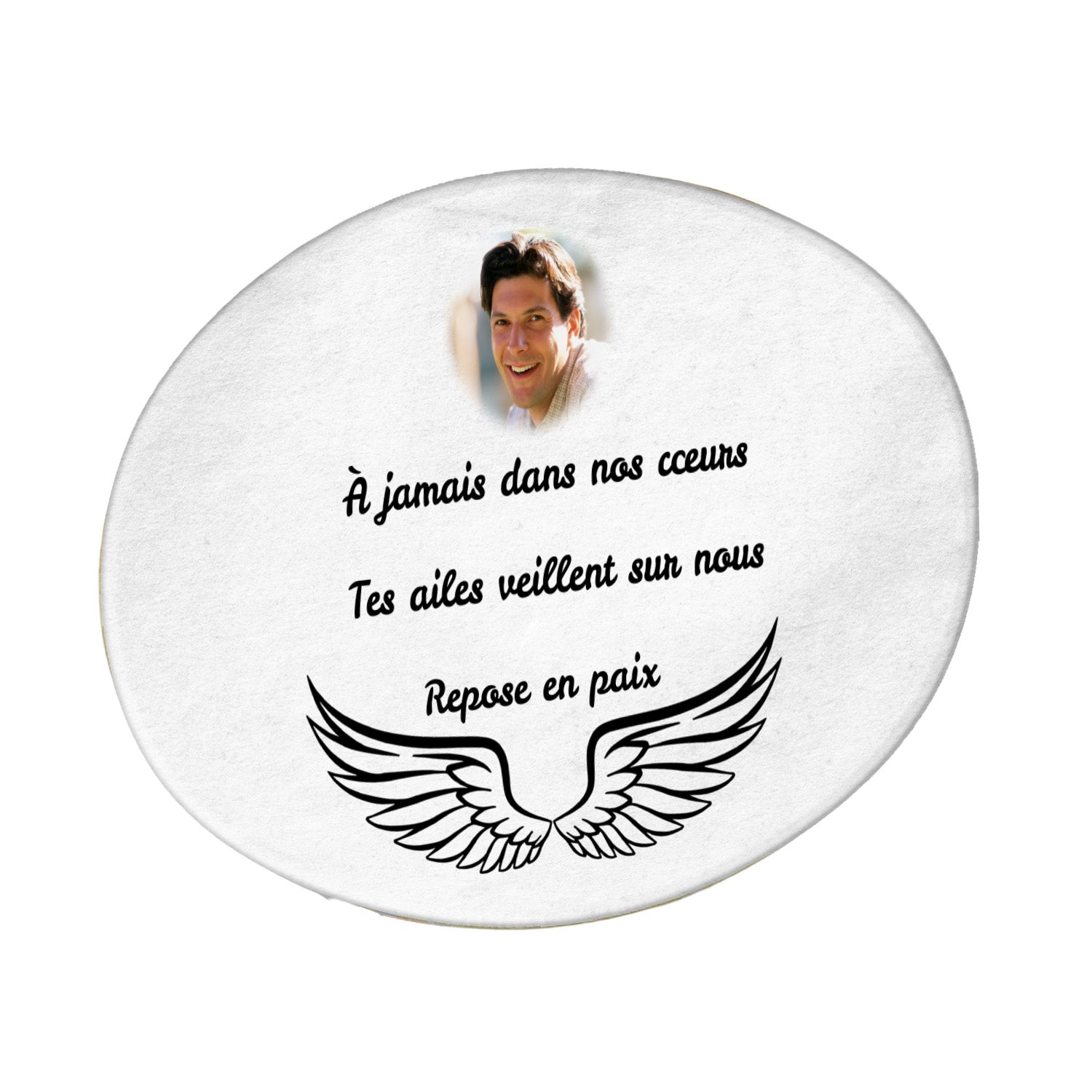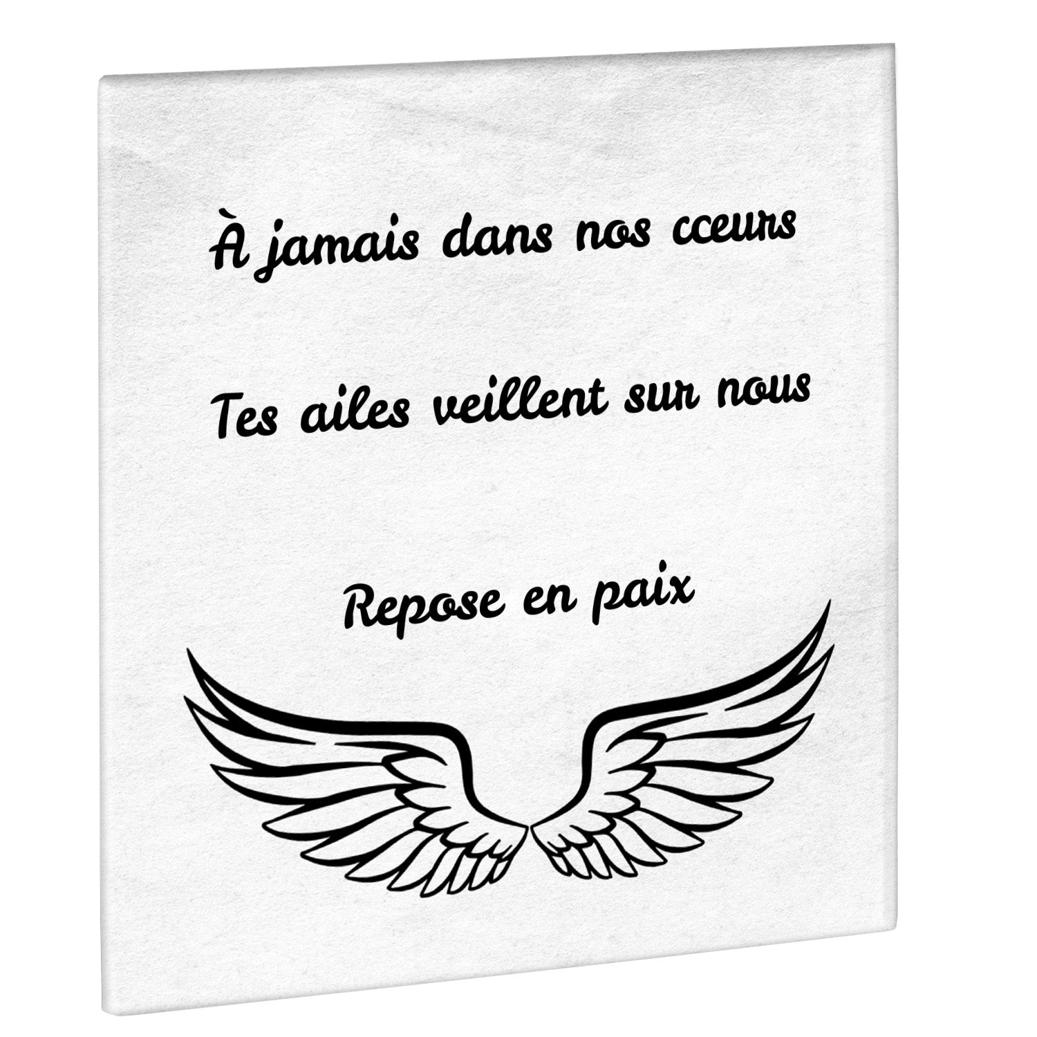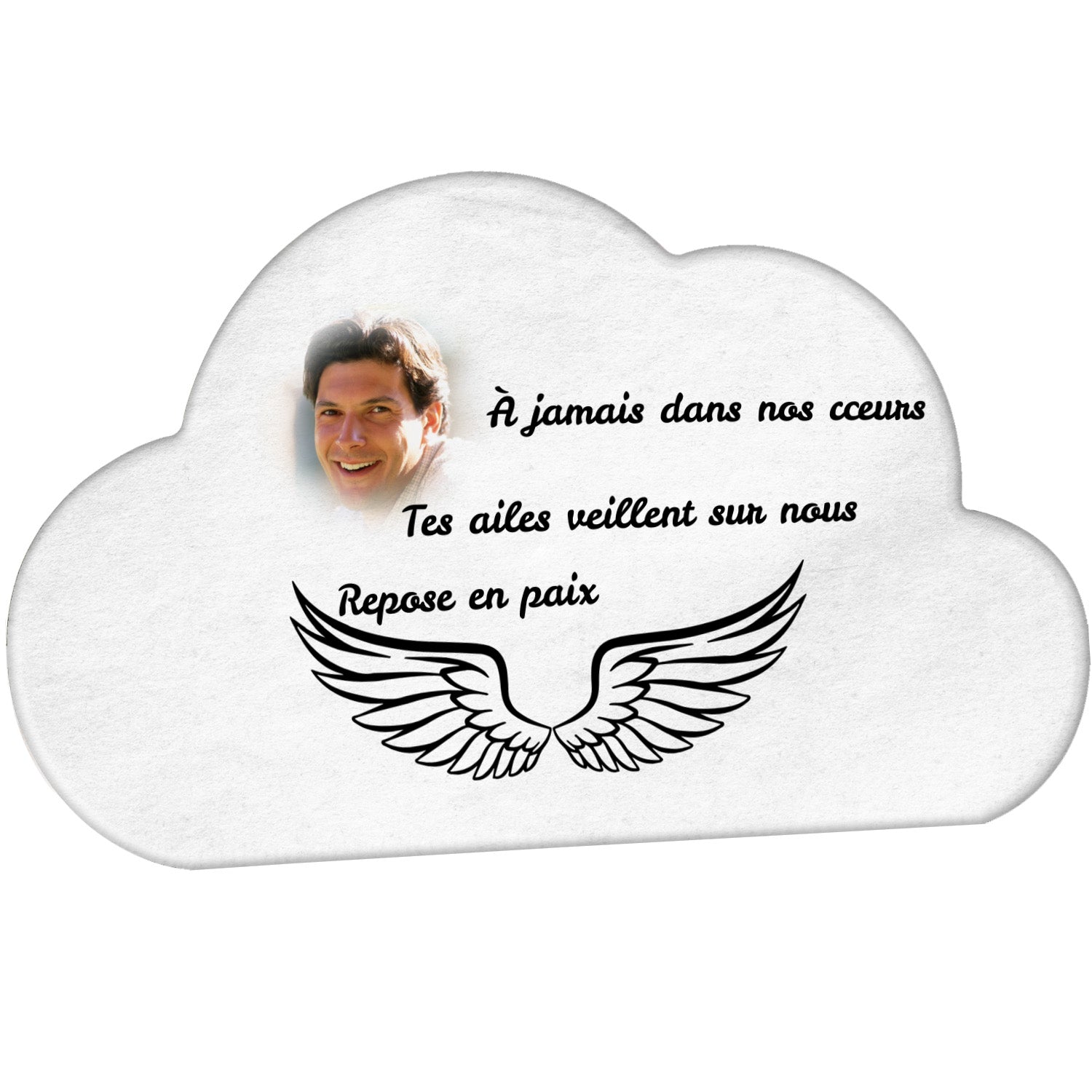 Notre plaque funéraire personnalisée « Ailes d'ange » allie design délicat et modernité. Cette plaque mortuaire, réalisée en plexiglas, présente une gravure élégante d'ailes d'ange qui symbolise la protection et la paix. Sa finition soignée en fait une plaque funéraire moderne, parfaite pour rendre hommage avec dignité.