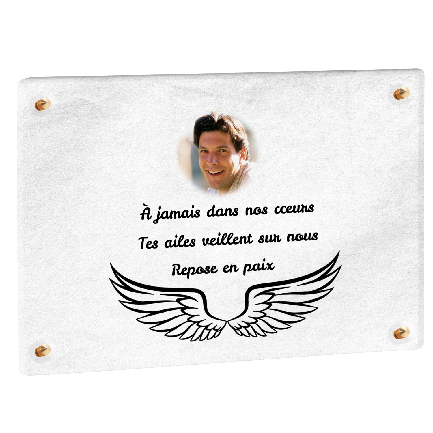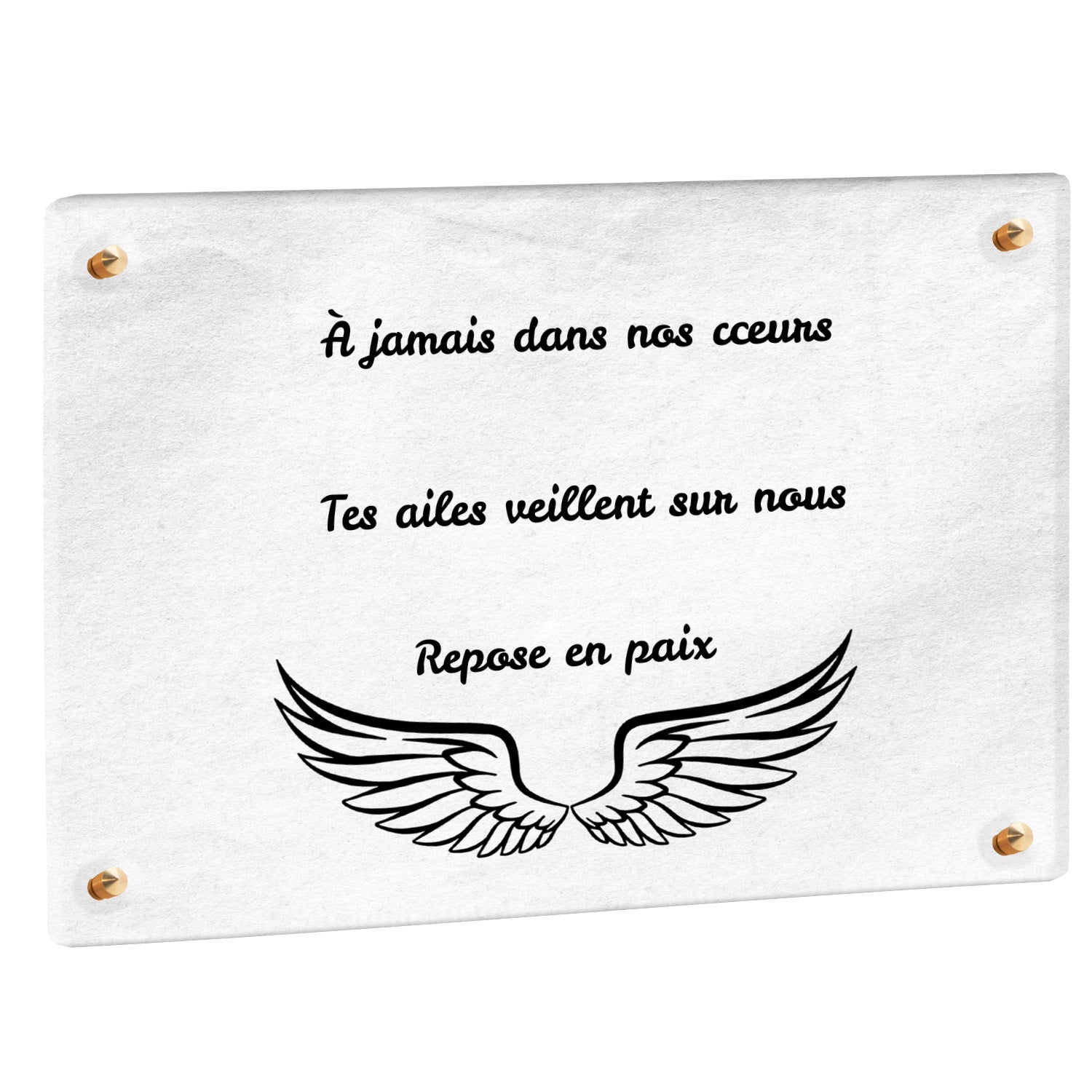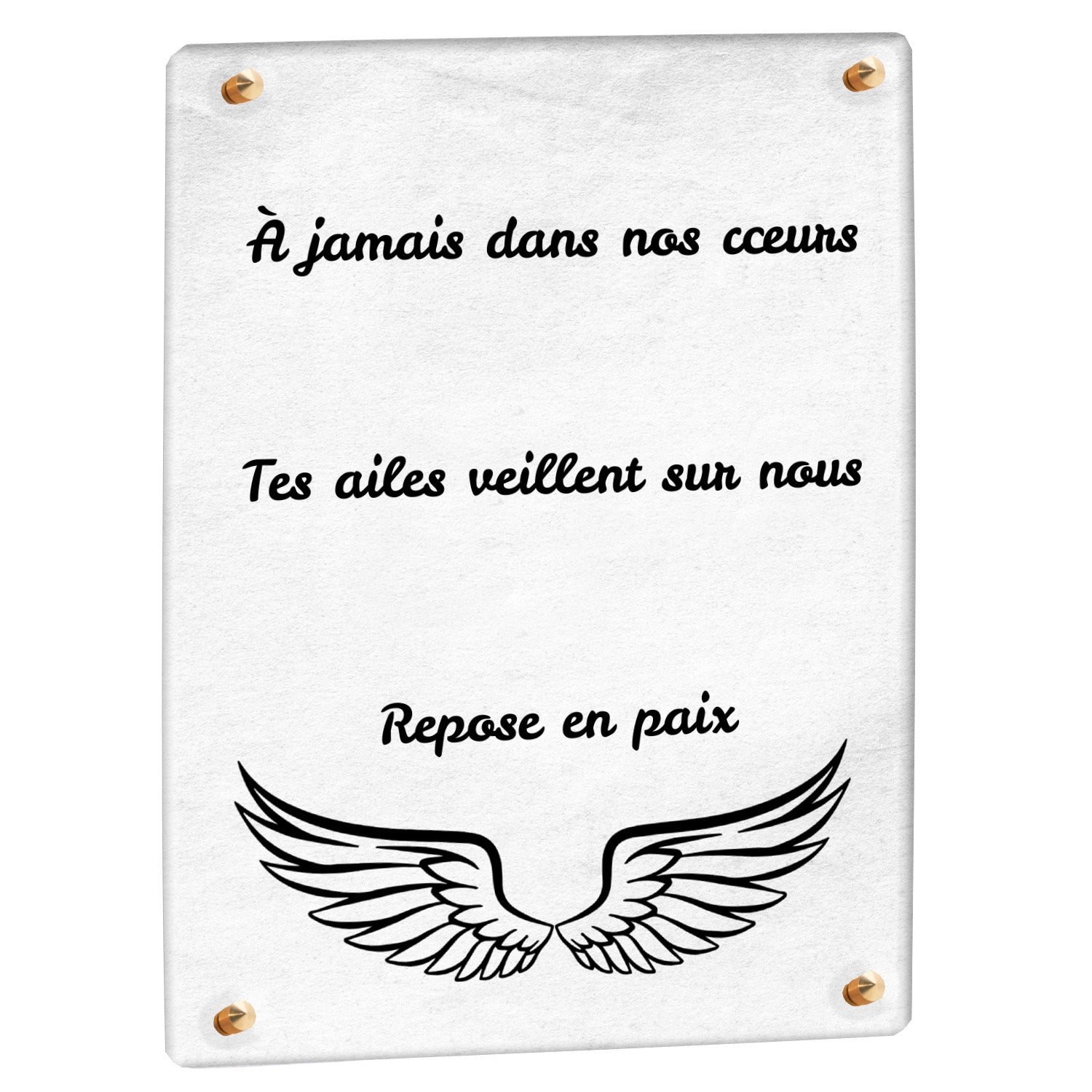 Profitez d'une personnalisation sur mesure pour inscrire un texte, des dates ou des symboles significatifs, créant ainsi un hommage unique. Sa durabilité approuvée garantit une excellente résistance aux intempéries, assurant que votre plaque funéraire plexiglas reste belle au fil du temps.