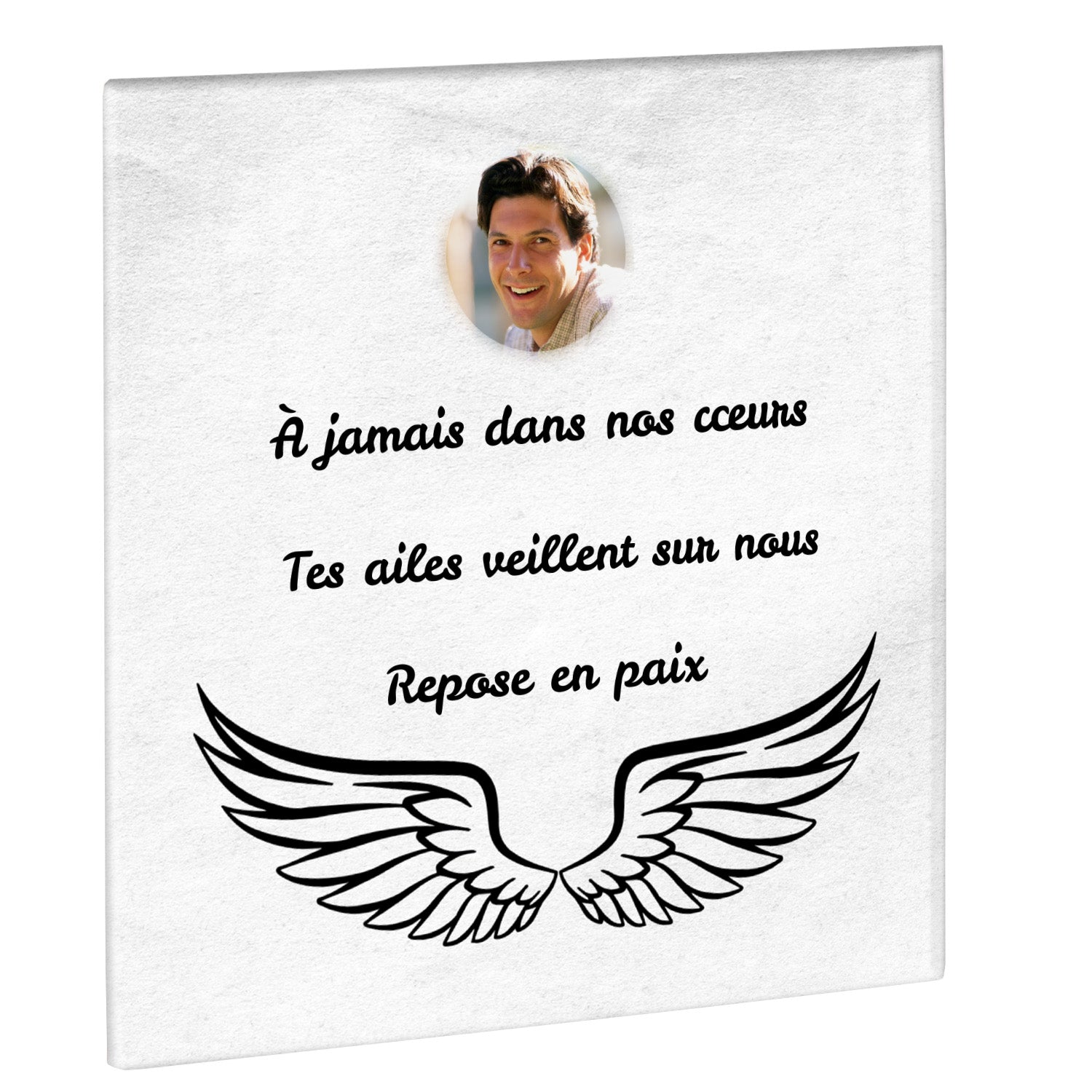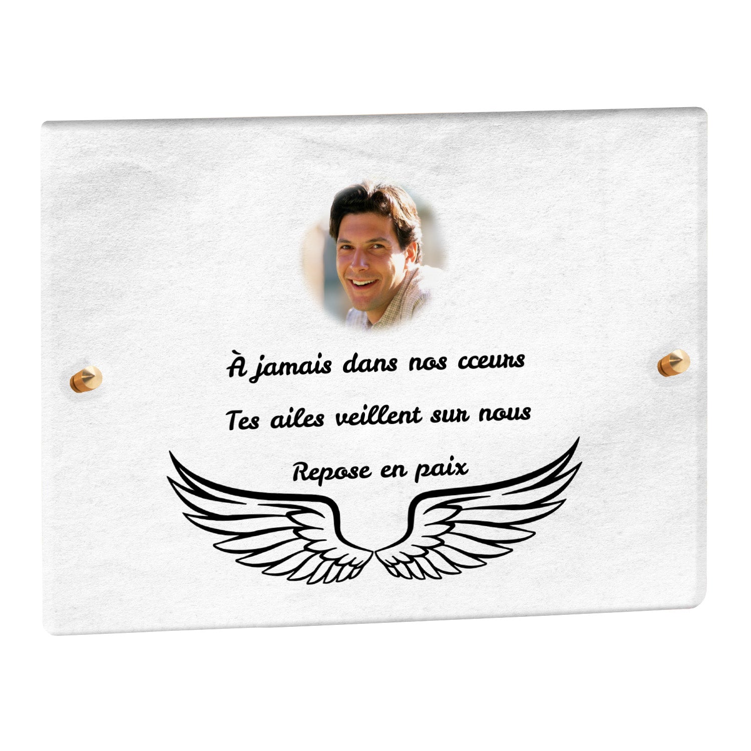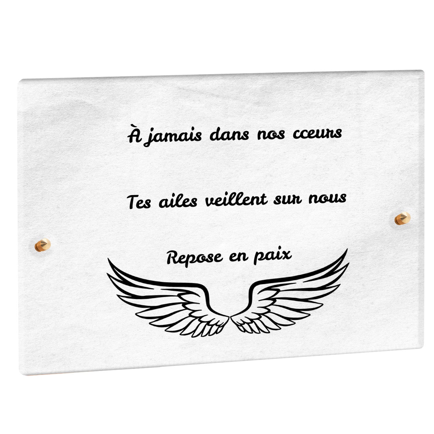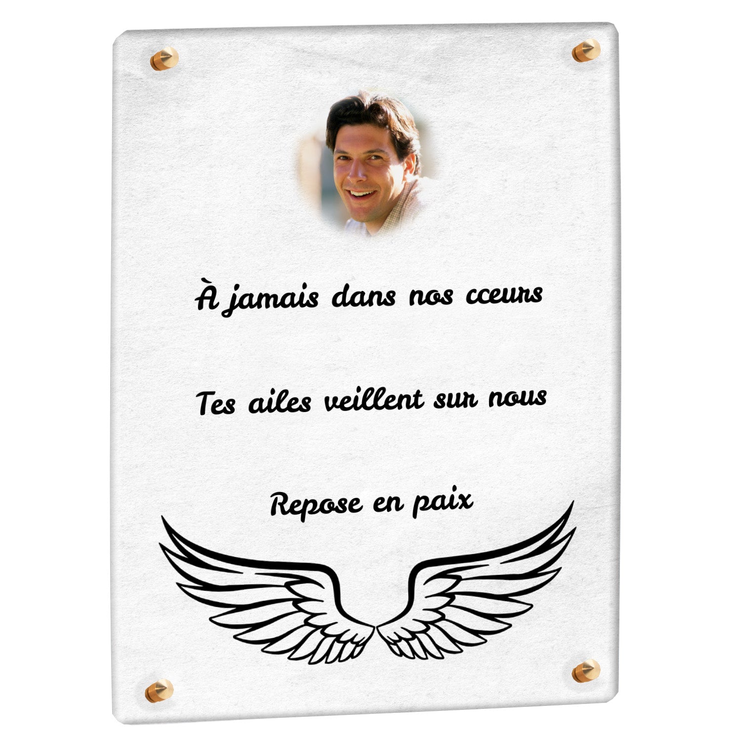 Profitez d'une personnalisation sur mesure pour inscrire un texte, des dates ou des symboles significatifs, créant ainsi un hommage unique. Sa durabilité approuvée garantit une excellente résistance aux intempéries, assurant que votre plaque funéraire plexiglas reste belle au fil du temps.