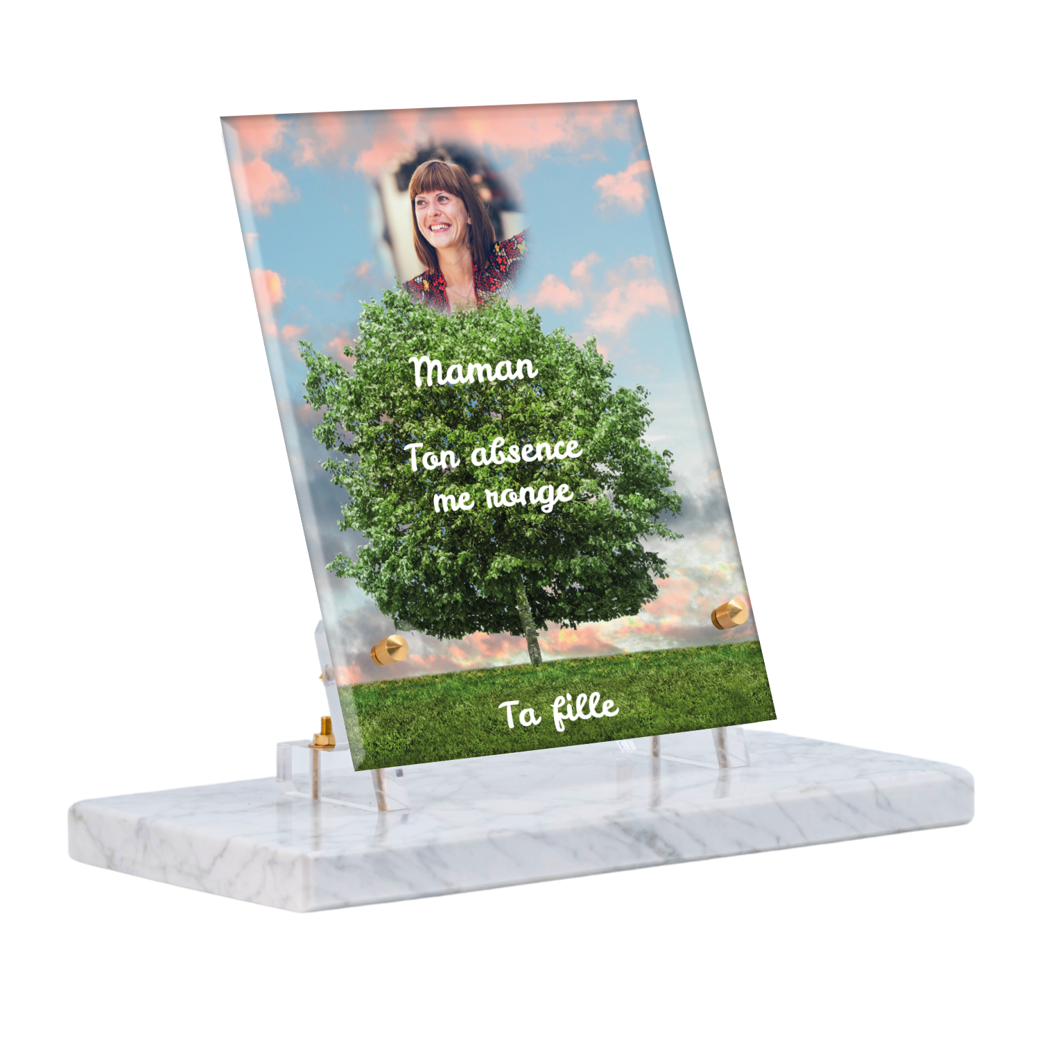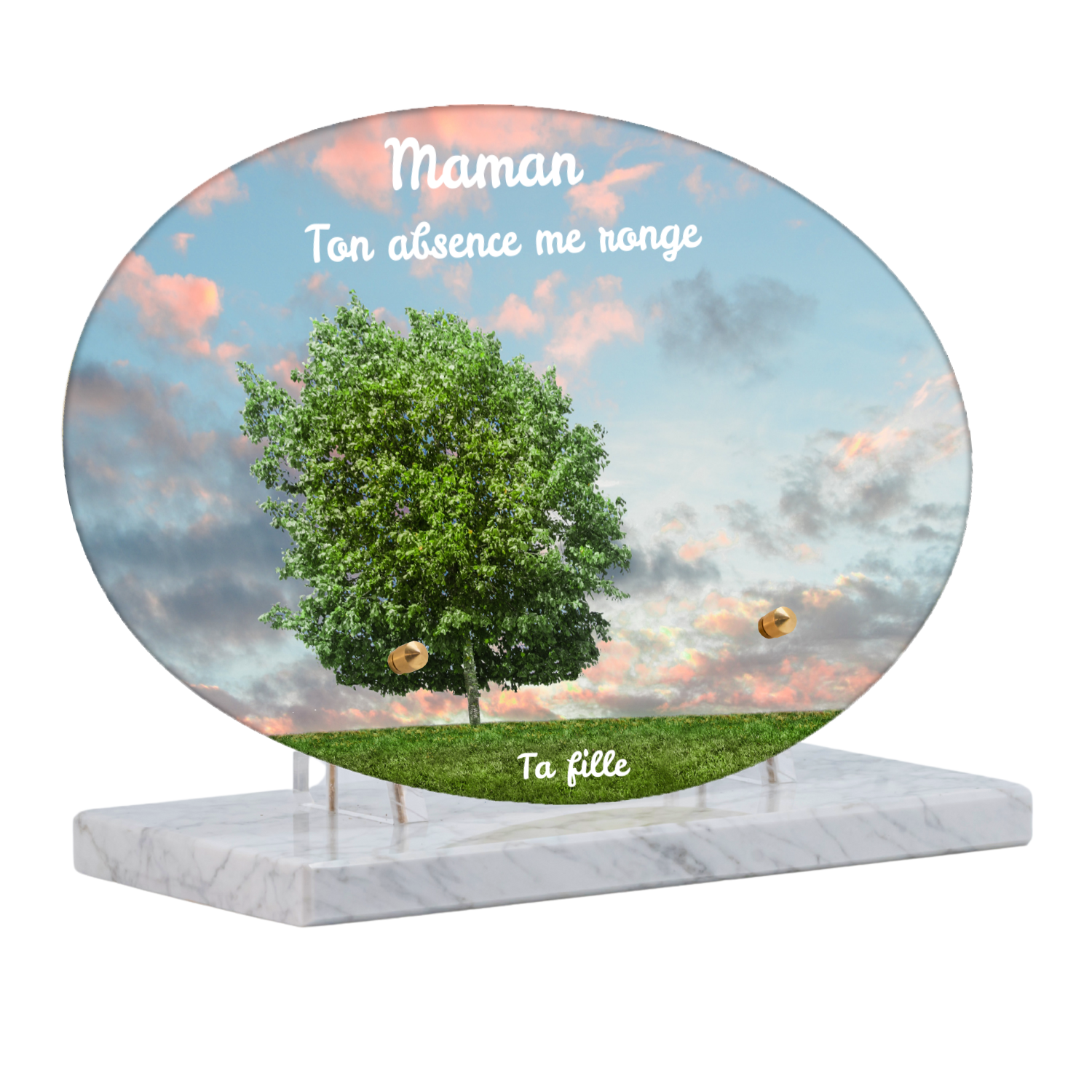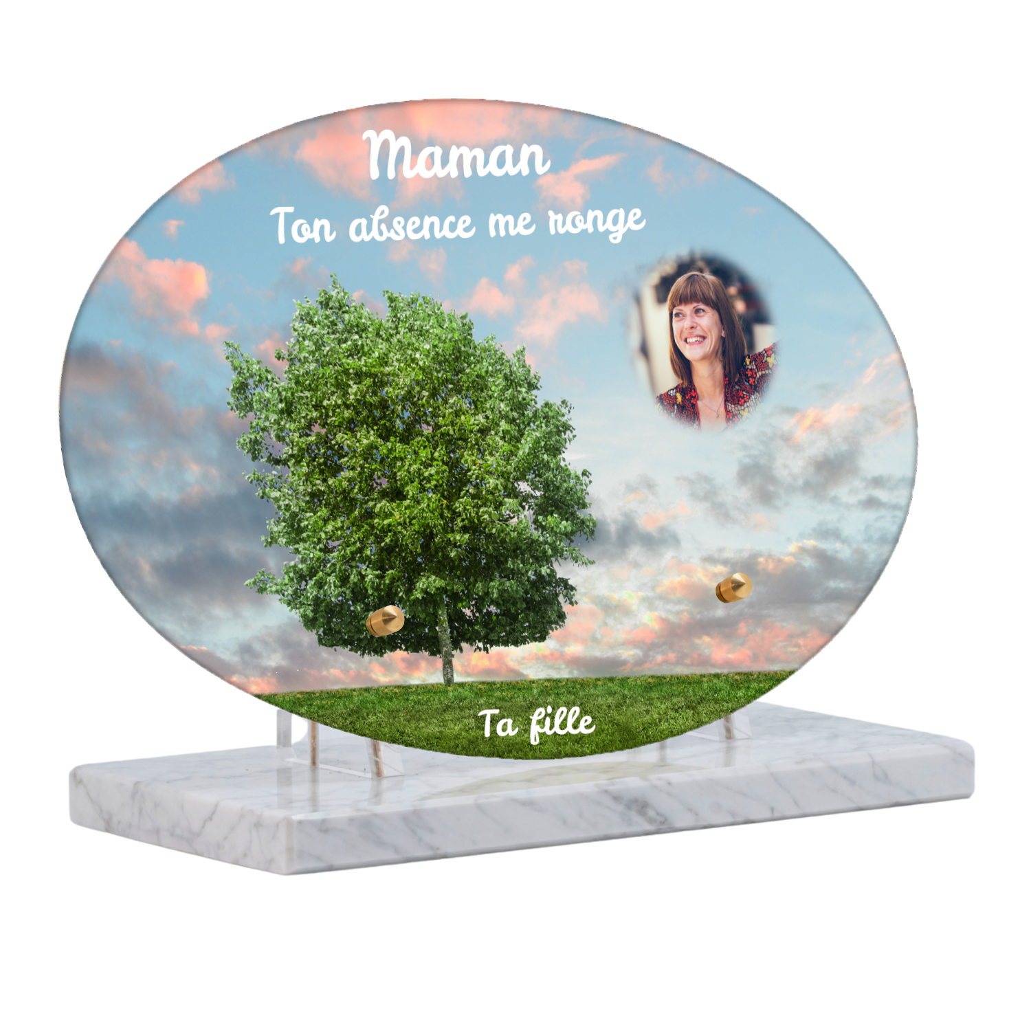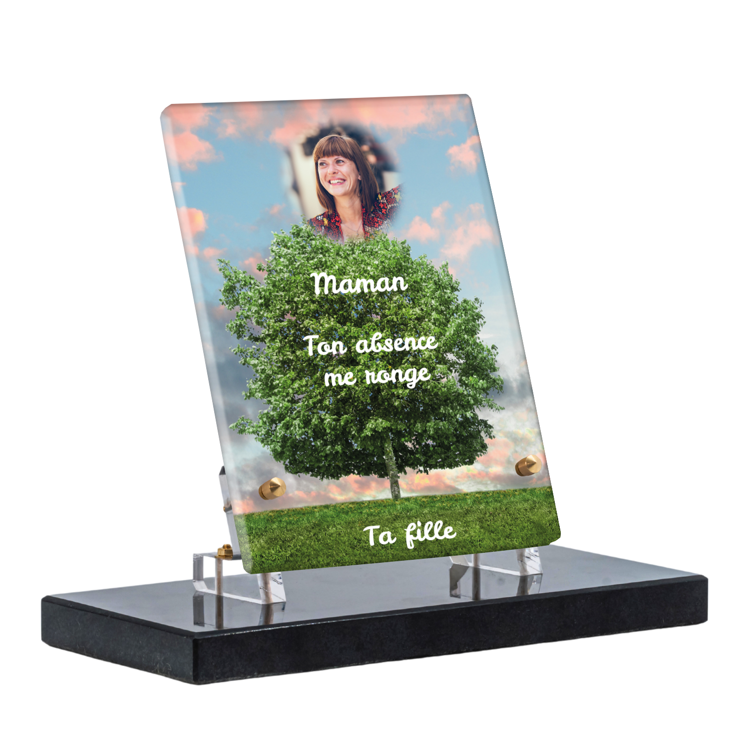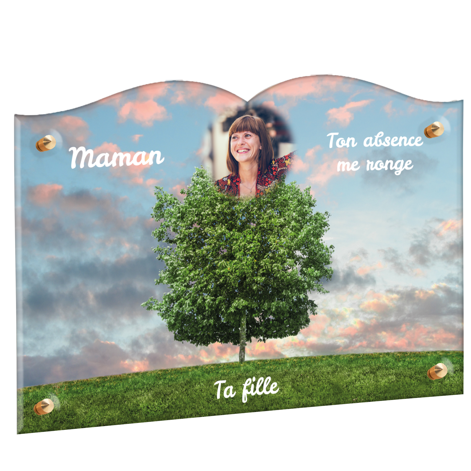 Découvrez cette plaque funéraire personnalisée représentant un délicat arbre de vie, symbole d’éternité et de sérénité. Conçue pour honorer avec respect la mémoire de vos proches, cette plaque mortuaire moderne allie élégance et sens profond. Sa finition en plexiglas donne un rendu à la fois lumineux et résistant, idéal pour une plaque funéraire qui traverse le temps.