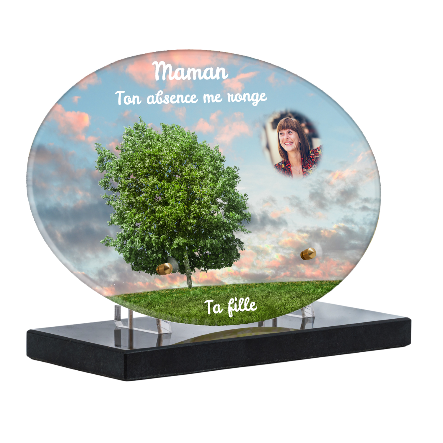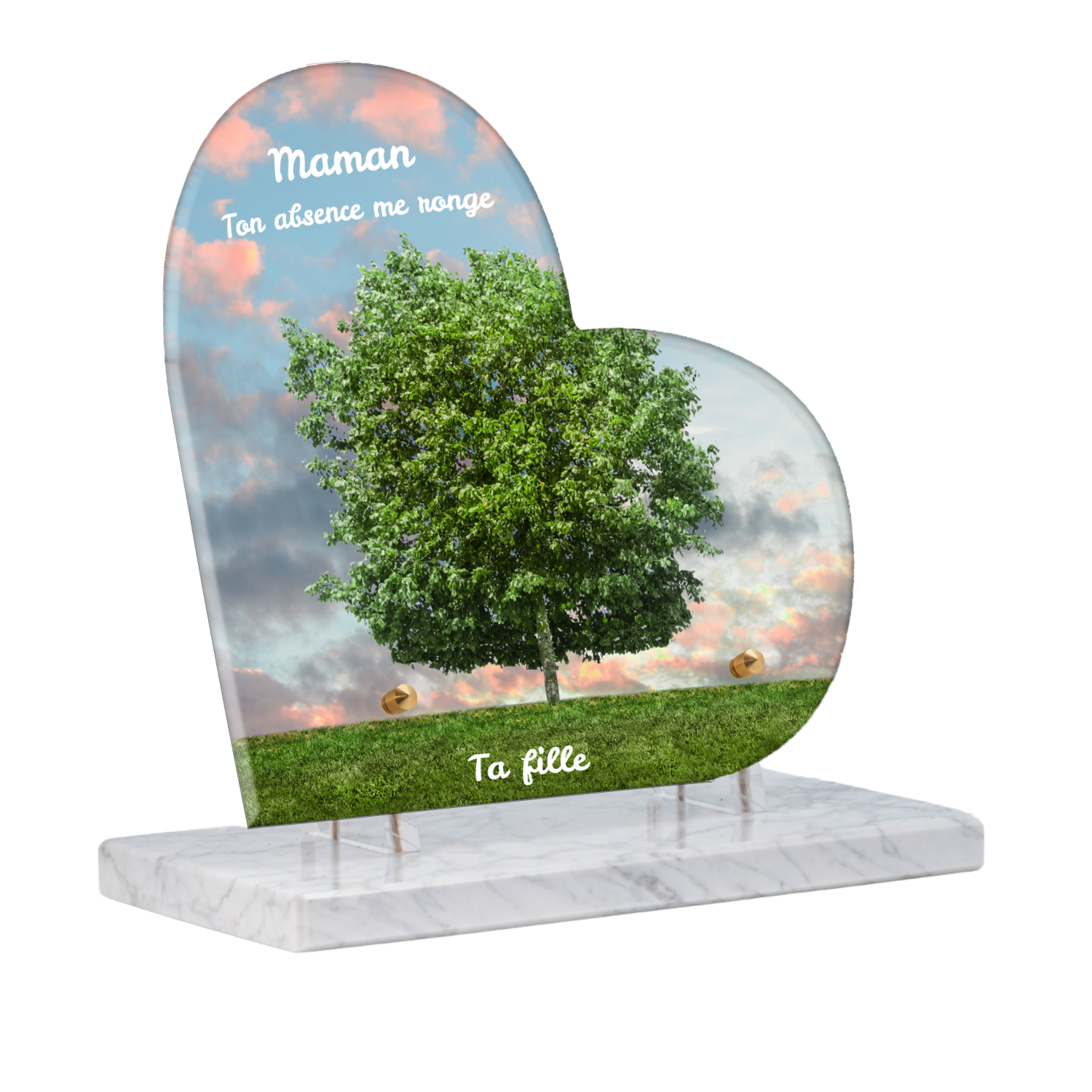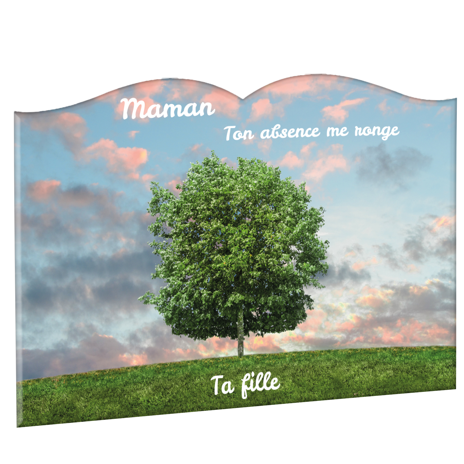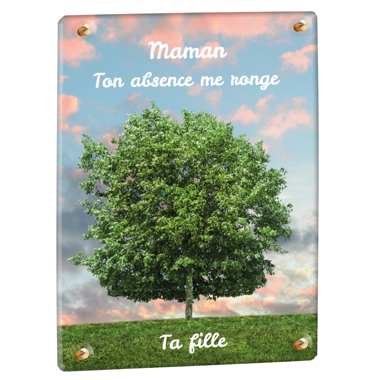 Découvrez cette plaque funéraire personnalisée représentant un délicat arbre de vie, symbole d’éternité et de sérénité. Conçue pour honorer avec respect la mémoire de vos proches, cette plaque mortuaire moderne allie élégance et sens profond. Sa finition en plexiglas donne un rendu à la fois lumineux et résistant, idéal pour une plaque funéraire qui traverse le temps.