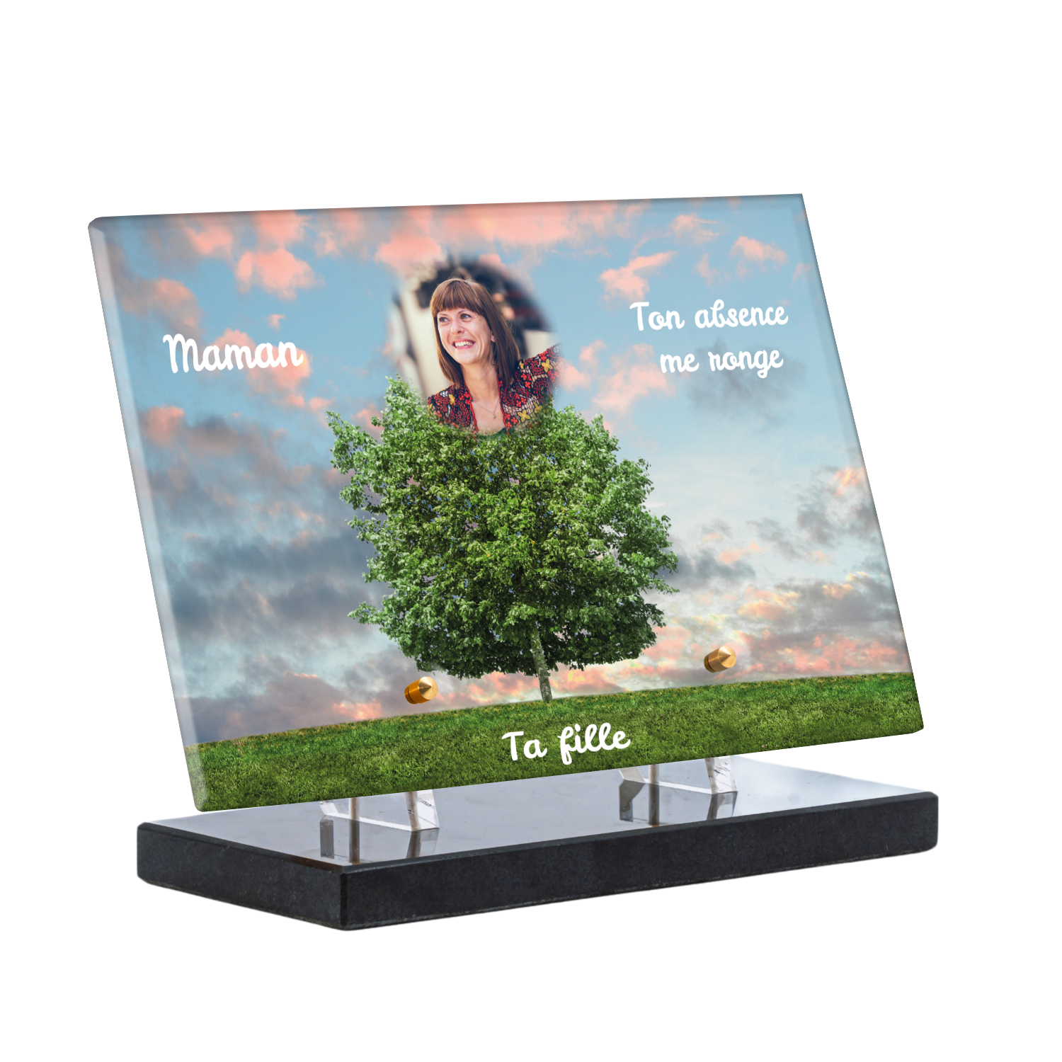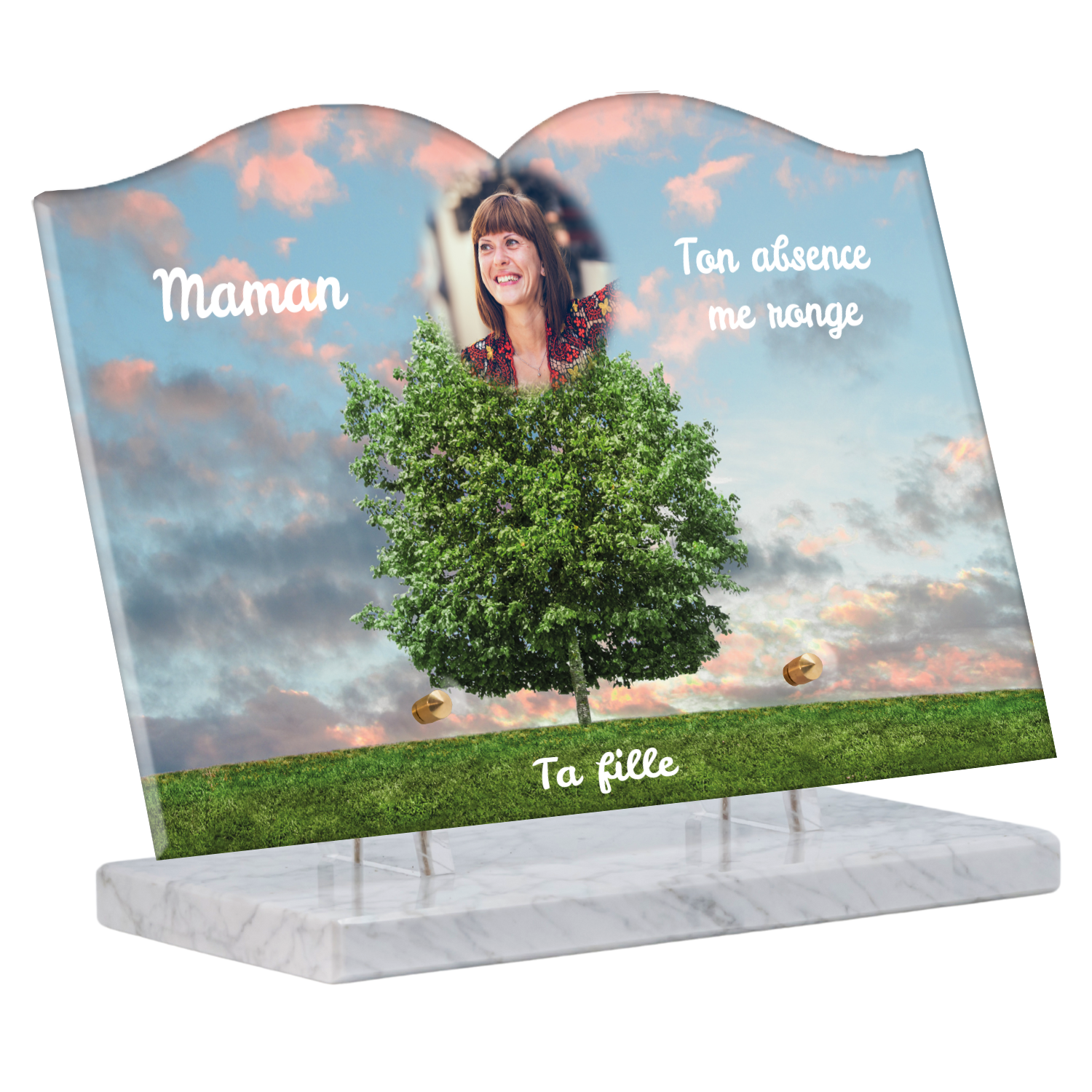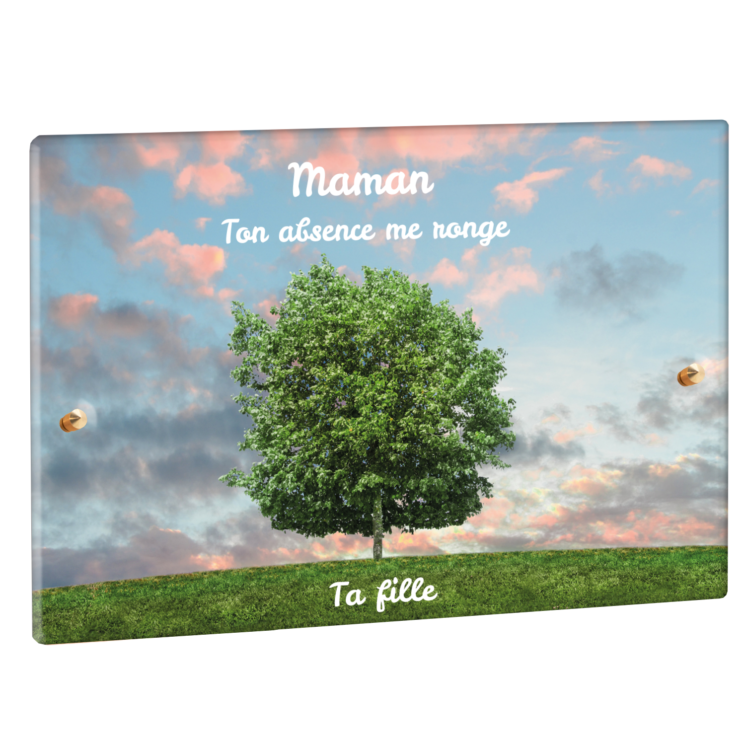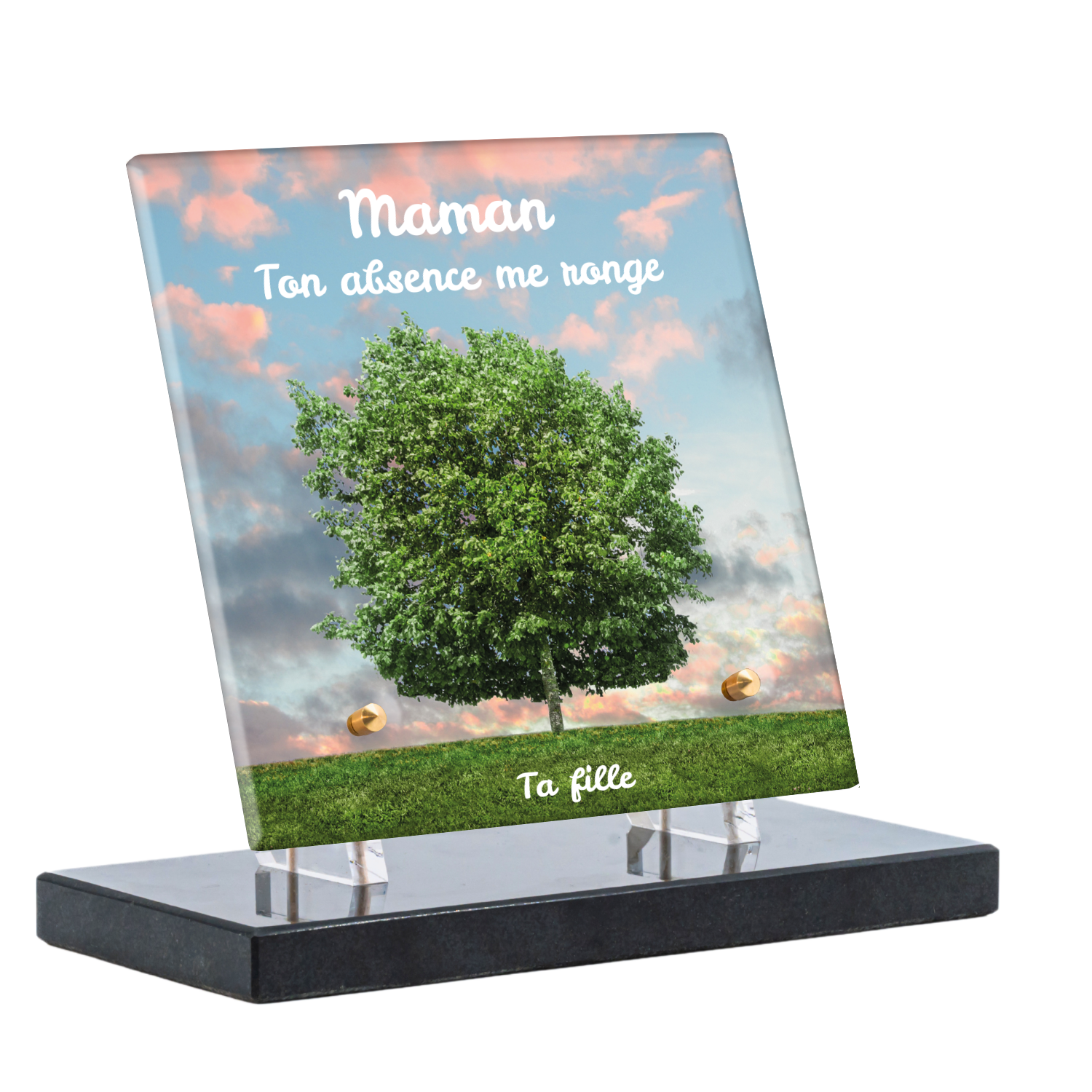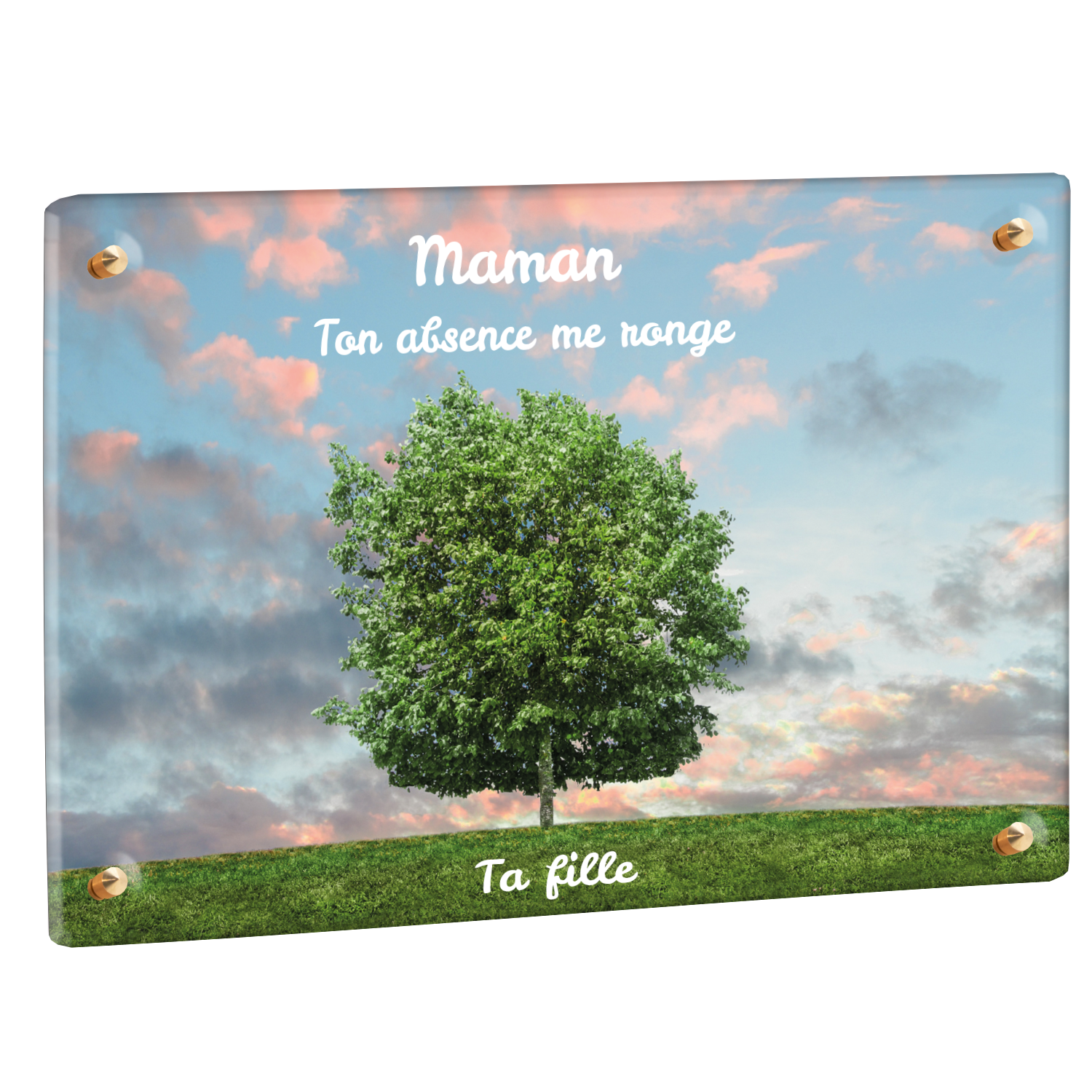 Découvrez cette plaque funéraire personnalisée représentant un délicat arbre de vie, symbole d’éternité et de sérénité. Conçue pour honorer avec respect la mémoire de vos proches, cette plaque mortuaire moderne allie élégance et sens profond. Sa finition en plexiglas donne un rendu à la fois lumineux et résistant, idéal pour une plaque funéraire qui traverse le temps.