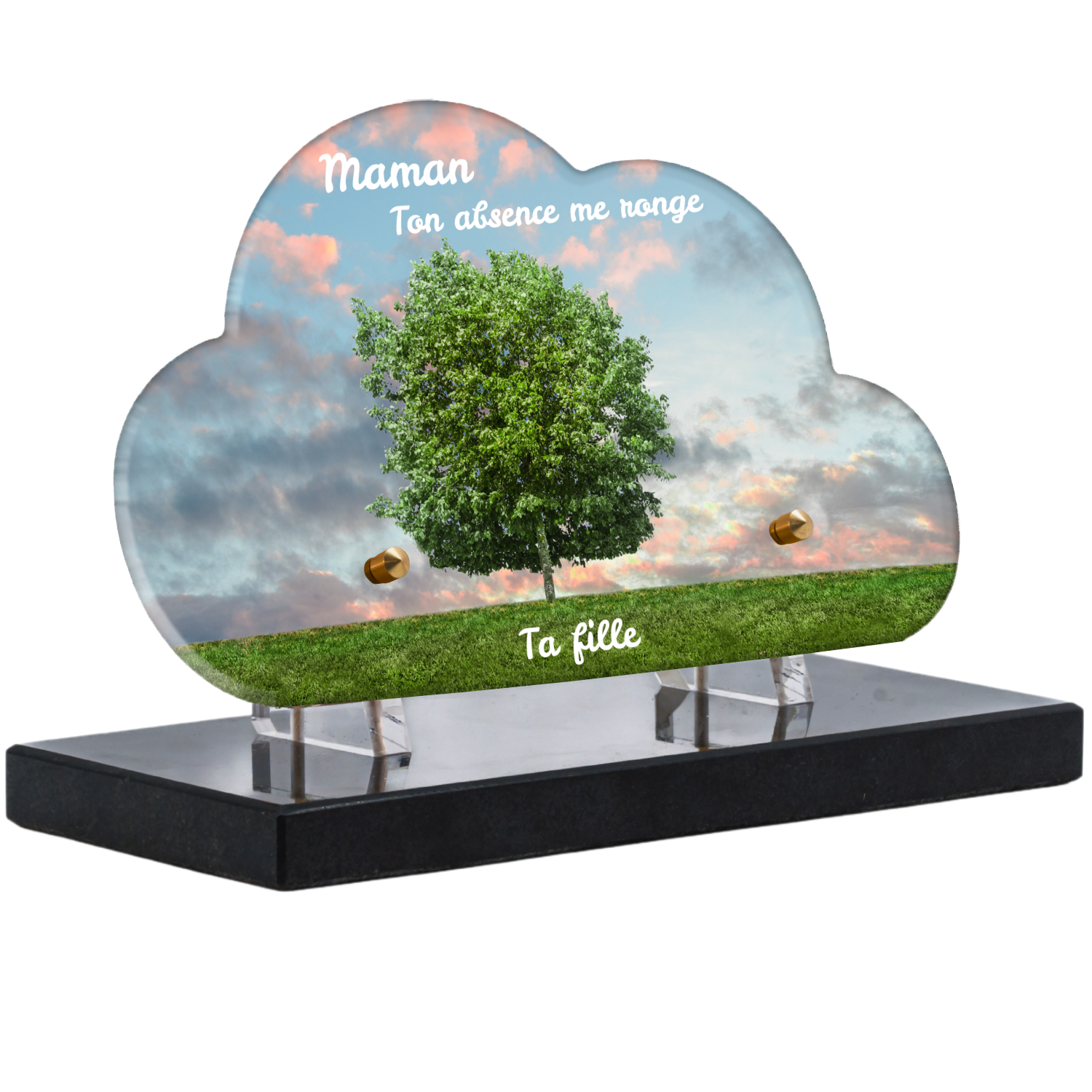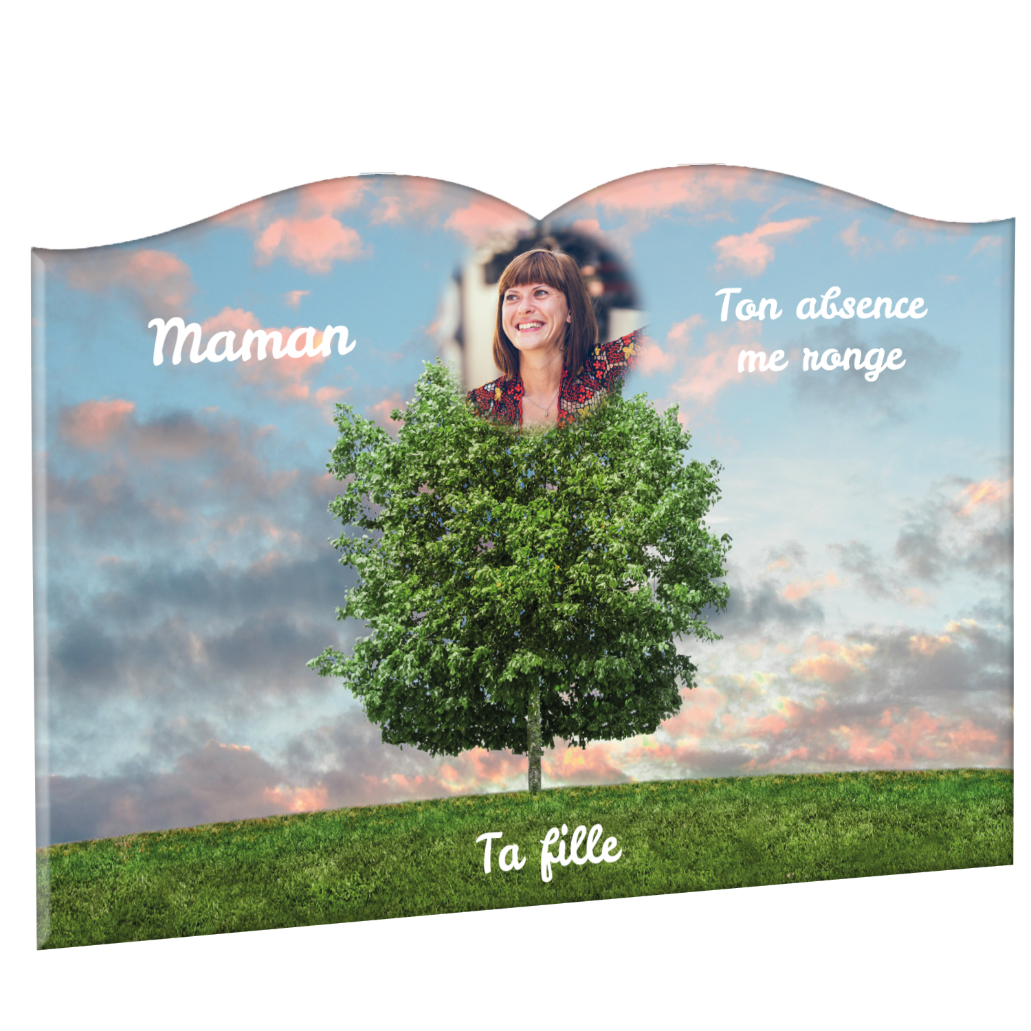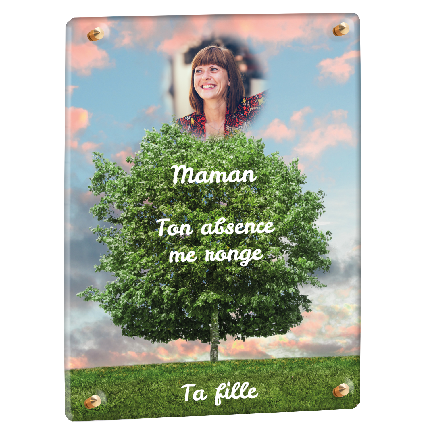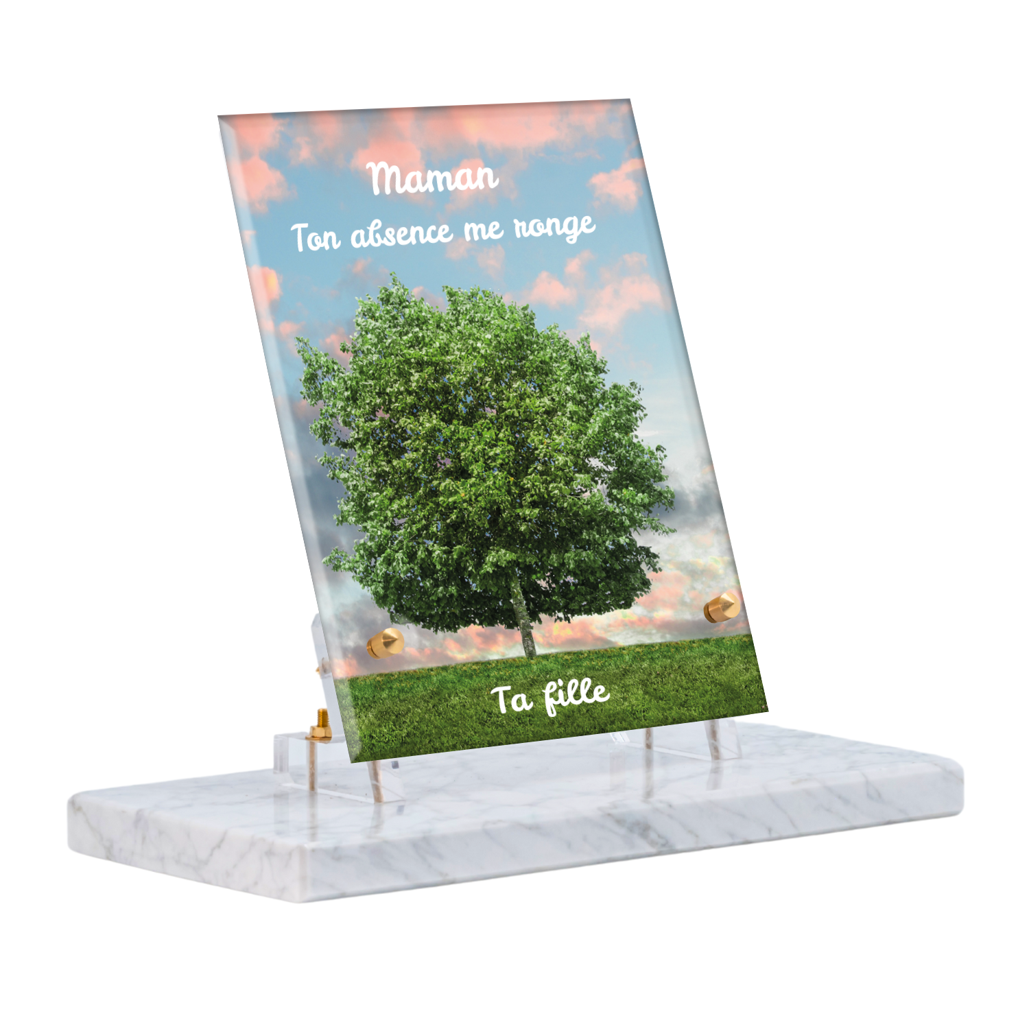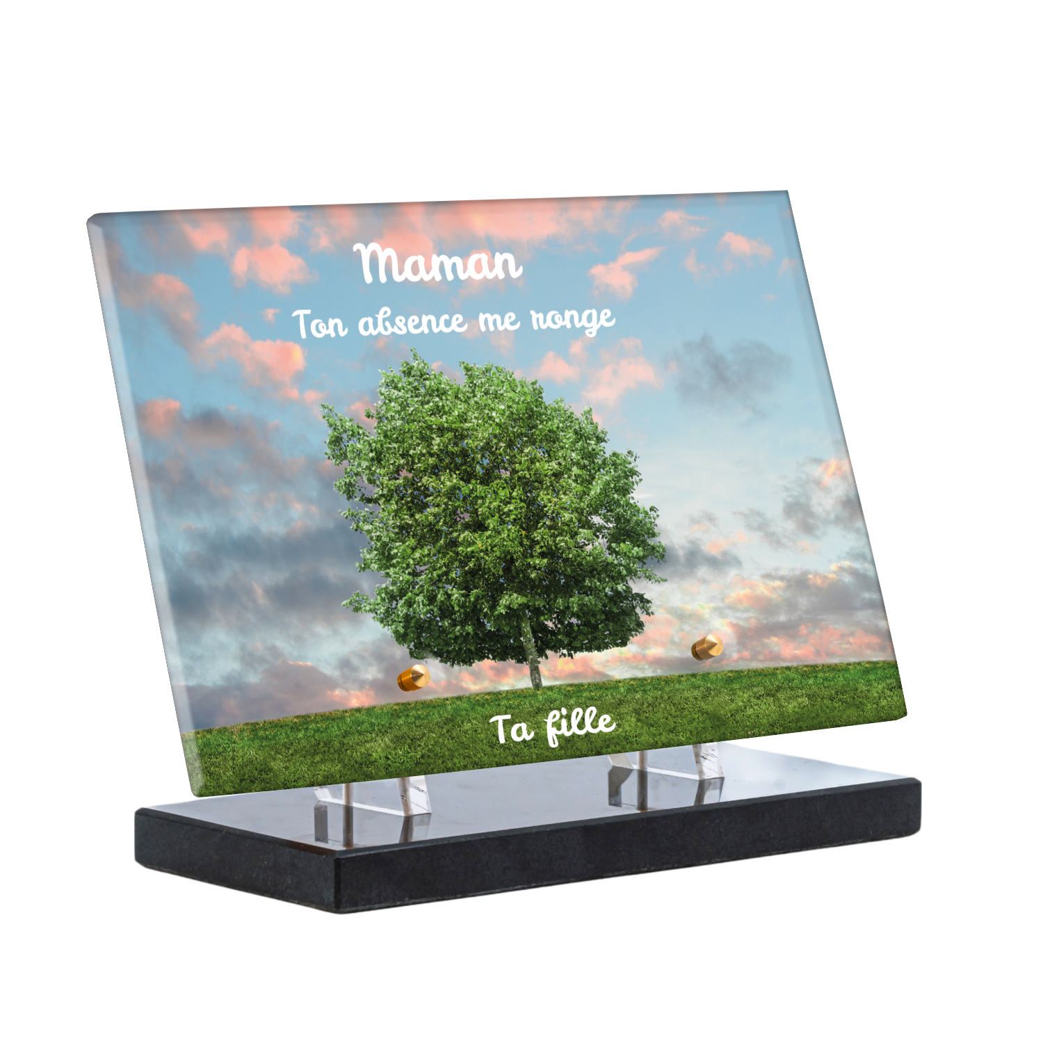 Découvrez cette plaque funéraire personnalisée représentant un délicat arbre de vie, symbole d’éternité et de sérénité. Conçue pour honorer avec respect la mémoire de vos proches, cette plaque mortuaire moderne allie élégance et sens profond. Sa finition en plexiglas donne un rendu à la fois lumineux et résistant, idéal pour une plaque funéraire qui traverse le temps.