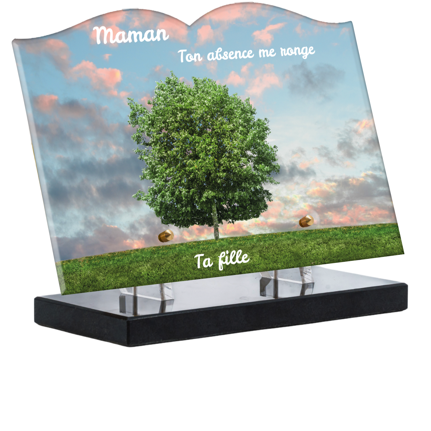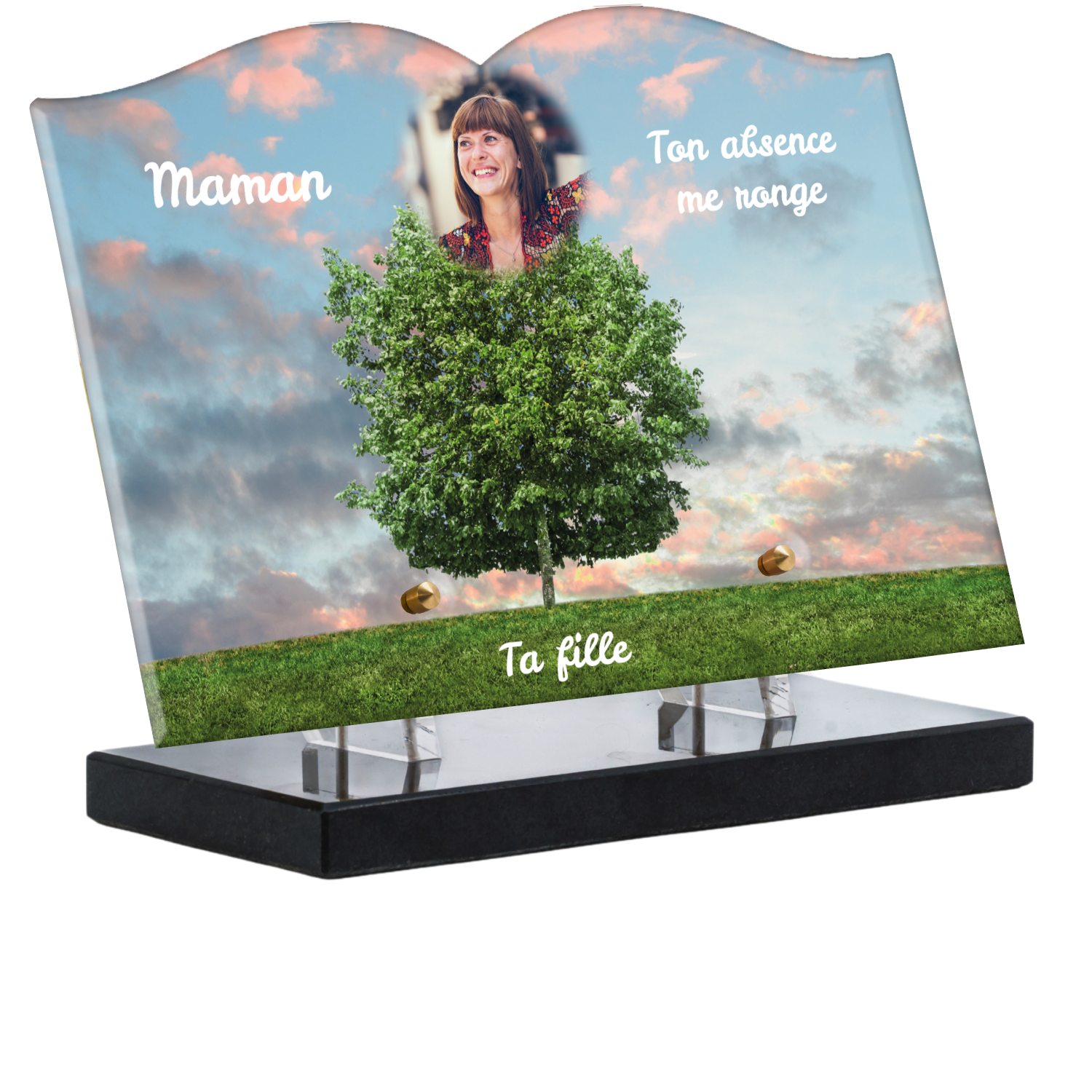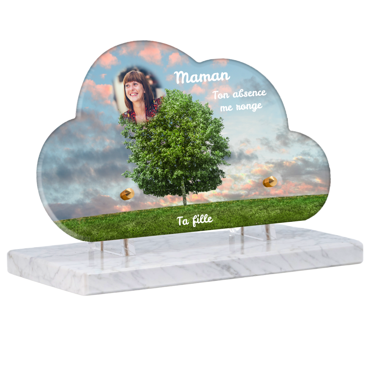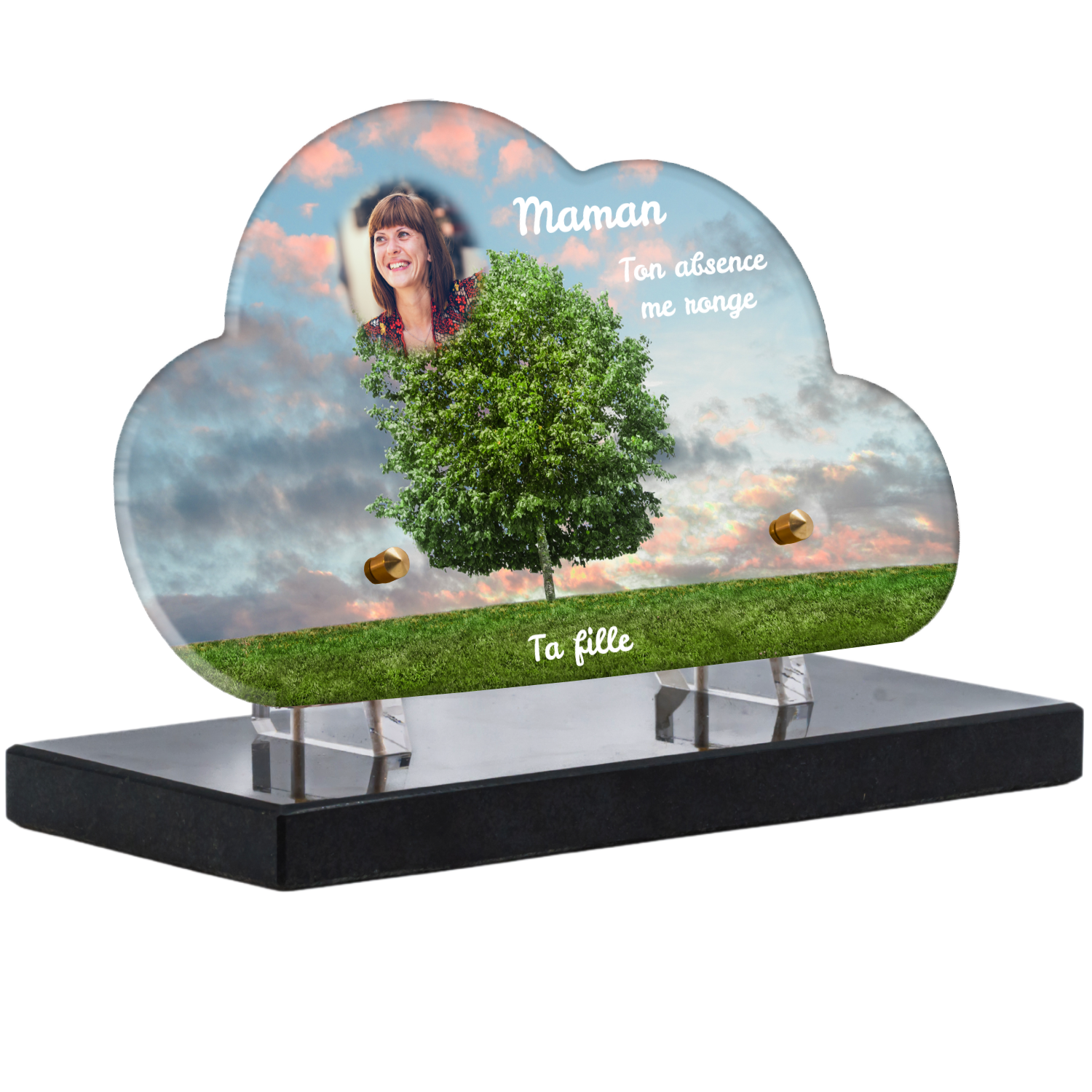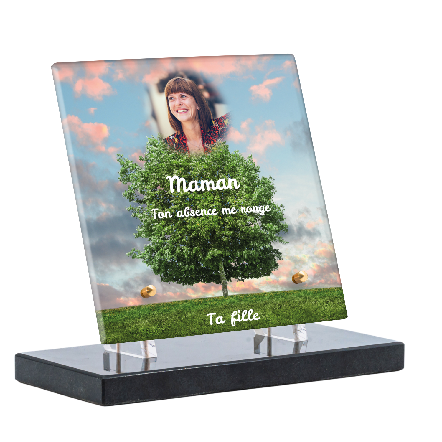 Découvrez cette plaque funéraire personnalisée représentant un délicat arbre de vie, symbole d’éternité et de sérénité. Conçue pour honorer avec respect la mémoire de vos proches, cette plaque mortuaire moderne allie élégance et sens profond. Sa finition en plexiglas donne un rendu à la fois lumineux et résistant, idéal pour une plaque funéraire qui traverse le temps.