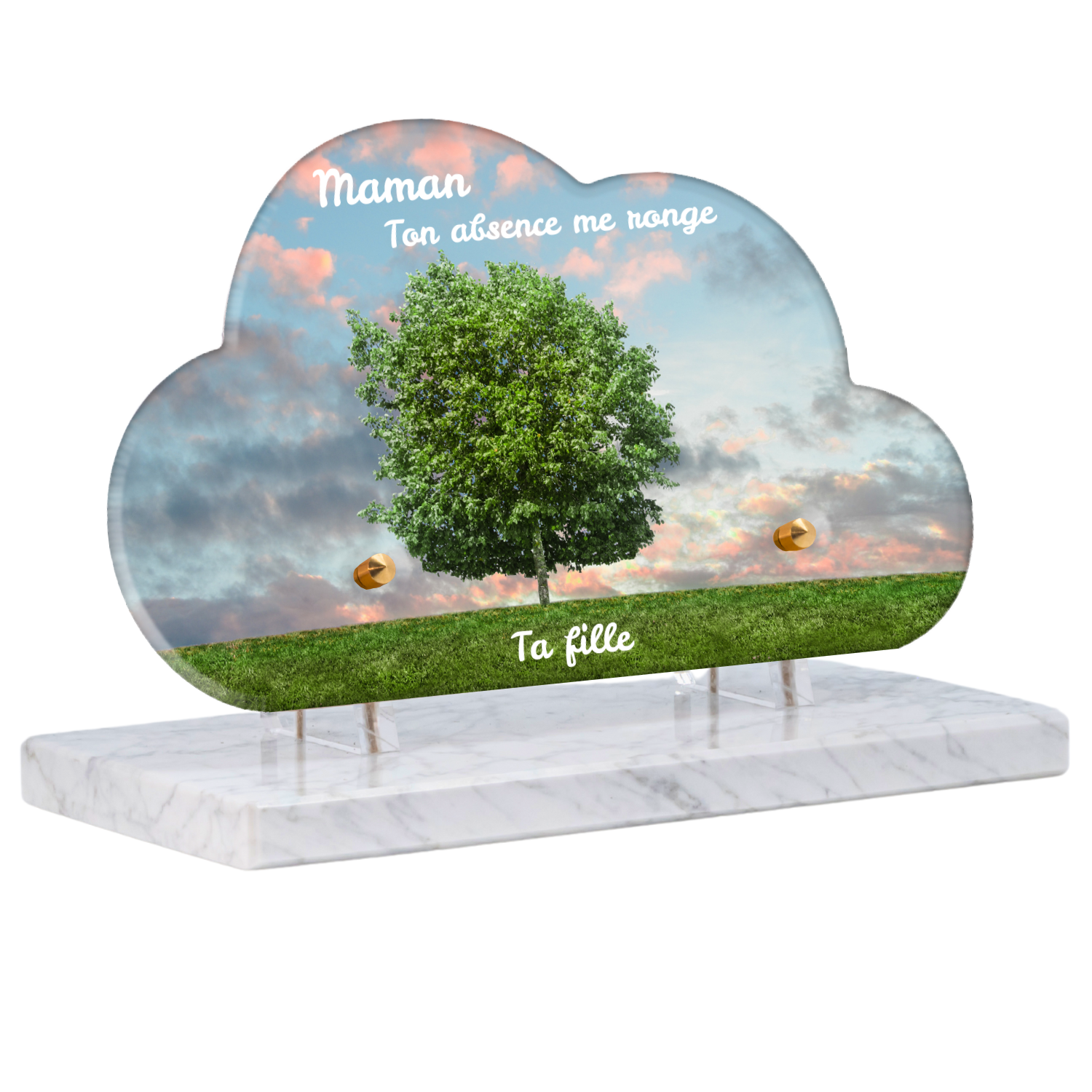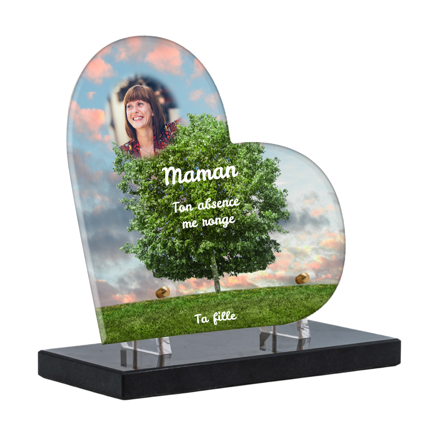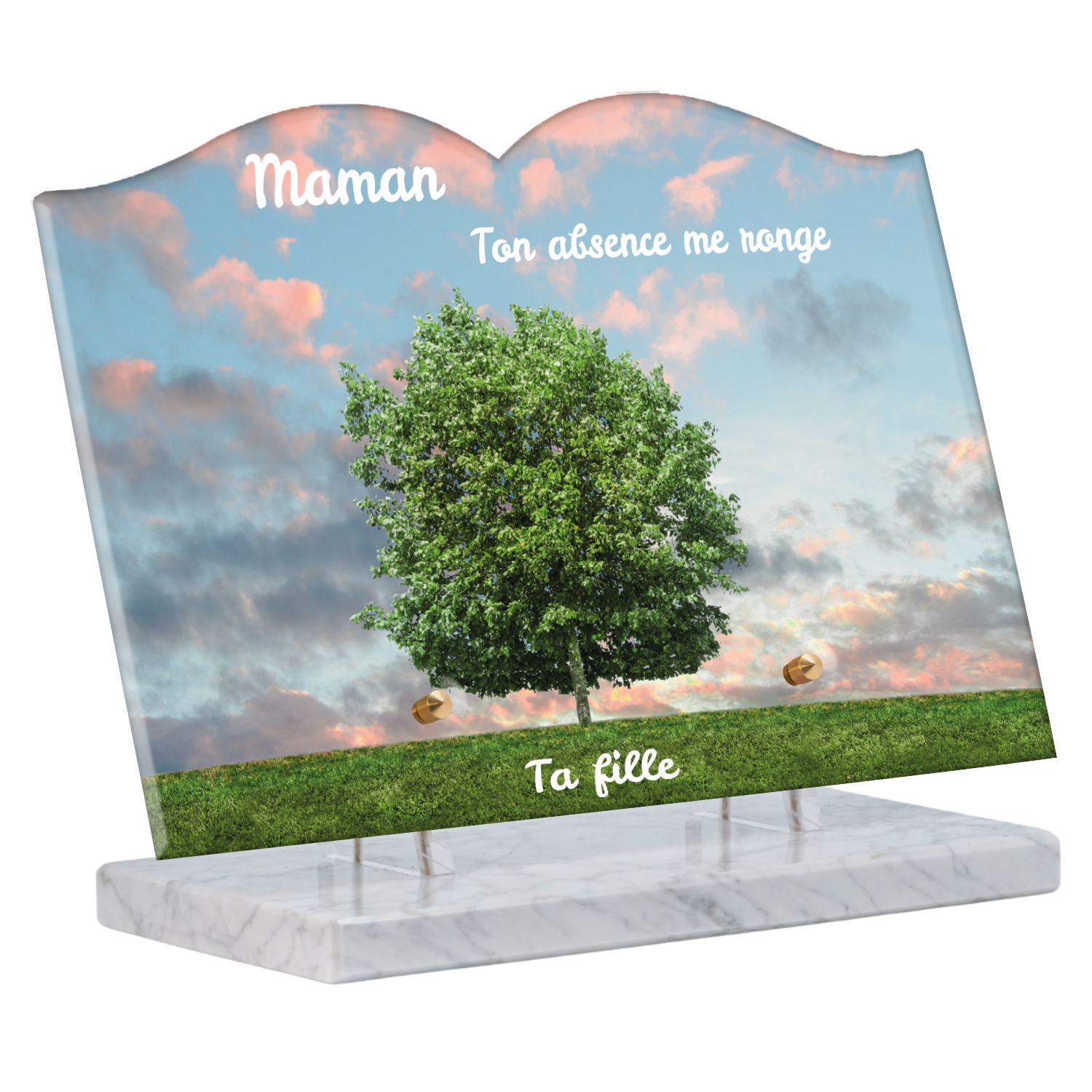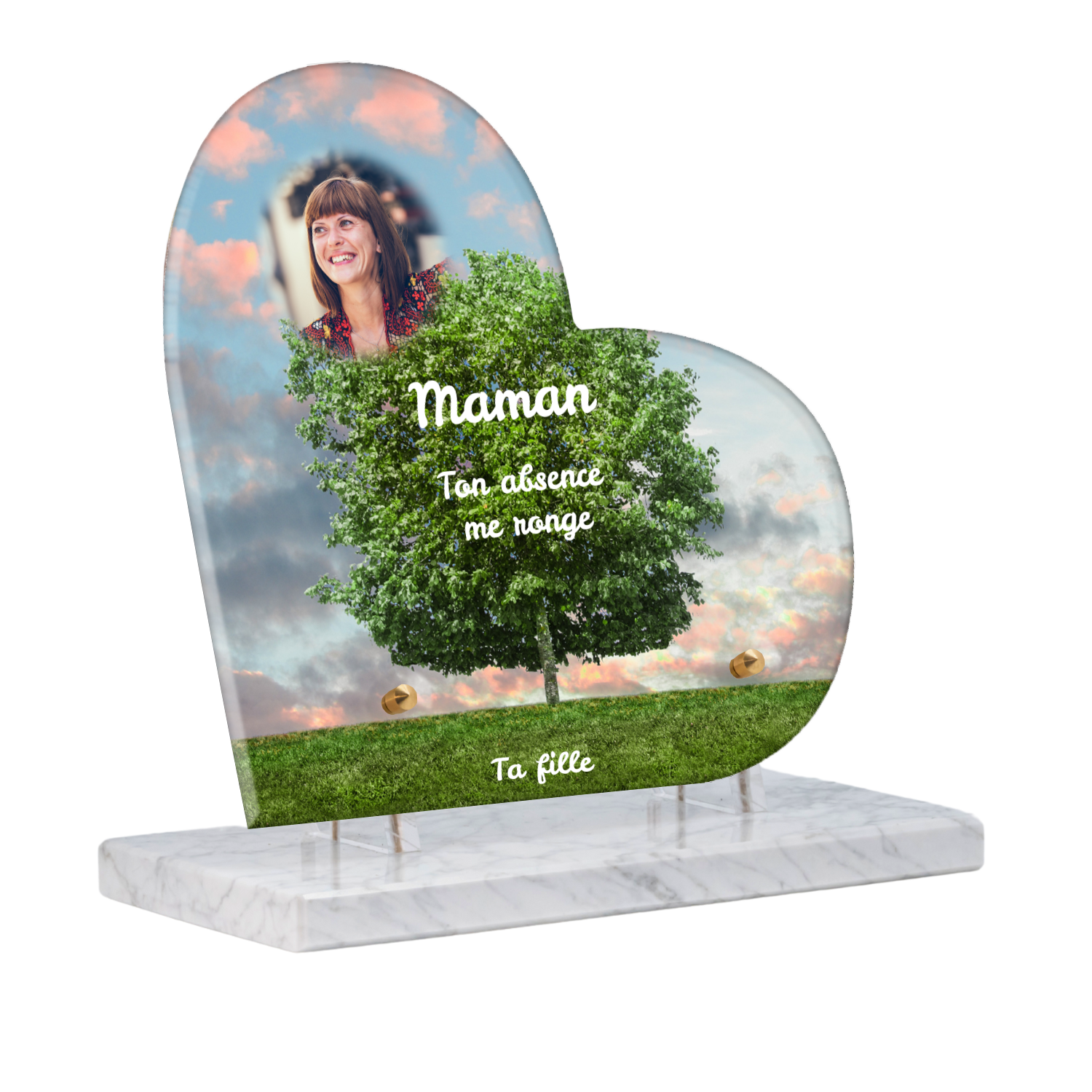 Découvrez cette plaque funéraire personnalisée représentant un délicat arbre de vie, symbole d’éternité et de sérénité. Conçue pour honorer avec respect la mémoire de vos proches, cette plaque mortuaire moderne allie élégance et sens profond. Sa finition en plexiglas donne un rendu à la fois lumineux et résistant, idéal pour une plaque funéraire qui traverse le temps.