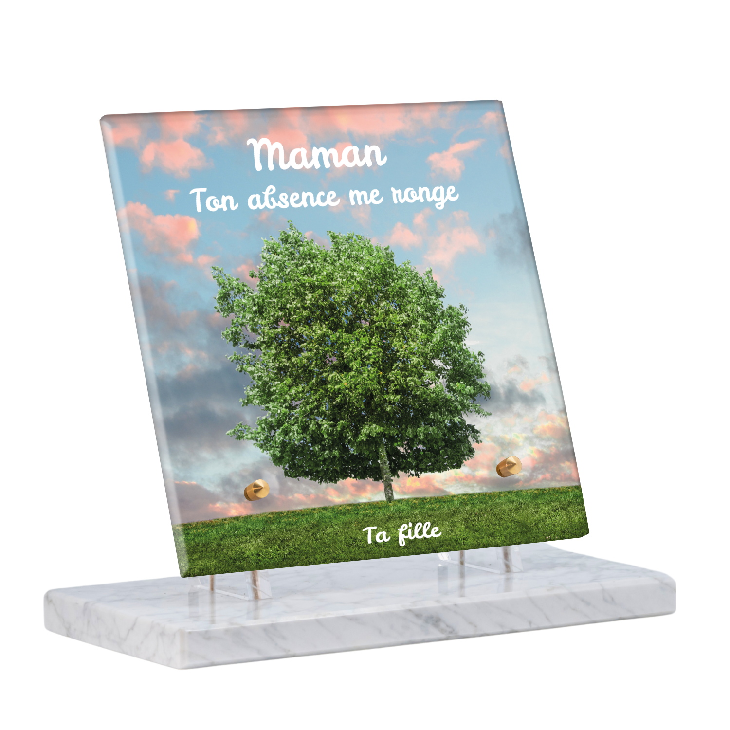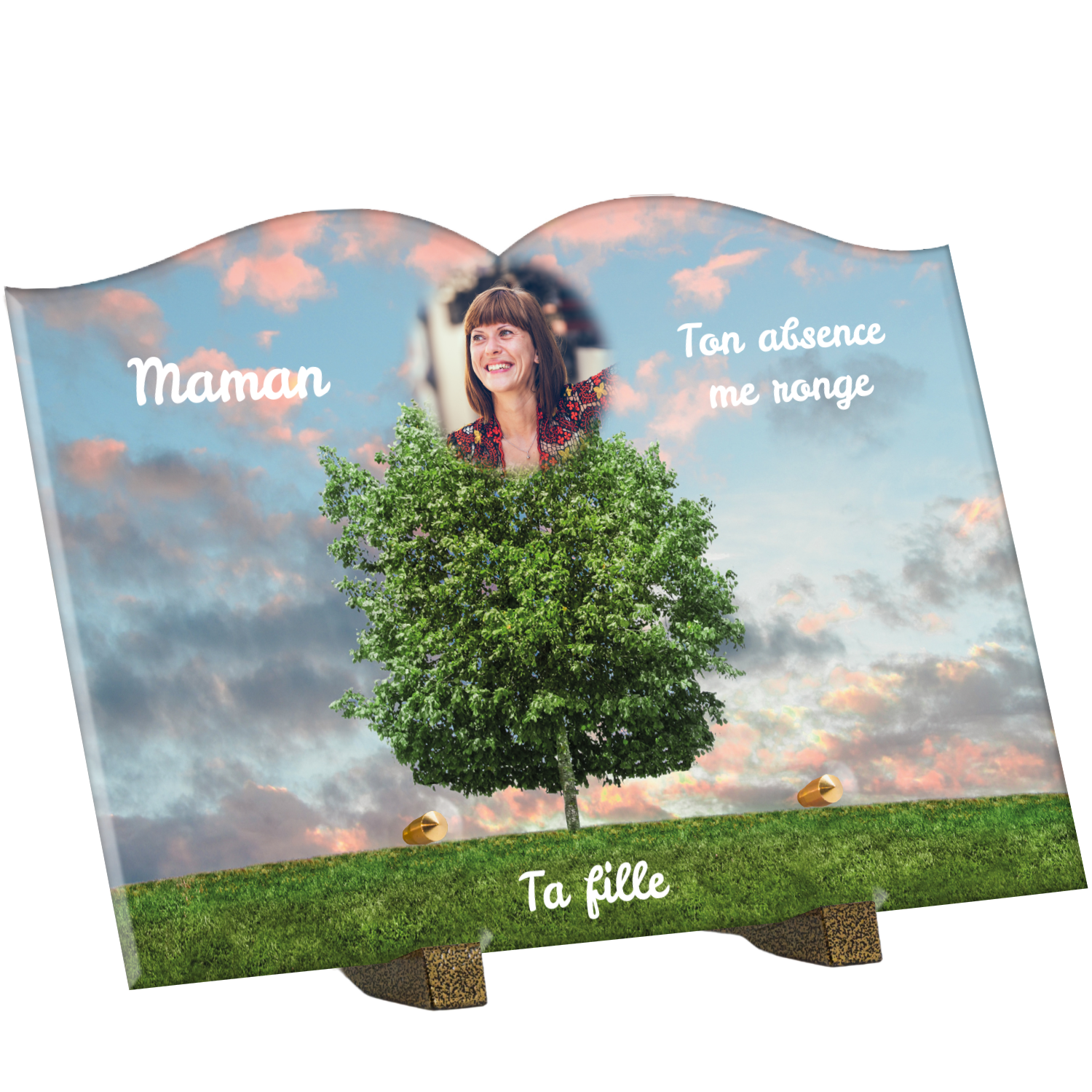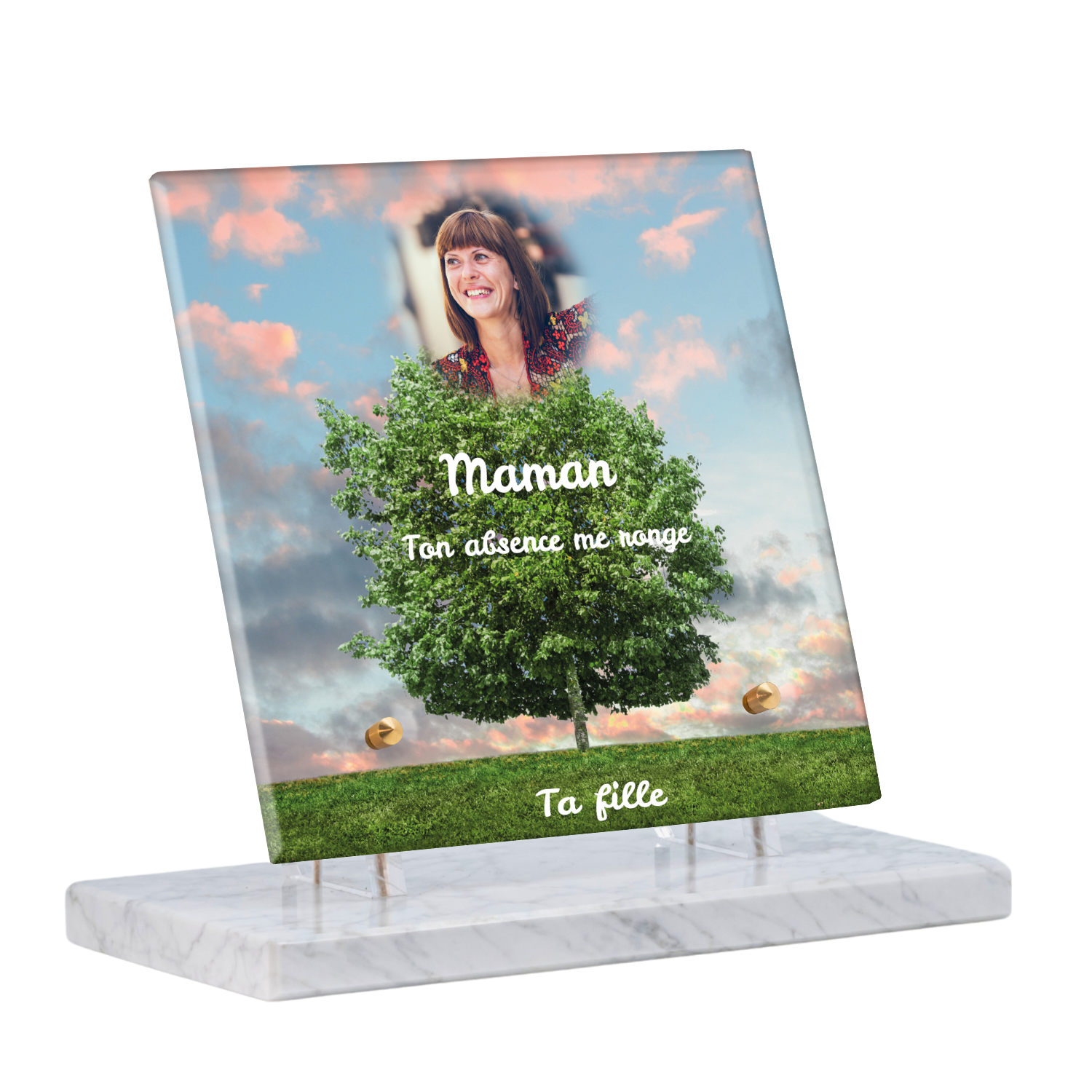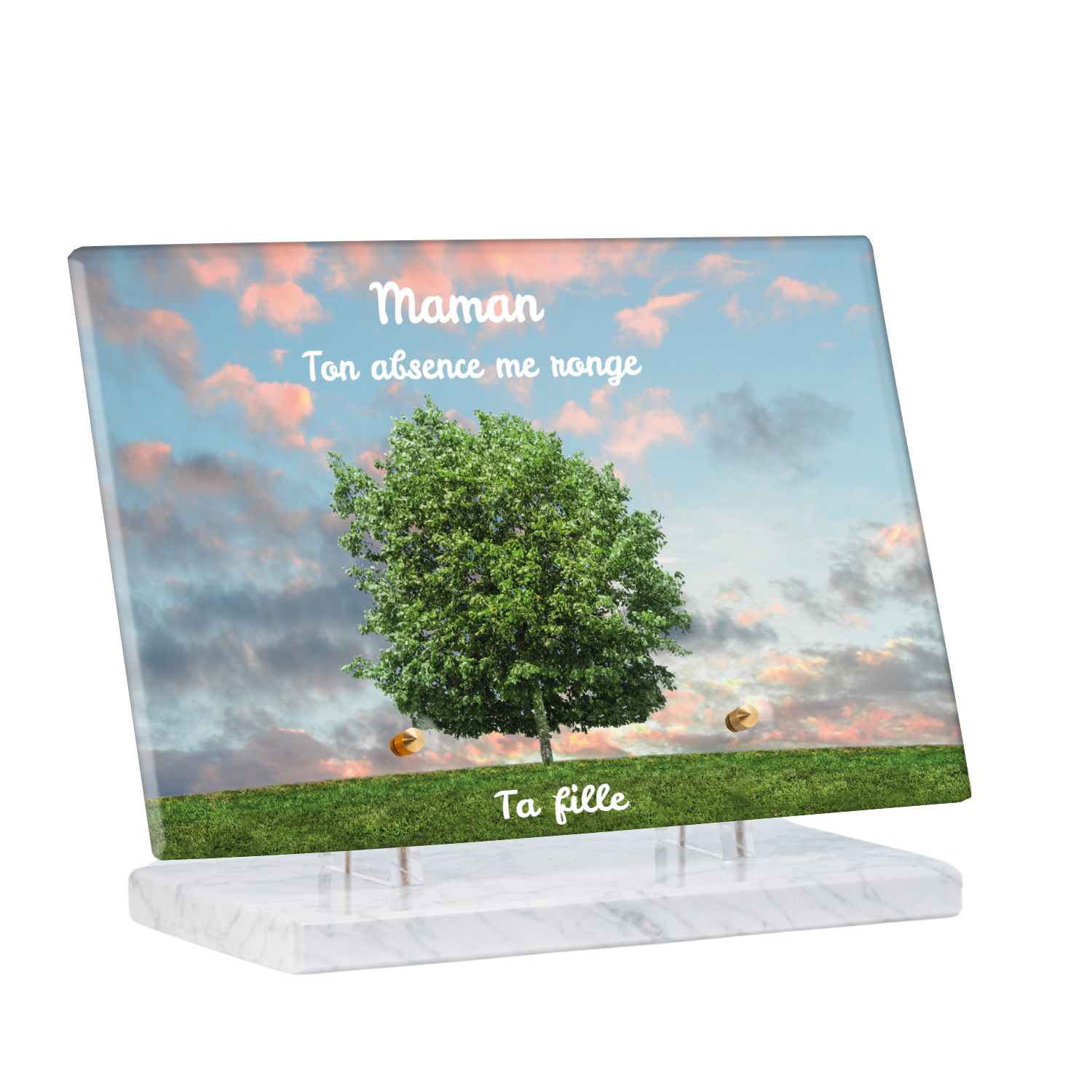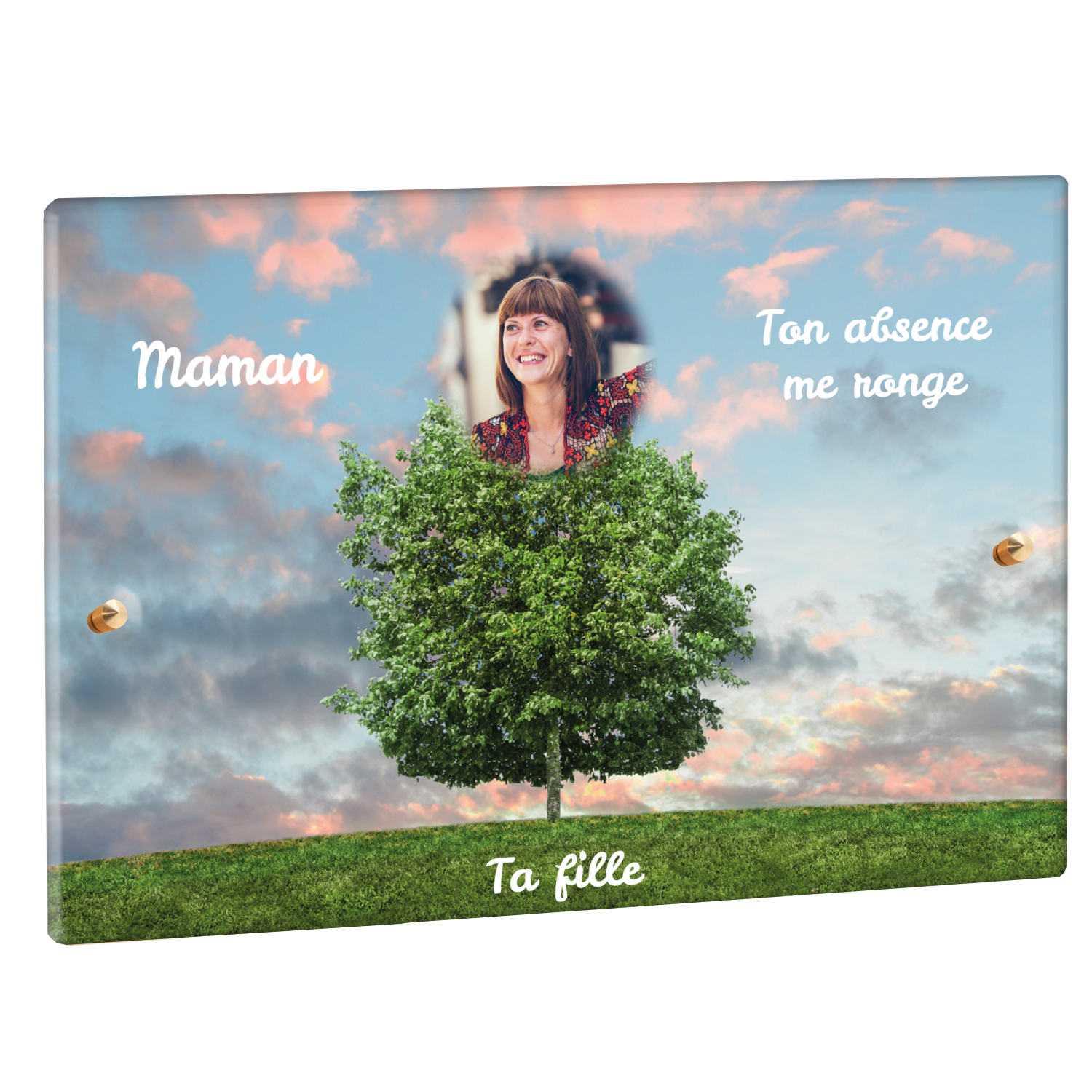 Découvrez cette plaque funéraire personnalisée représentant un délicat arbre de vie, symbole d’éternité et de sérénité. Conçue pour honorer avec respect la mémoire de vos proches, cette plaque mortuaire moderne allie élégance et sens profond. Sa finition en plexiglas donne un rendu à la fois lumineux et résistant, idéal pour une plaque funéraire qui traverse le temps.