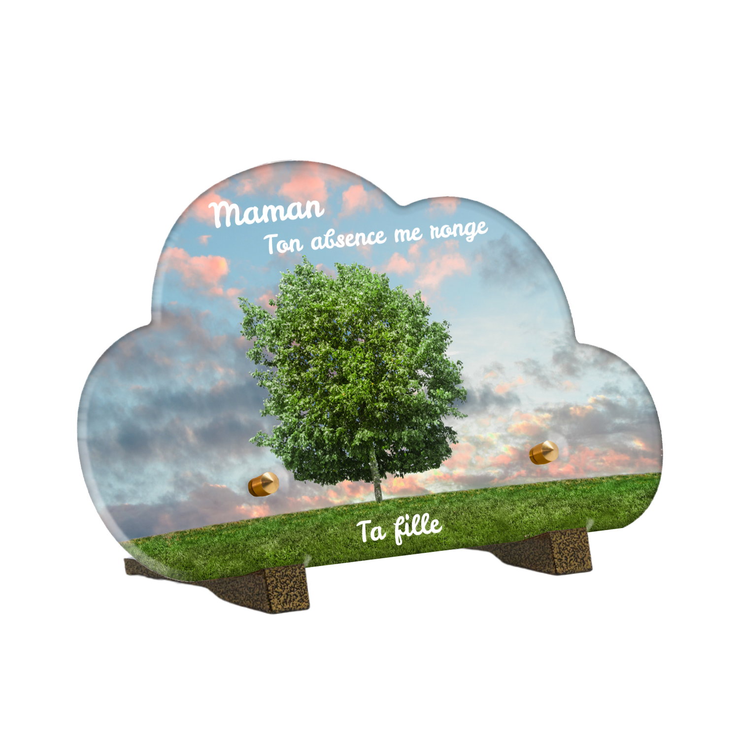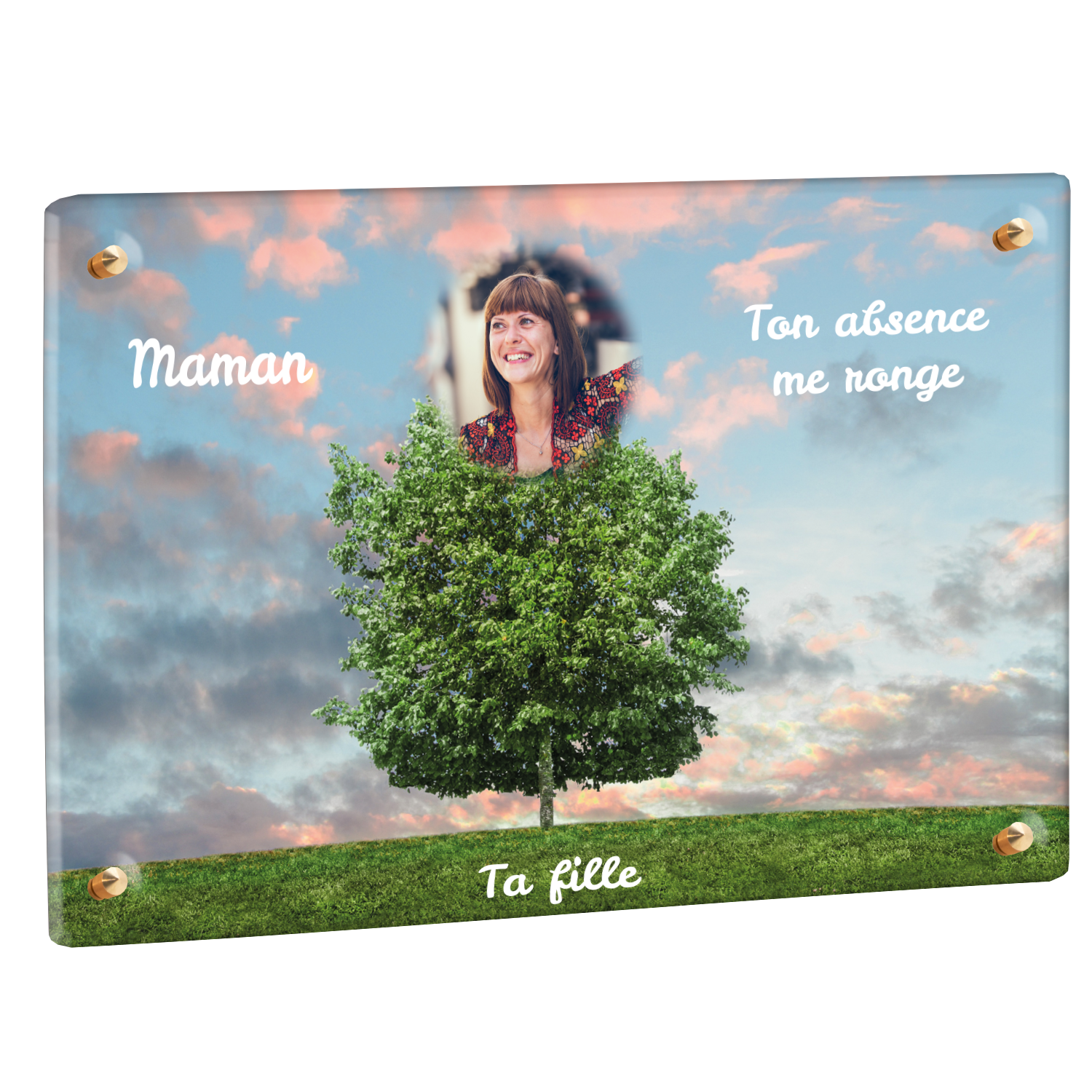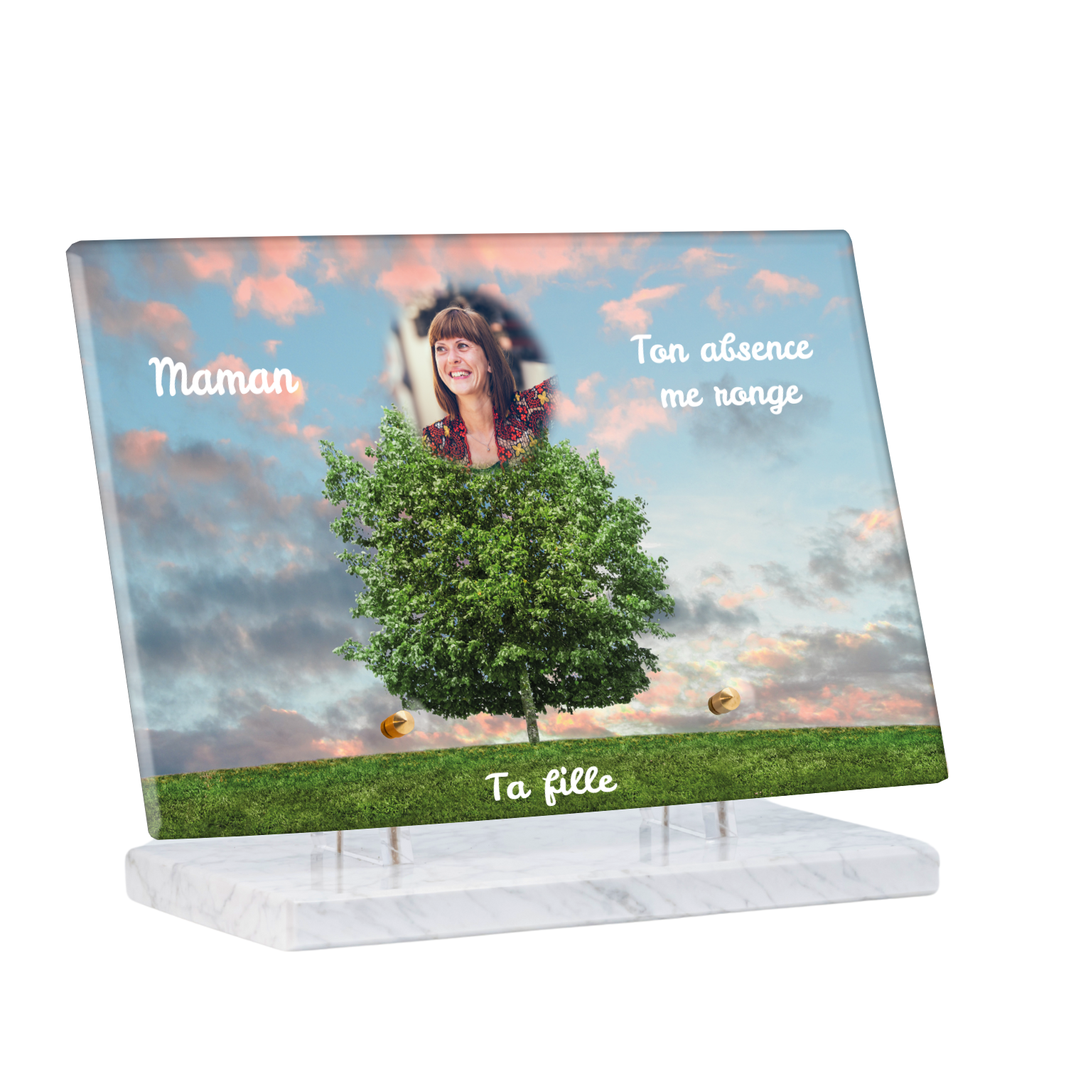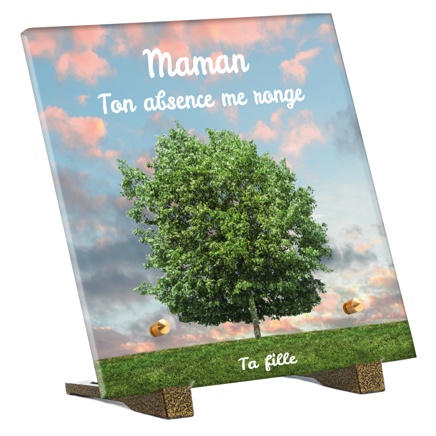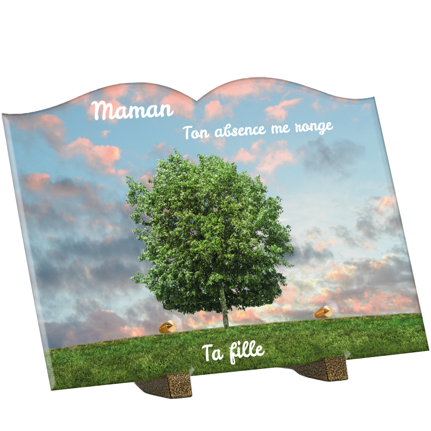 Découvrez cette plaque funéraire personnalisée représentant un délicat arbre de vie, symbole d’éternité et de sérénité. Conçue pour honorer avec respect la mémoire de vos proches, cette plaque mortuaire moderne allie élégance et sens profond. Sa finition en plexiglas donne un rendu à la fois lumineux et résistant, idéal pour une plaque funéraire qui traverse le temps.