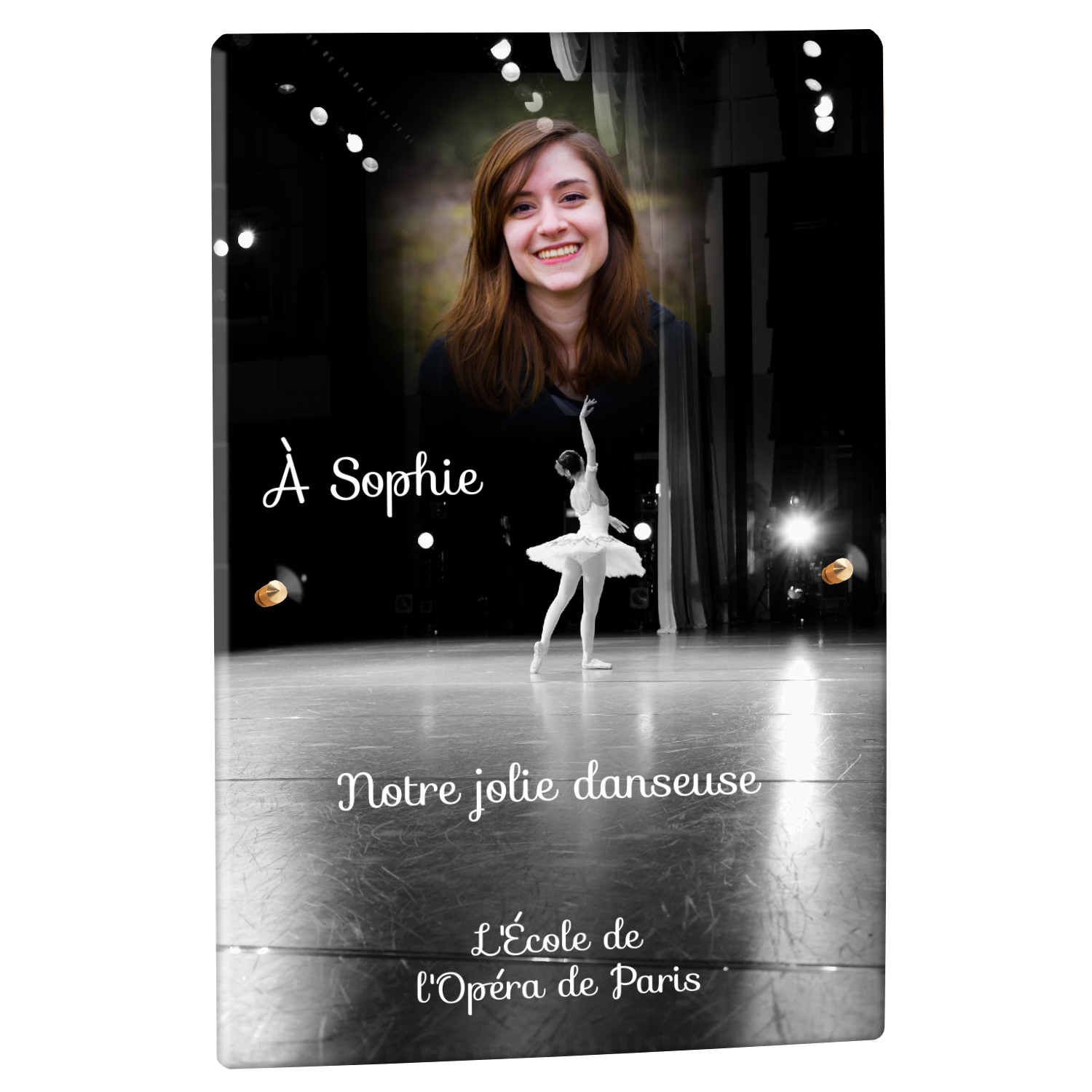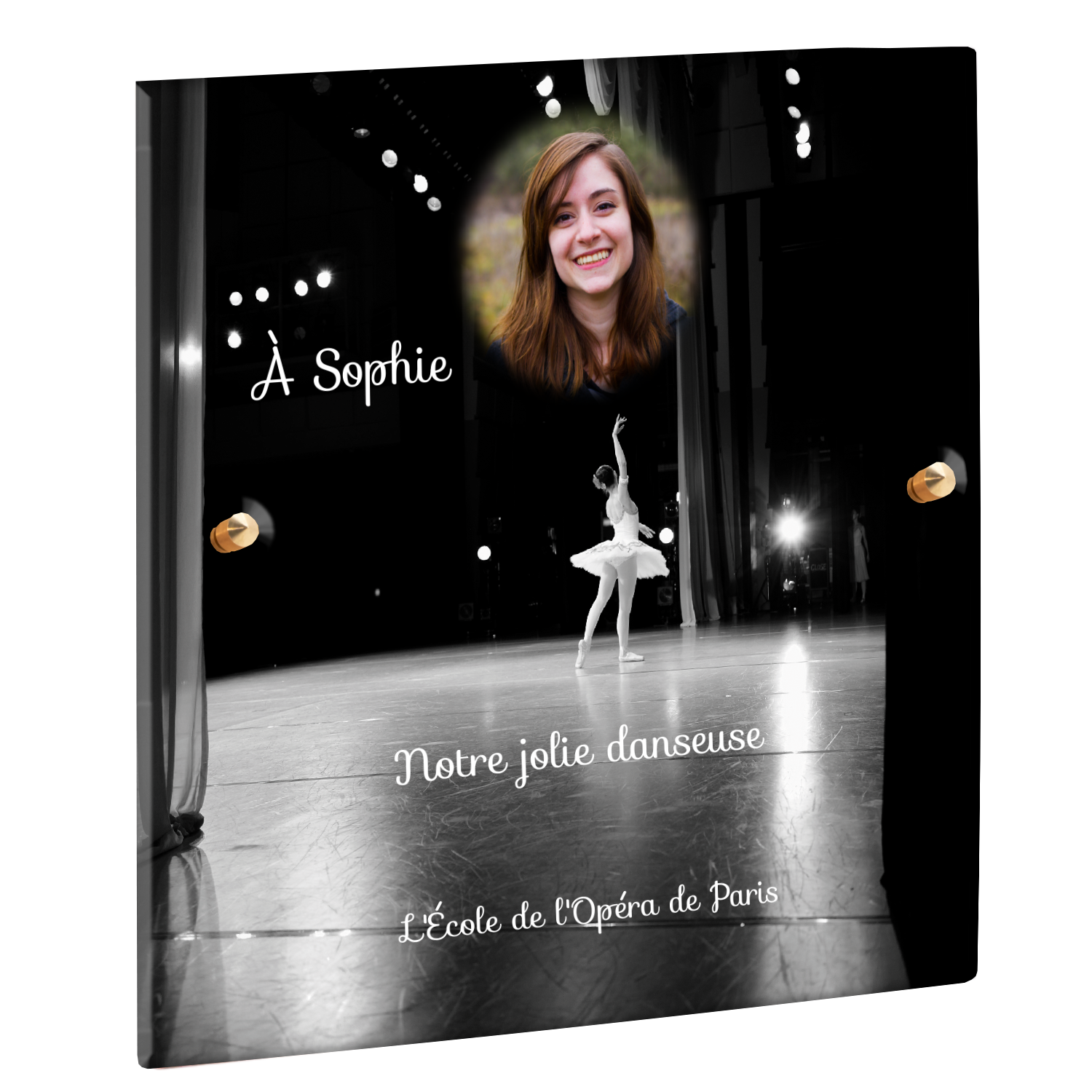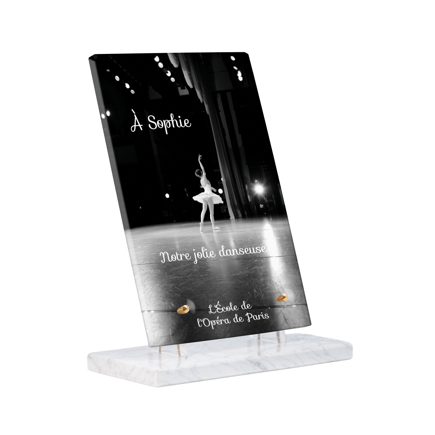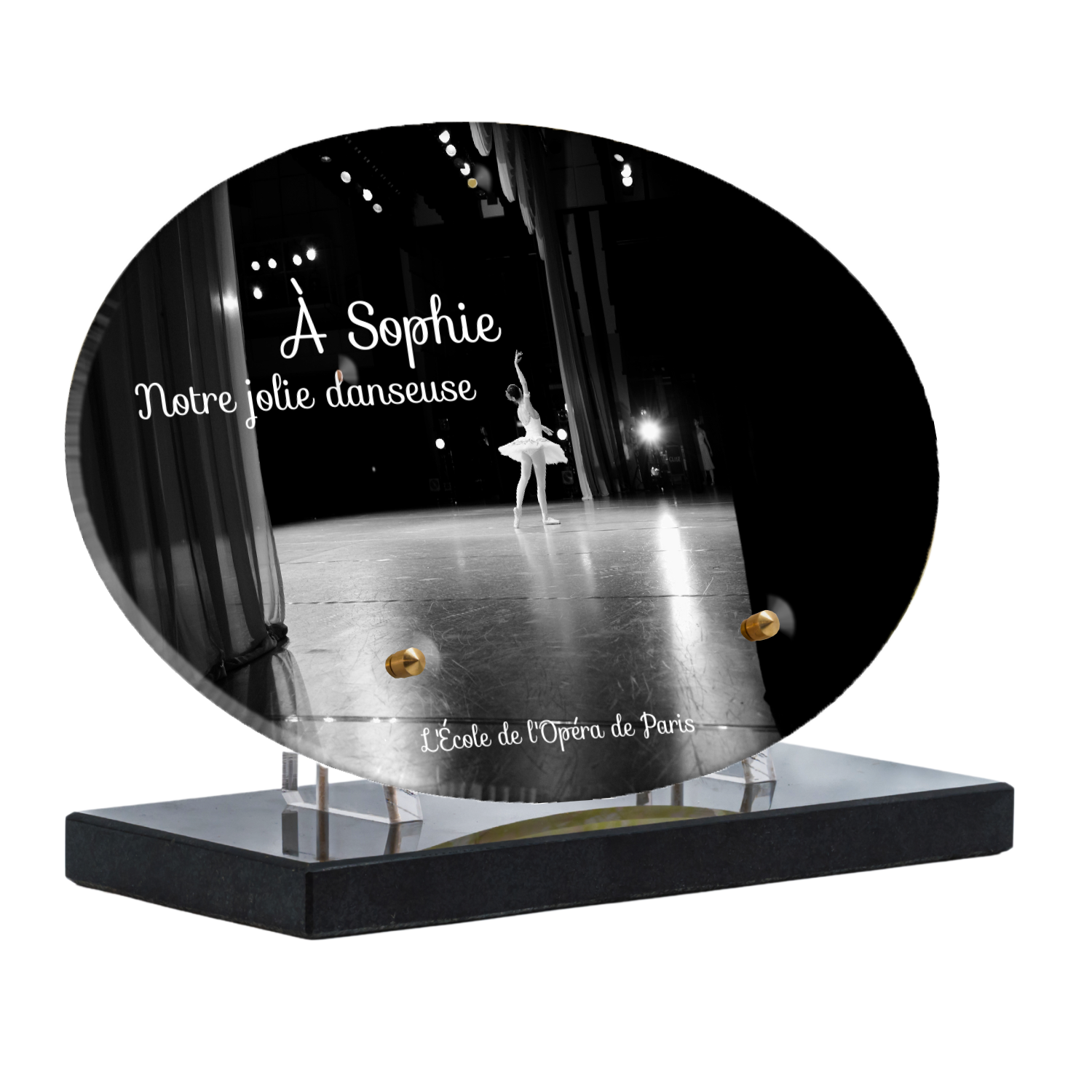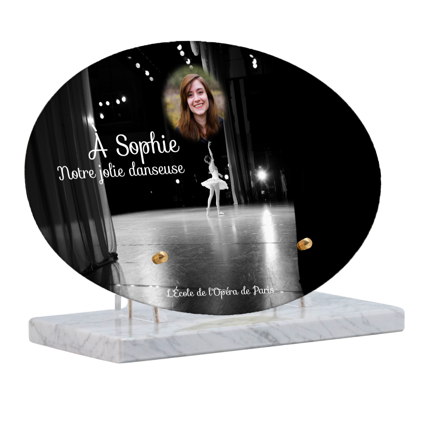 Offrez un hommage unique avec cette plaque funéraire personnalisée représentant une danseuse ballerine sur scène. Conçue en plexiglas, cette plaque funéraire moderne allie élégance et finesse pour célébrer la mémoire avec délicatesse. Son design soigné apporte une touche artistique et respectueuse, idéale pour rendre hommage à un être cher passionné de danse.