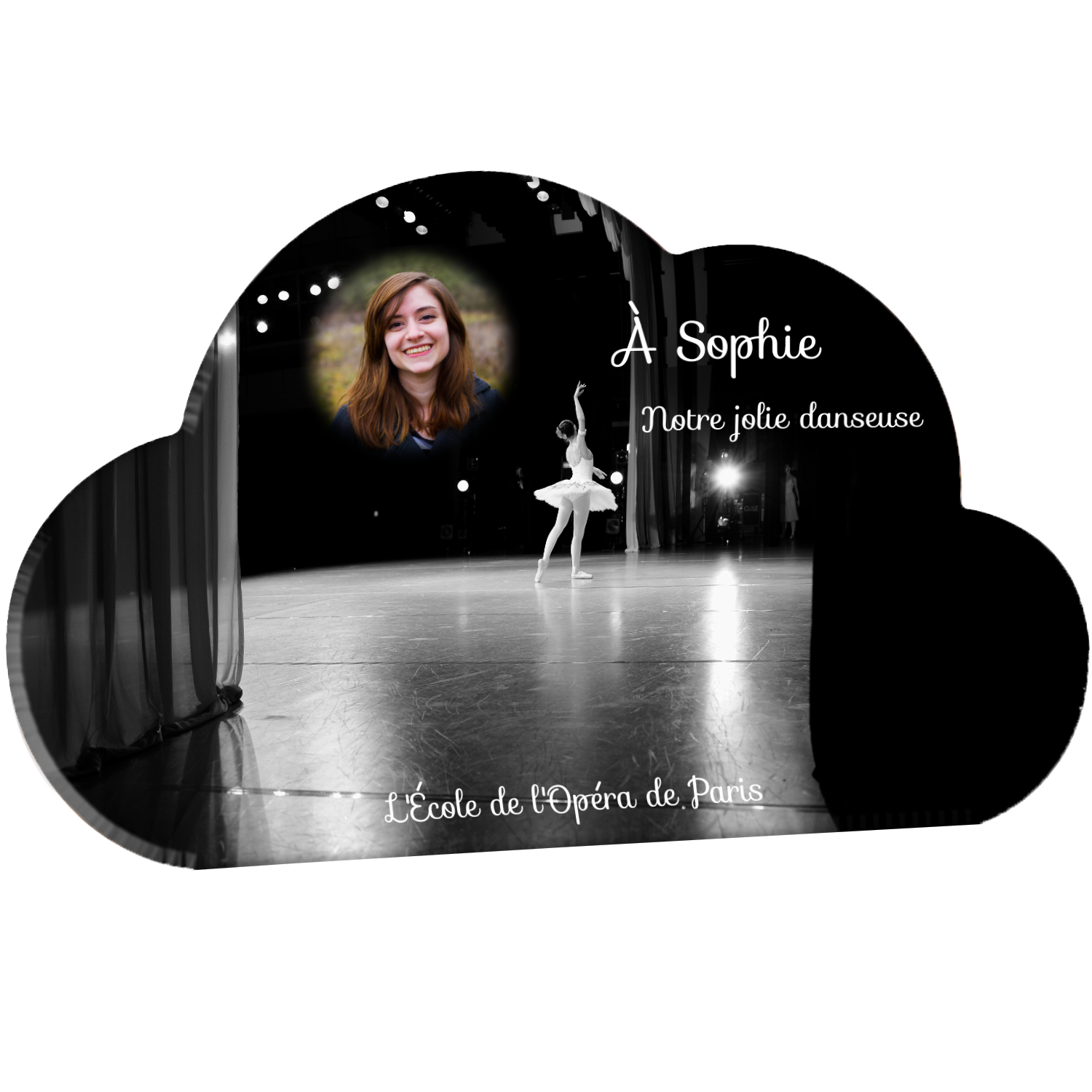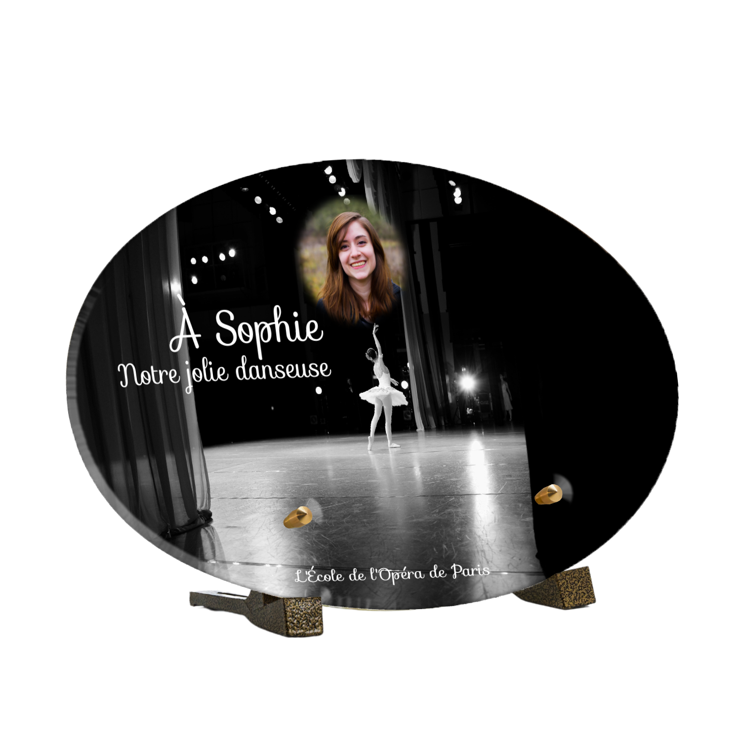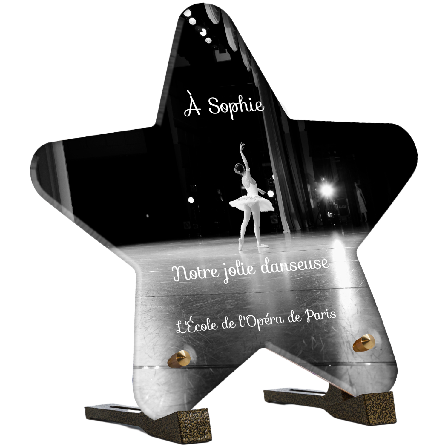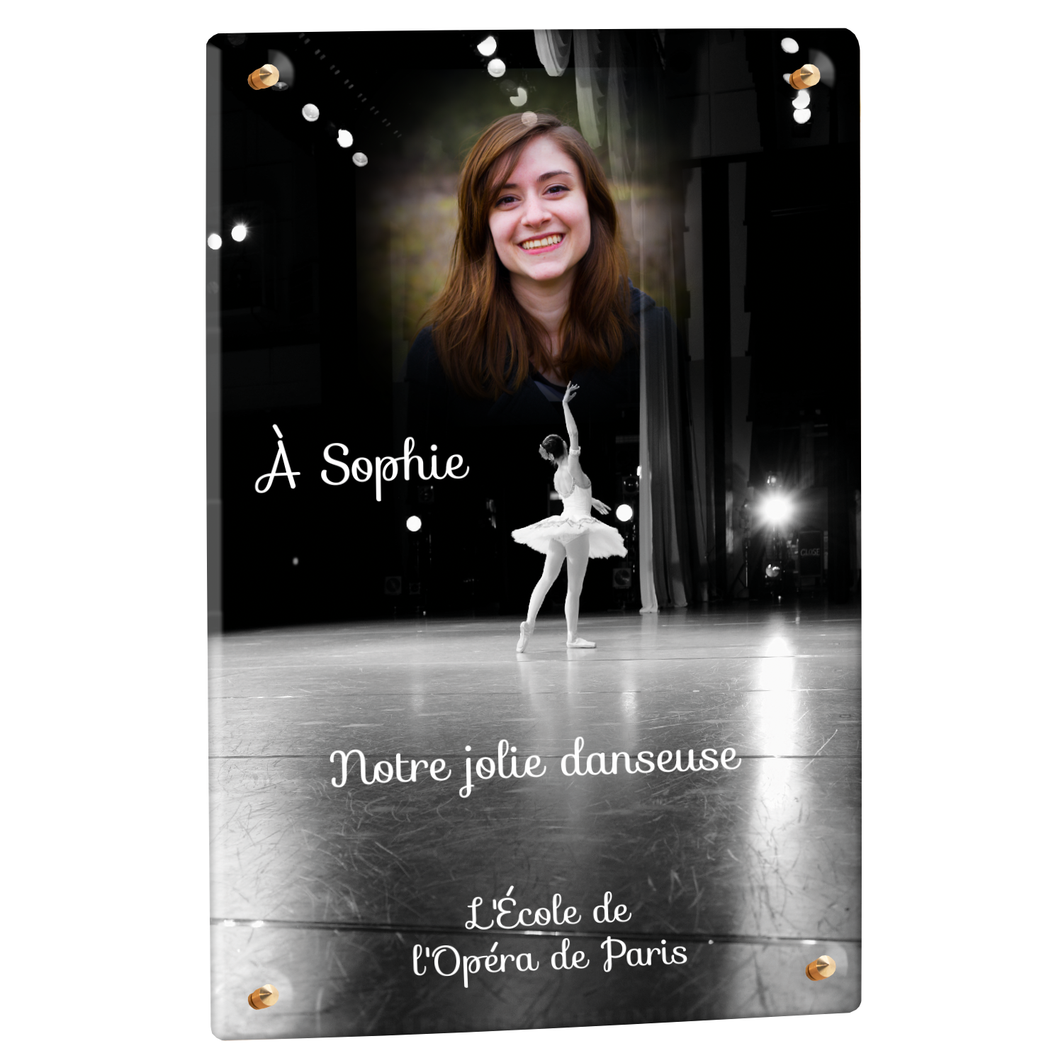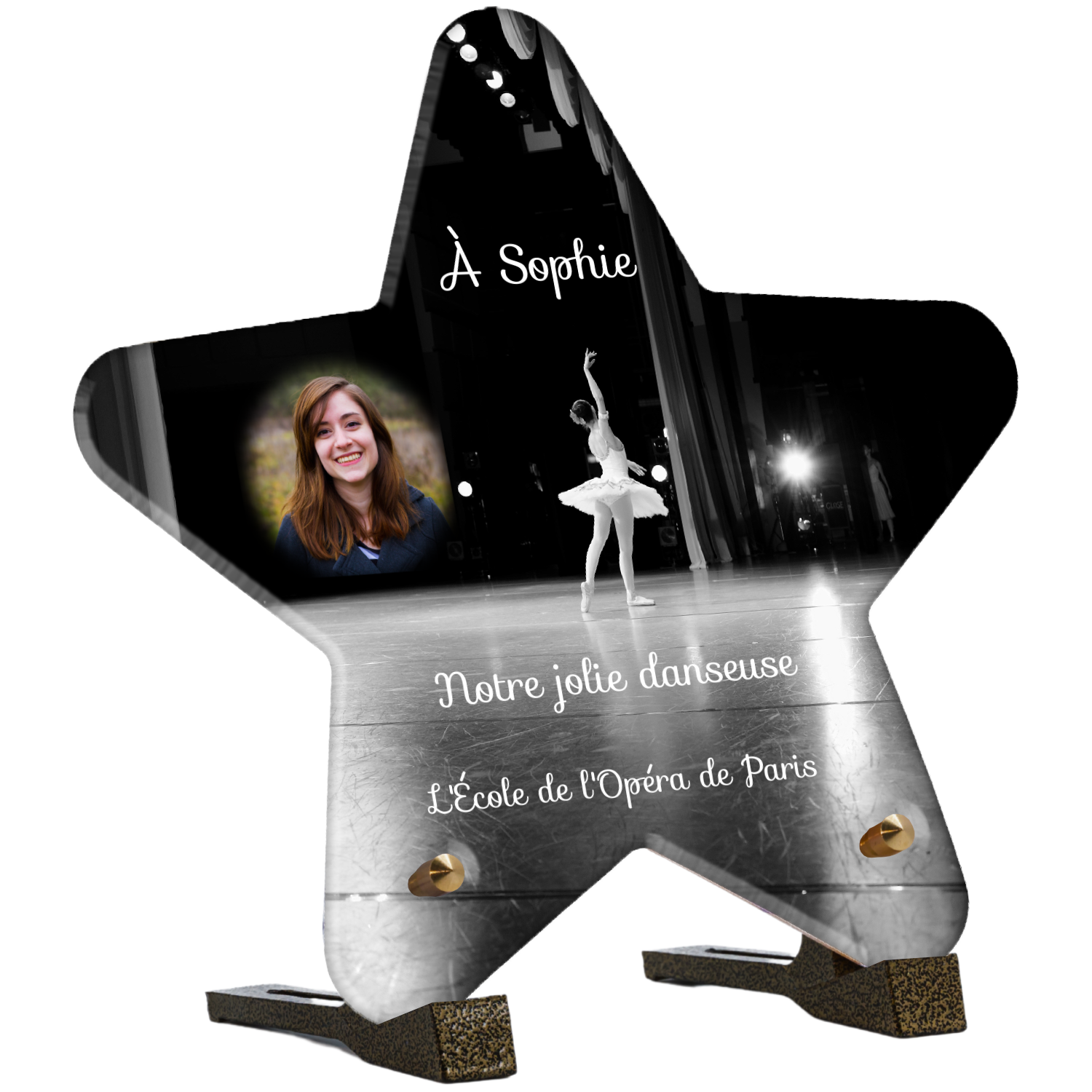 Offrez un hommage unique avec cette plaque funéraire personnalisée représentant une danseuse ballerine sur scène. Conçue en plexiglas, cette plaque funéraire moderne allie élégance et finesse pour célébrer la mémoire avec délicatesse. Son design soigné apporte une touche artistique et respectueuse, idéale pour rendre hommage à un être cher passionné de danse.