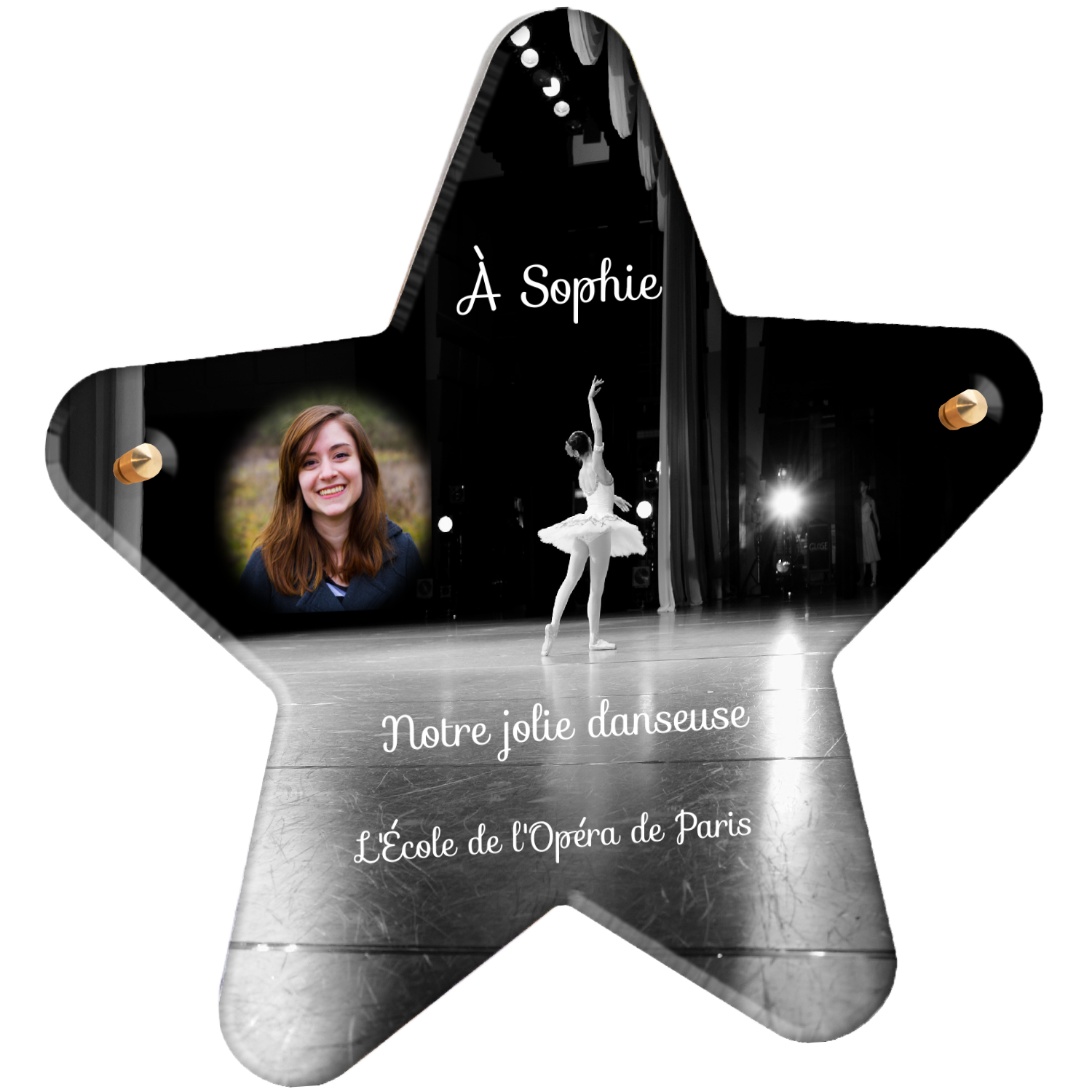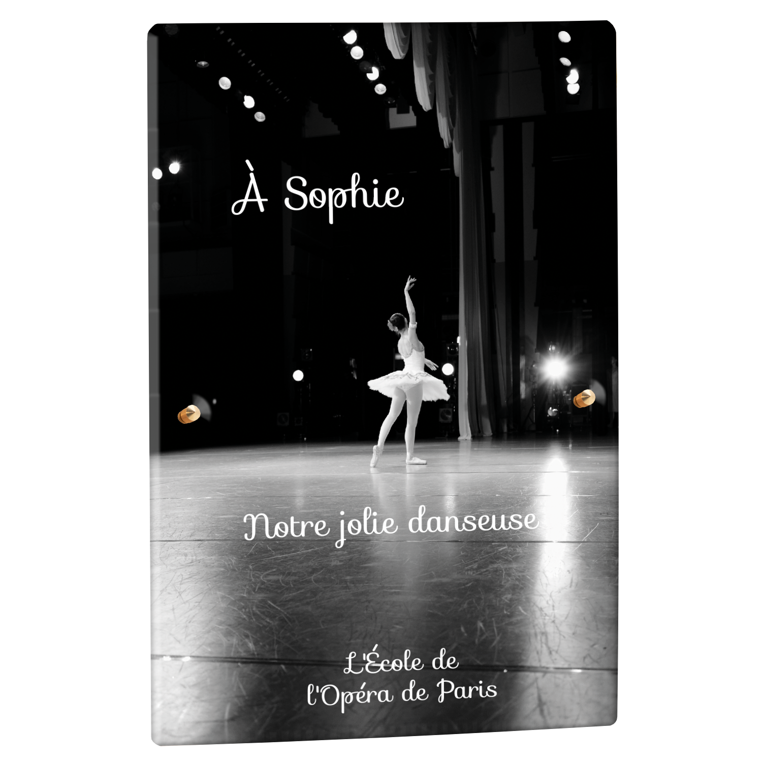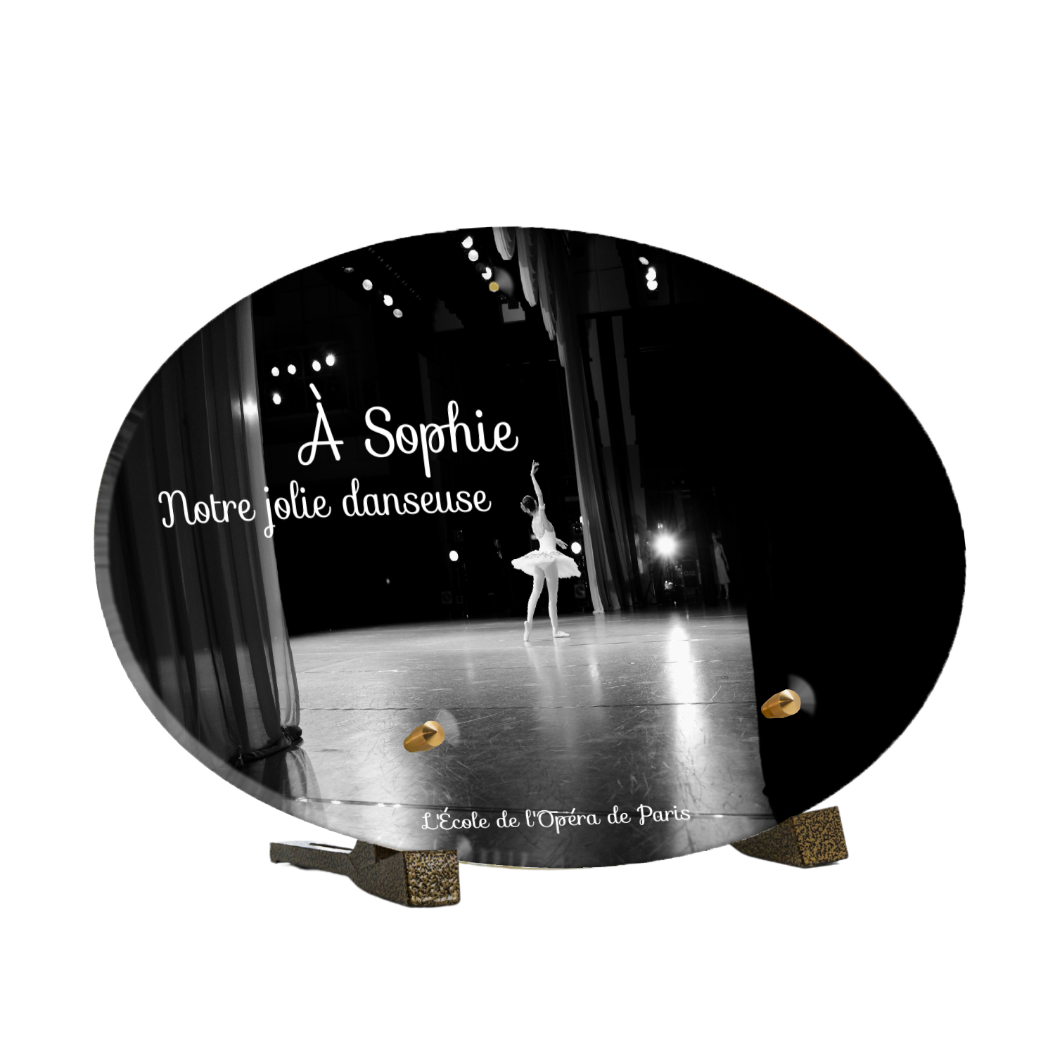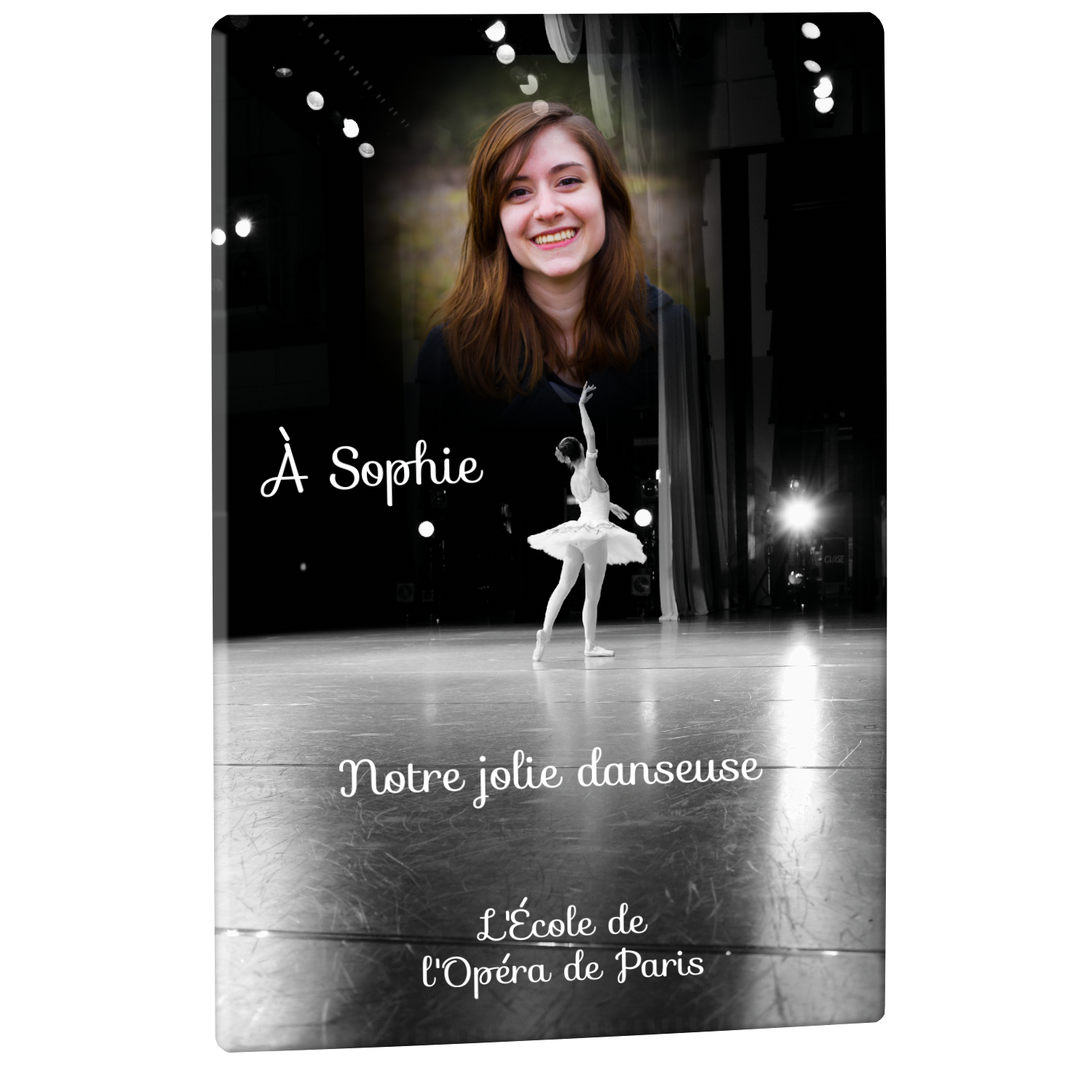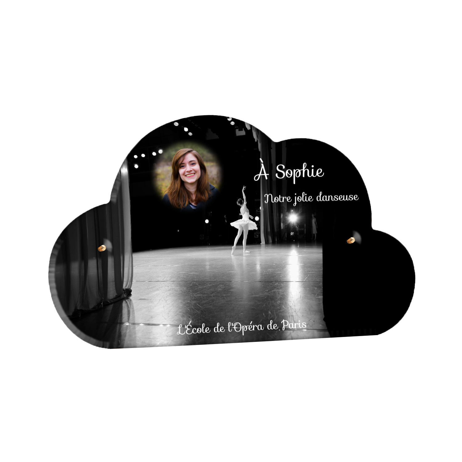 Offrez un hommage unique avec cette plaque funéraire personnalisée représentant une danseuse ballerine sur scène. Conçue en plexiglas, cette plaque funéraire moderne allie élégance et finesse pour célébrer la mémoire avec délicatesse. Son design soigné apporte une touche artistique et respectueuse, idéale pour rendre hommage à un être cher passionné de danse.