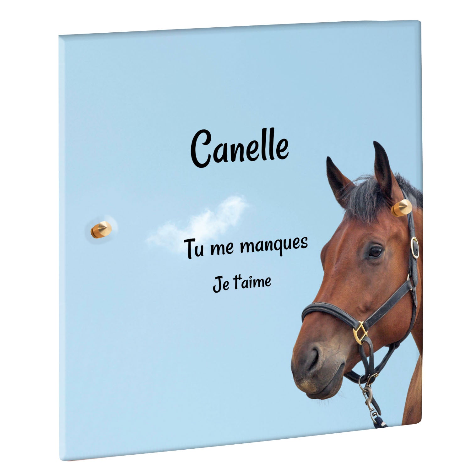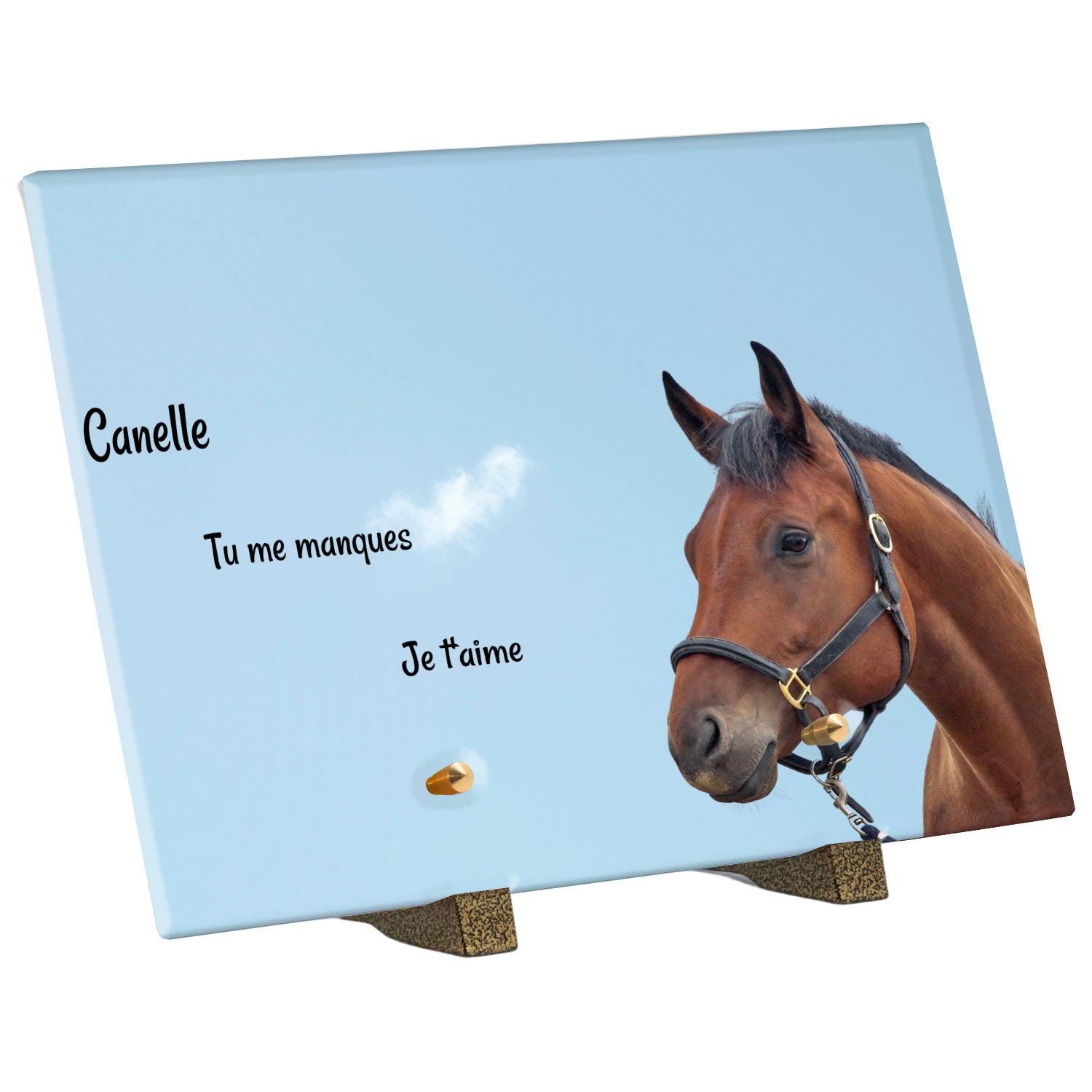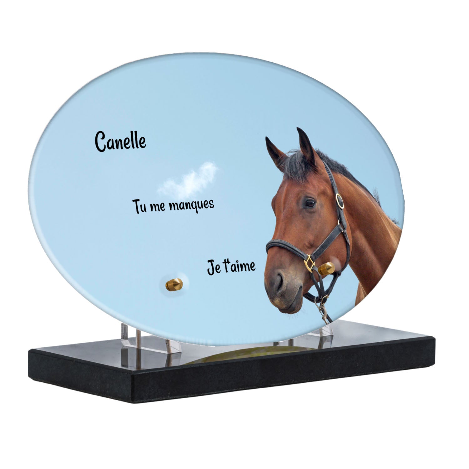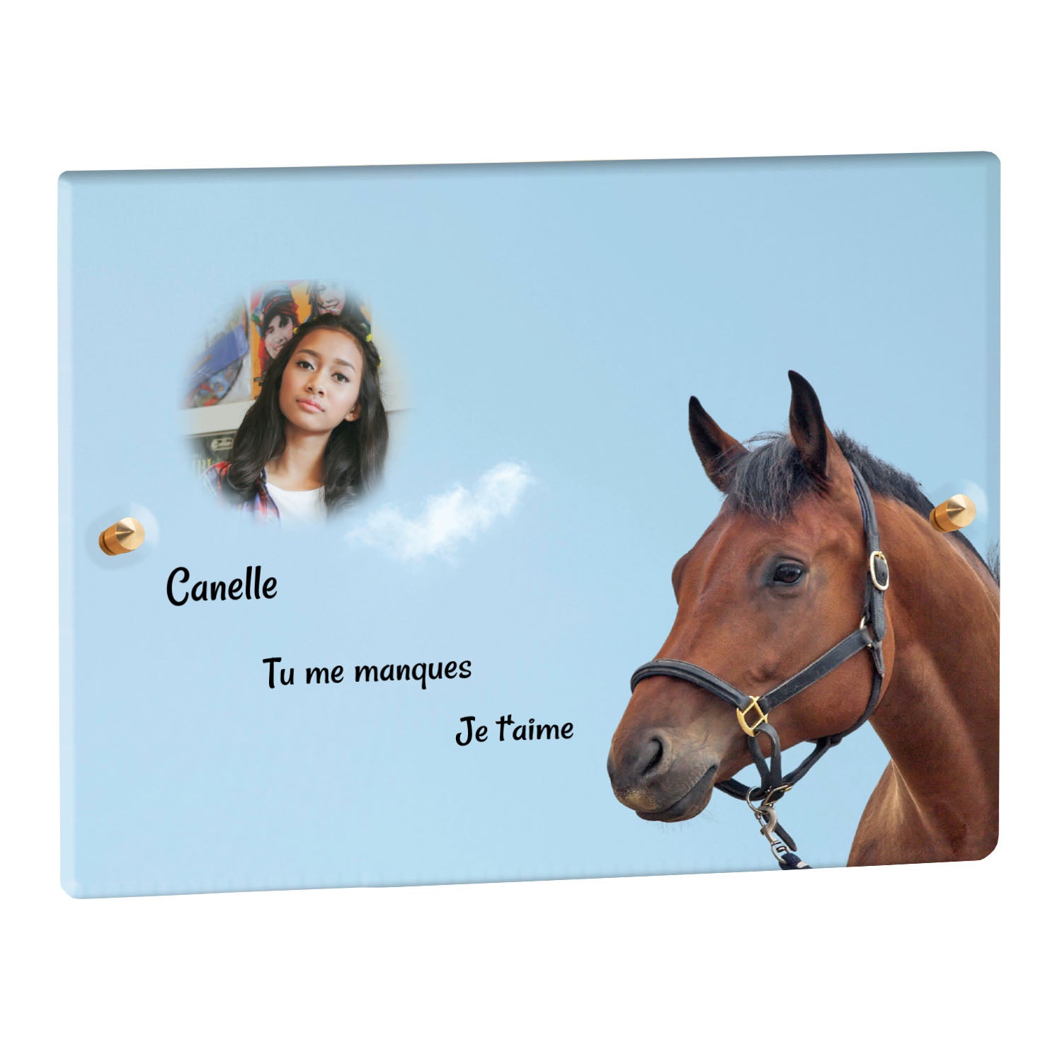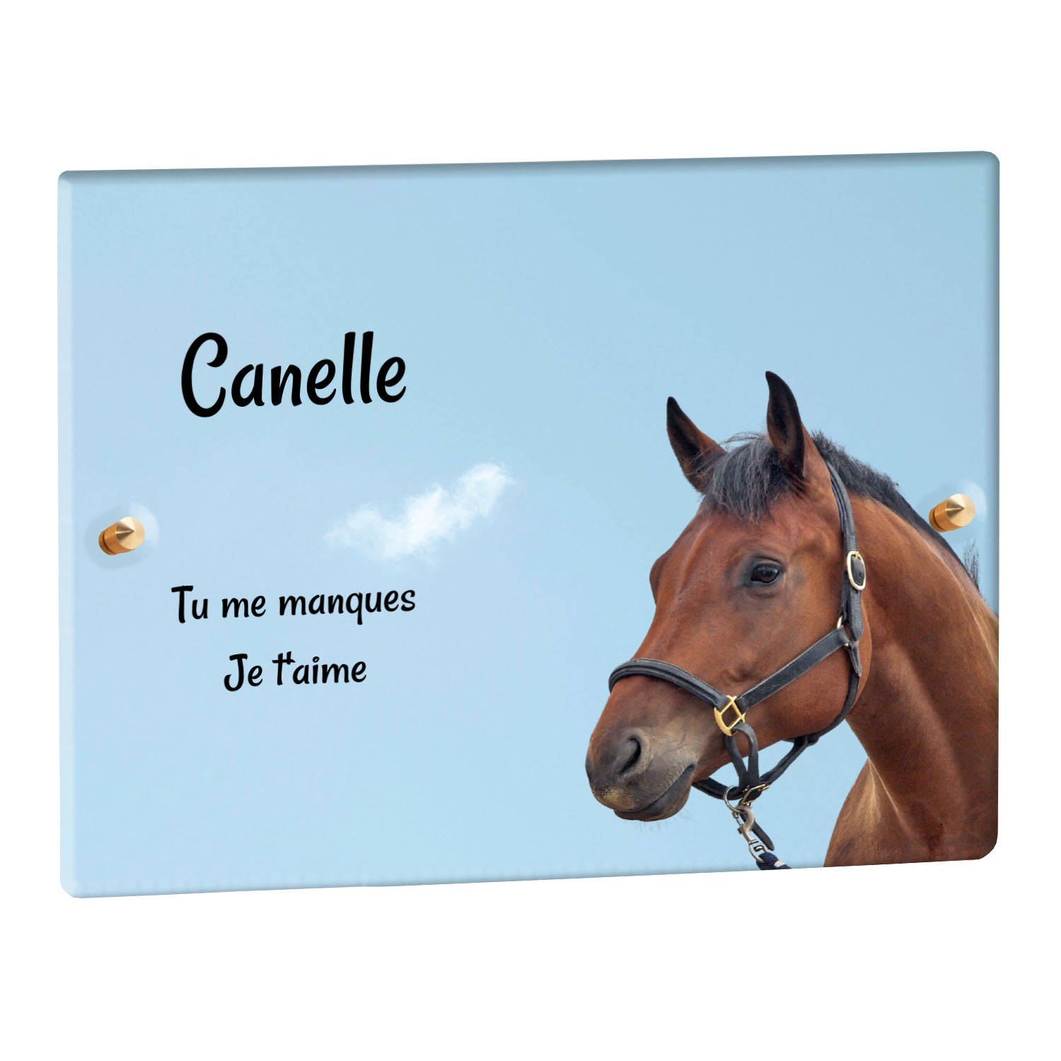 Offrez un hommage unique avec cette plaque funéraire personnalisée représentant un cheval, symbole de force et de liberté. Conçue en plexiglas, cette plaque mortuaire moderne allie élégance et résistance, idéale pour une commémoration durable. Son design soigné s’intègre parfaitement dans tout environnement funéraire, apportant une touche contemporaine et respectueuse.