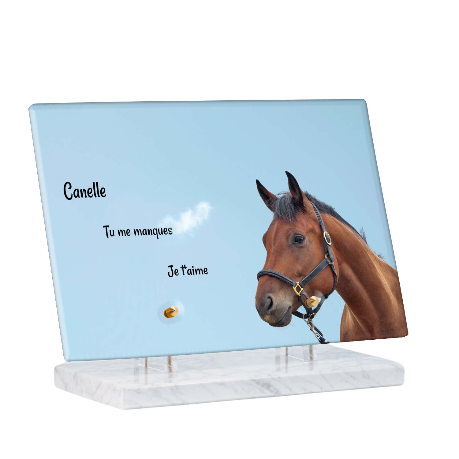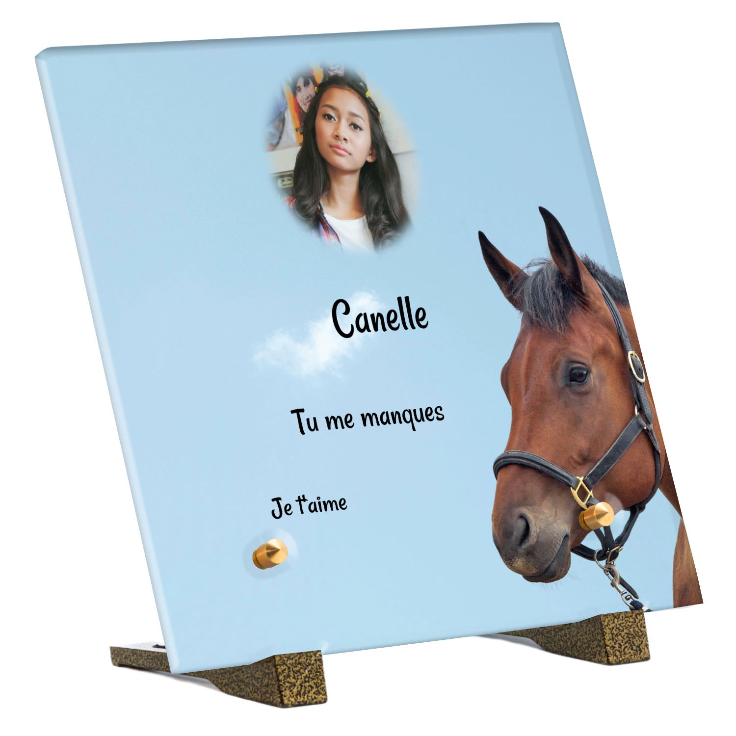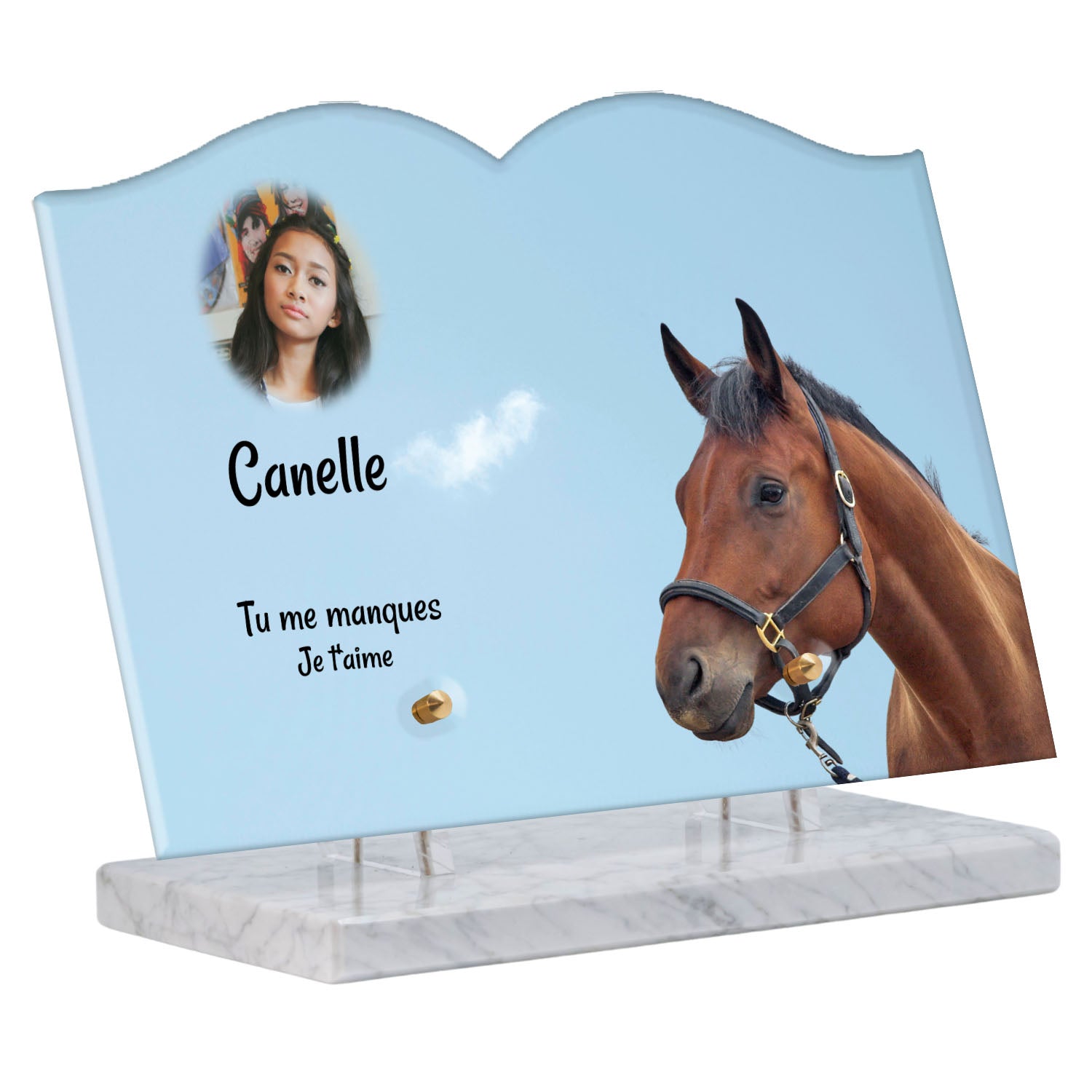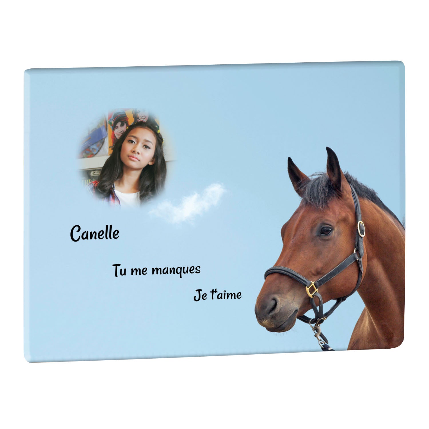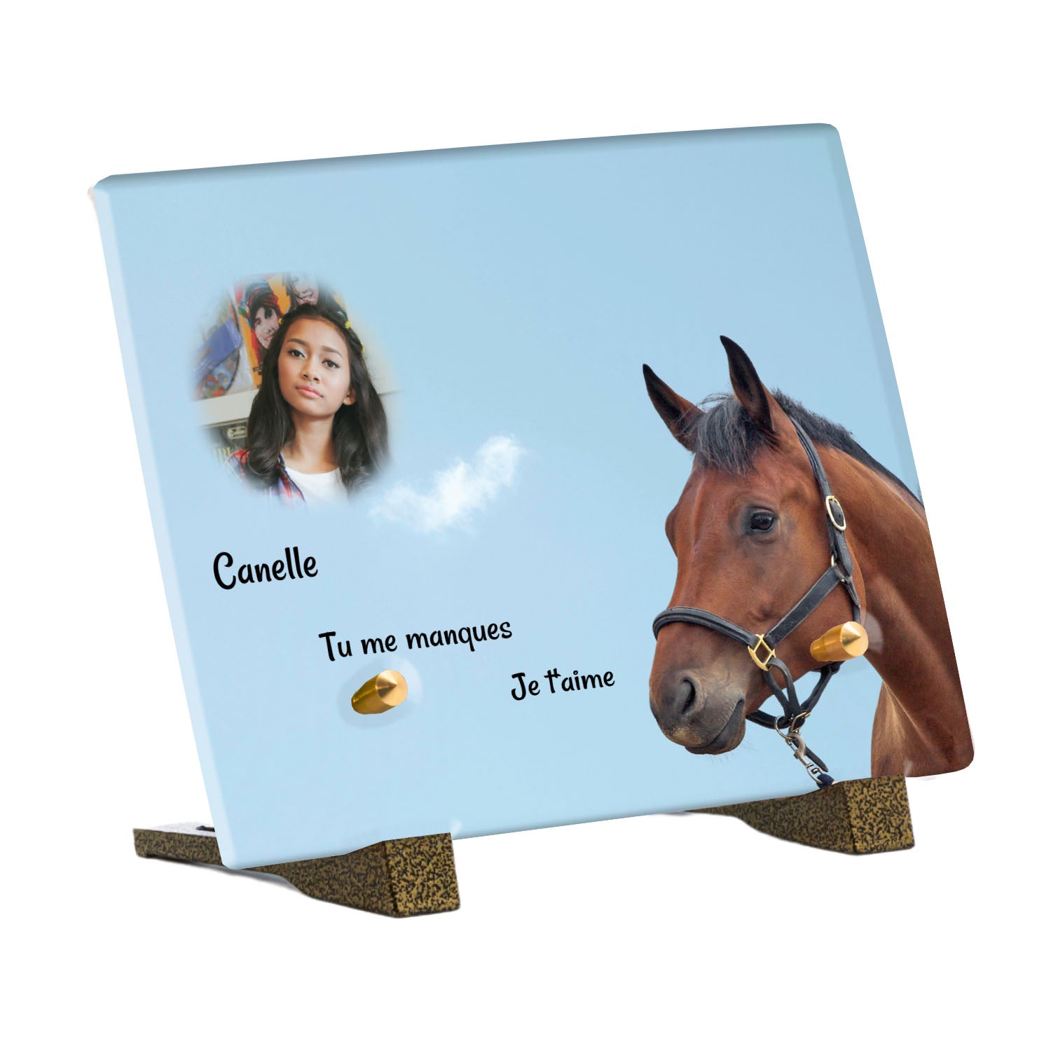 Offrez un hommage unique avec cette plaque funéraire personnalisée représentant un cheval, symbole de force et de liberté. Conçue en plexiglas, cette plaque mortuaire moderne allie élégance et résistance, idéale pour une commémoration durable. Son design soigné s’intègre parfaitement dans tout environnement funéraire, apportant une touche contemporaine et respectueuse.