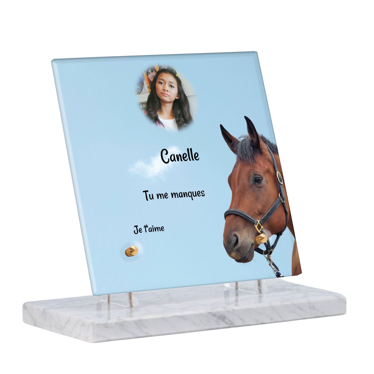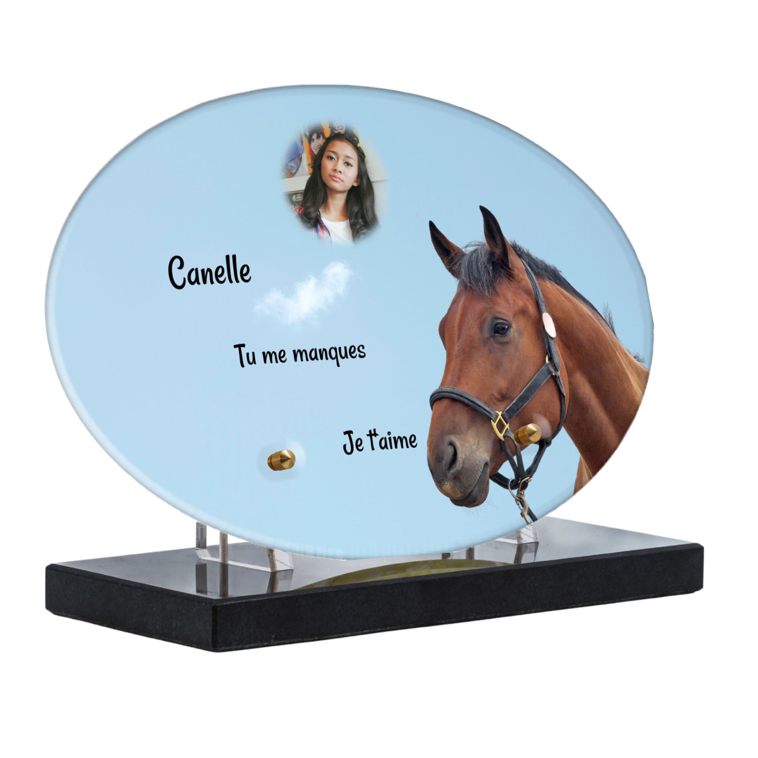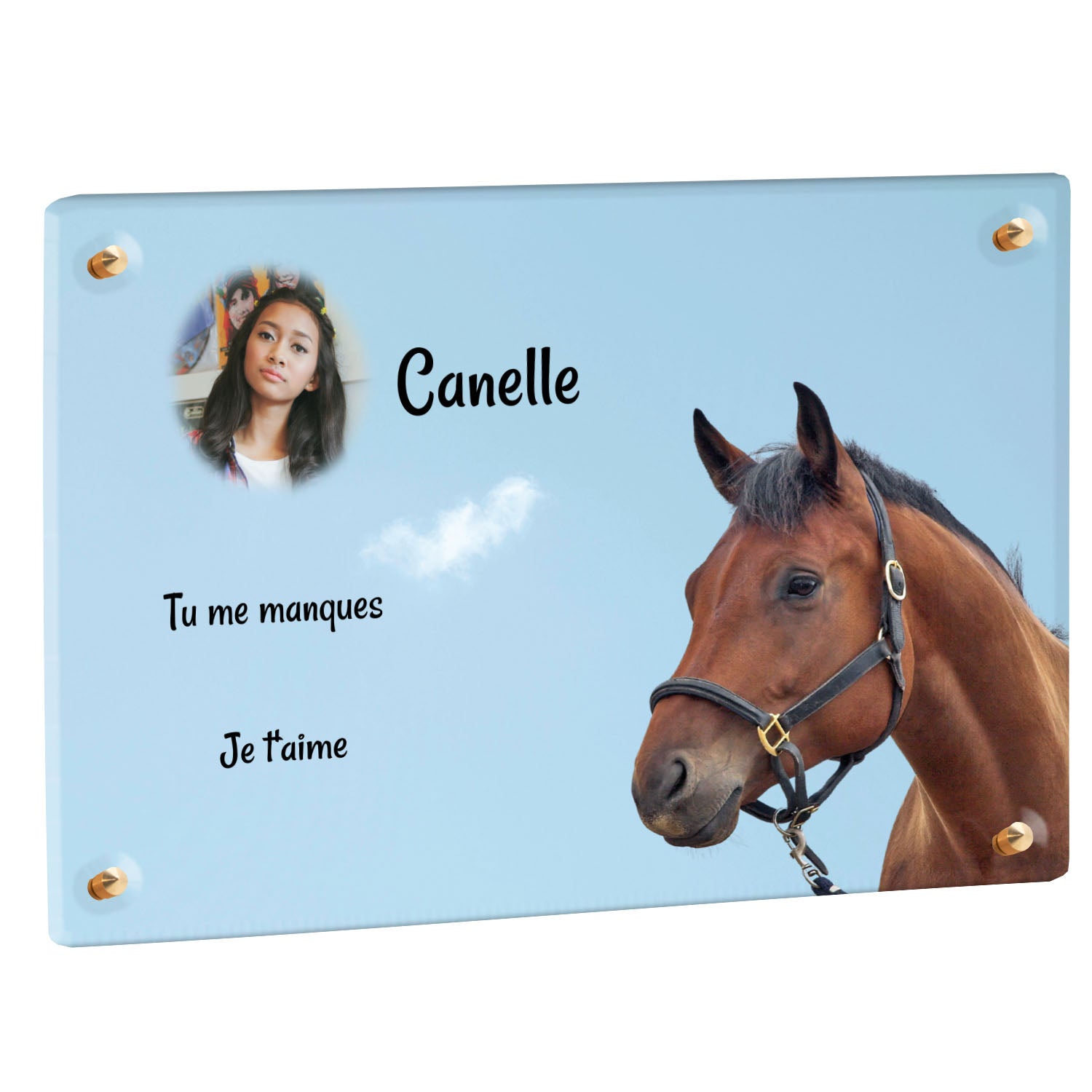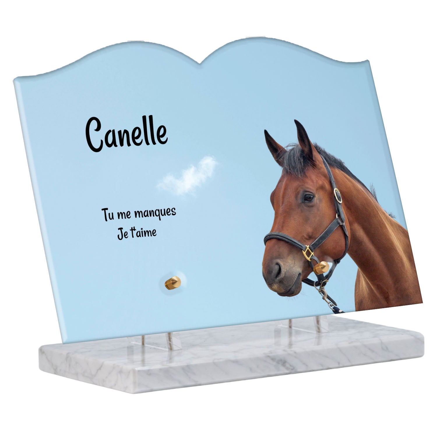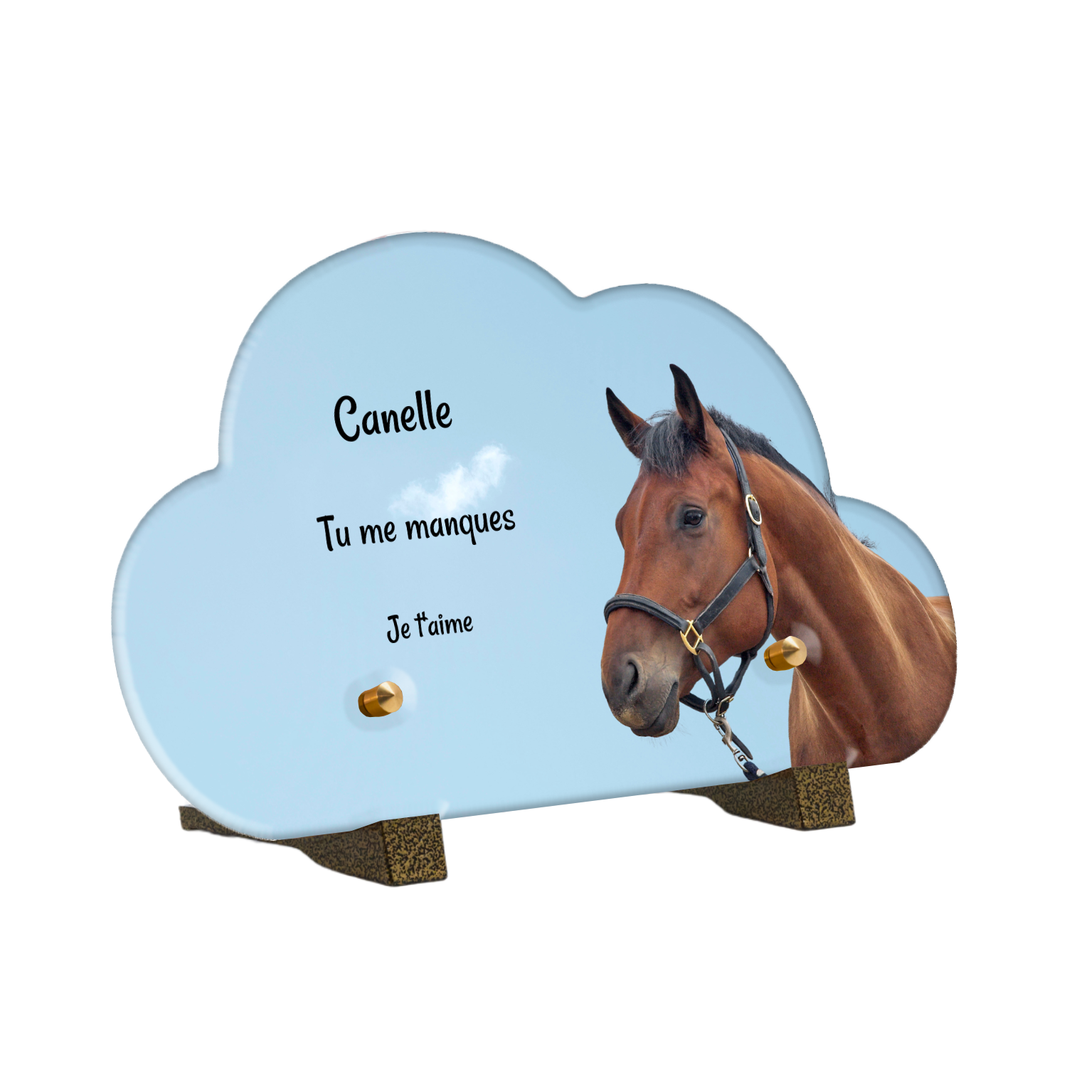 Offrez un hommage unique avec cette plaque funéraire personnalisée représentant un cheval, symbole de force et de liberté. Conçue en plexiglas, cette plaque mortuaire moderne allie élégance et résistance, idéale pour une commémoration durable. Son design soigné s’intègre parfaitement dans tout environnement funéraire, apportant une touche contemporaine et respectueuse.