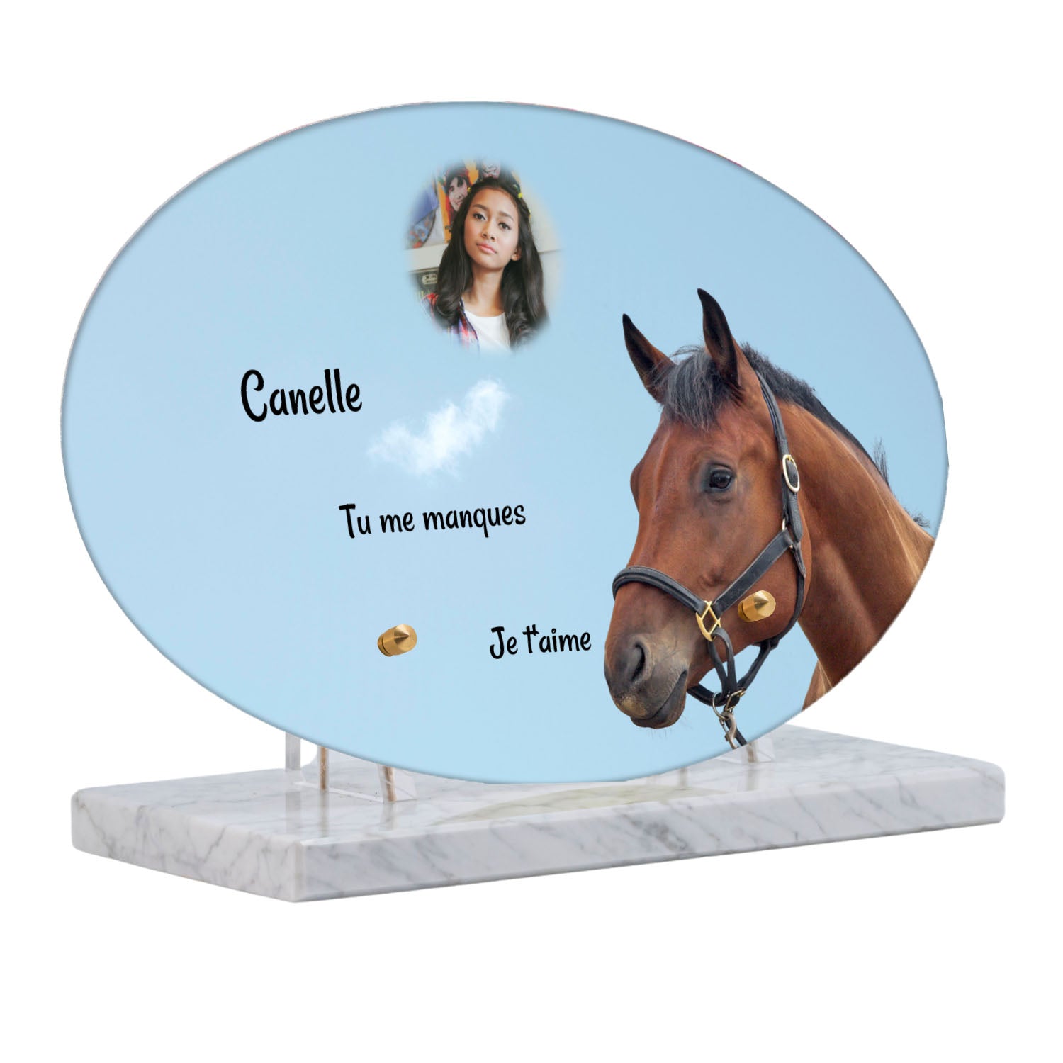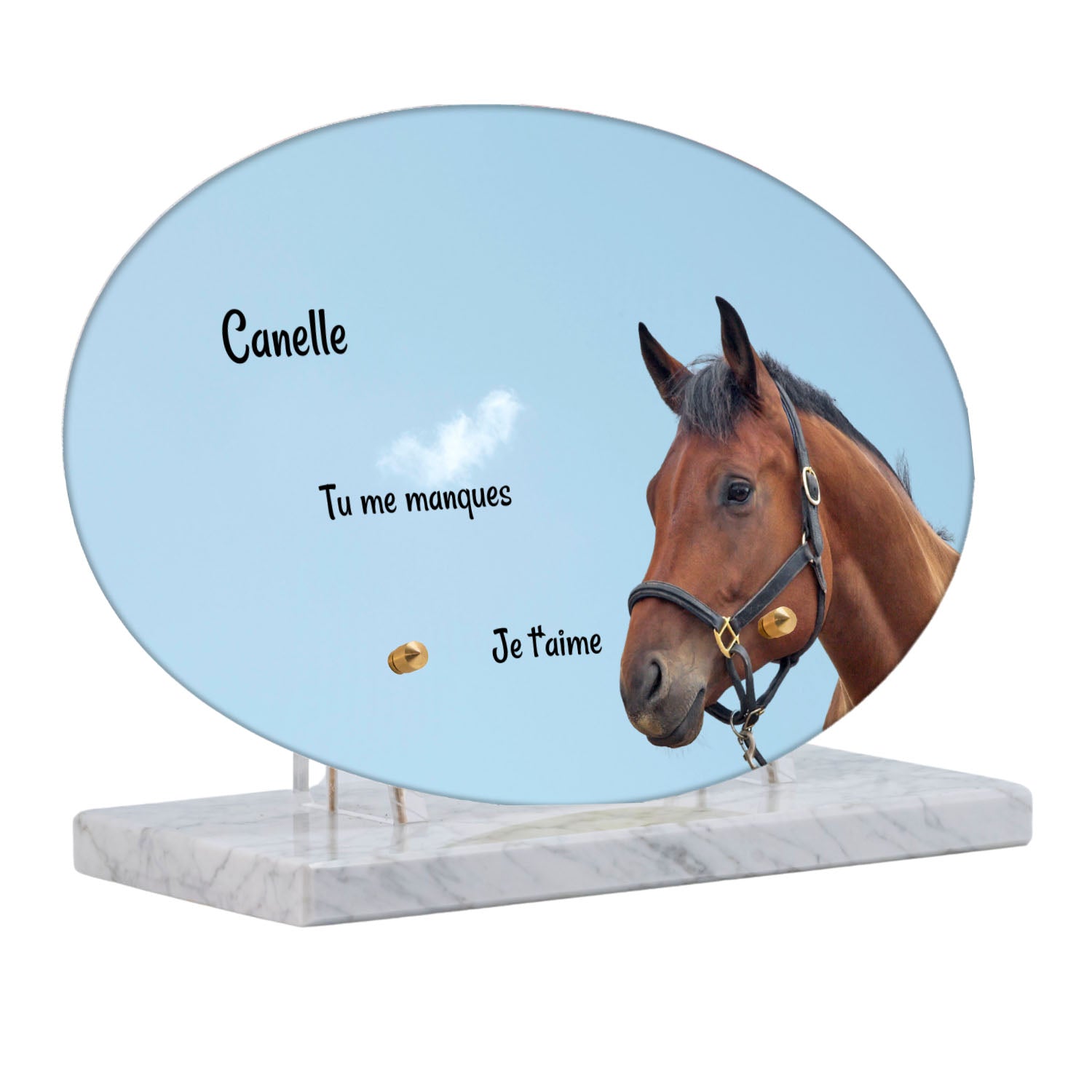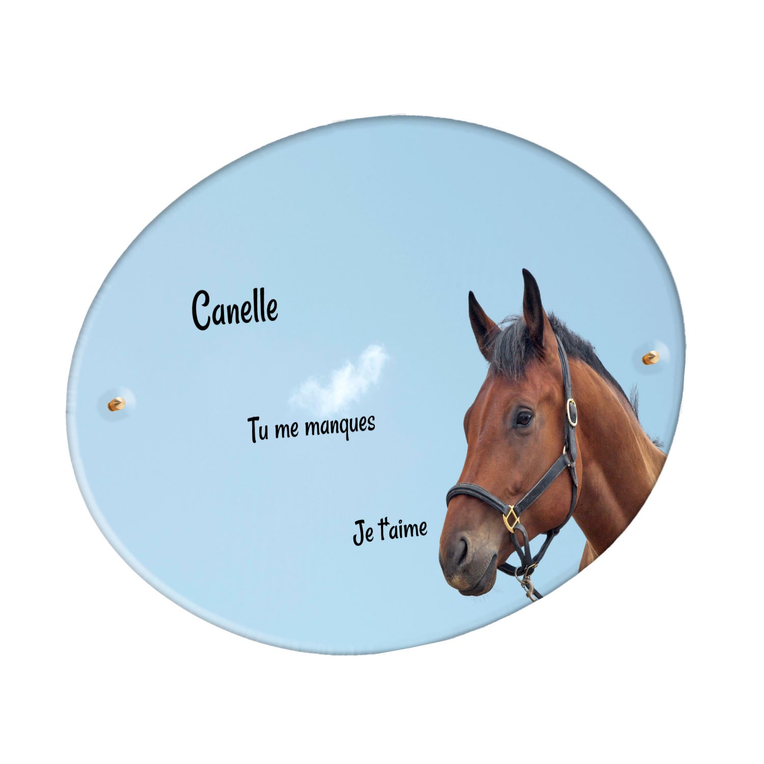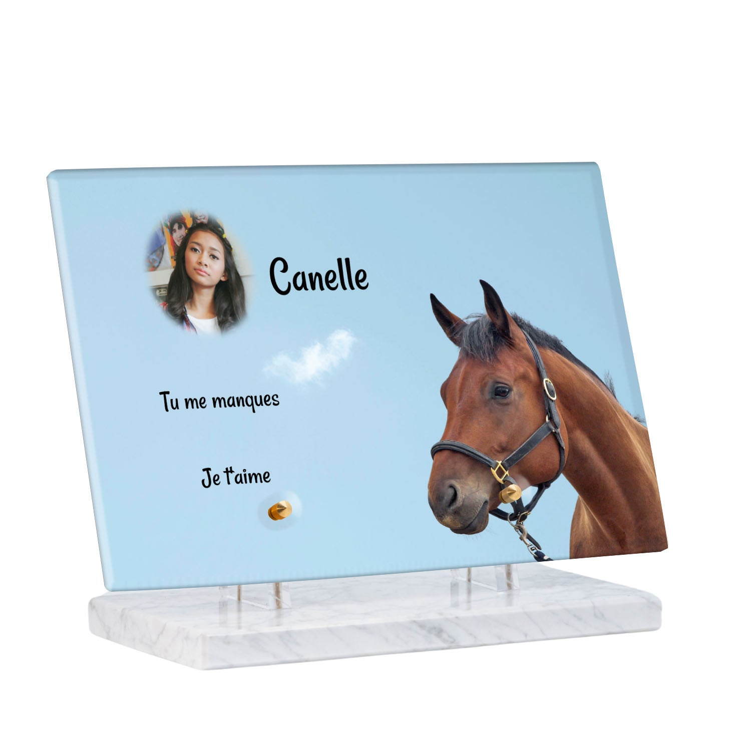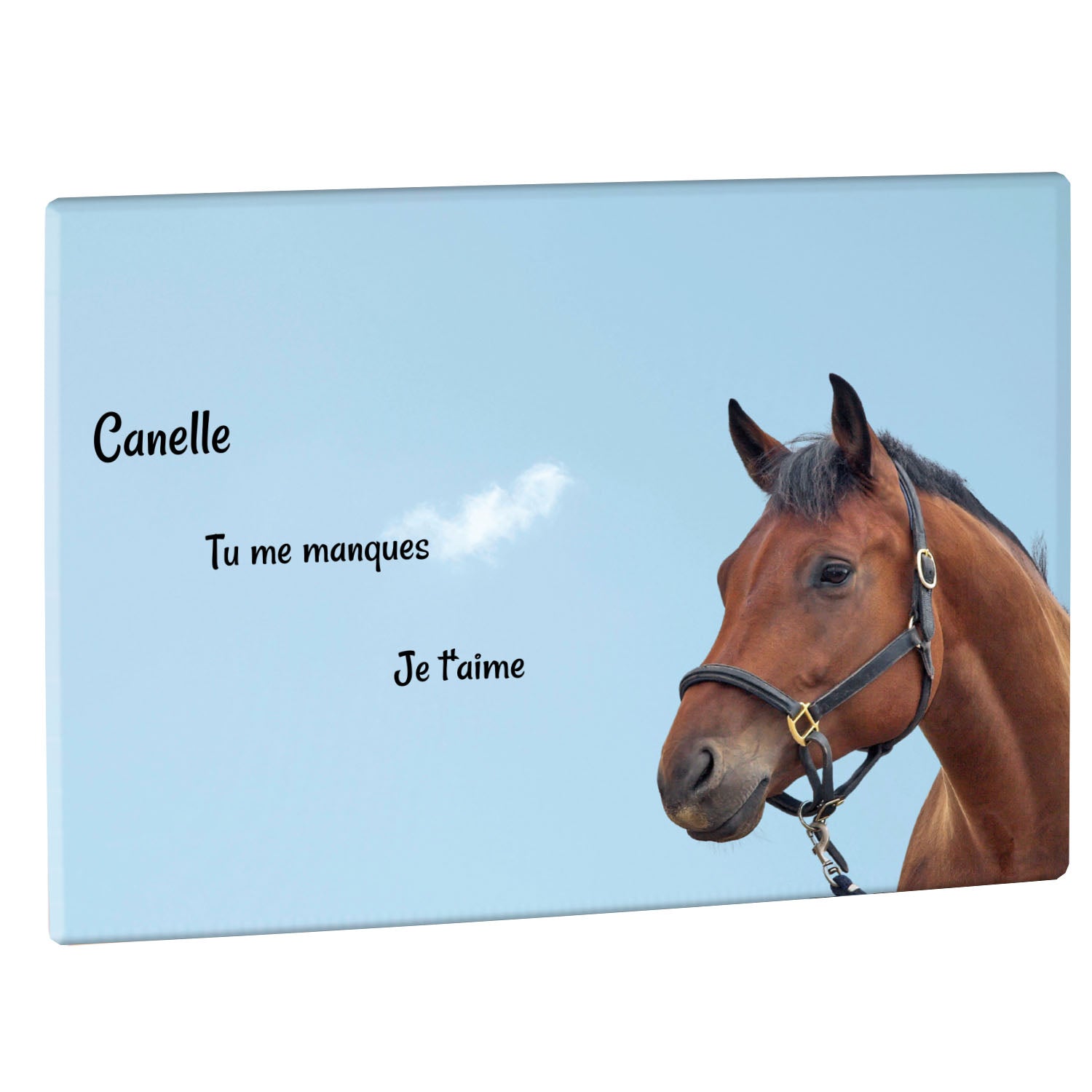 Offrez un hommage unique avec cette plaque funéraire personnalisée représentant un cheval, symbole de force et de liberté. Conçue en plexiglas, cette plaque mortuaire moderne allie élégance et résistance, idéale pour une commémoration durable. Son design soigné s’intègre parfaitement dans tout environnement funéraire, apportant une touche contemporaine et respectueuse.