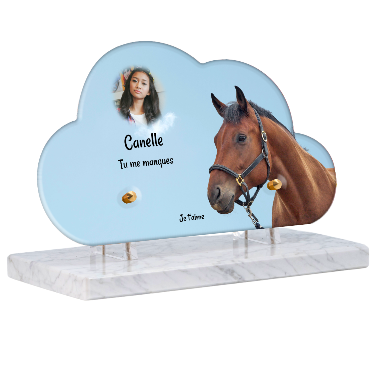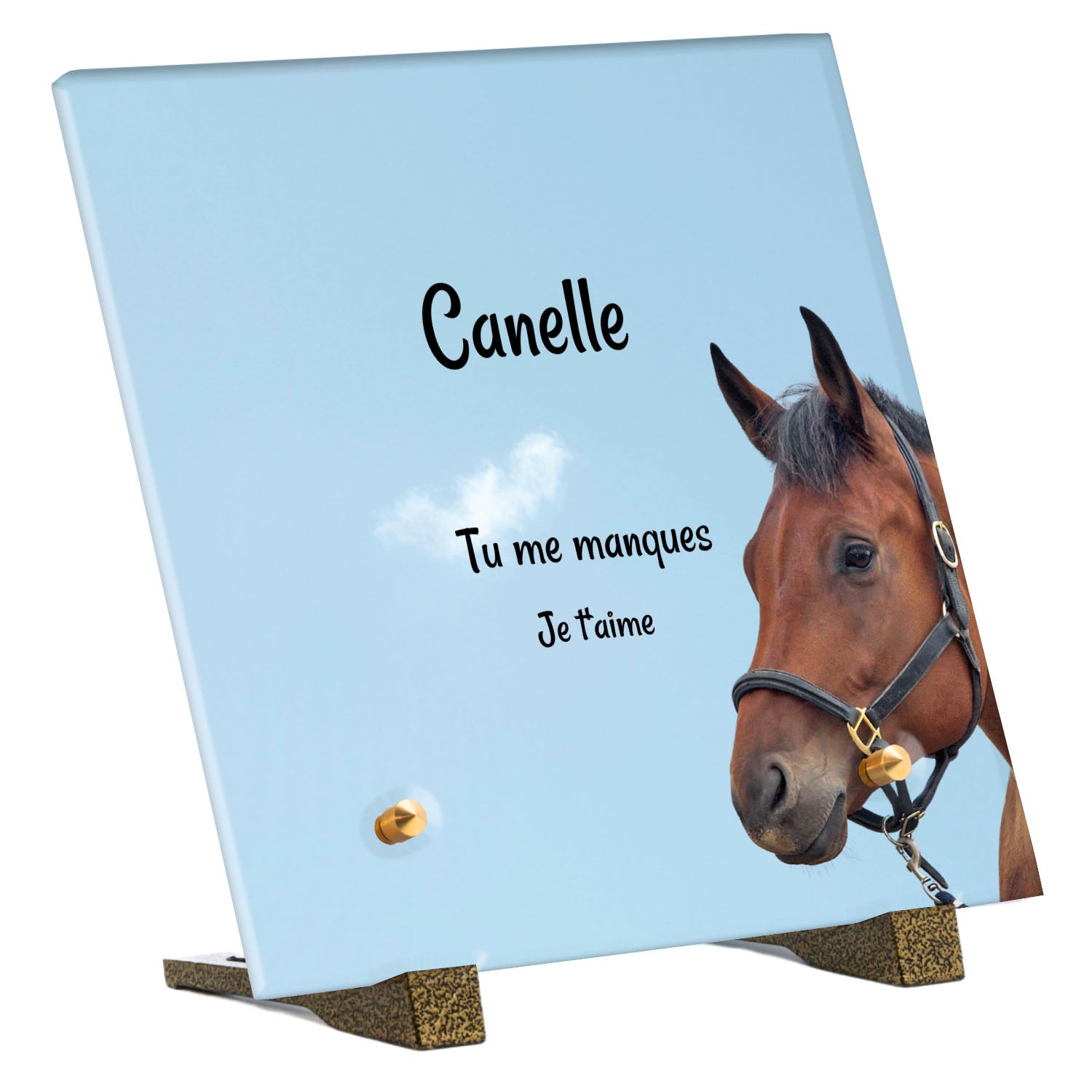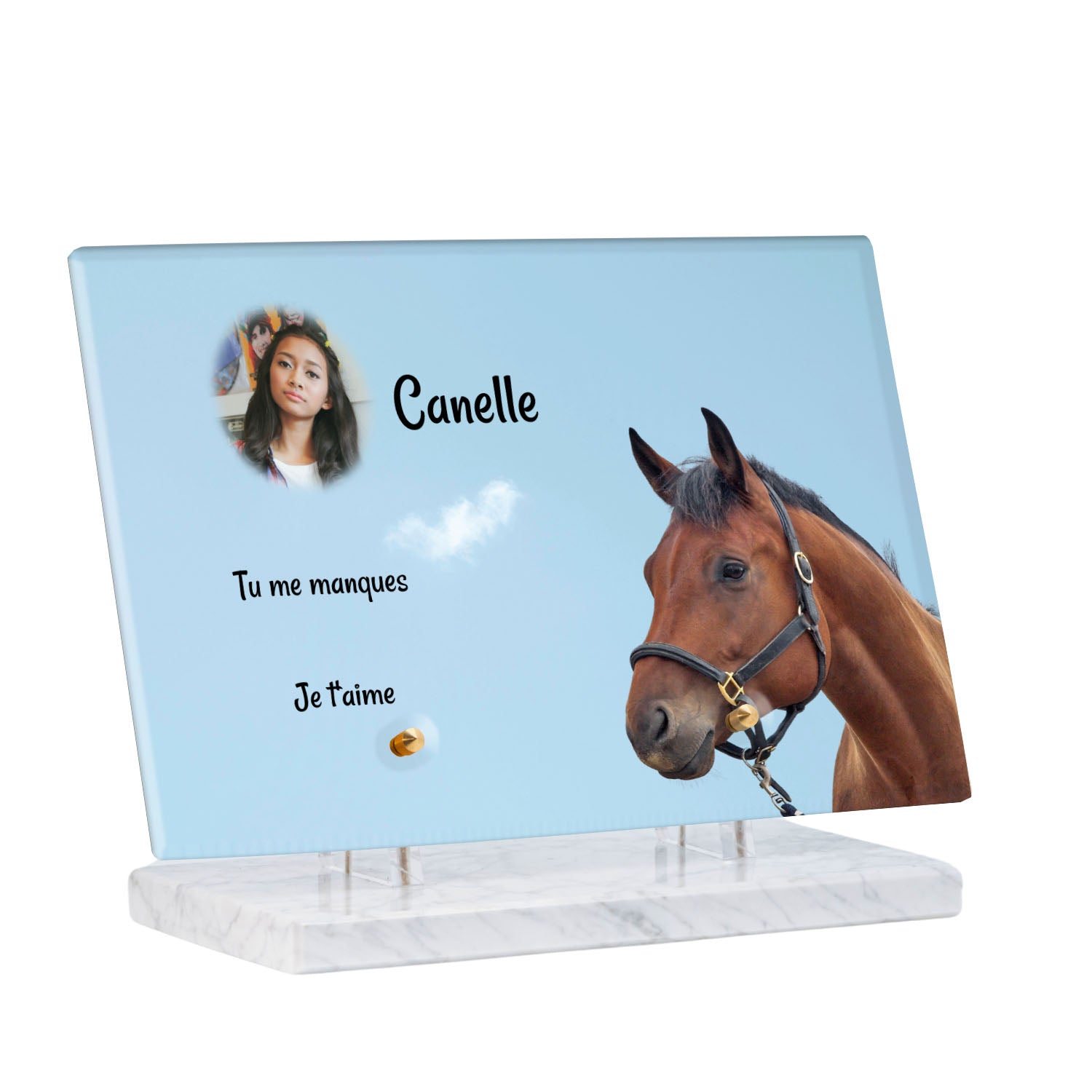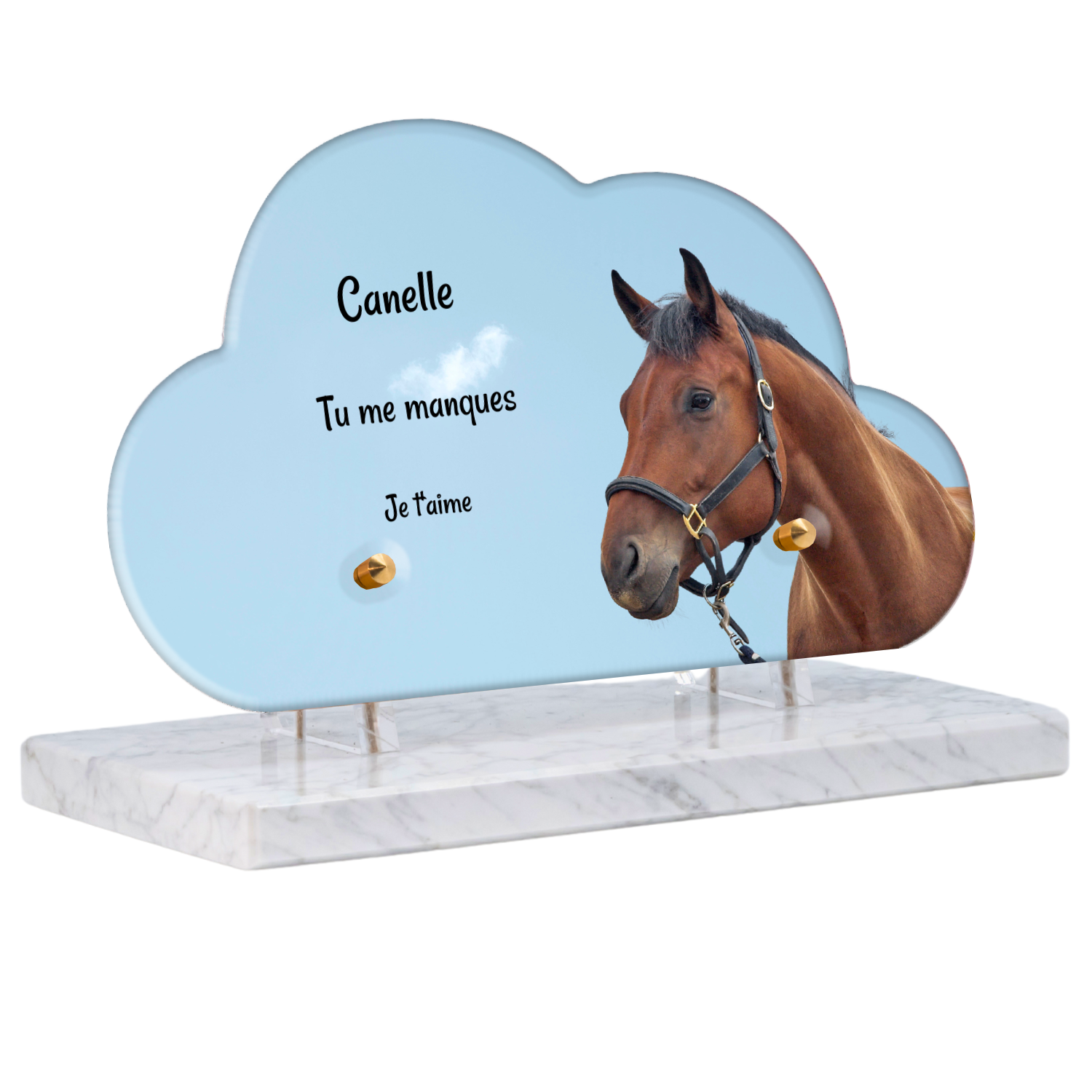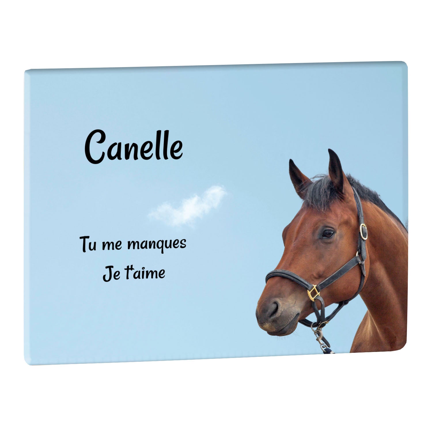 Offrez un hommage unique avec cette plaque funéraire personnalisée représentant un cheval, symbole de force et de liberté. Conçue en plexiglas, cette plaque mortuaire moderne allie élégance et résistance, idéale pour une commémoration durable. Son design soigné s’intègre parfaitement dans tout environnement funéraire, apportant une touche contemporaine et respectueuse.