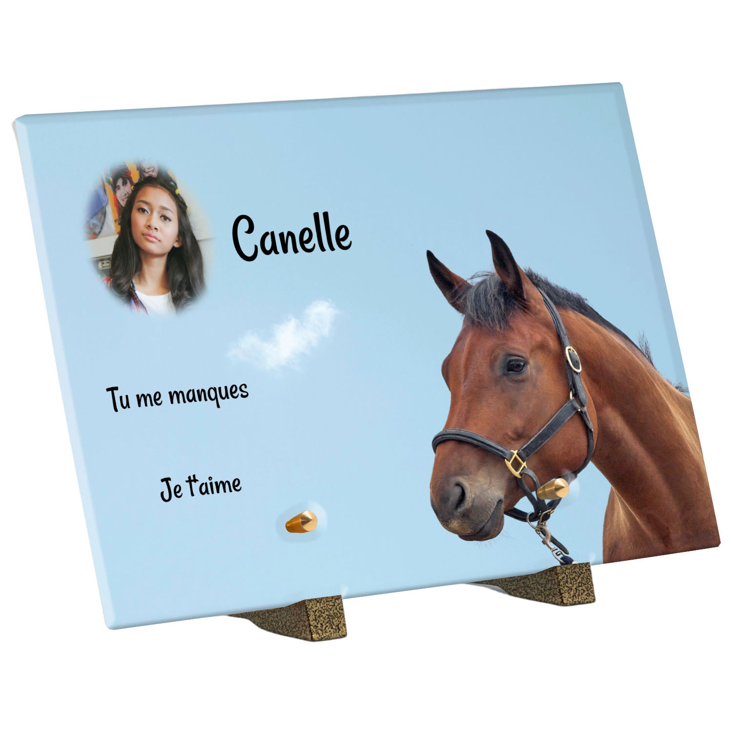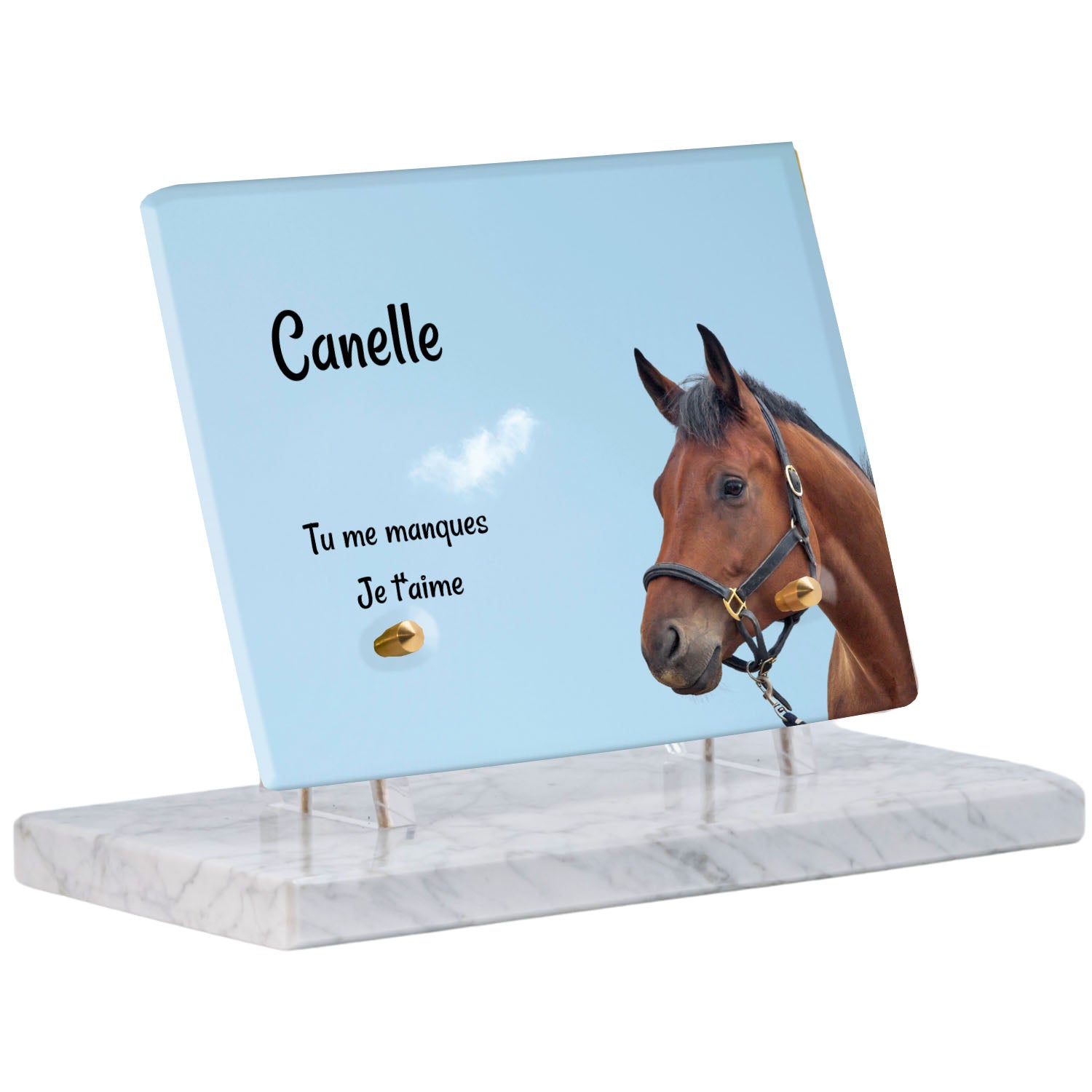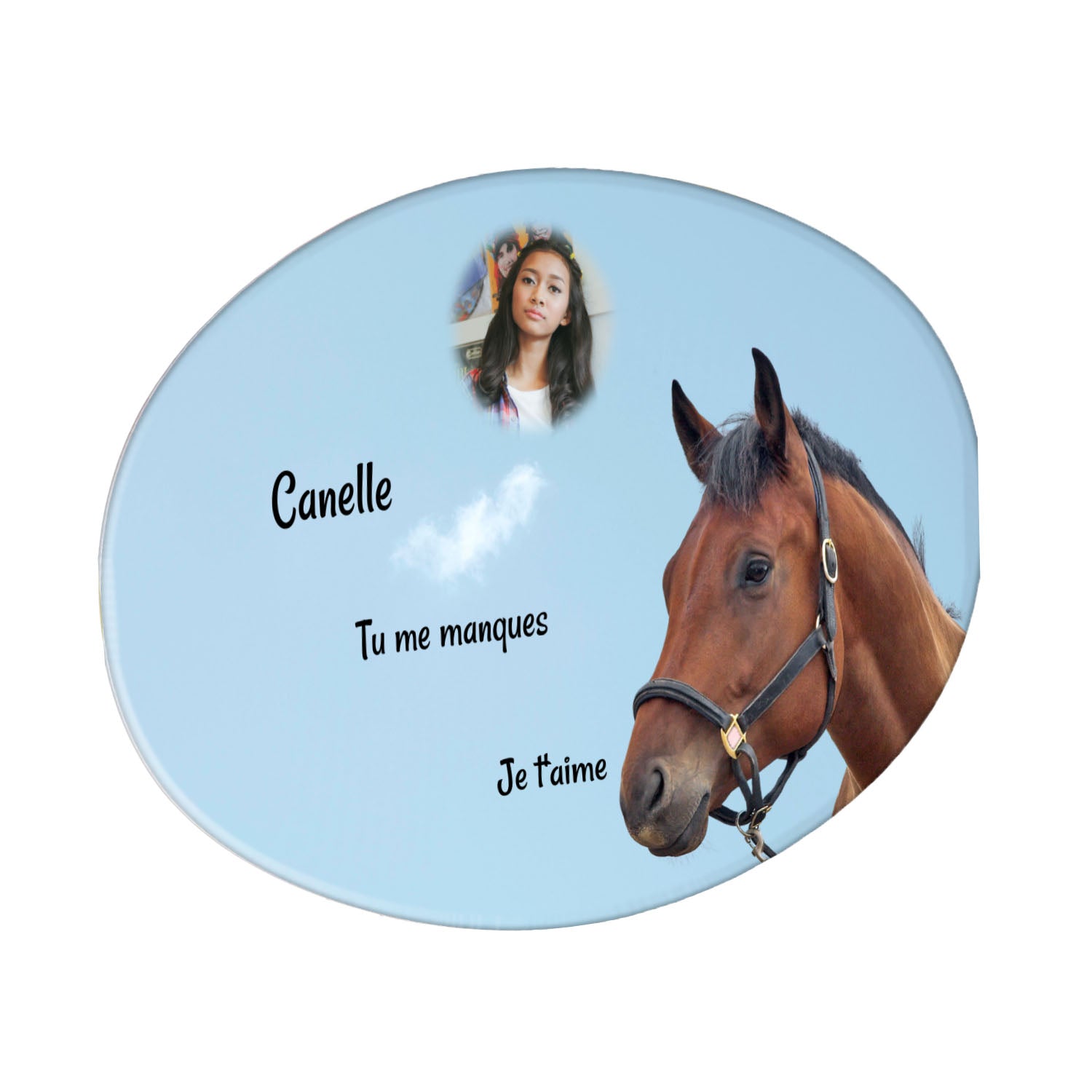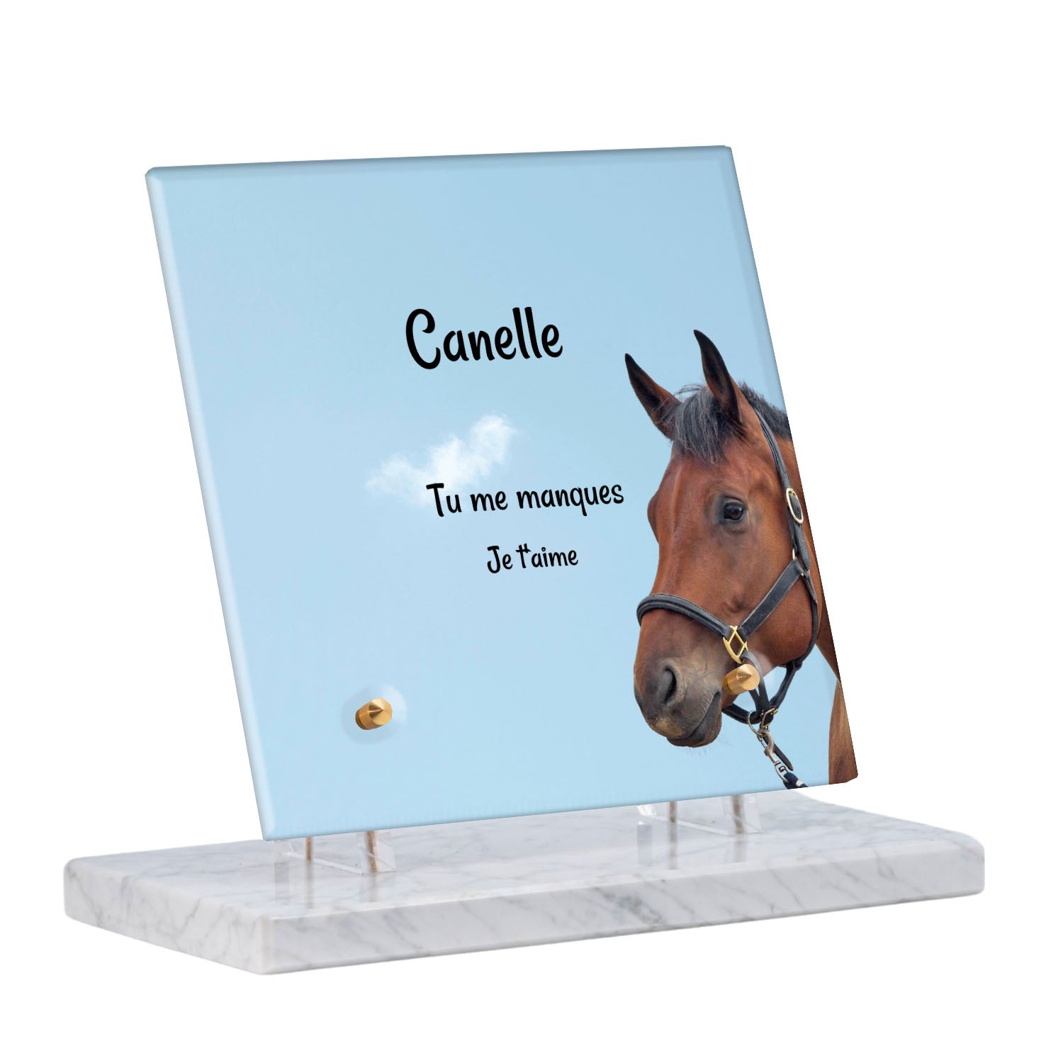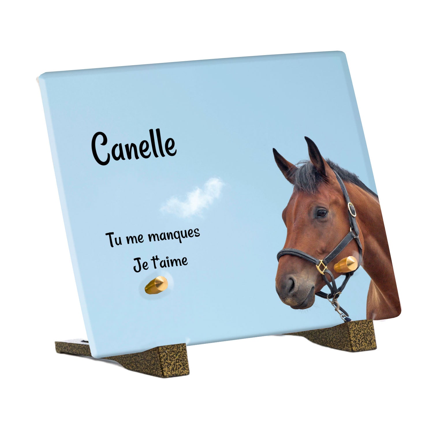 Offrez un hommage unique avec cette plaque funéraire personnalisée représentant un cheval, symbole de force et de liberté. Conçue en plexiglas, cette plaque mortuaire moderne allie élégance et résistance, idéale pour une commémoration durable. Son design soigné s’intègre parfaitement dans tout environnement funéraire, apportant une touche contemporaine et respectueuse.