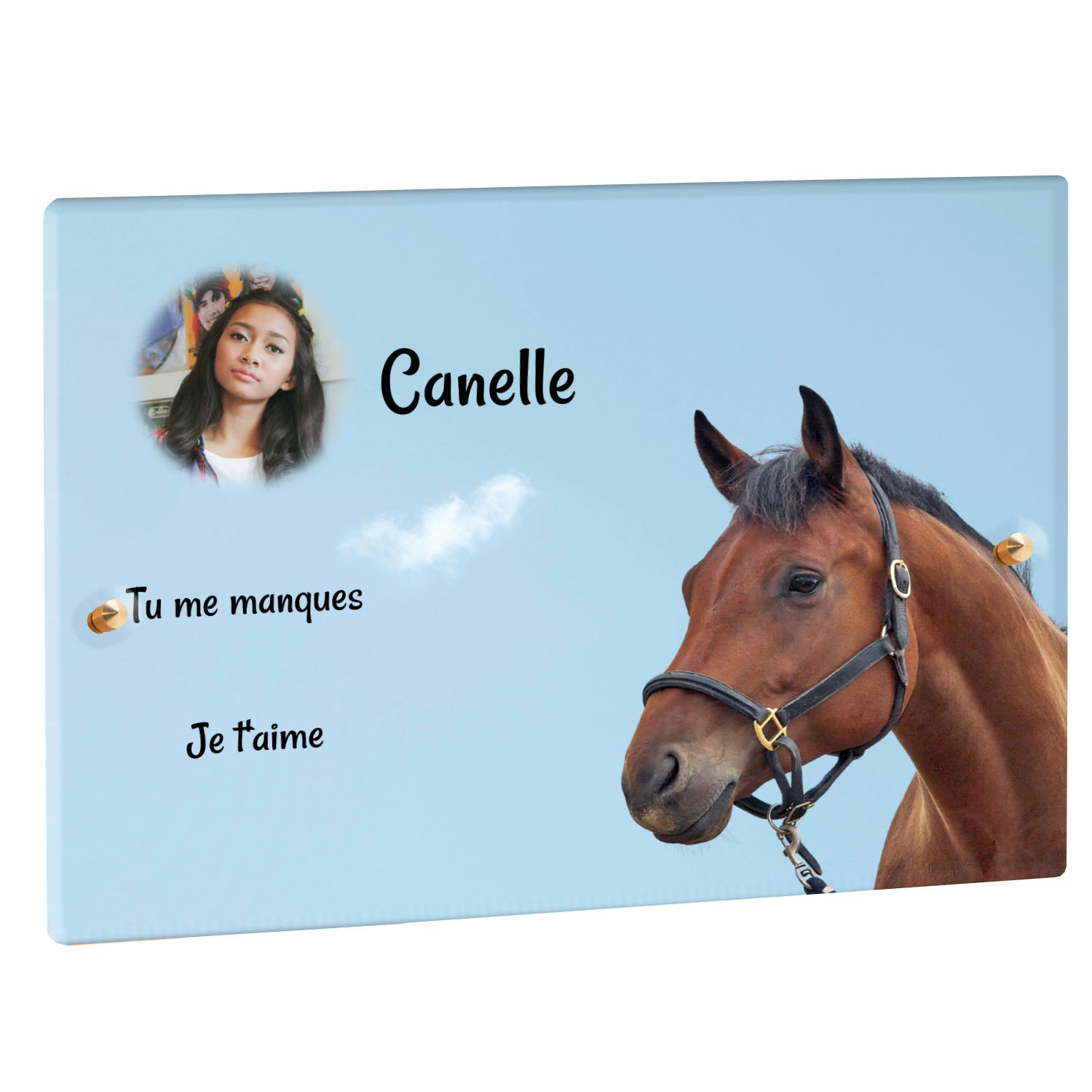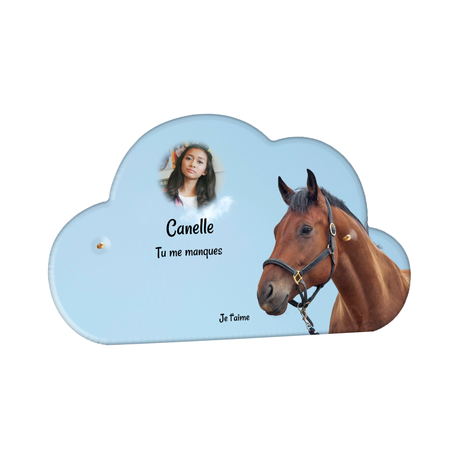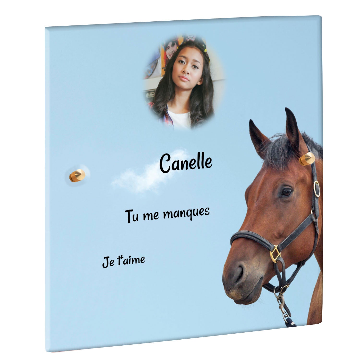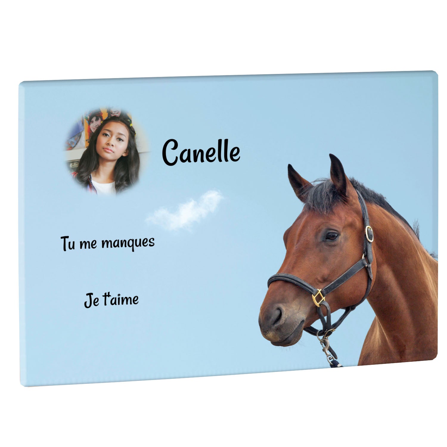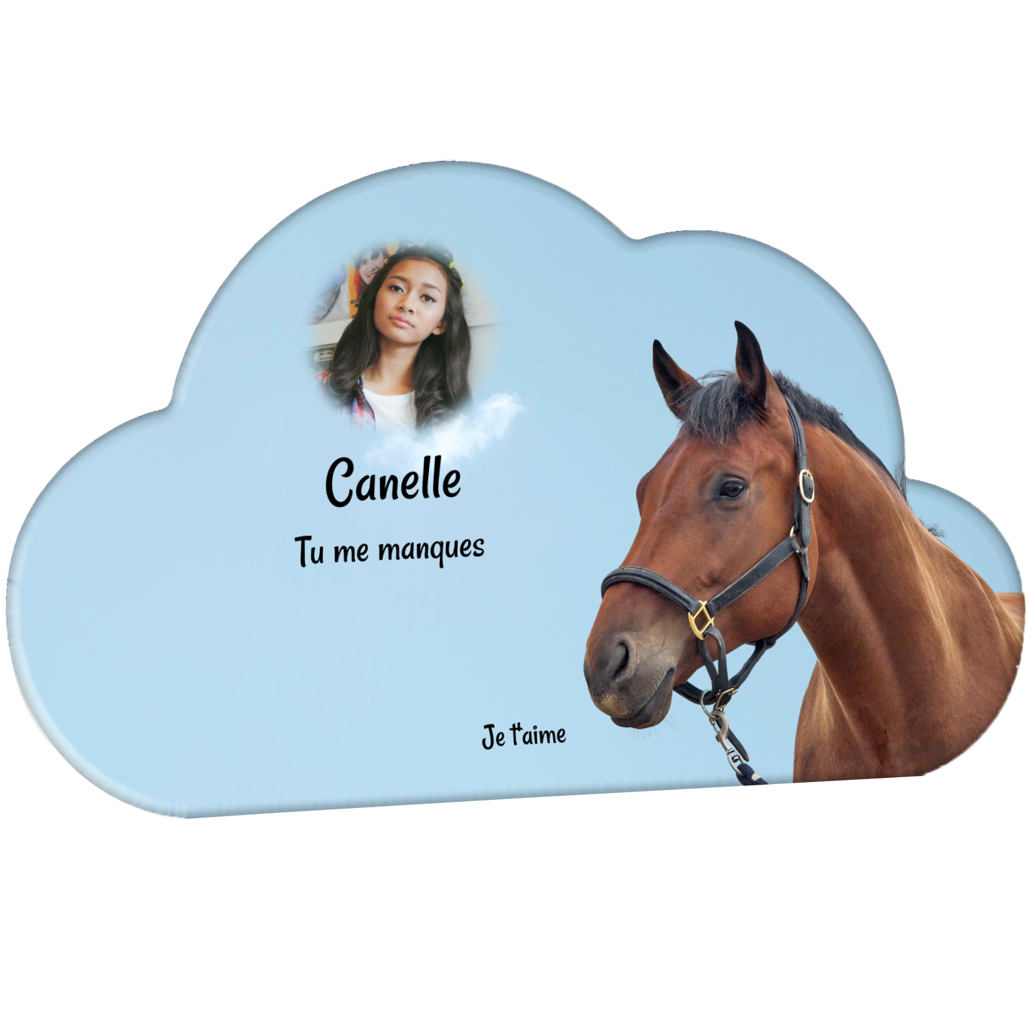 Offrez un hommage unique avec cette plaque funéraire personnalisée représentant un cheval, symbole de force et de liberté. Conçue en plexiglas, cette plaque mortuaire moderne allie élégance et résistance, idéale pour une commémoration durable. Son design soigné s’intègre parfaitement dans tout environnement funéraire, apportant une touche contemporaine et respectueuse.
