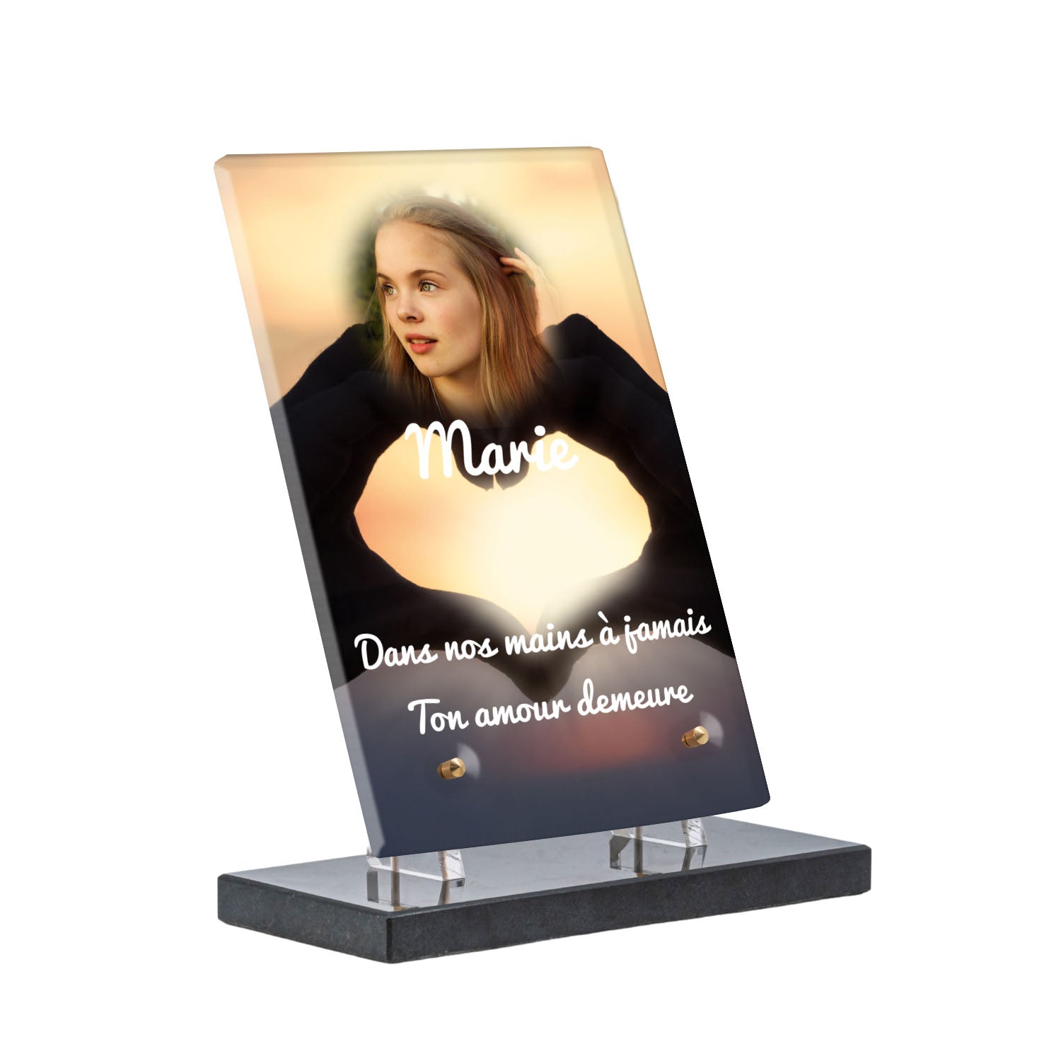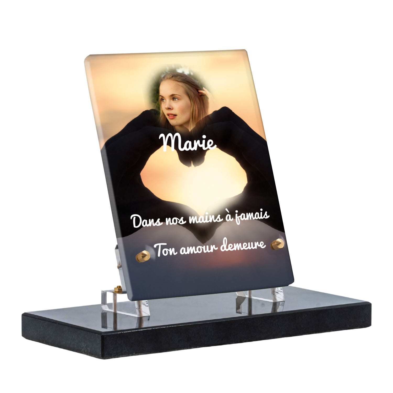 Rectangle vertical 15x20cm / Socle en granit noir / Avec Photo
