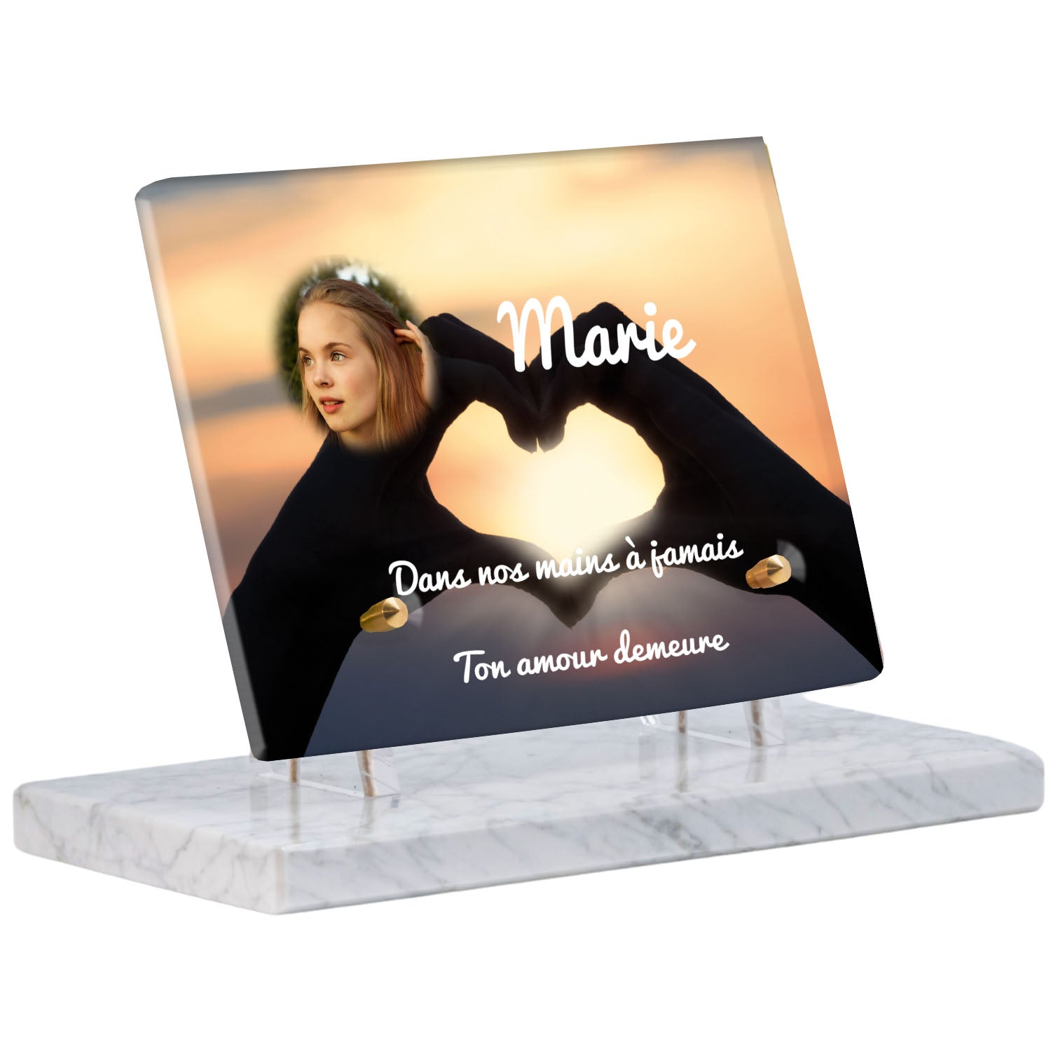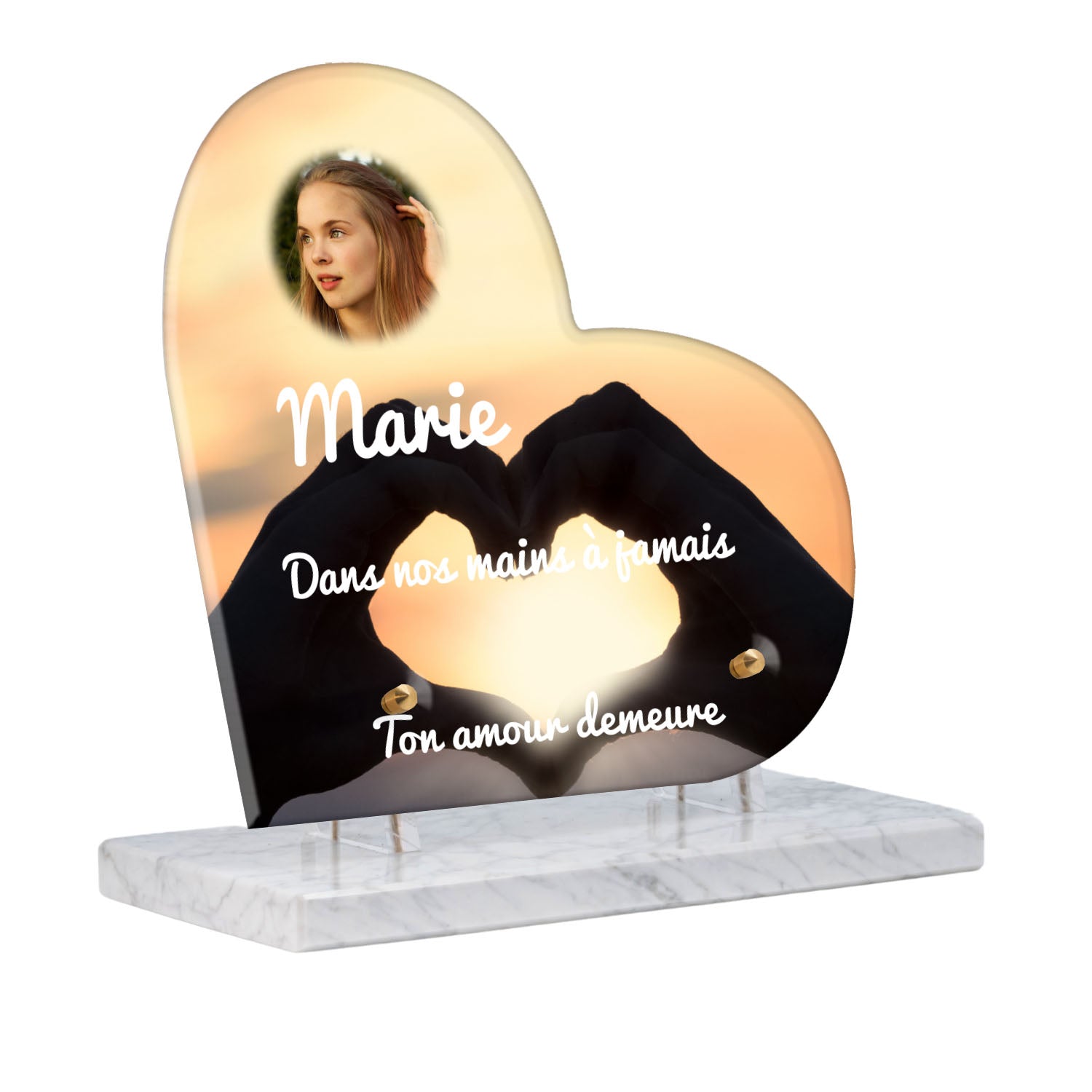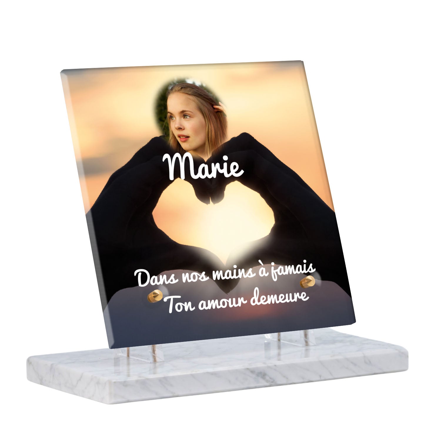 Coeur 23x23cm / Socle en granit blanc / Avec Photo