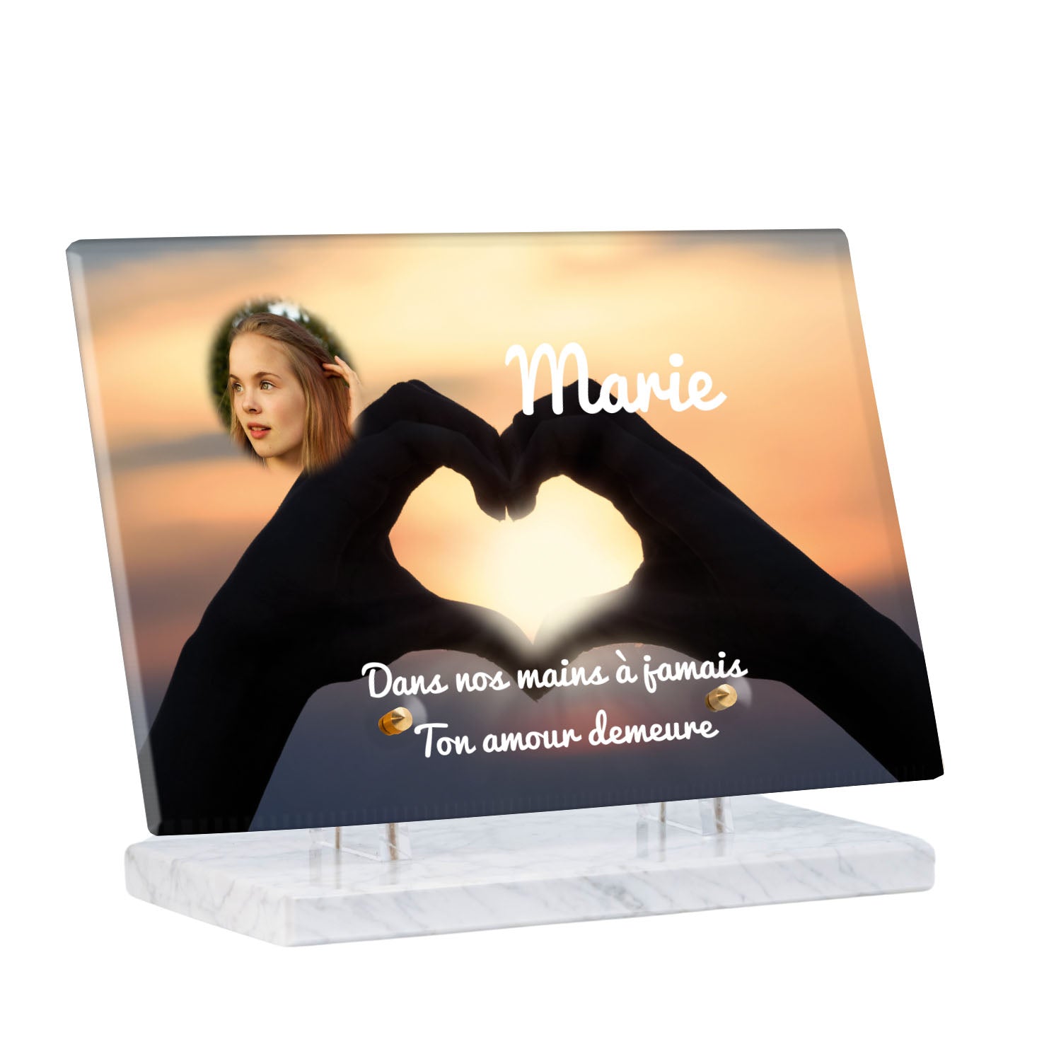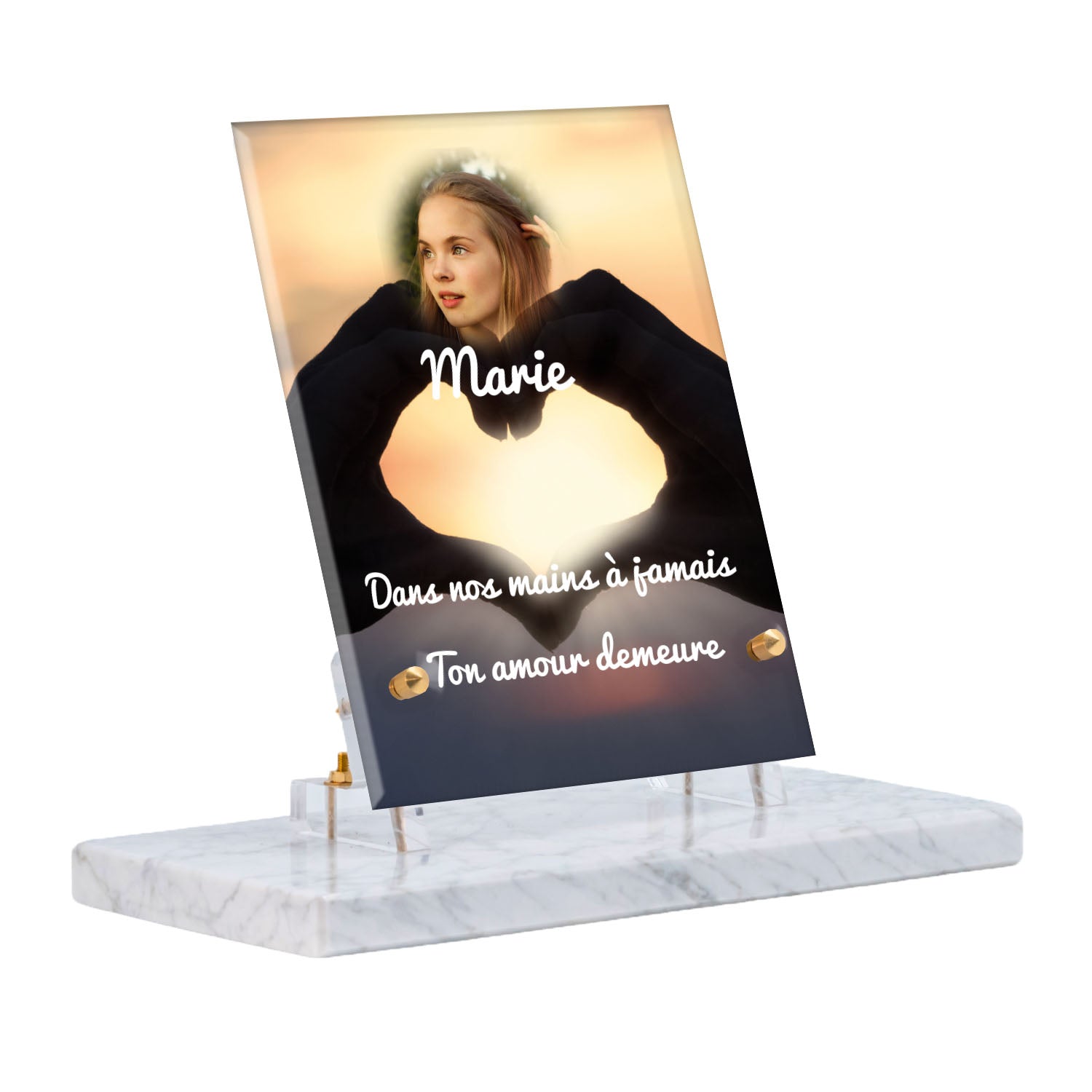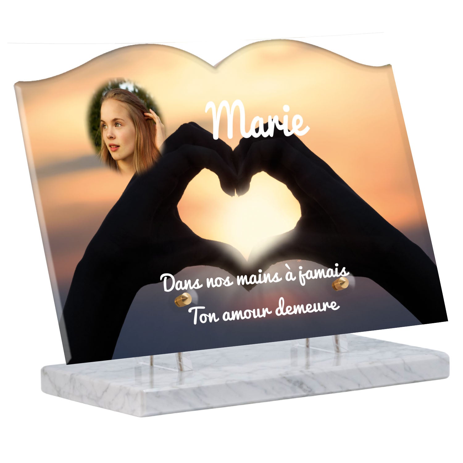 Coeur 23x23cm / Socle en granit blanc / Avec Photo