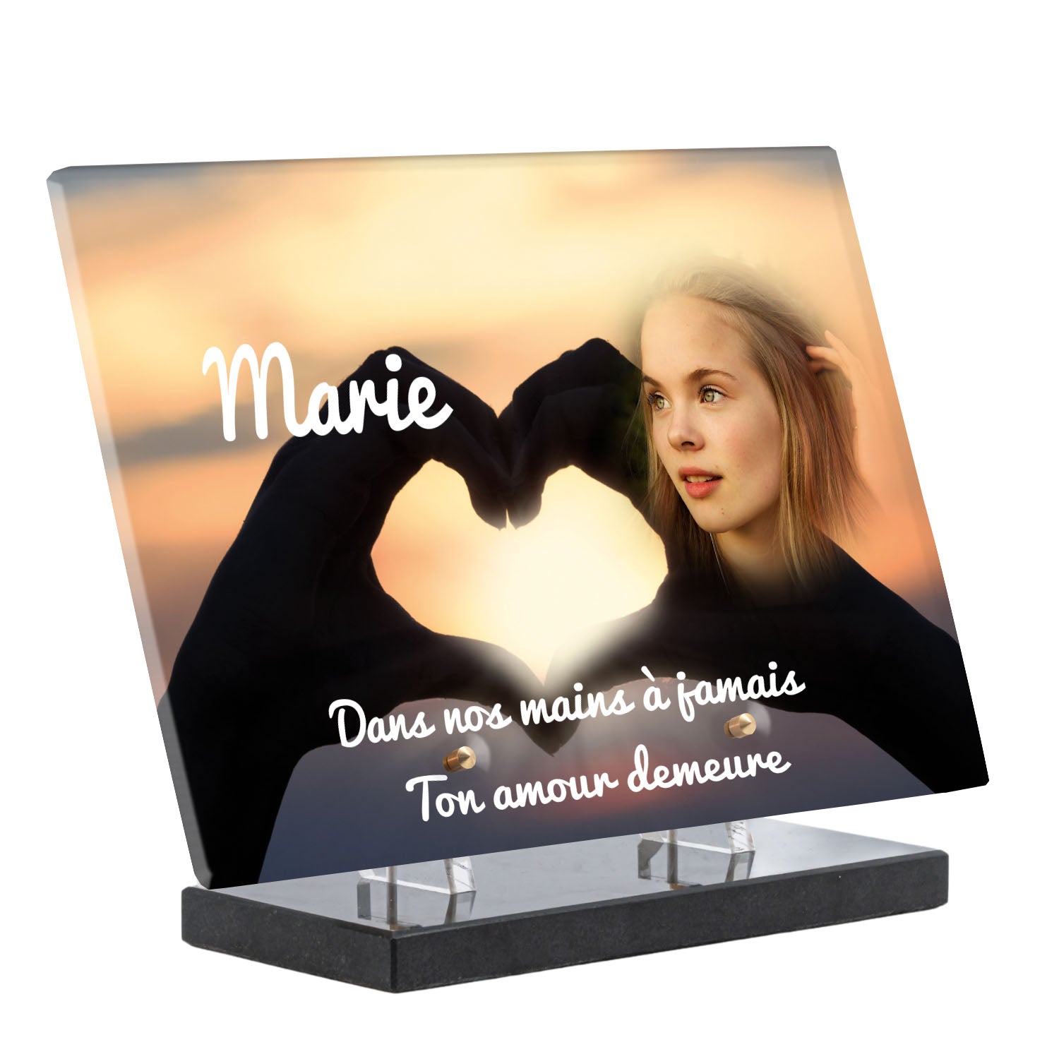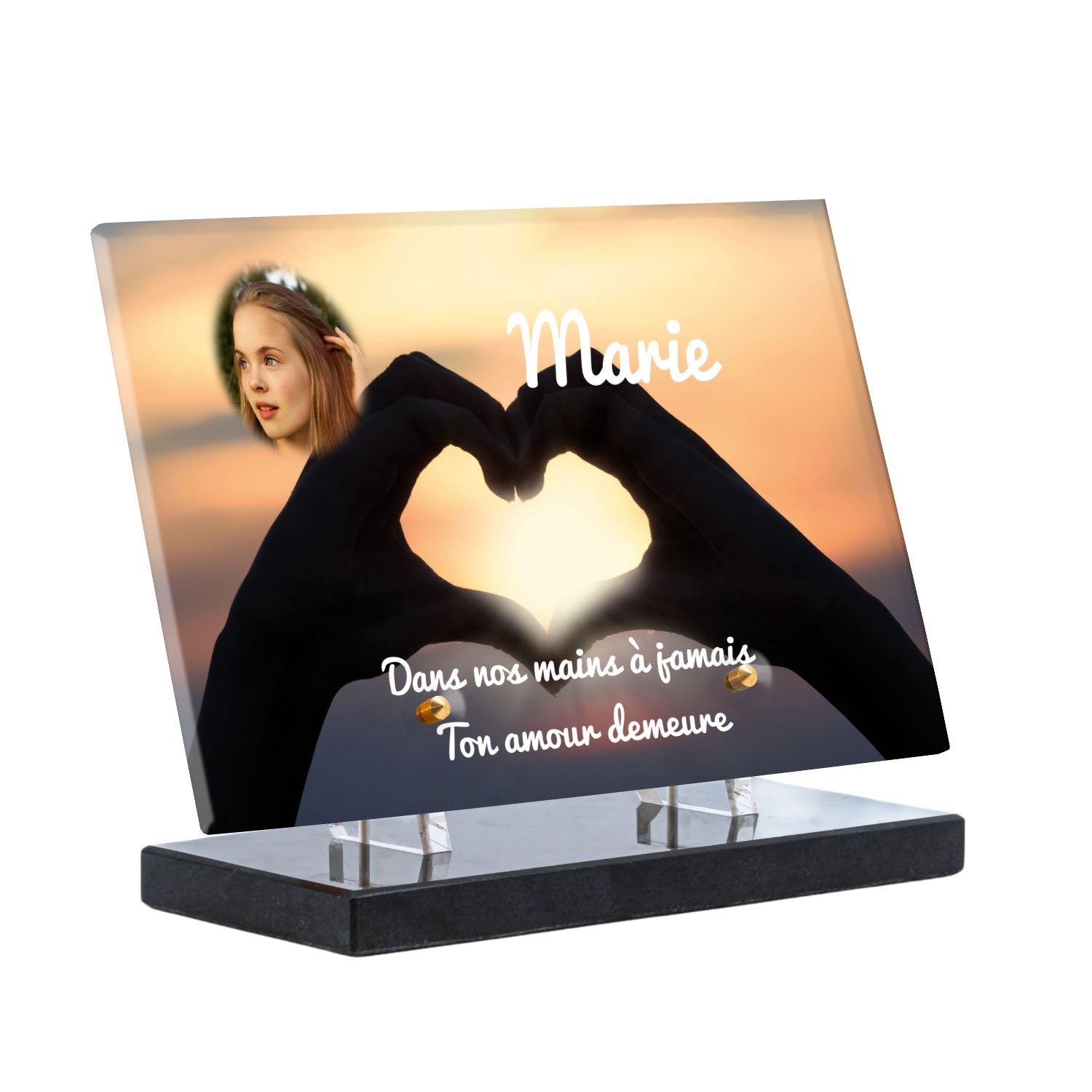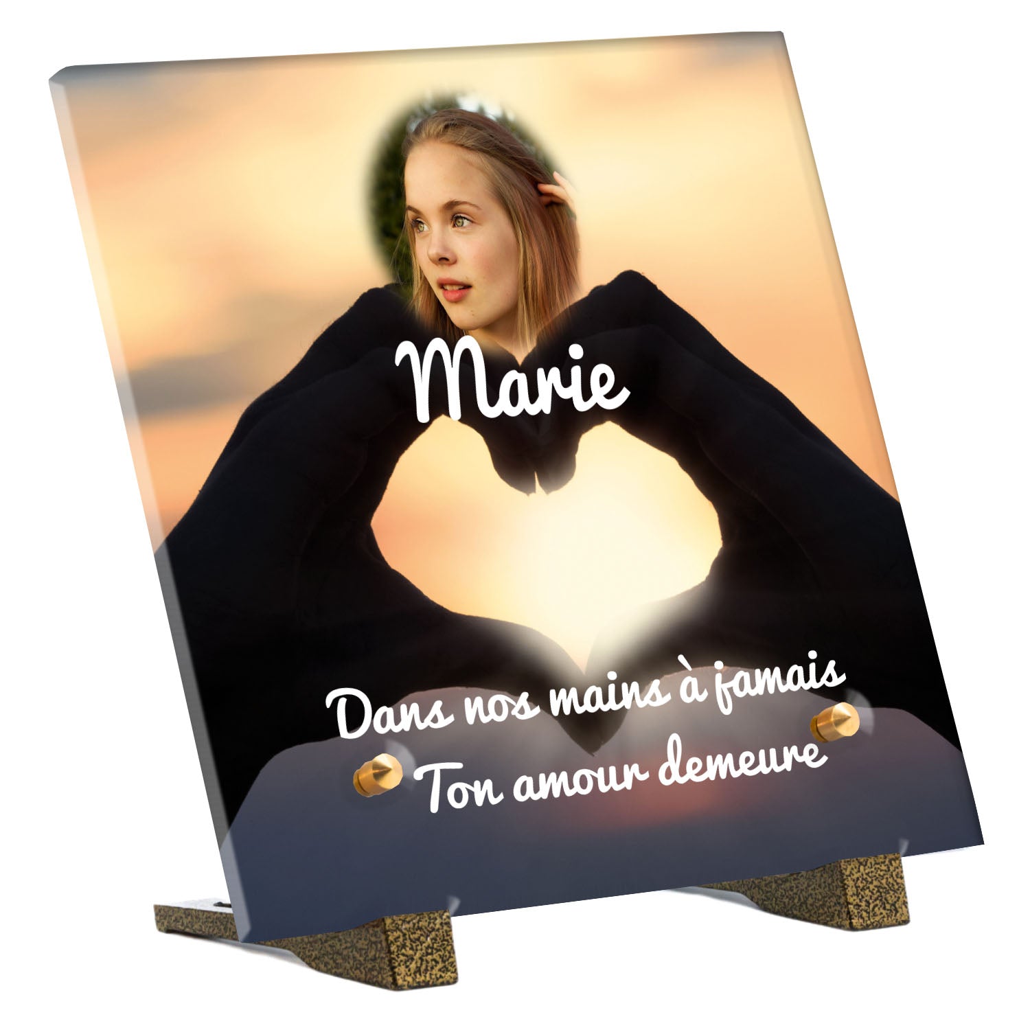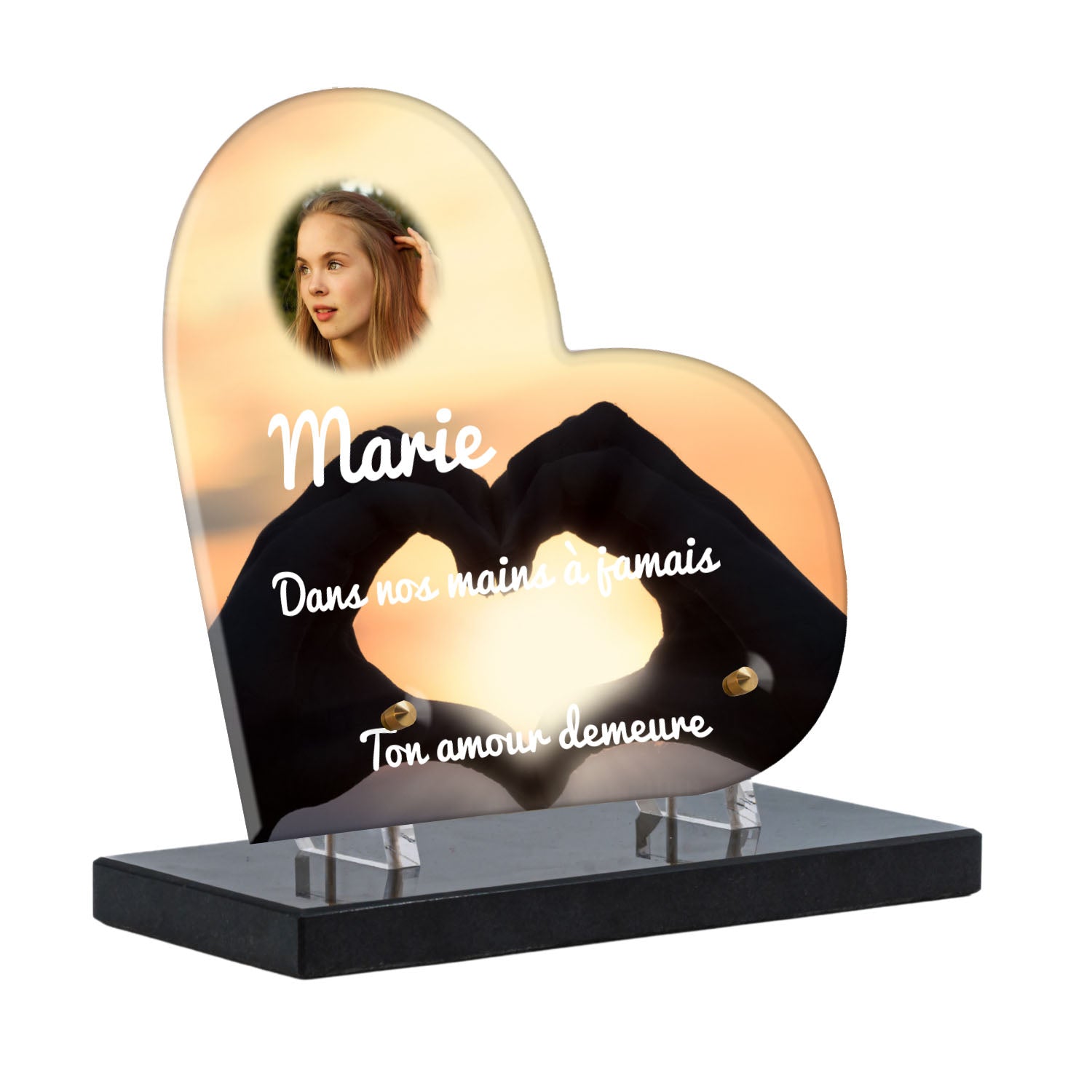 Coeur 23x23cm / Socle en granit noir / Avec Photo