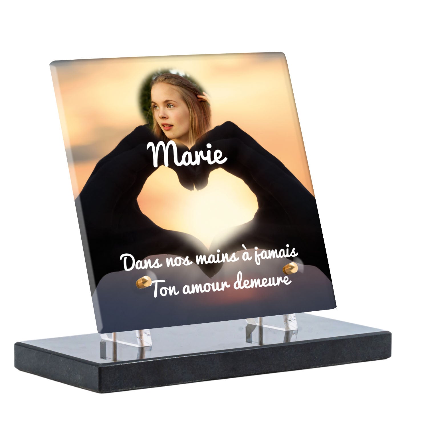 Carré 20x20cm / Socle en granit noir / Avec Photo