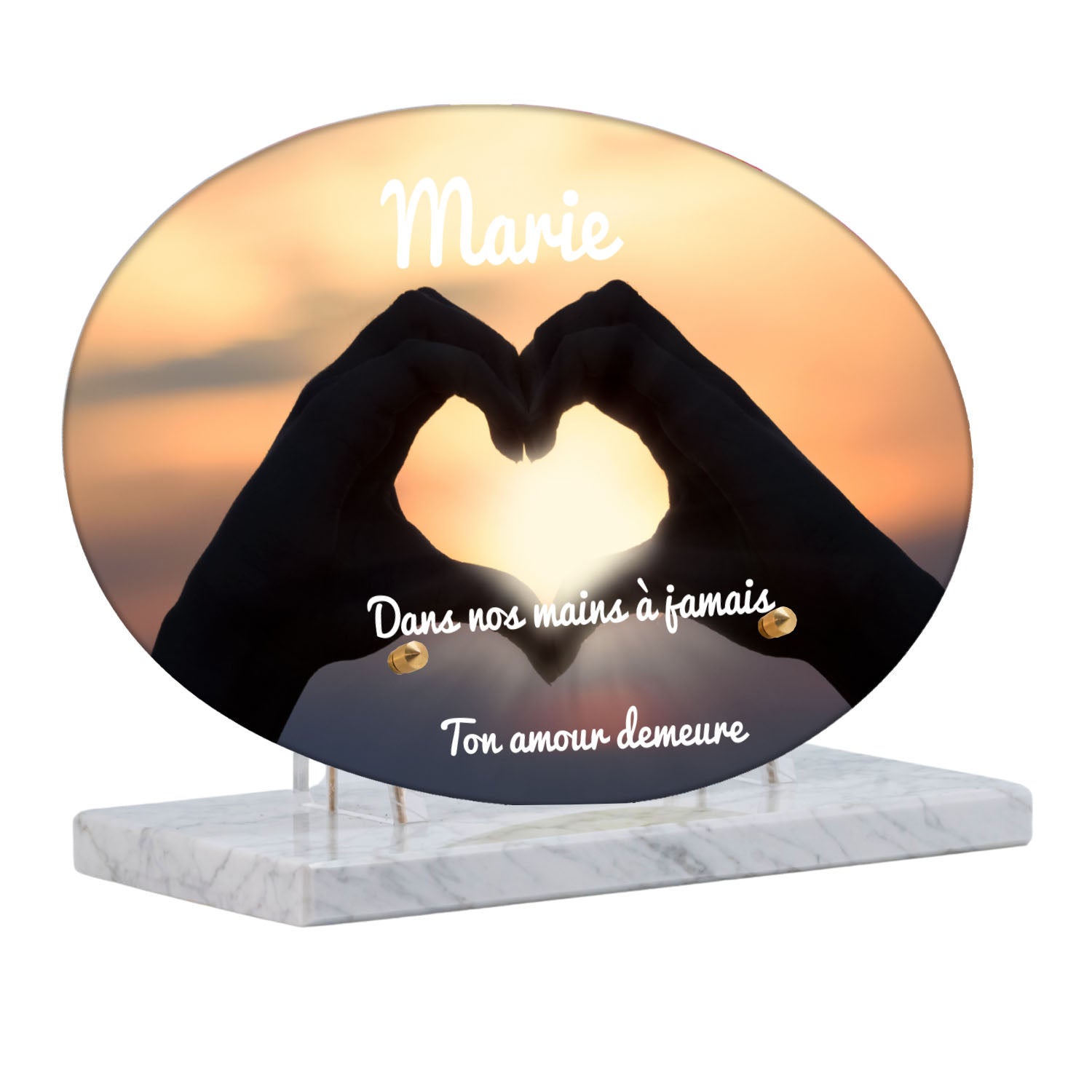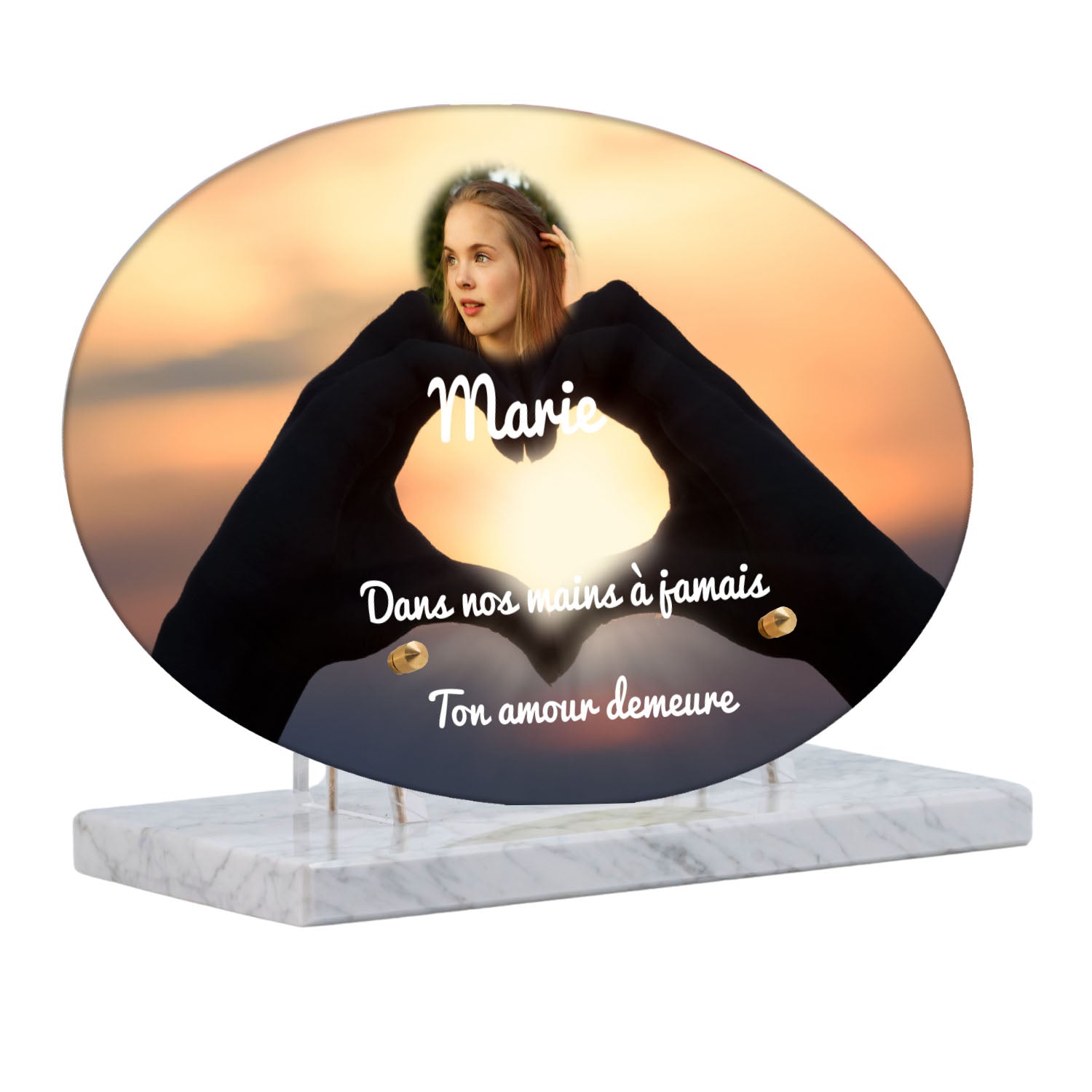 Ovale 30x20cm / Socle en granit blanc / Avec Photo
