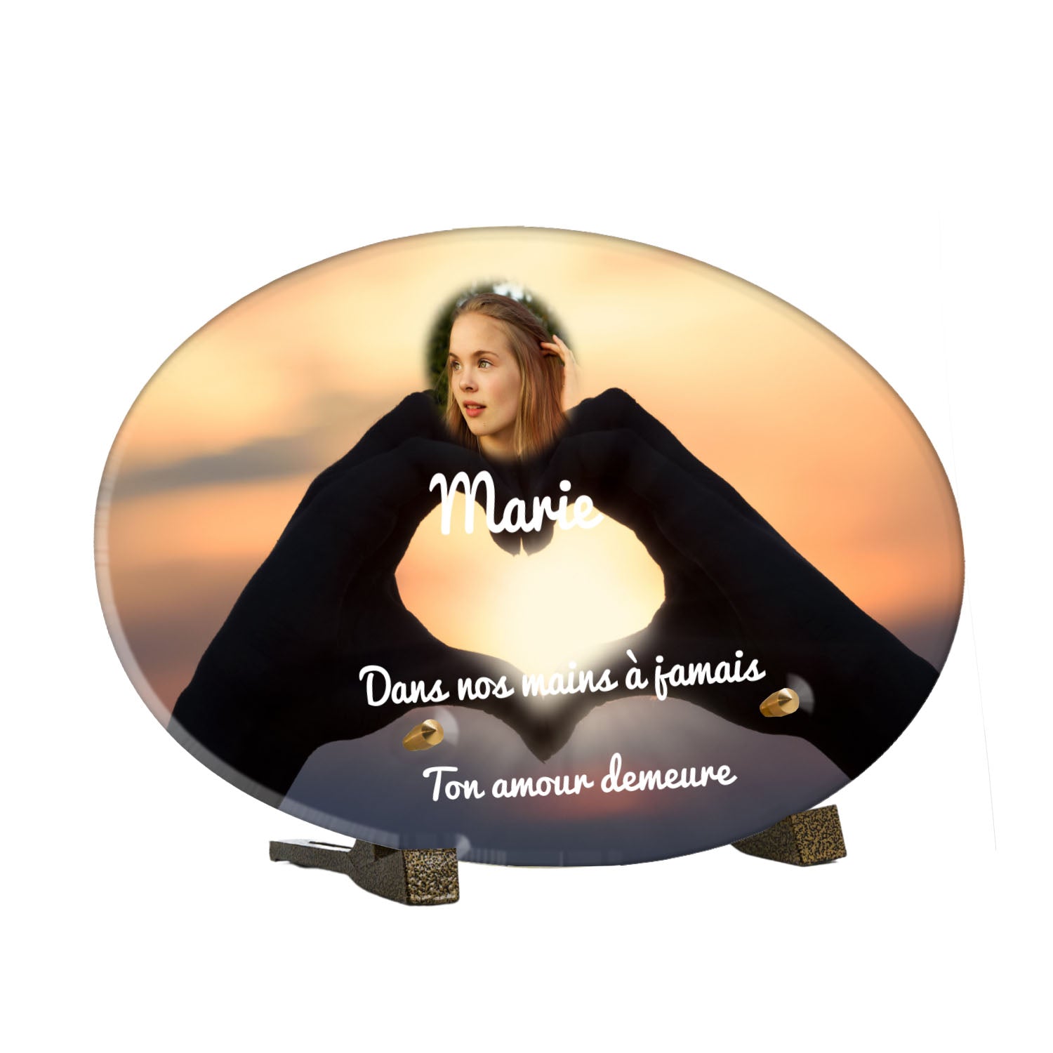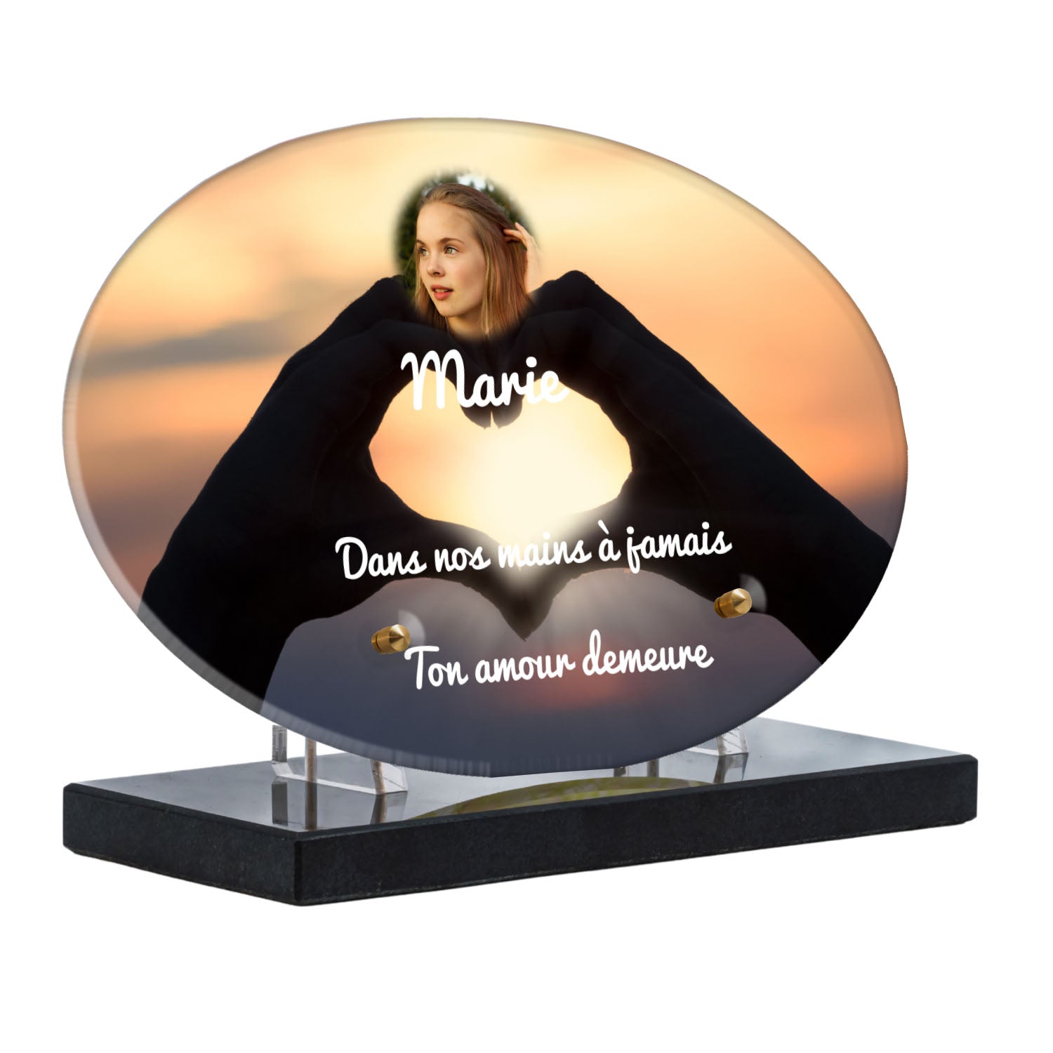 Ovale 30x20cm / Socle en granit noir / Avec Photo