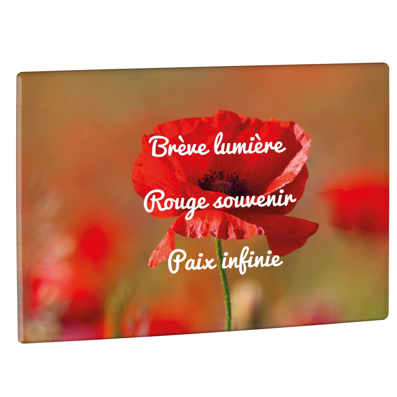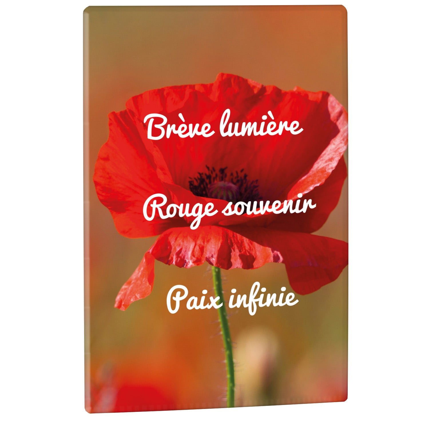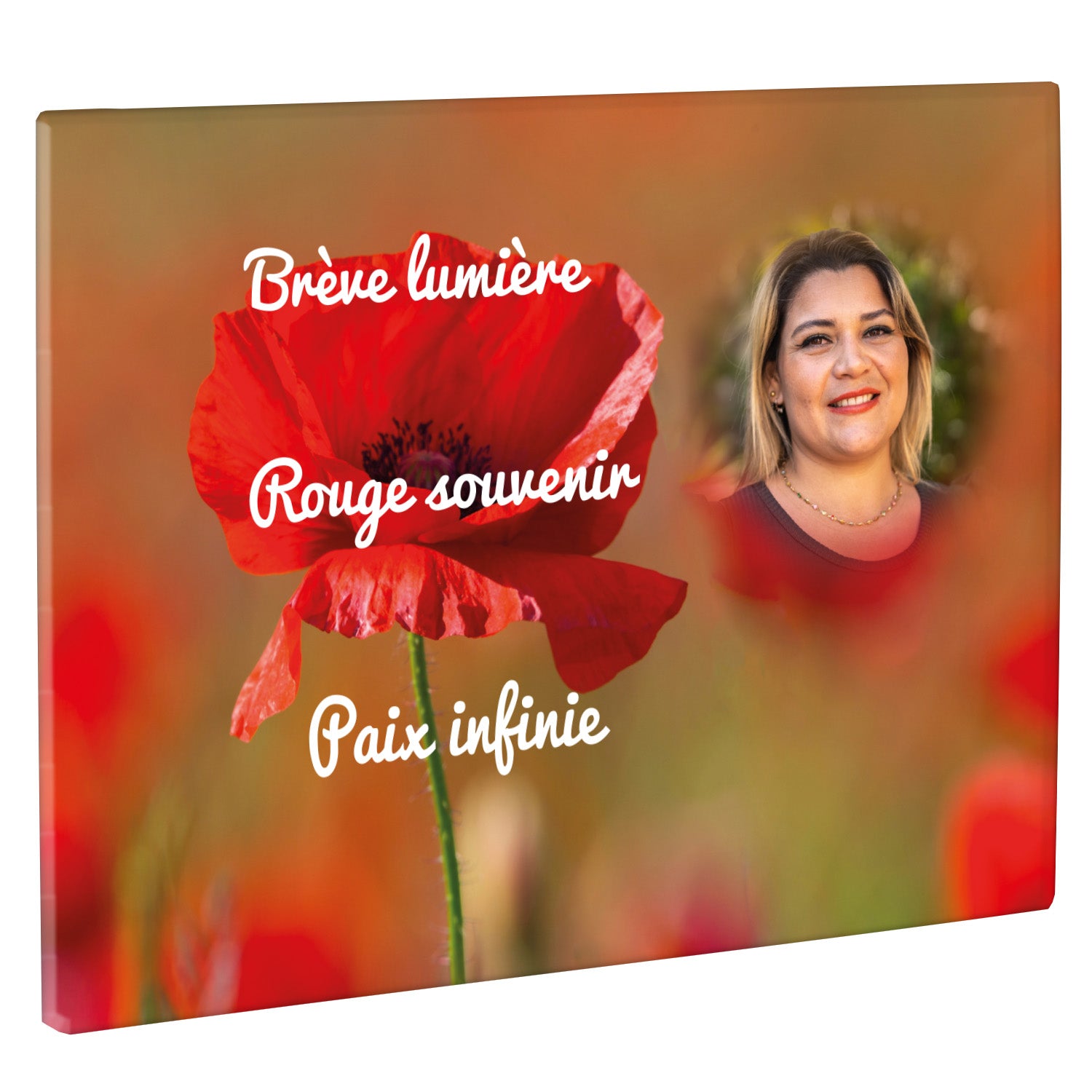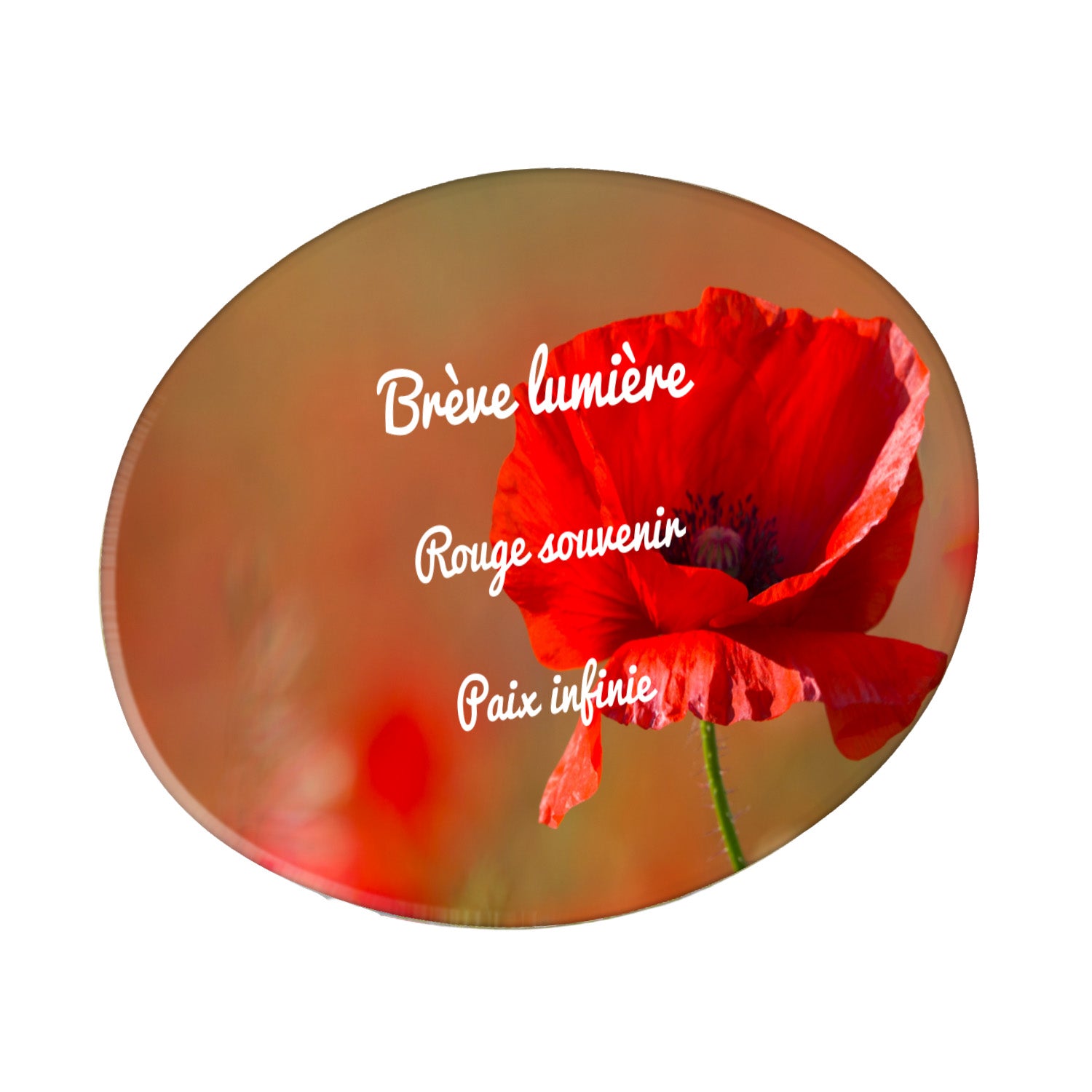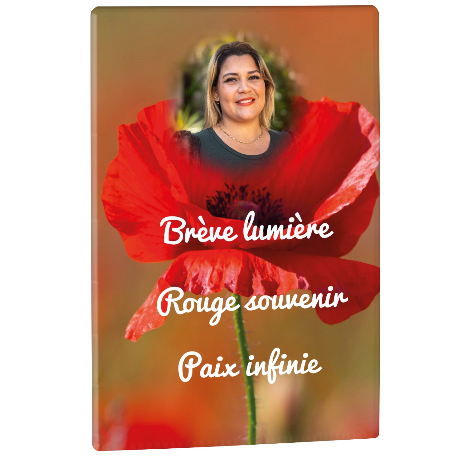 Cette plaque funéraire personnalisée représente élégamment des coquelicots, apportant une touche moderne et délicate à votre hommage. Conçue en plexiglas, cette plaque mortuaire allie esthétisme et résistance, parfaite pour un souvenir qui perdure. Son design sobre et raffiné s’intègre harmonieusement à tout type de sépulture, offrant un rendu contemporain et respectueux.