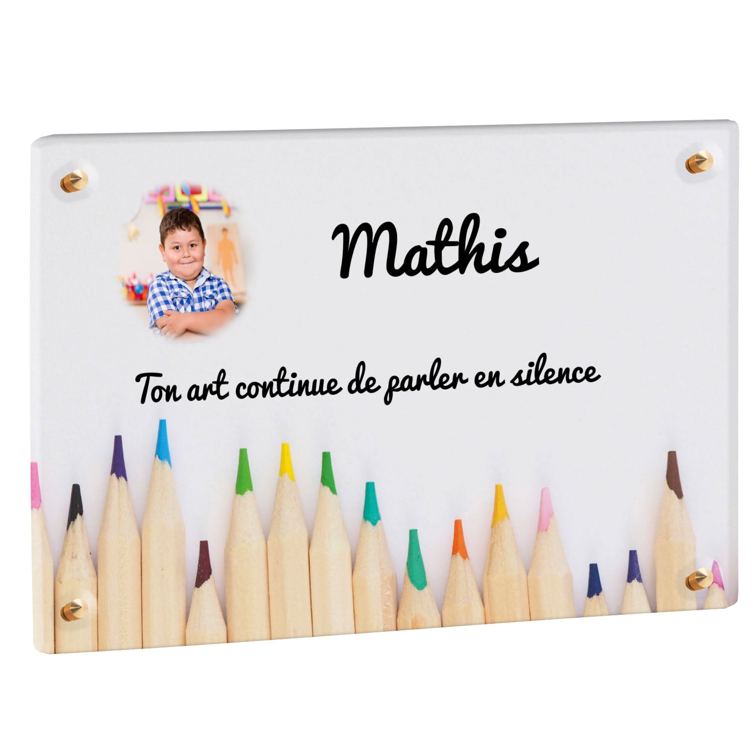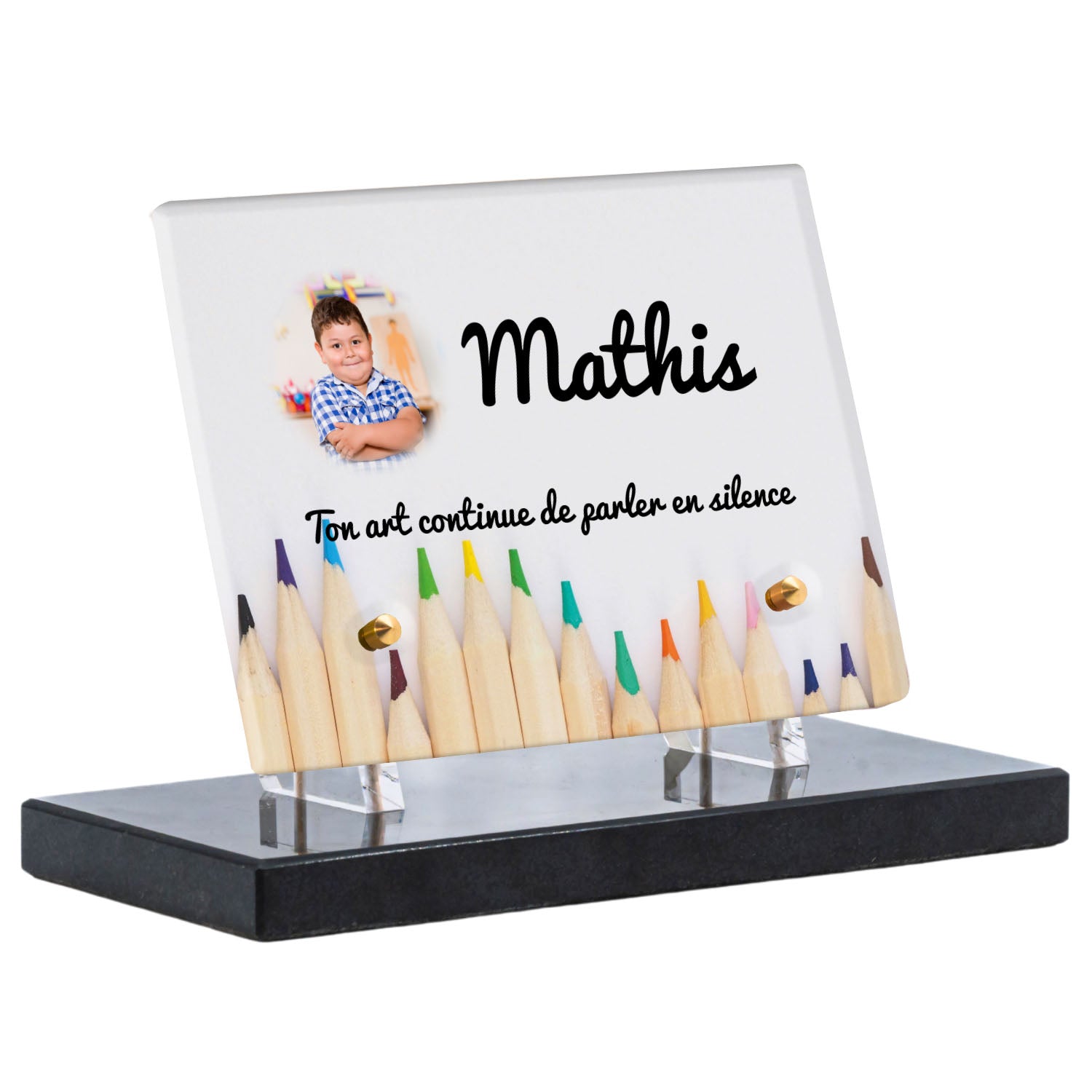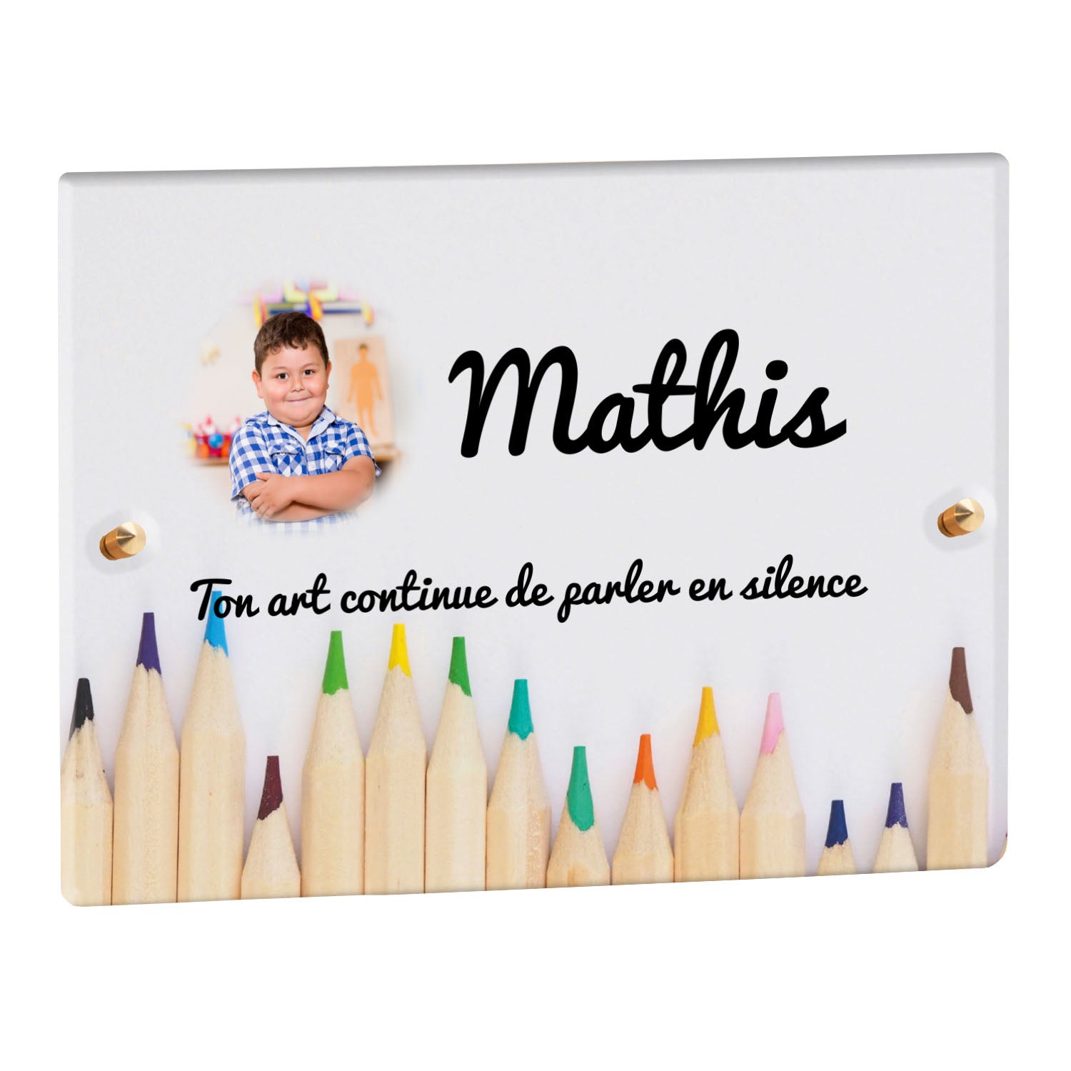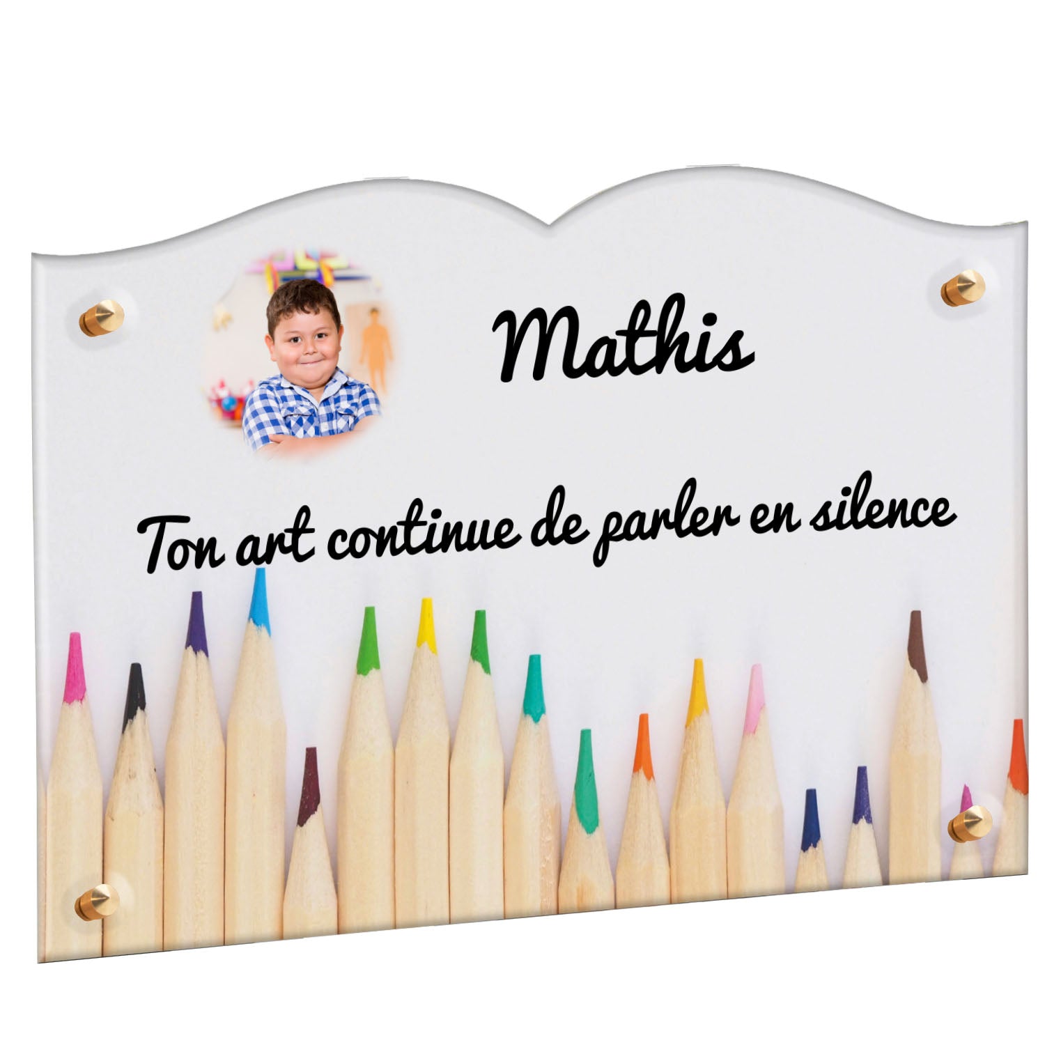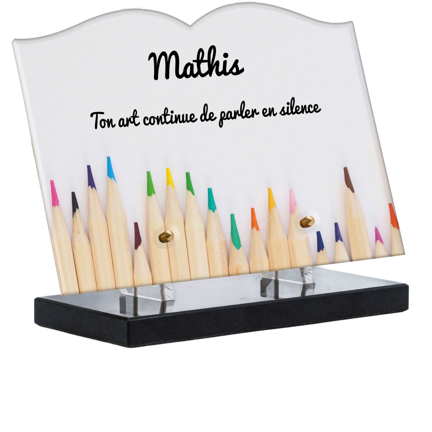 Découvrez notre plaque funéraire personnalisée illustrant un étalage coloré de crayons, un design unique qui apporte une touche moderne et pleine de vie à l’hommage rendu. Réalisée en plexiglas de haute qualité, cette plaque funéraire moderne allie esthétique et respect, parfaite pour une plaque mortuaire à la fois élégante et durable. Chaque plaque est personnalisable sur mesure selon vos souhaits, offrant une expression sincère et personnelle. Grâce à des matériaux résistants, cette plaque funéraire personnalisée garantit une longue tenue face aux intempéries, assurant ainsi que le souvenir reste intact au fil du temps.