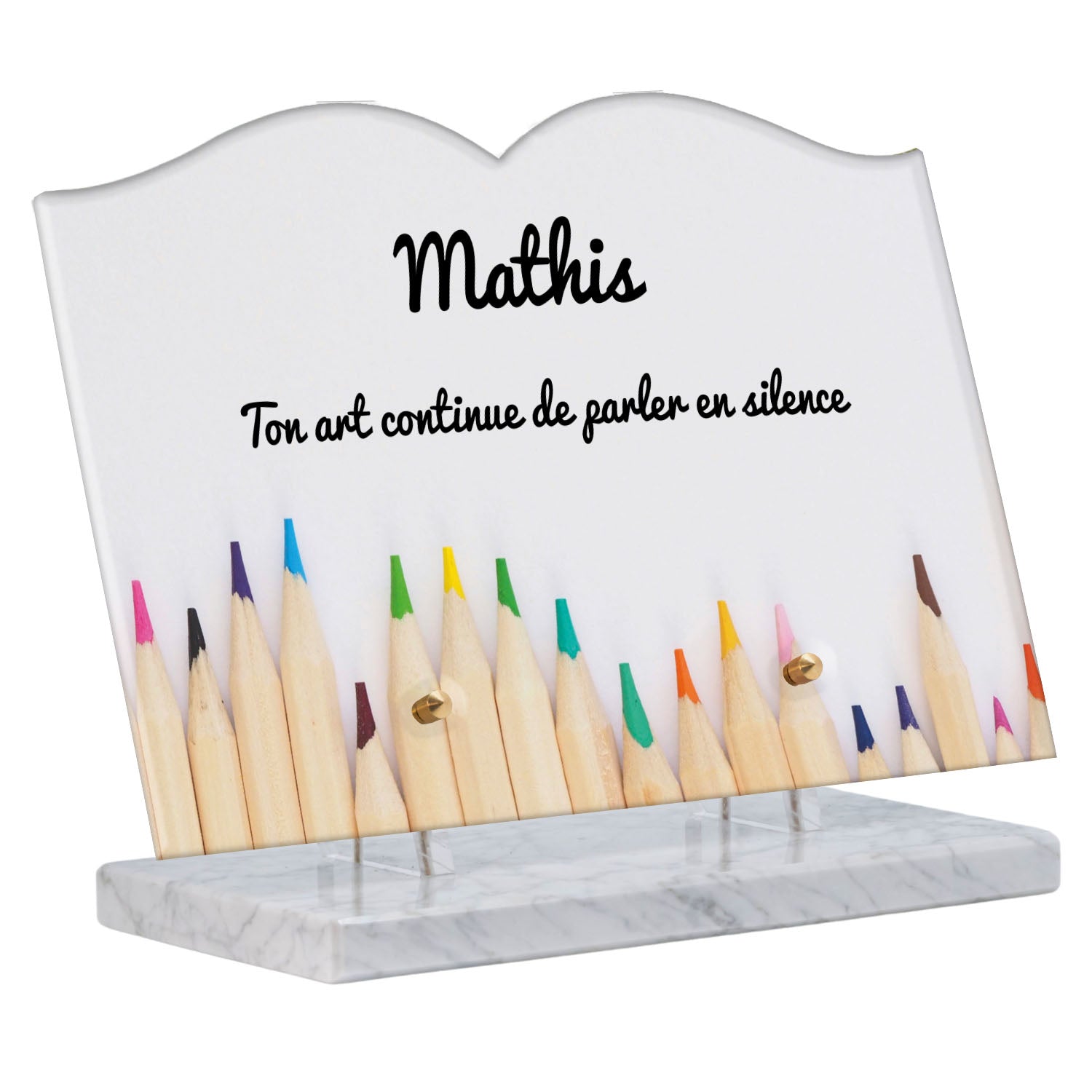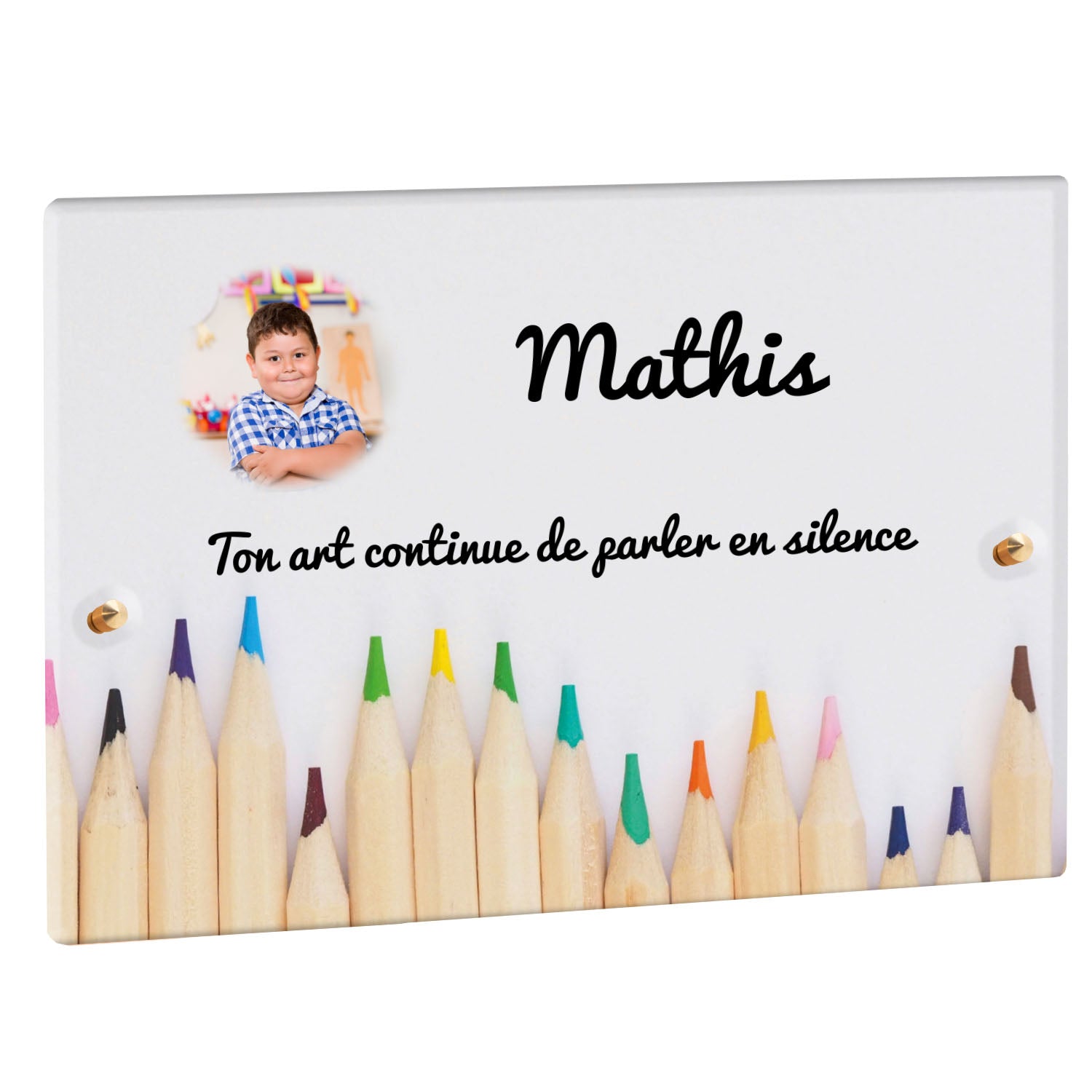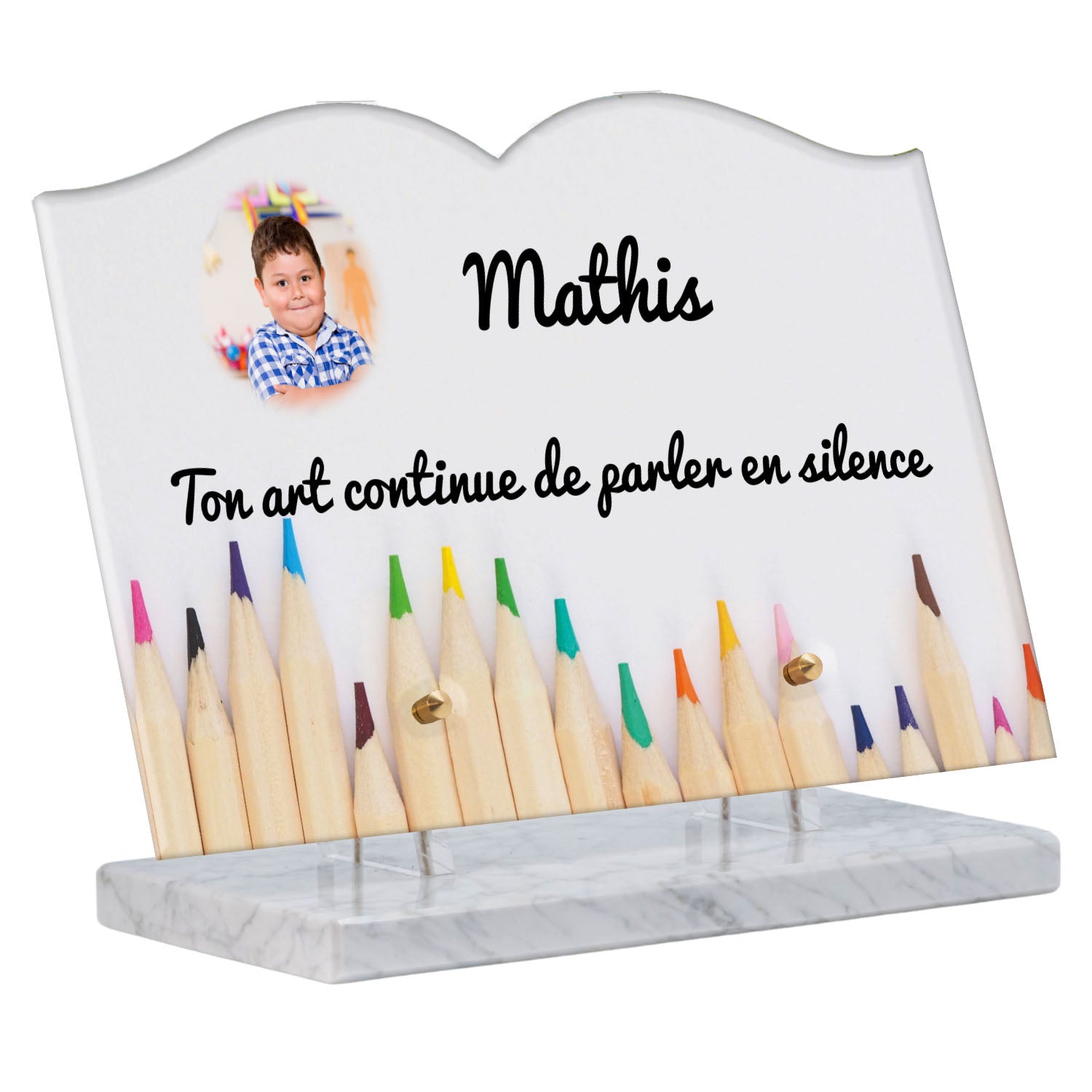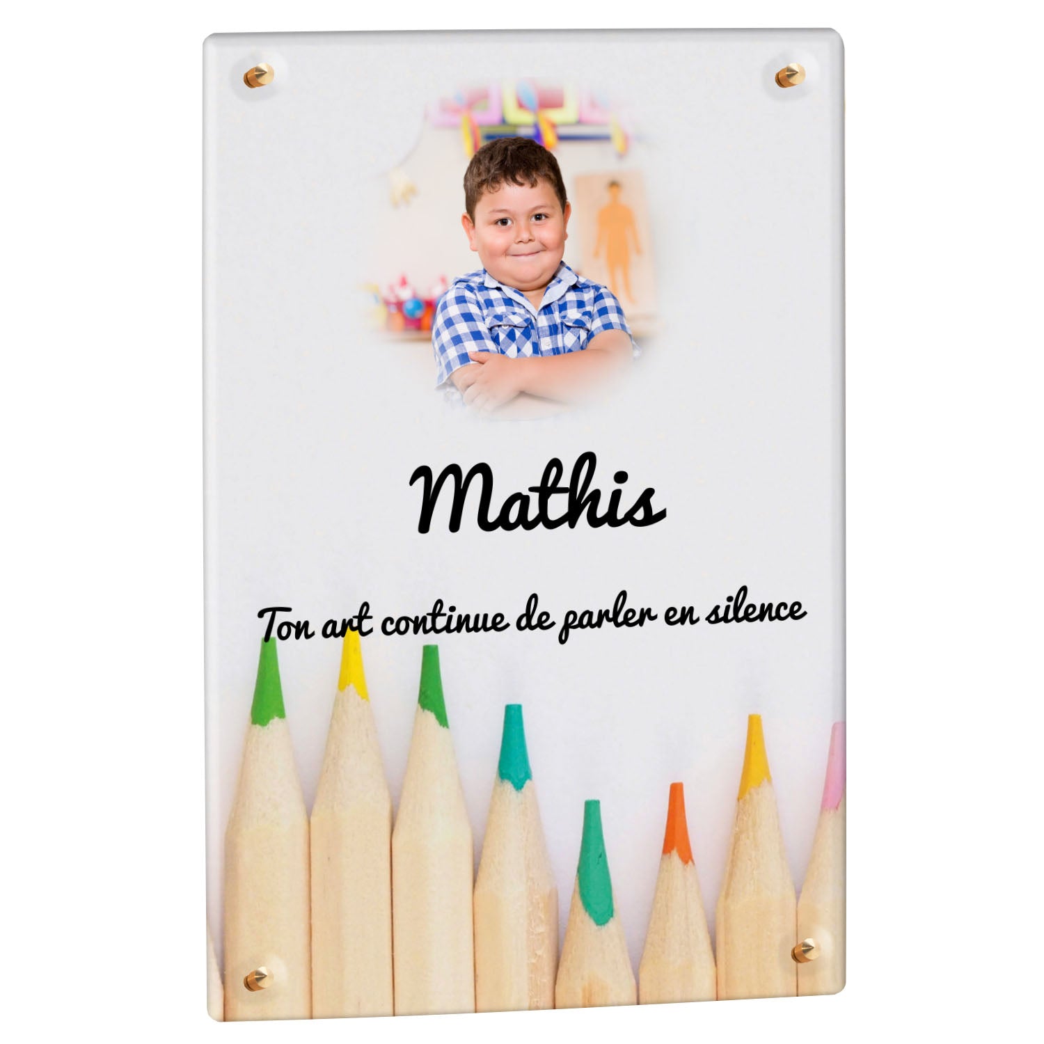 Découvrez notre plaque funéraire personnalisée illustrant un étalage coloré de crayons, un design unique qui apporte une touche moderne et pleine de vie à l’hommage rendu. Réalisée en plexiglas de haute qualité, cette plaque funéraire moderne allie esthétique et respect, parfaite pour une plaque mortuaire à la fois élégante et durable. Chaque plaque est personnalisable sur mesure selon vos souhaits, offrant une expression sincère et personnelle. Grâce à des matériaux résistants, cette plaque funéraire personnalisée garantit une longue tenue face aux intempéries, assurant ainsi que le souvenir reste intact au fil du temps.
