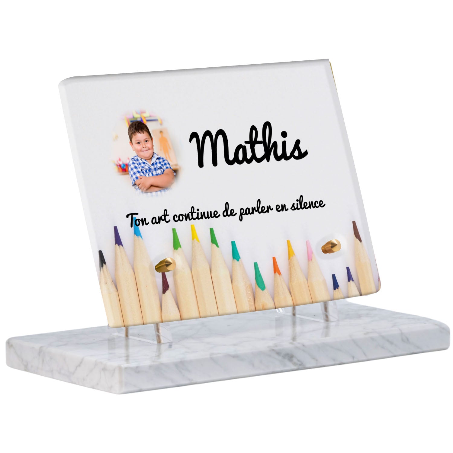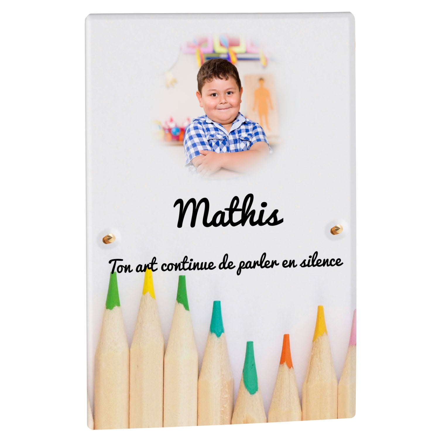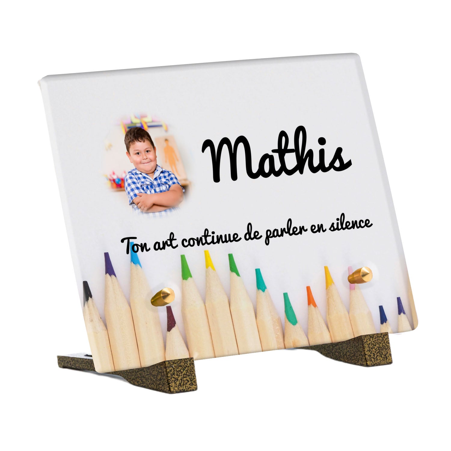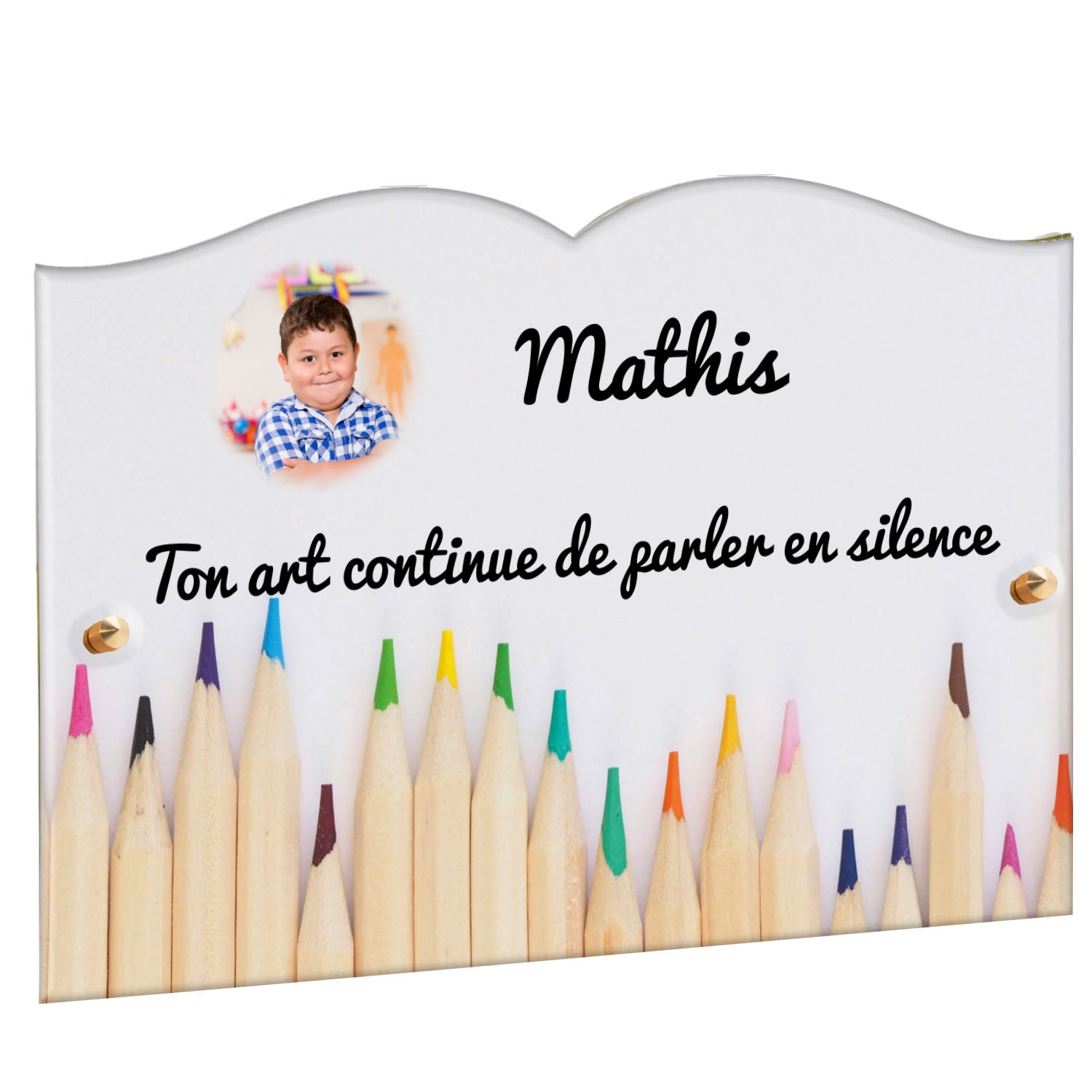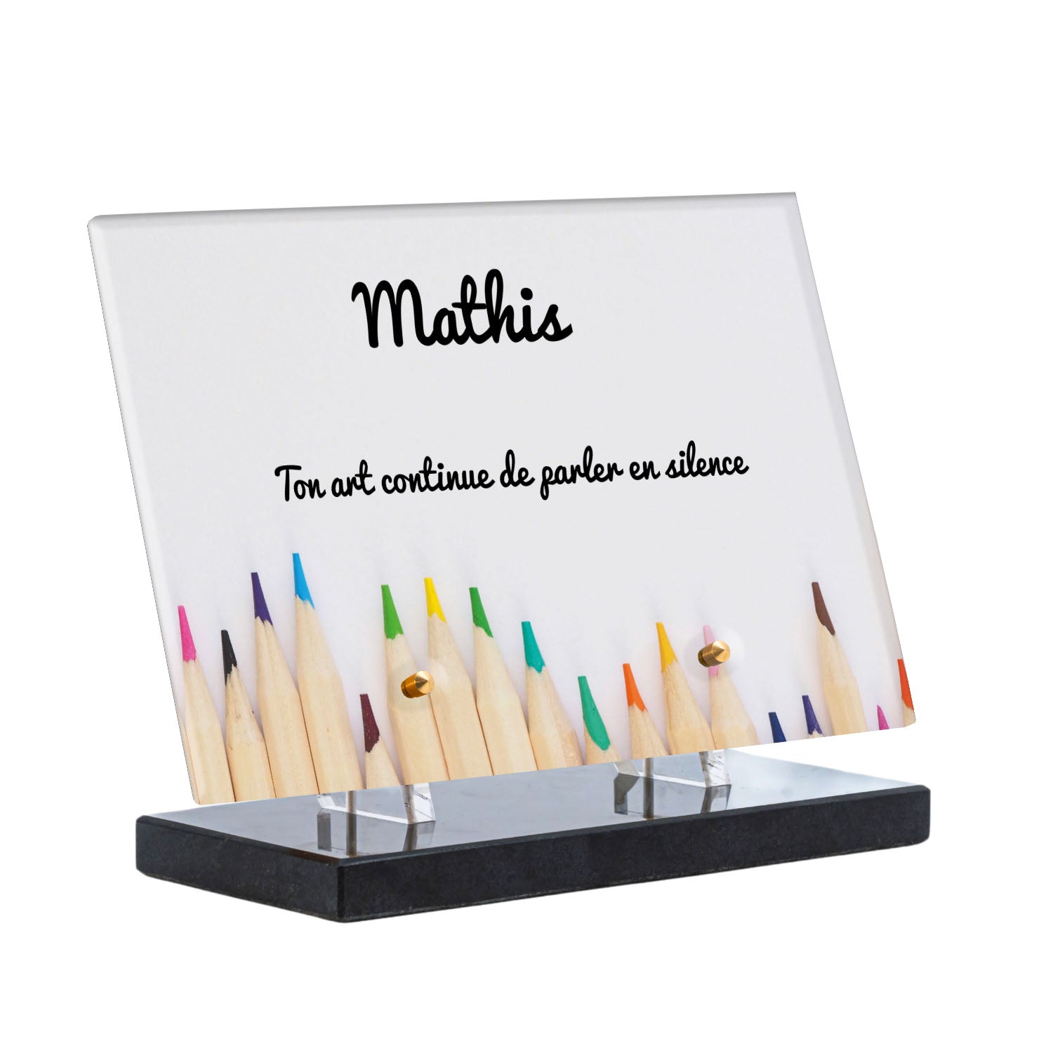 Découvrez notre plaque funéraire personnalisée illustrant un étalage coloré de crayons, un design unique qui apporte une touche moderne et pleine de vie à l’hommage rendu. Réalisée en plexiglas de haute qualité, cette plaque funéraire moderne allie esthétique et respect, parfaite pour une plaque mortuaire à la fois élégante et durable. Chaque plaque est personnalisable sur mesure selon vos souhaits, offrant une expression sincère et personnelle. Grâce à des matériaux résistants, cette plaque funéraire personnalisée garantit une longue tenue face aux intempéries, assurant ainsi que le souvenir reste intact au fil du temps.