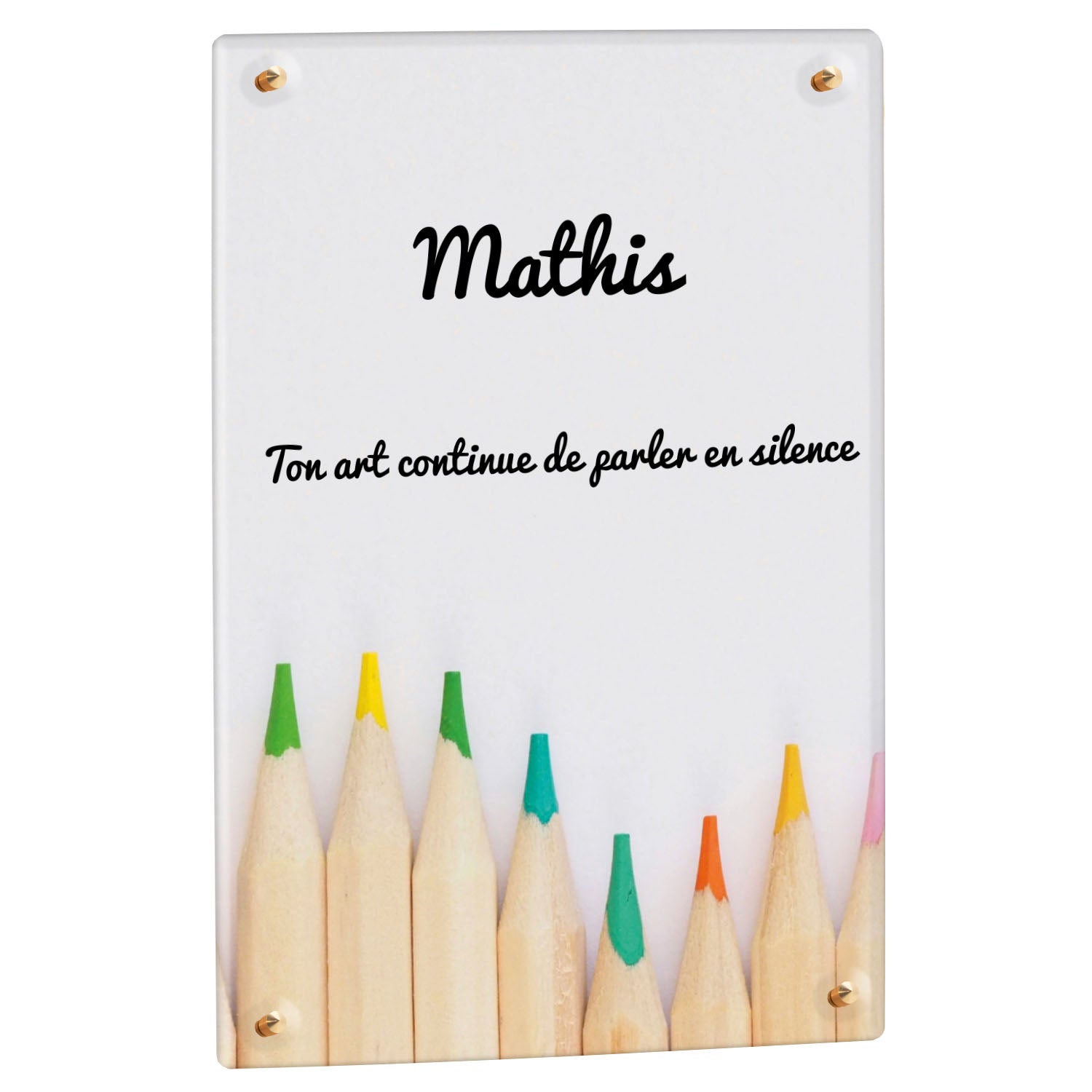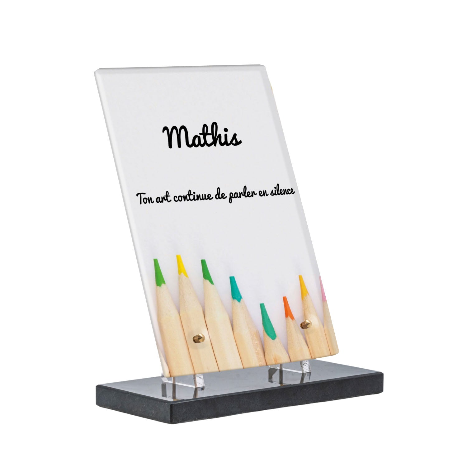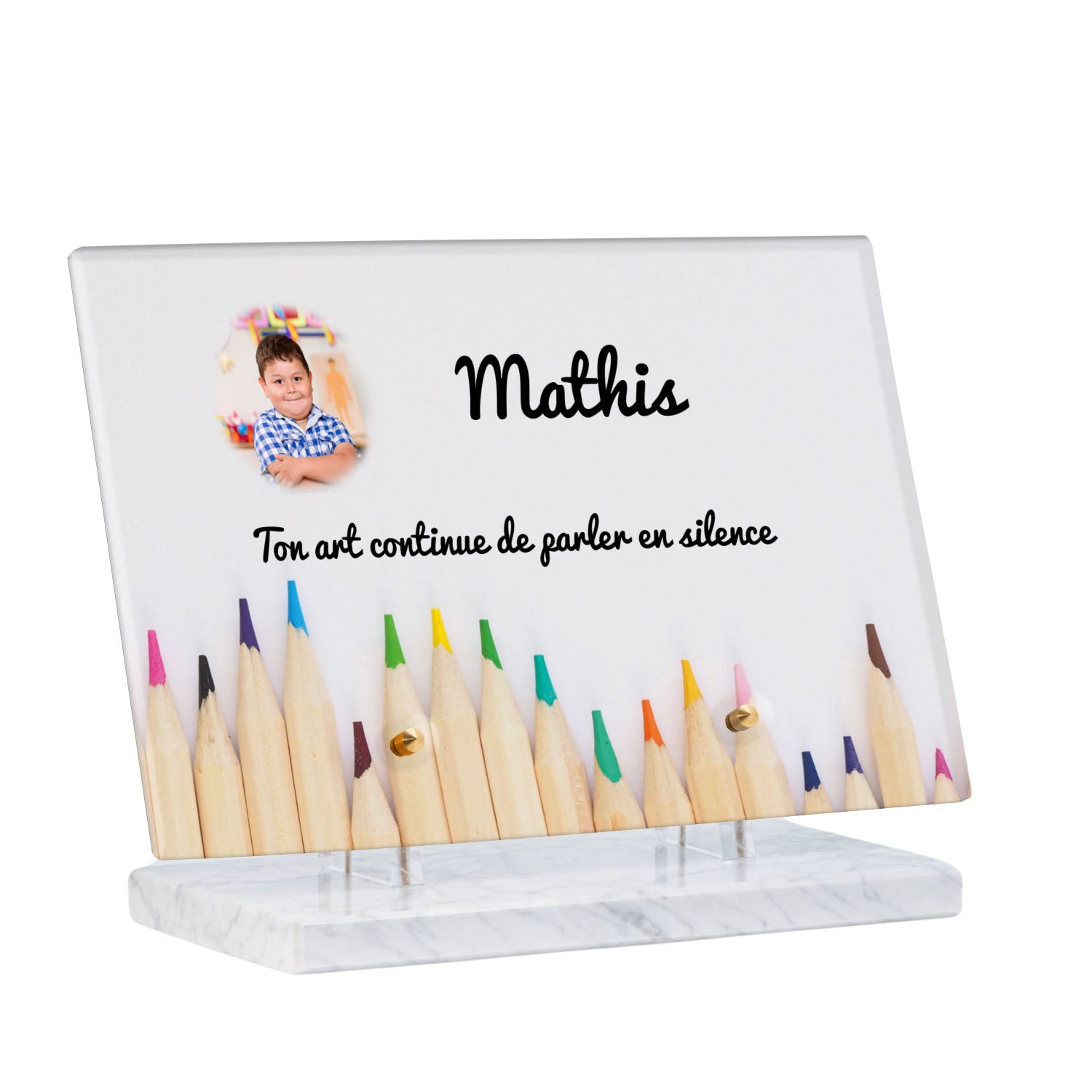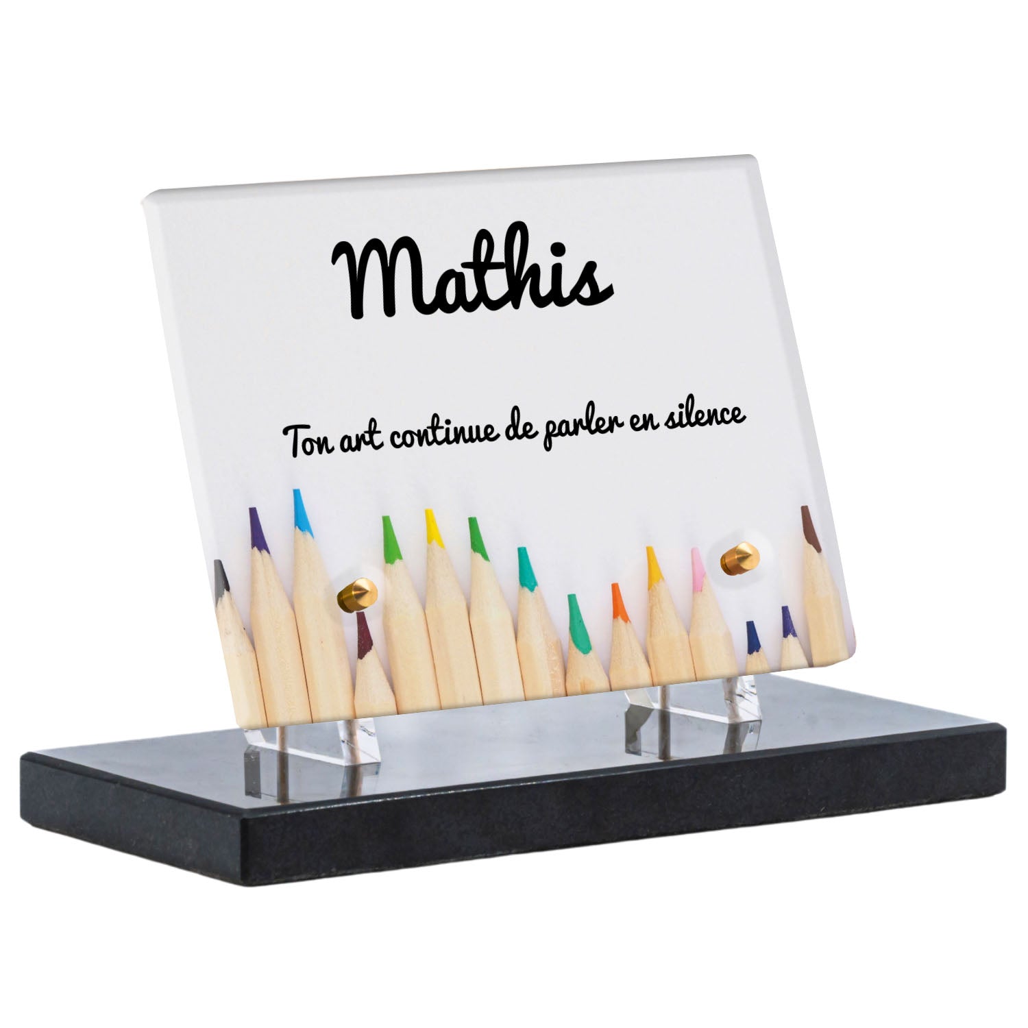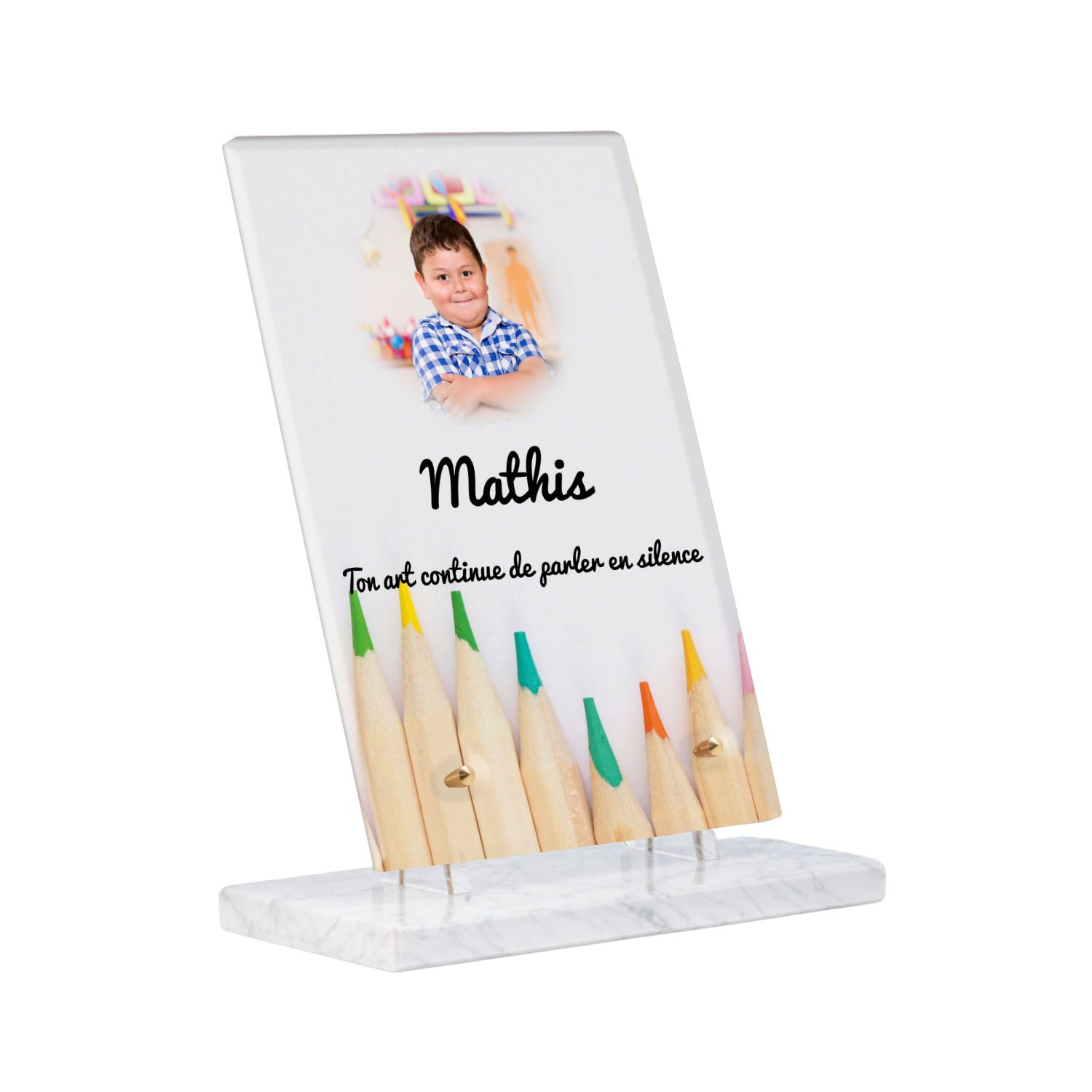 Découvrez notre plaque funéraire personnalisée illustrant un étalage coloré de crayons, un design unique qui apporte une touche moderne et pleine de vie à l’hommage rendu. Réalisée en plexiglas de haute qualité, cette plaque funéraire moderne allie esthétique et respect, parfaite pour une plaque mortuaire à la fois élégante et durable. Chaque plaque est personnalisable sur mesure selon vos souhaits, offrant une expression sincère et personnelle. Grâce à des matériaux résistants, cette plaque funéraire personnalisée garantit une longue tenue face aux intempéries, assurant ainsi que le souvenir reste intact au fil du temps.