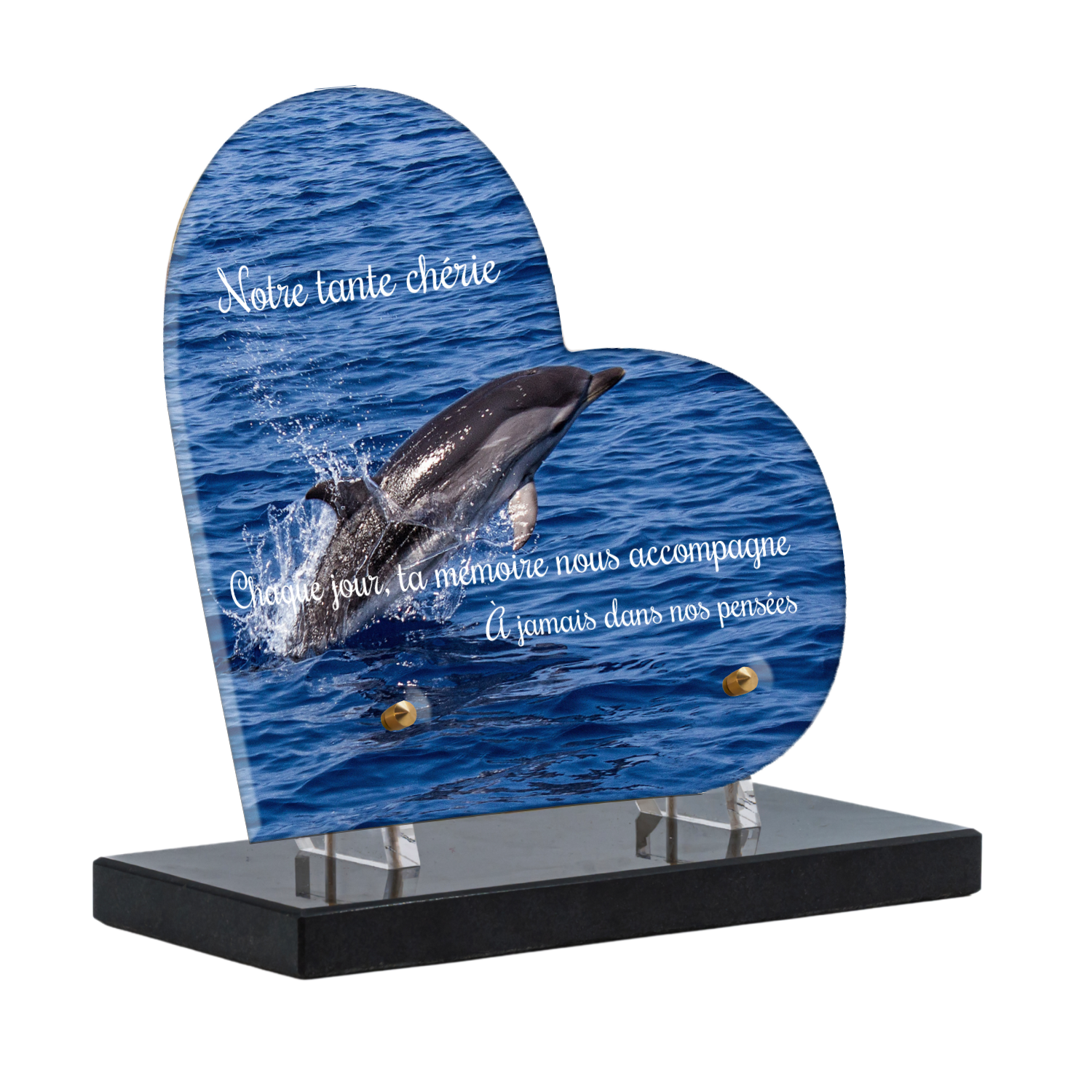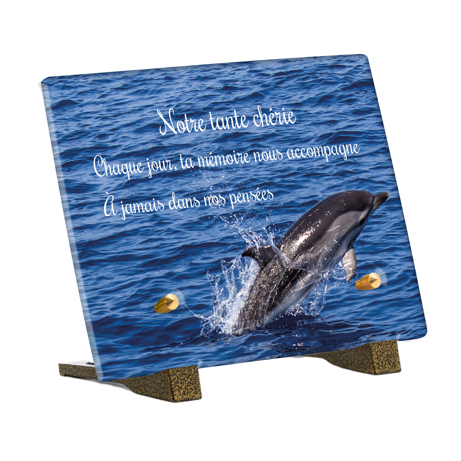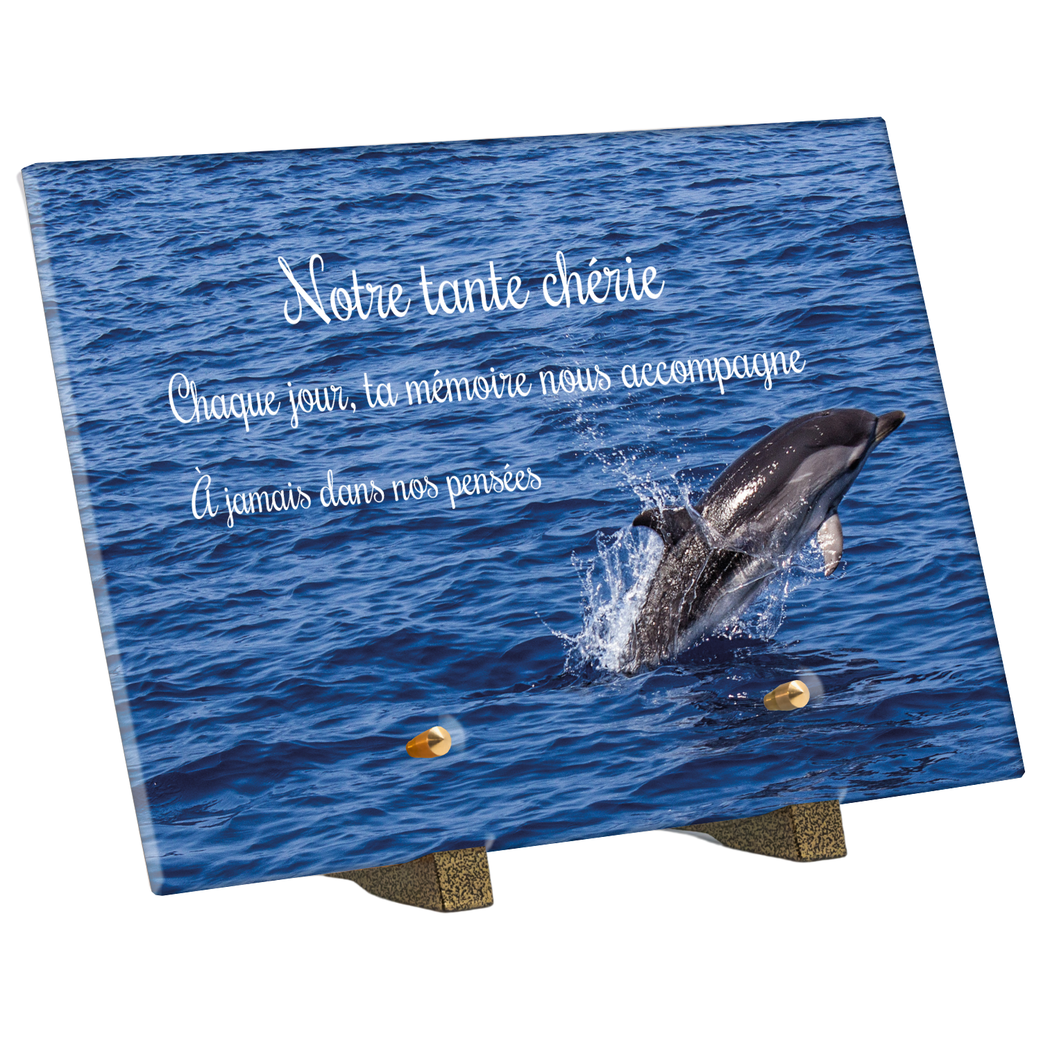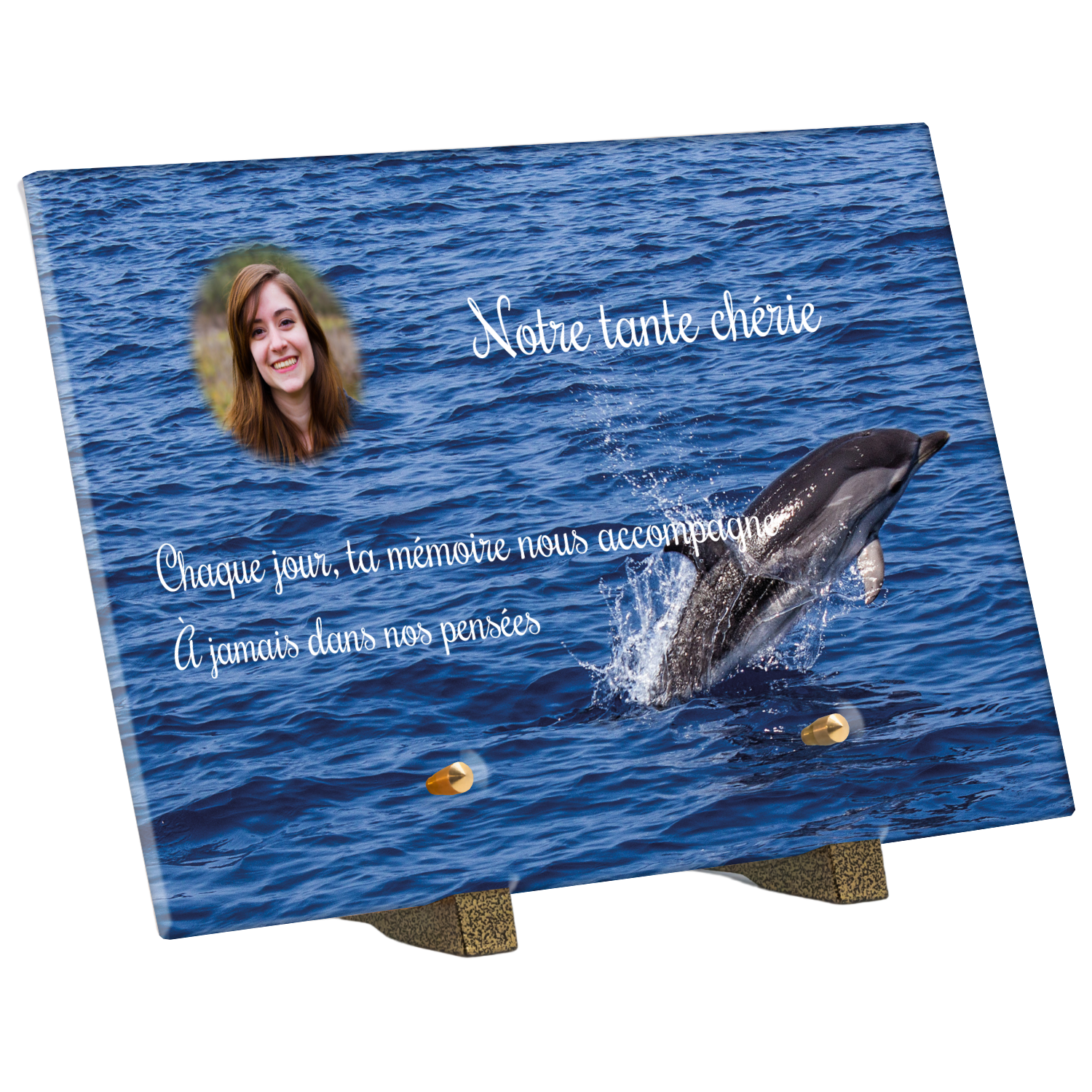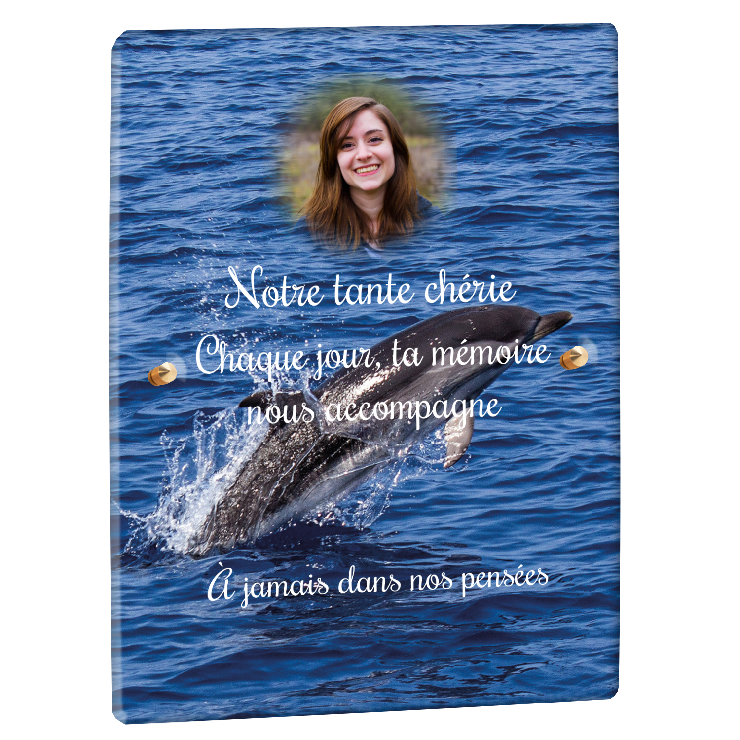 Offrez un hommage unique avec cette plaque funéraire personnalisée représentant un océan apaisant et un dauphin, symbole de liberté et de sérénité. Conçue en plexiglas, cette plaque funéraire moderne allie élégance et résistance, idéale pour célébrer la mémoire de vos proches avec délicatesse. Chaque plaque mortuaire est réalisée sur mesure, vous permettant de choisir les détails qui reflètent au mieux la personnalité du défunt. Sa durabilité approuvée garantit une conservation longue durée, pour un souvenir précieux qui traverse le temps.
