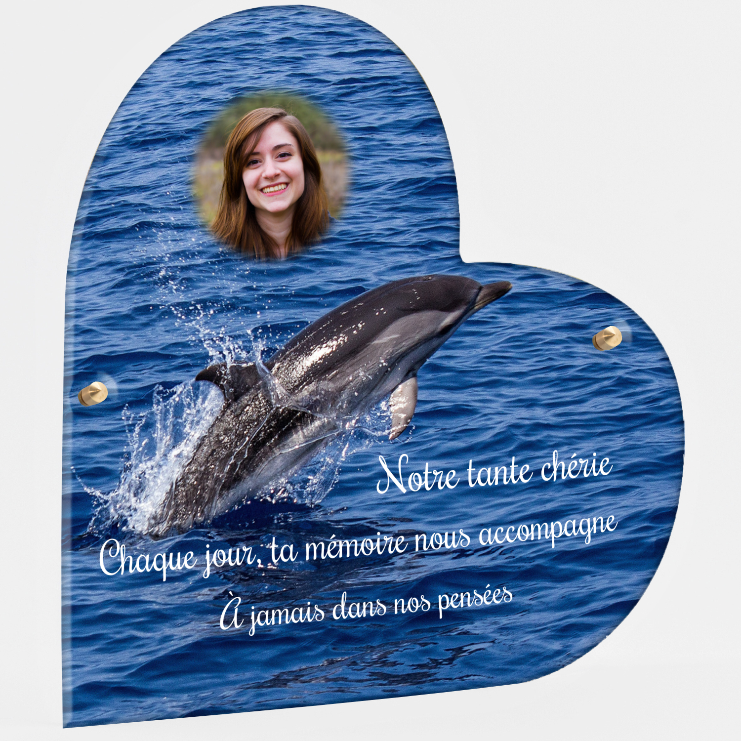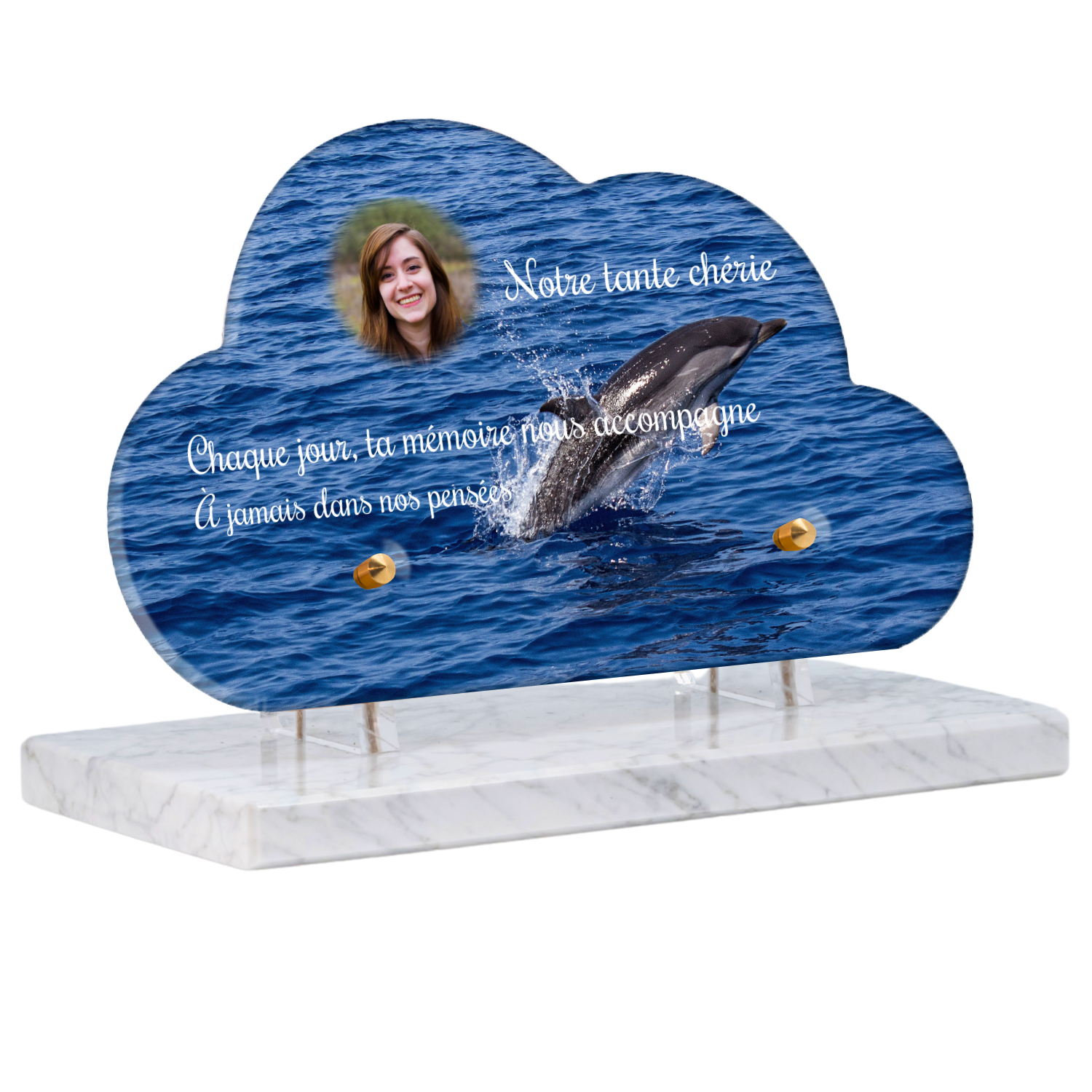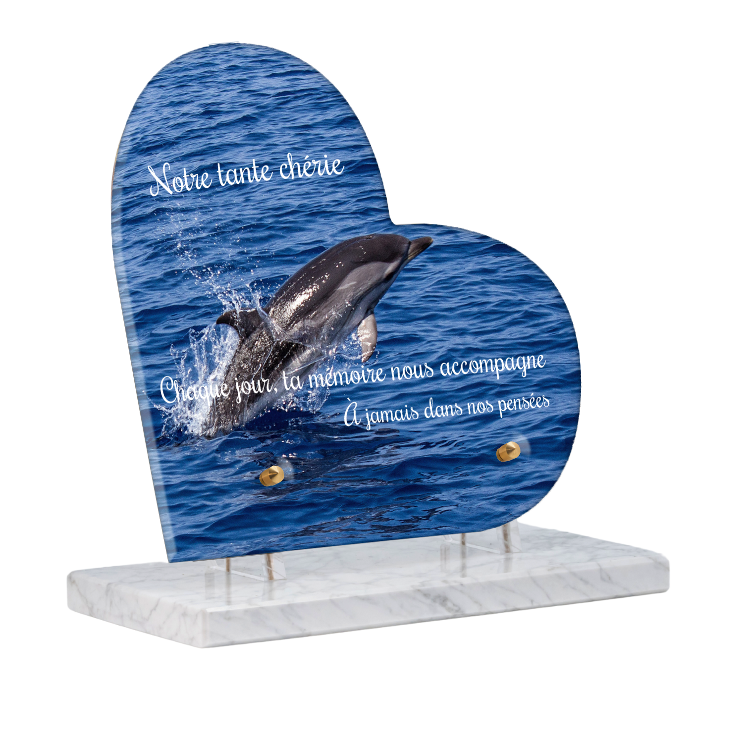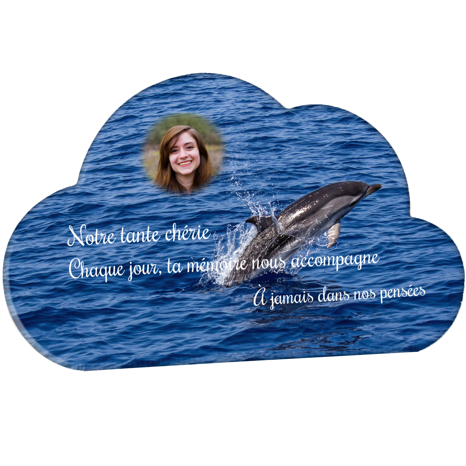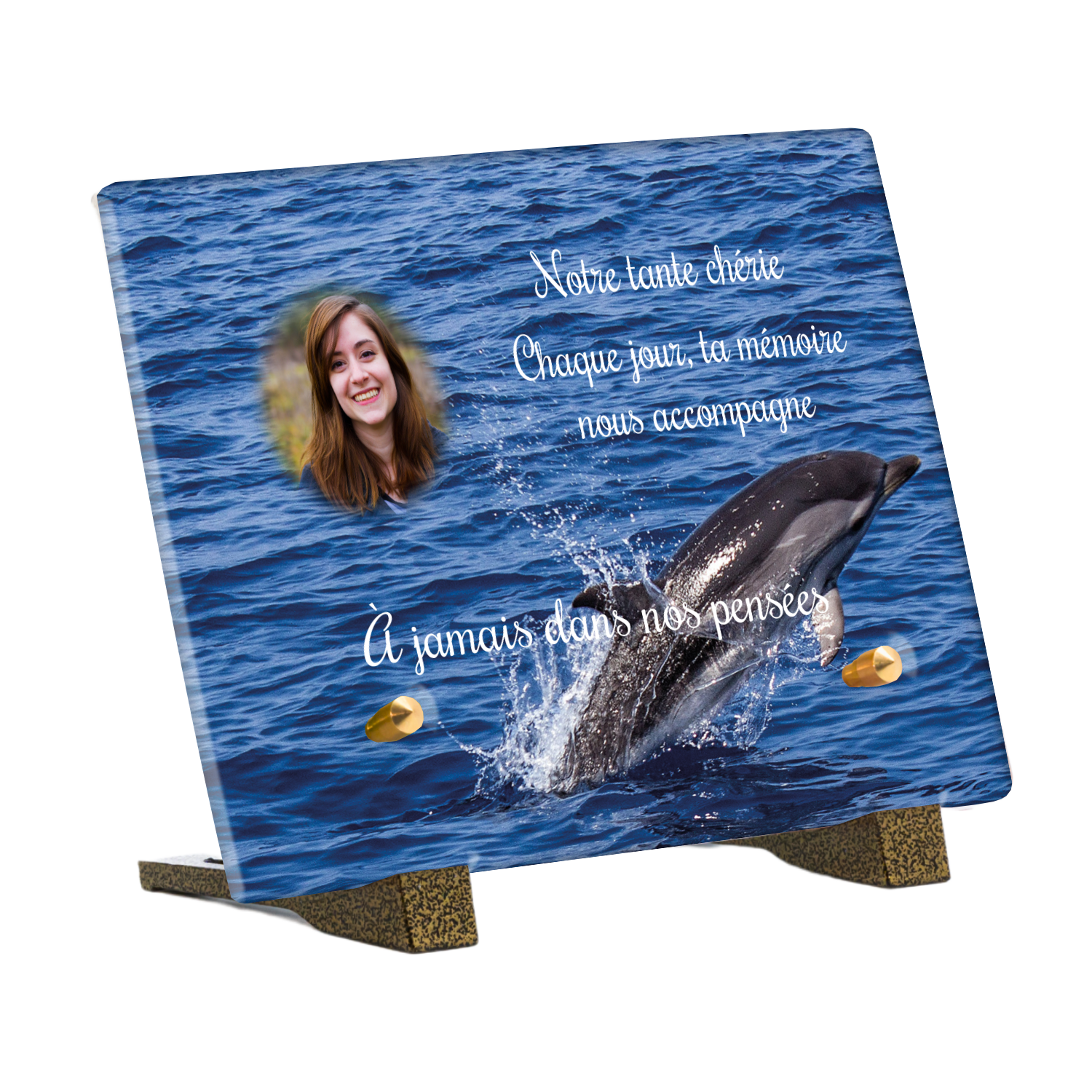 Offrez un hommage unique avec cette plaque funéraire personnalisée représentant un océan apaisant et un dauphin, symbole de liberté et de sérénité. Conçue en plexiglas, cette plaque funéraire moderne allie élégance et résistance, idéale pour célébrer la mémoire de vos proches avec délicatesse. Chaque plaque mortuaire est réalisée sur mesure, vous permettant de choisir les détails qui reflètent au mieux la personnalité du défunt. Sa durabilité approuvée garantit une conservation longue durée, pour un souvenir précieux qui traverse le temps.
