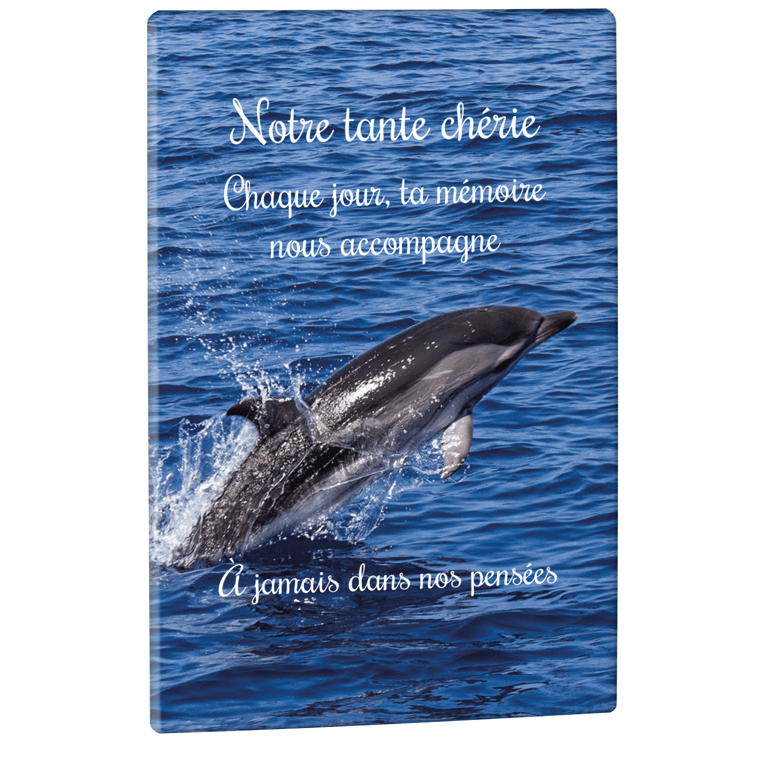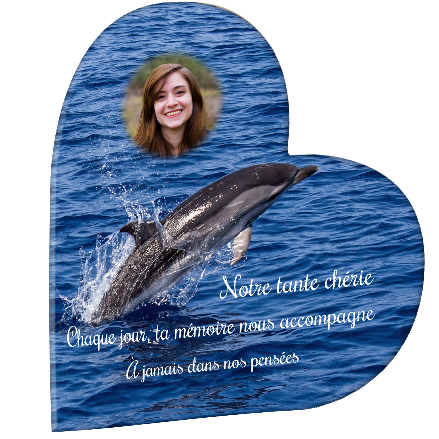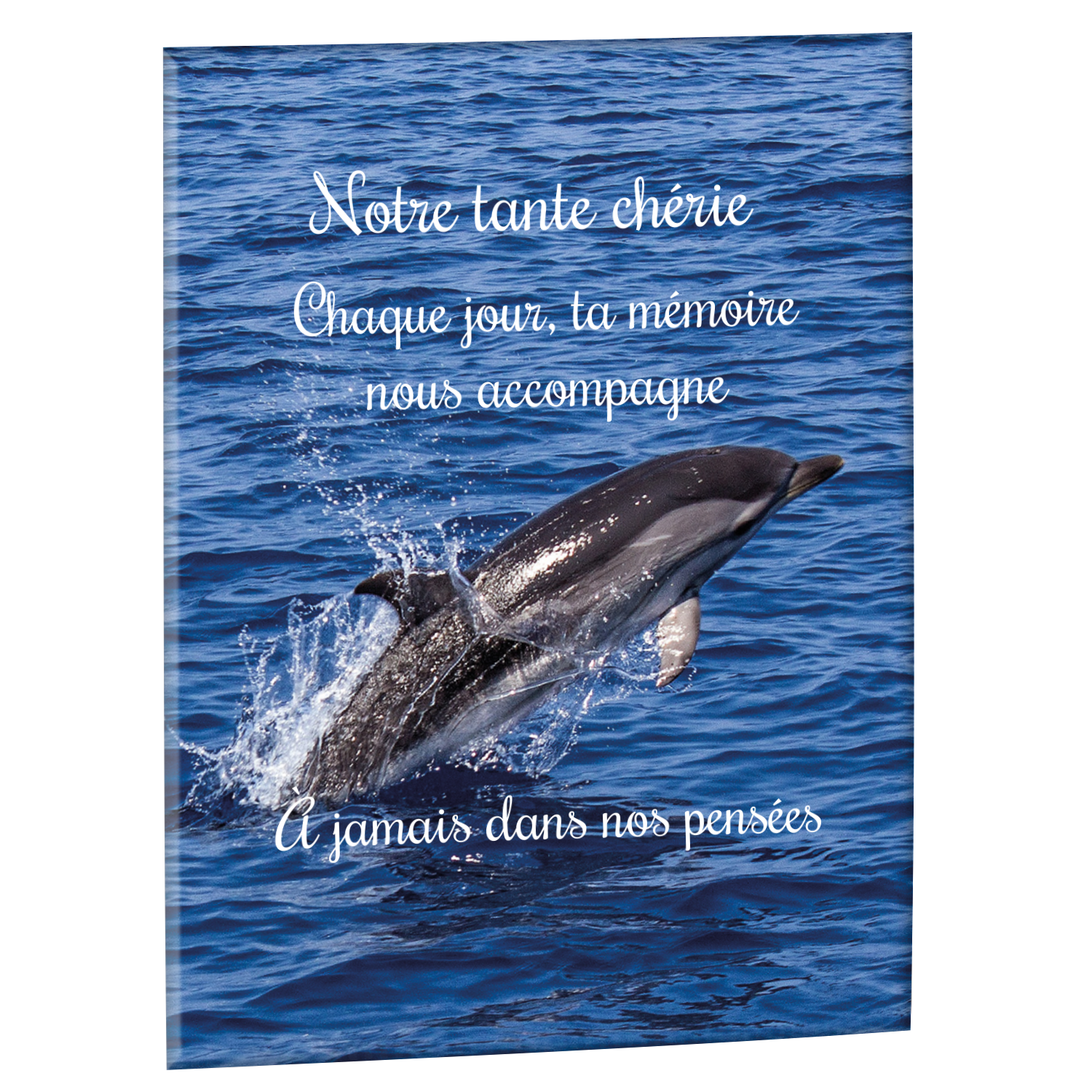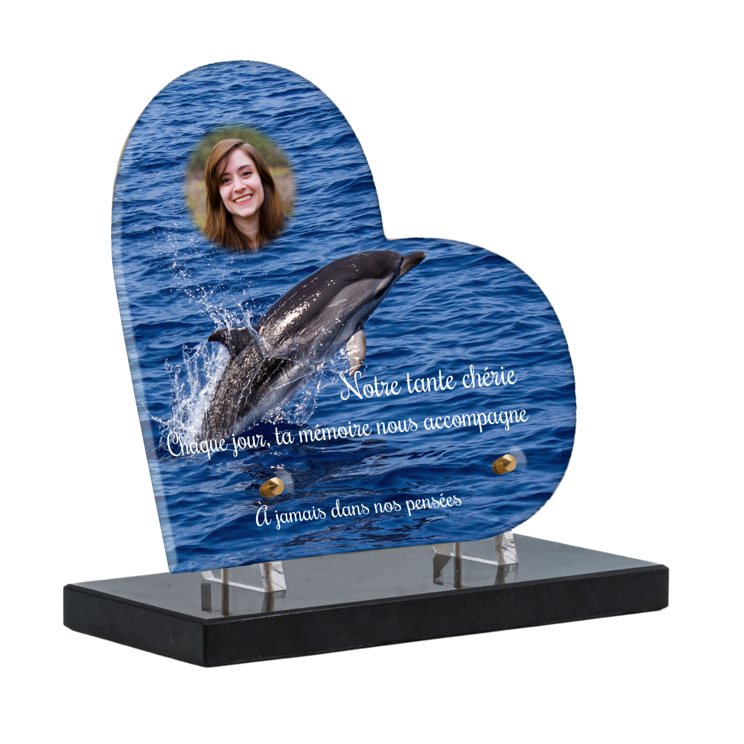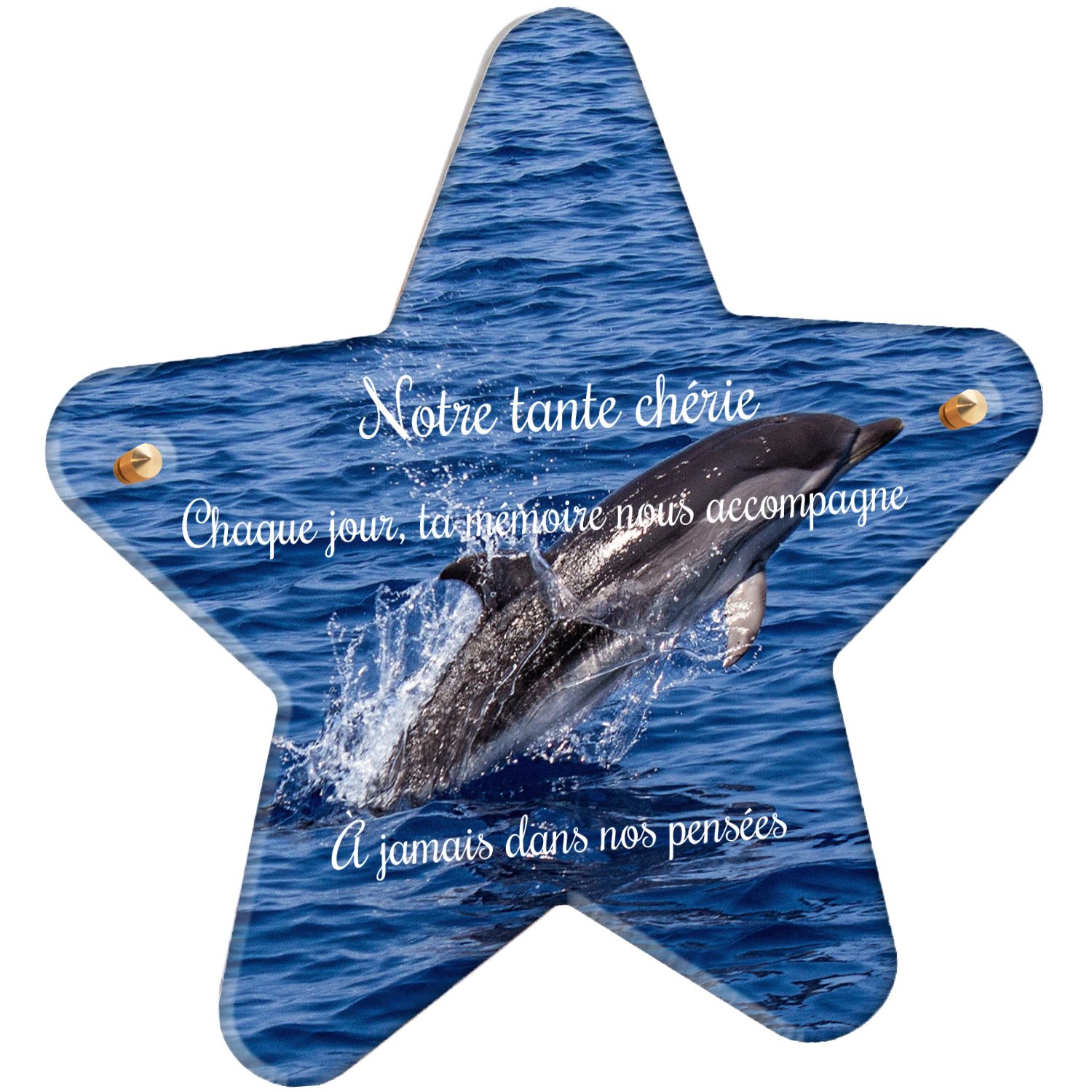 Offrez un hommage unique avec cette plaque funéraire personnalisée représentant un océan apaisant et un dauphin, symbole de liberté et de sérénité. Conçue en plexiglas, cette plaque funéraire moderne allie élégance et résistance, idéale pour célébrer la mémoire de vos proches avec délicatesse. Chaque plaque mortuaire est réalisée sur mesure, vous permettant de choisir les détails qui reflètent au mieux la personnalité du défunt. Sa durabilité approuvée garantit une conservation longue durée, pour un souvenir précieux qui traverse le temps.