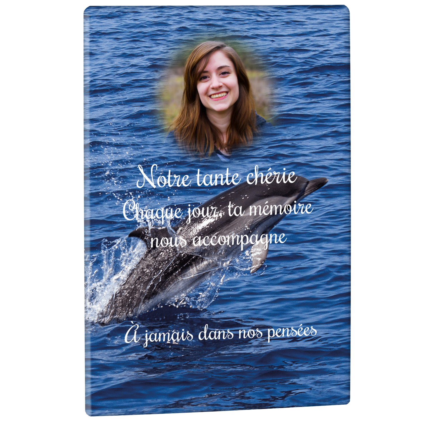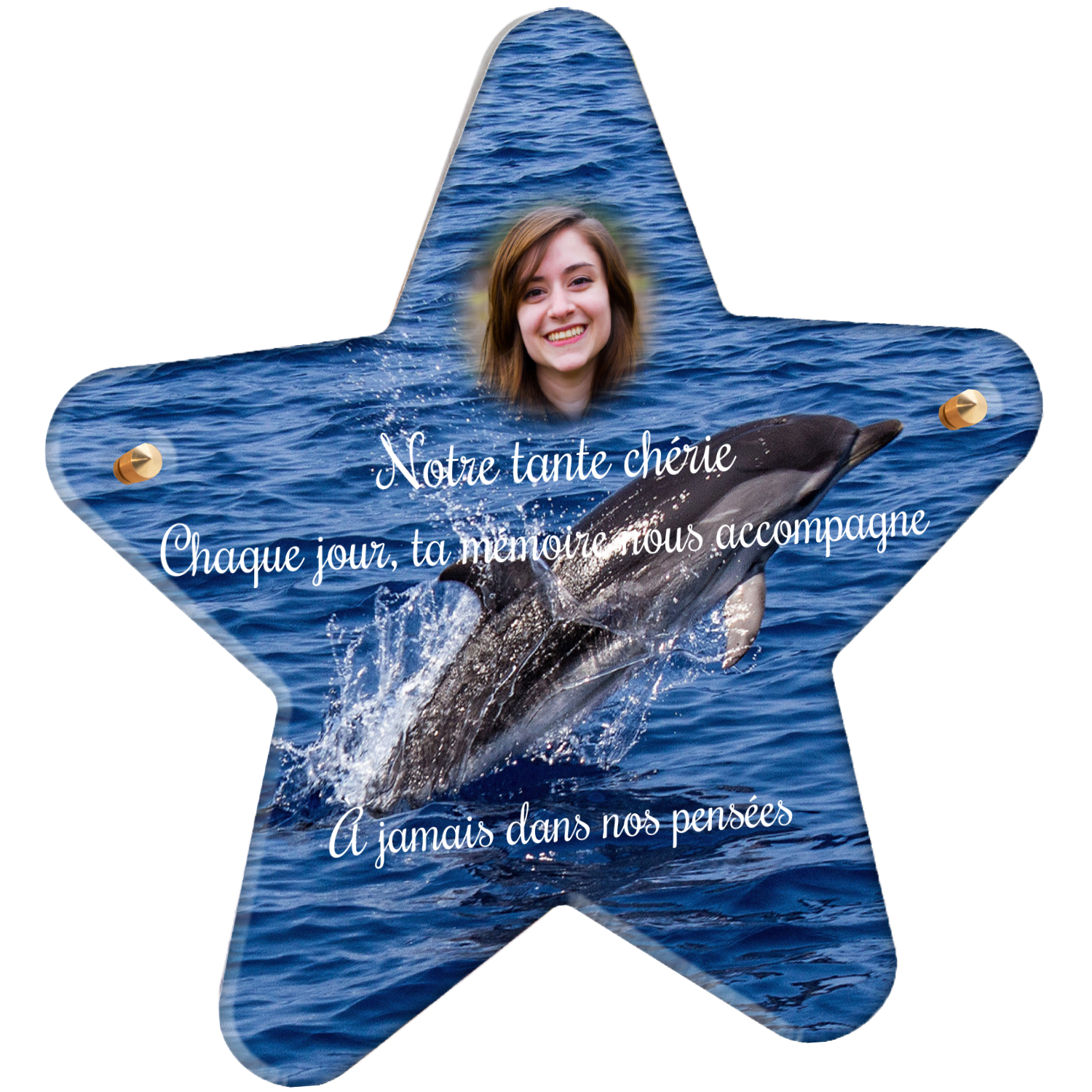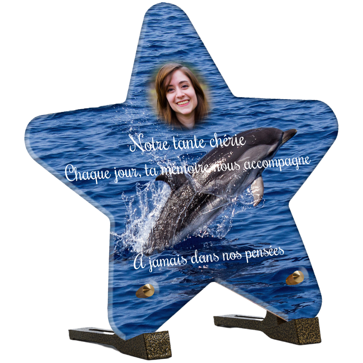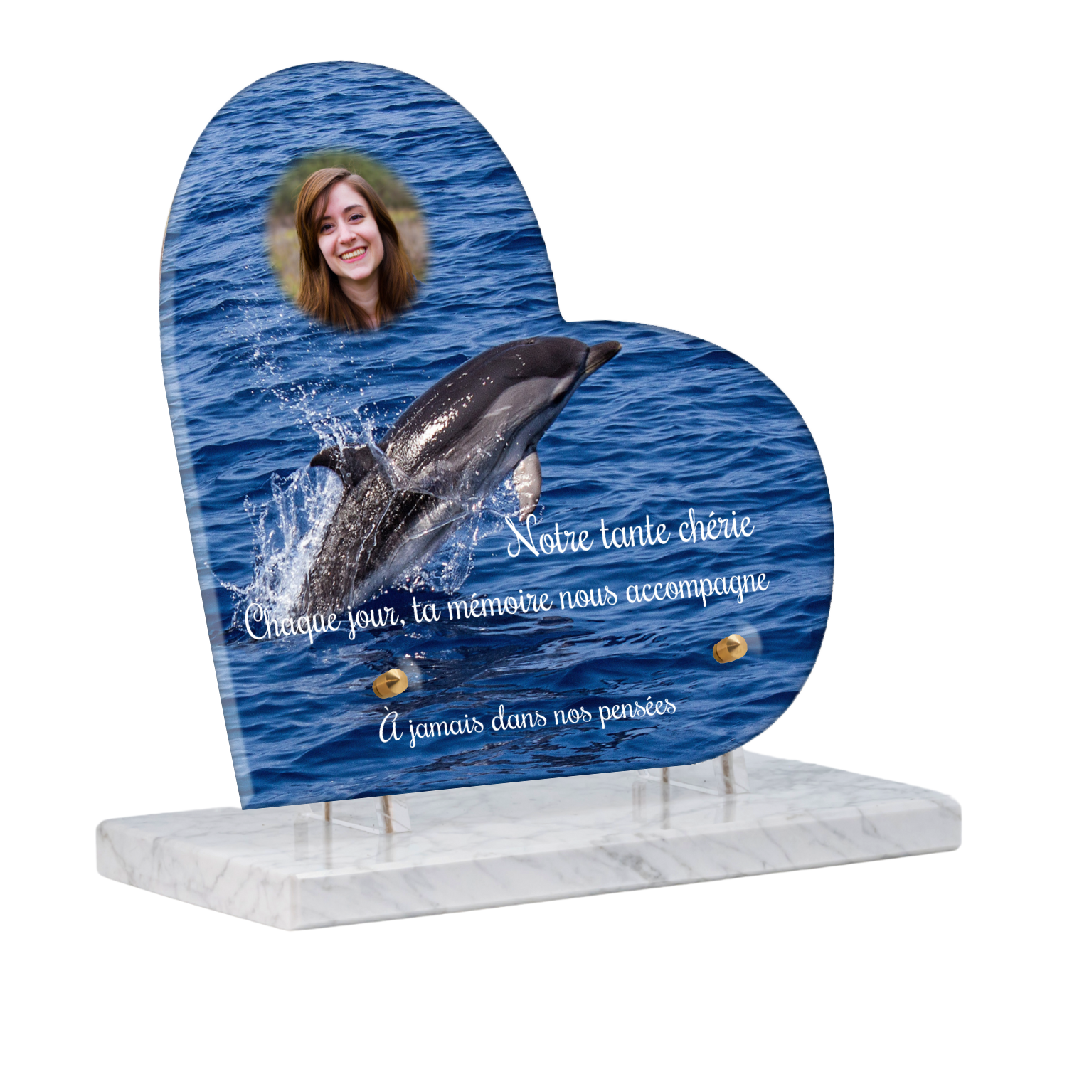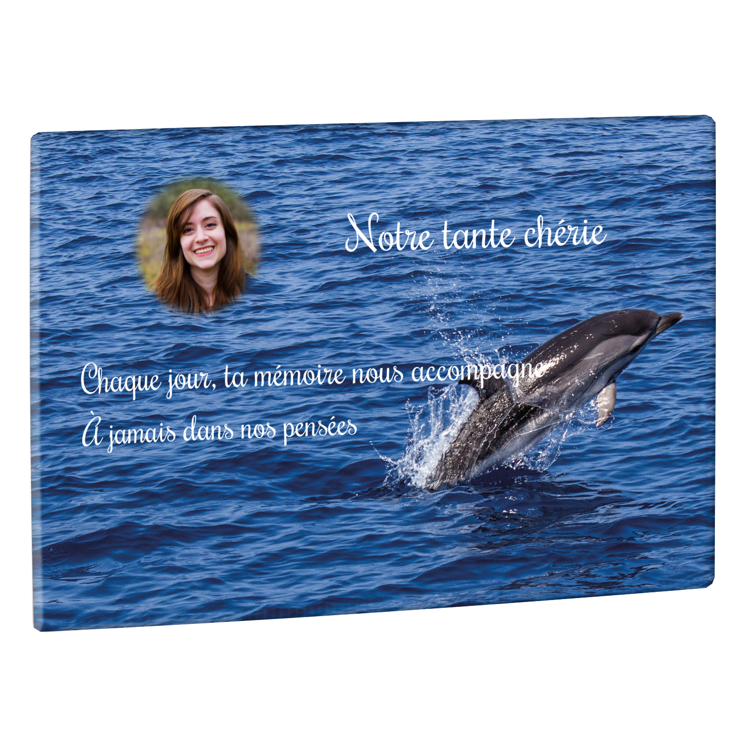 Offrez un hommage unique avec cette plaque funéraire personnalisée représentant un océan apaisant et un dauphin, symbole de liberté et de sérénité. Conçue en plexiglas, cette plaque funéraire moderne allie élégance et résistance, idéale pour célébrer la mémoire de vos proches avec délicatesse. Chaque plaque mortuaire est réalisée sur mesure, vous permettant de choisir les détails qui reflètent au mieux la personnalité du défunt. Sa durabilité approuvée garantit une conservation longue durée, pour un souvenir précieux qui traverse le temps.