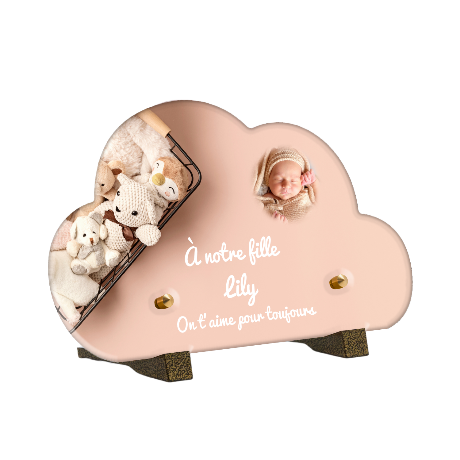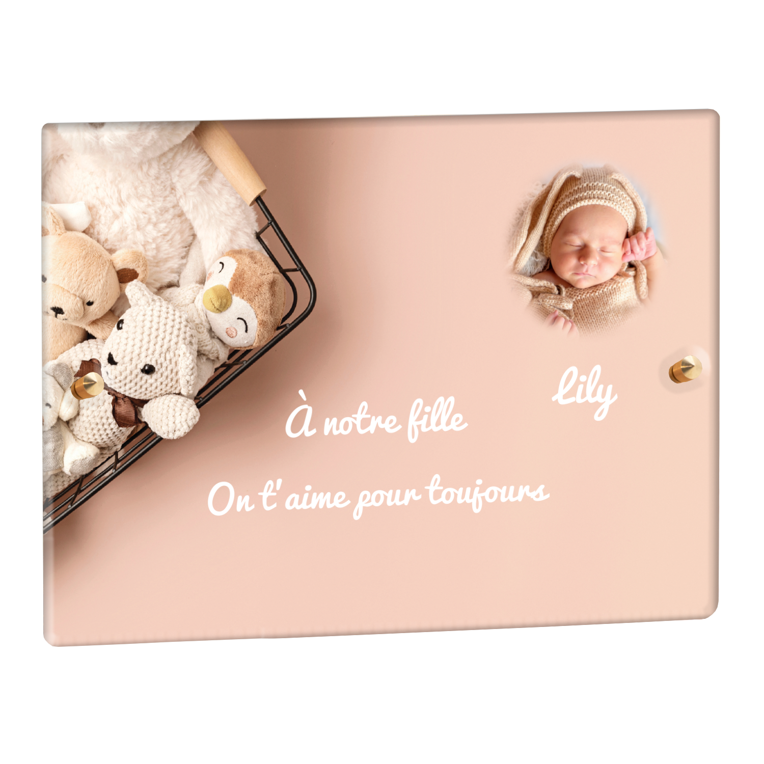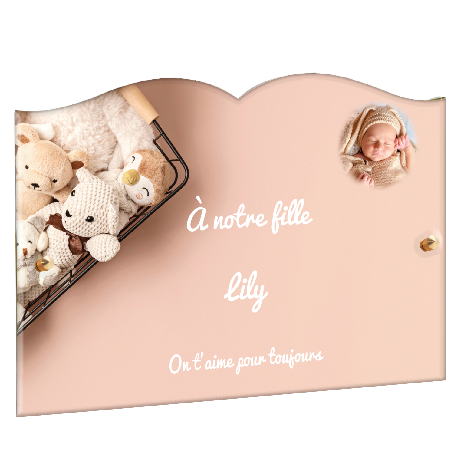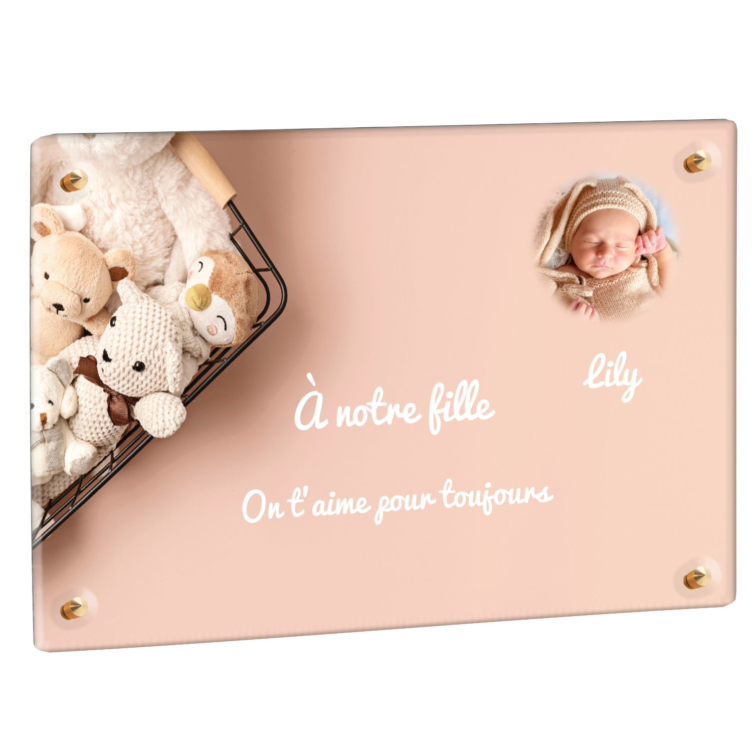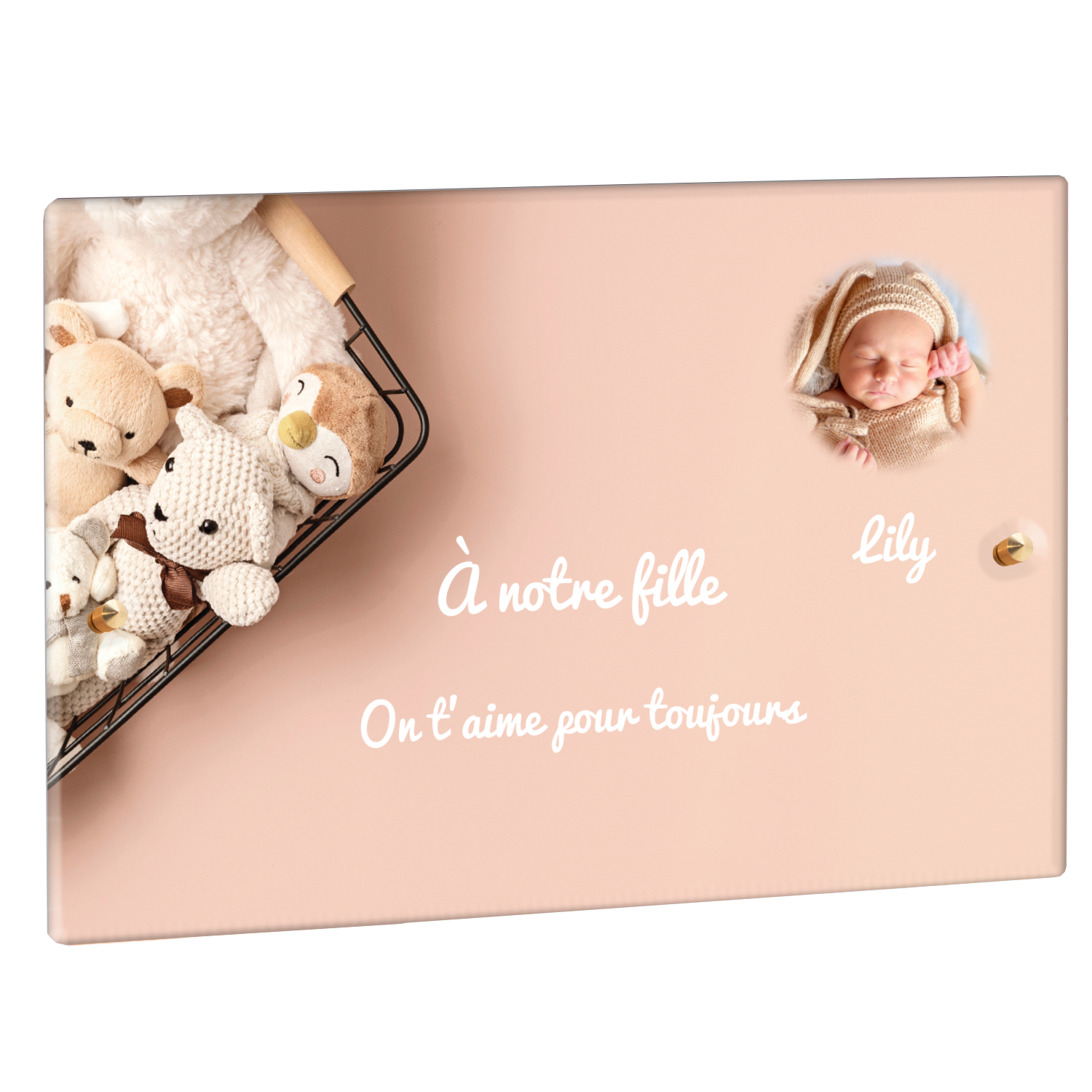 Offrez un hommage tendre et unique avec cette plaque funéraire personnalisée représentant un panier rempli de doudous. Conçue en plexiglas, cette plaque mortuaire moderne allie délicatesse et élégance pour célébrer la mémoire d’un être cher avec douceur et respect. Son design soigné apporte une touche chaleureuse et apaisante au lieu de repos.