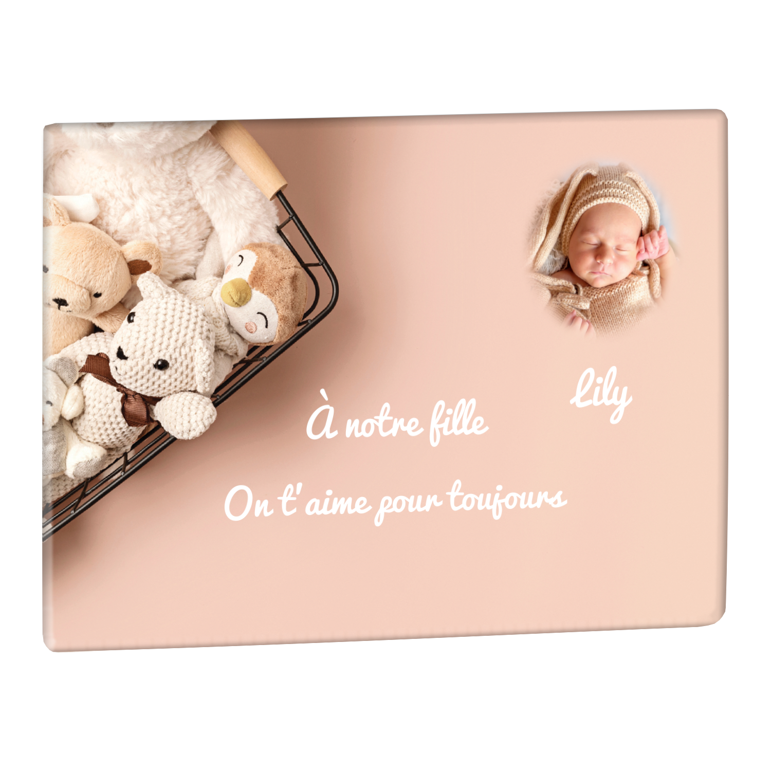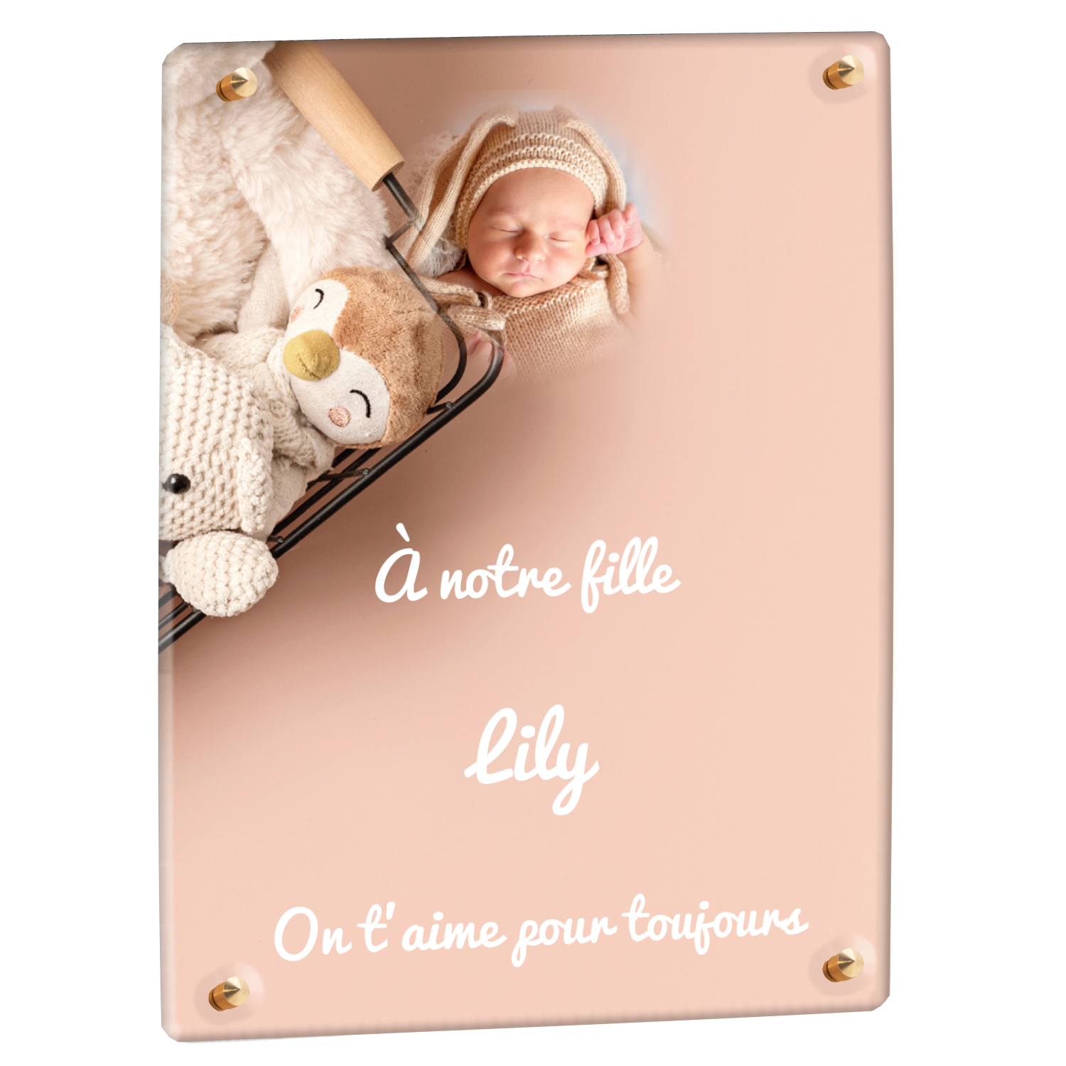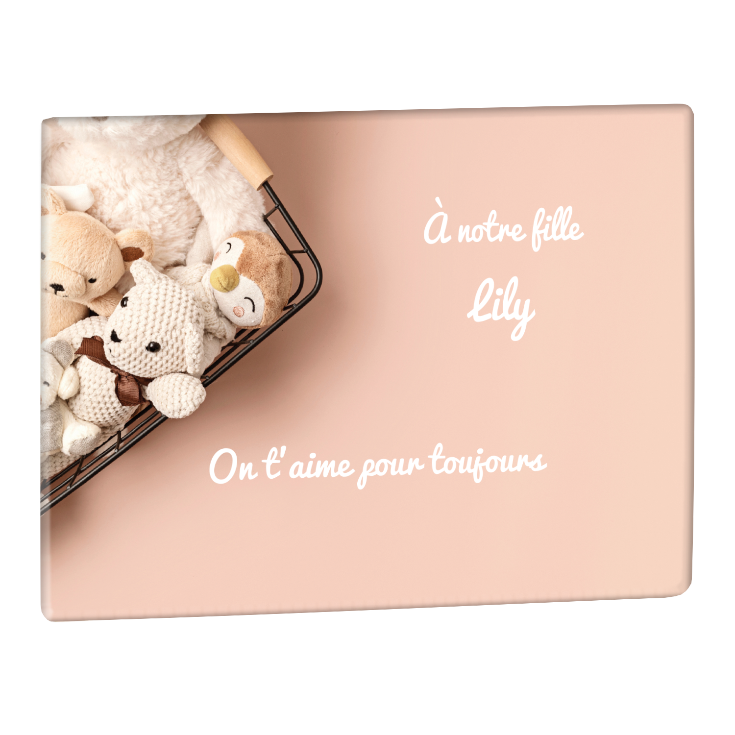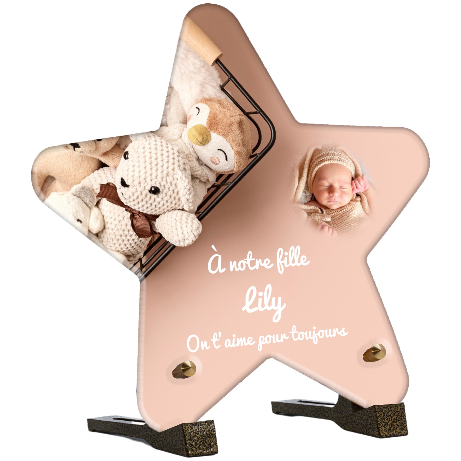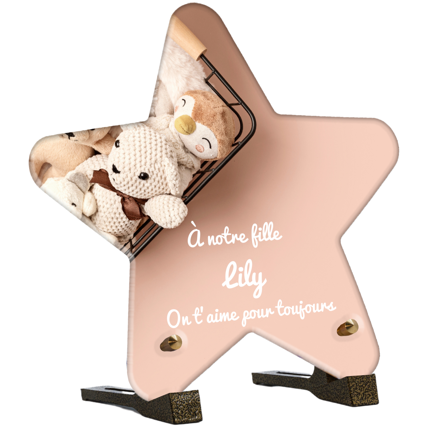 Offrez un hommage tendre et unique avec cette plaque funéraire personnalisée représentant un panier rempli de doudous. Conçue en plexiglas, cette plaque mortuaire moderne allie délicatesse et élégance pour célébrer la mémoire d’un être cher avec douceur et respect. Son design soigné apporte une touche chaleureuse et apaisante au lieu de repos.