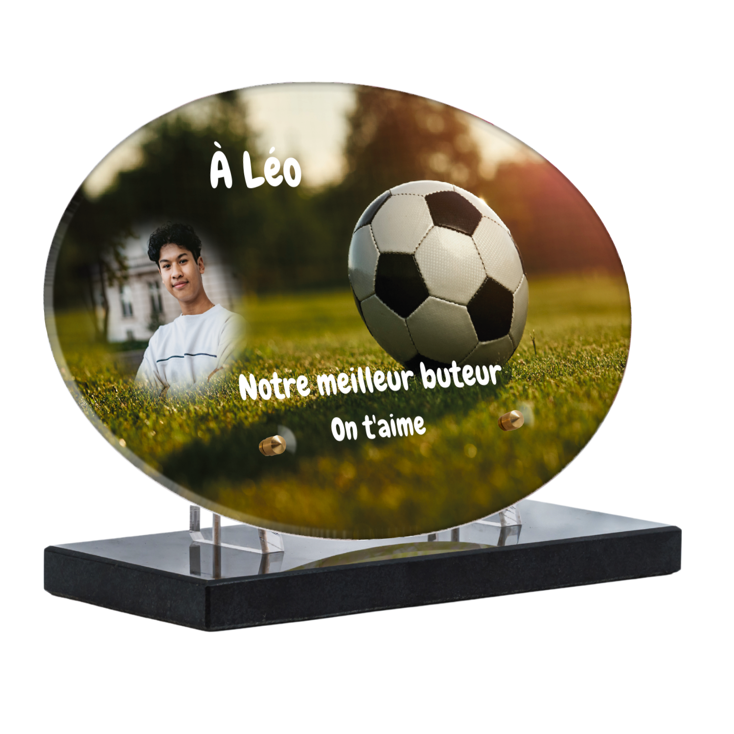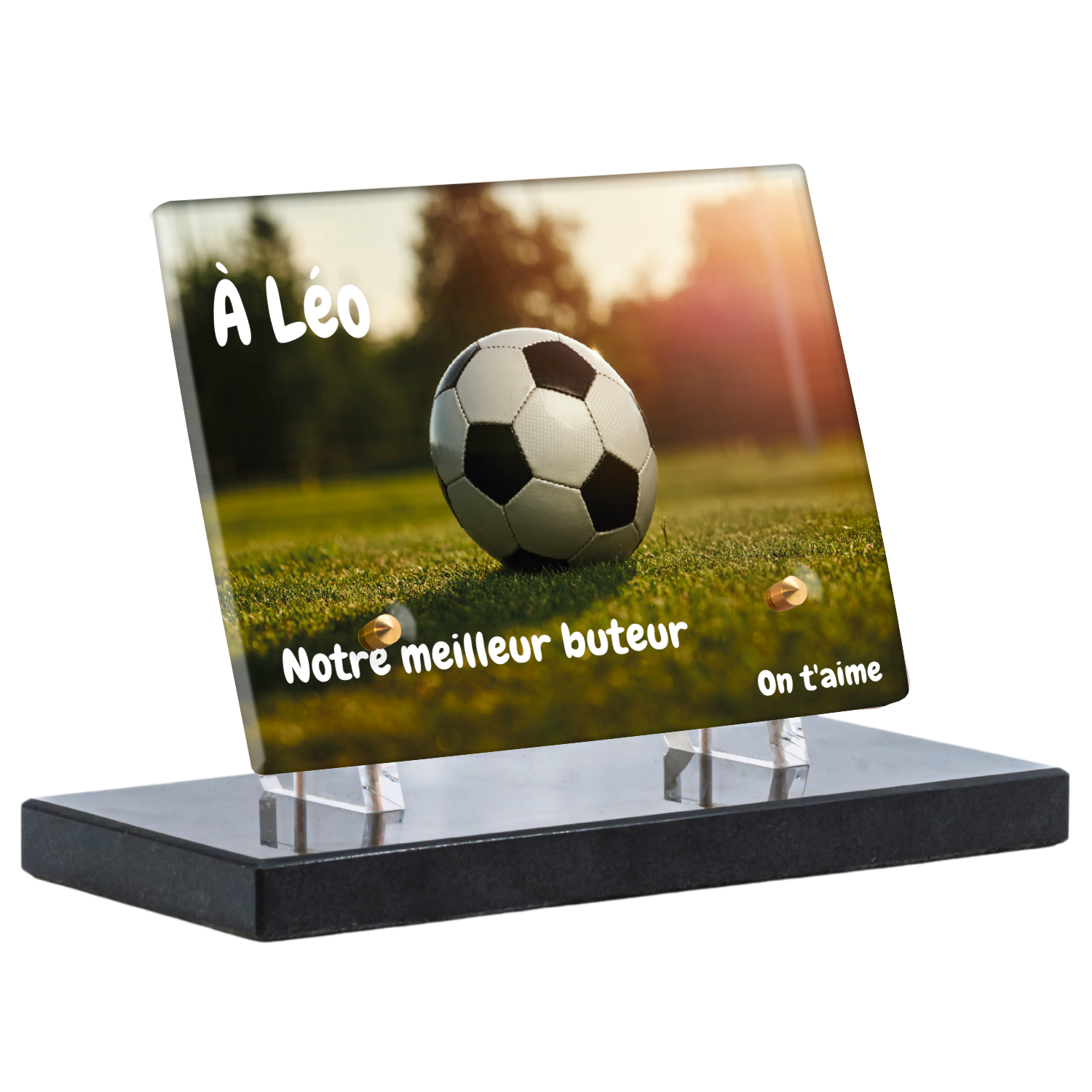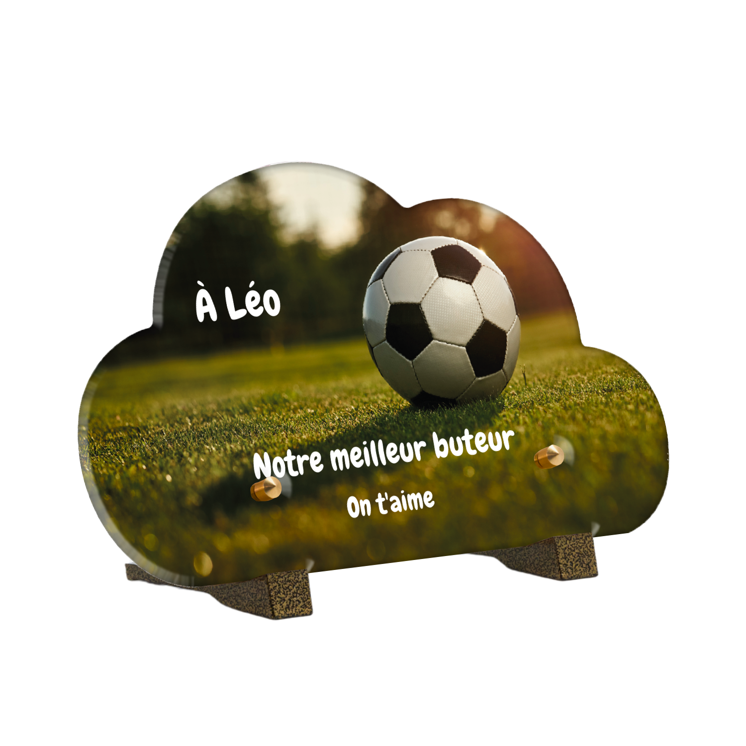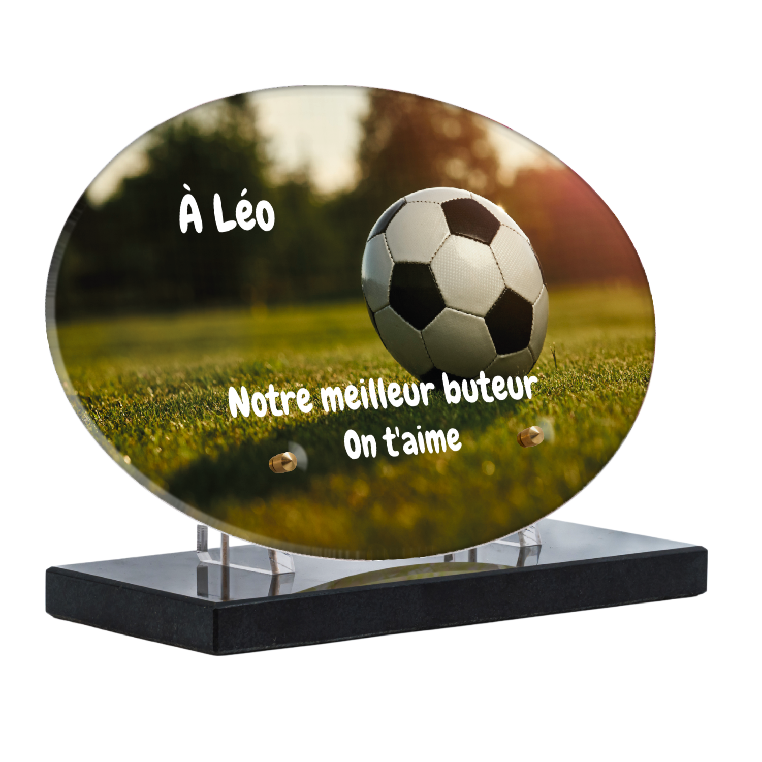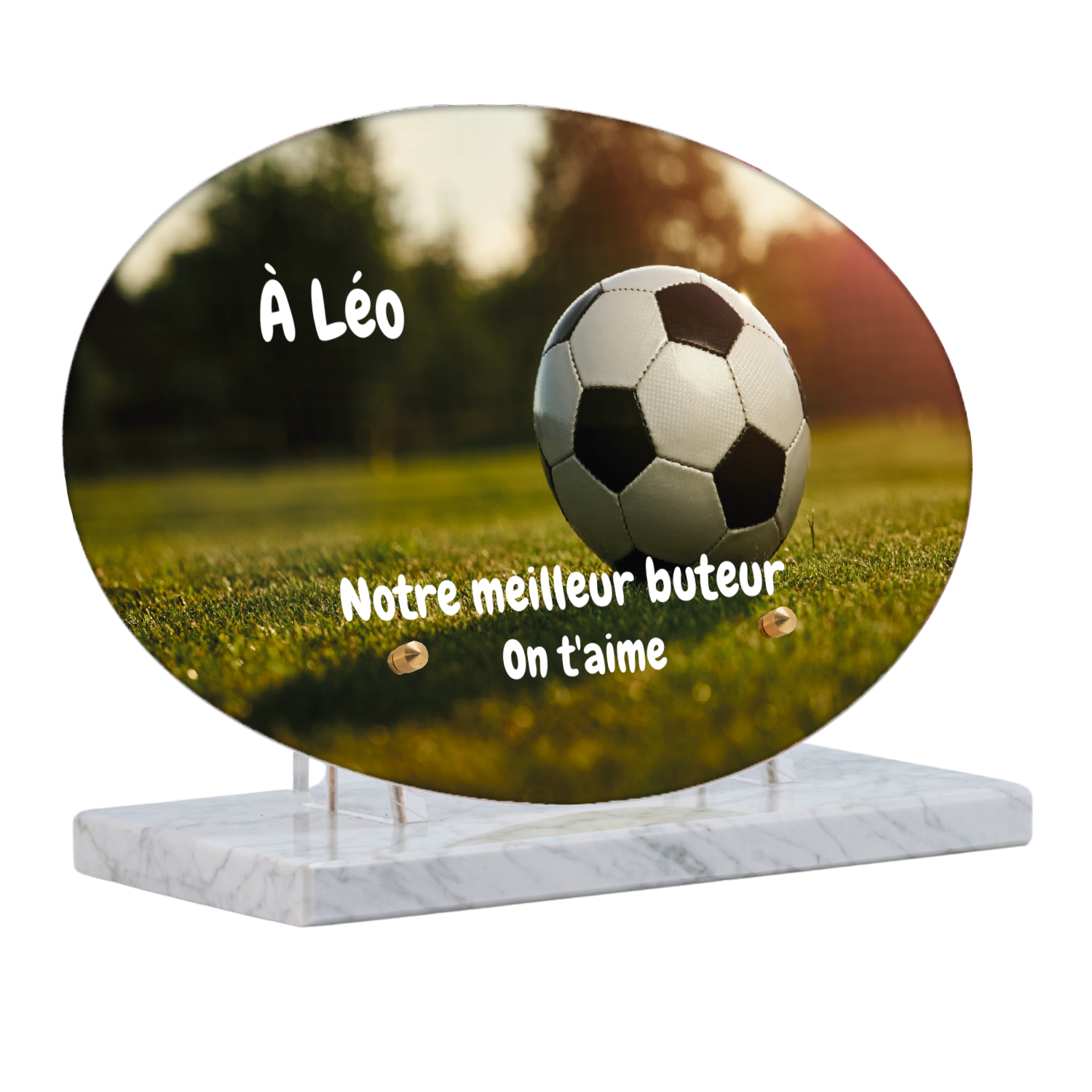 Offrez un hommage unique avec cette plaque funéraire personnalisée représentant un ballon de foot sur un terrain, idéale pour célébrer la passion du défunt. Cette plaque mortuaire allie design moderne et élégance, réalisée en plexiglas de haute qualité pour une finition soignée et résistante aux intempéries. Chaque plaque funéraire moderne est conçue sur mesure, vous permettant d’ajouter un texte personnalisé pour un souvenir véritablement unique. Sa durabilité approuvée garantit une longue conservation, assurant que la mémoire de votre proche reste intacte au fil du temps.